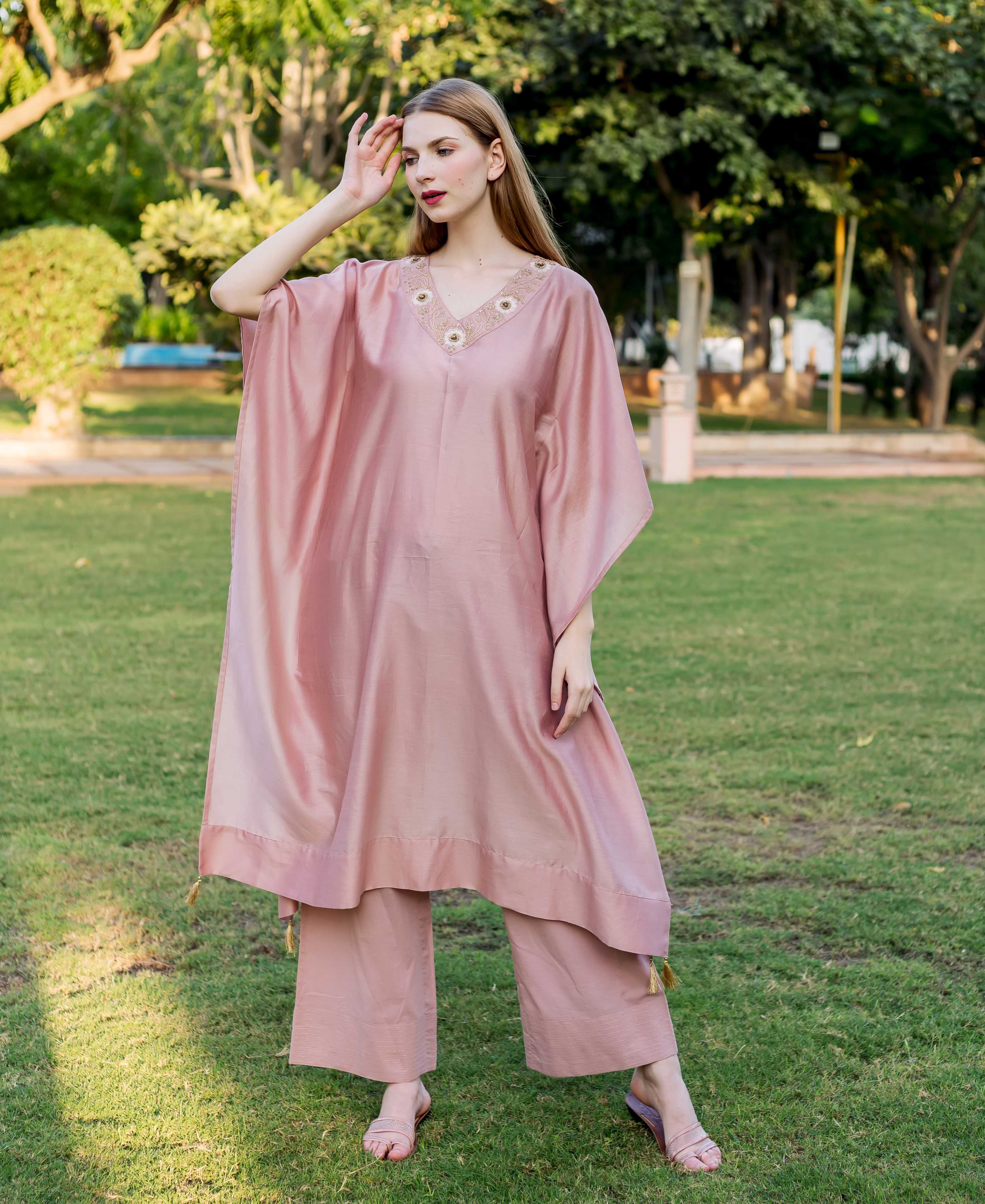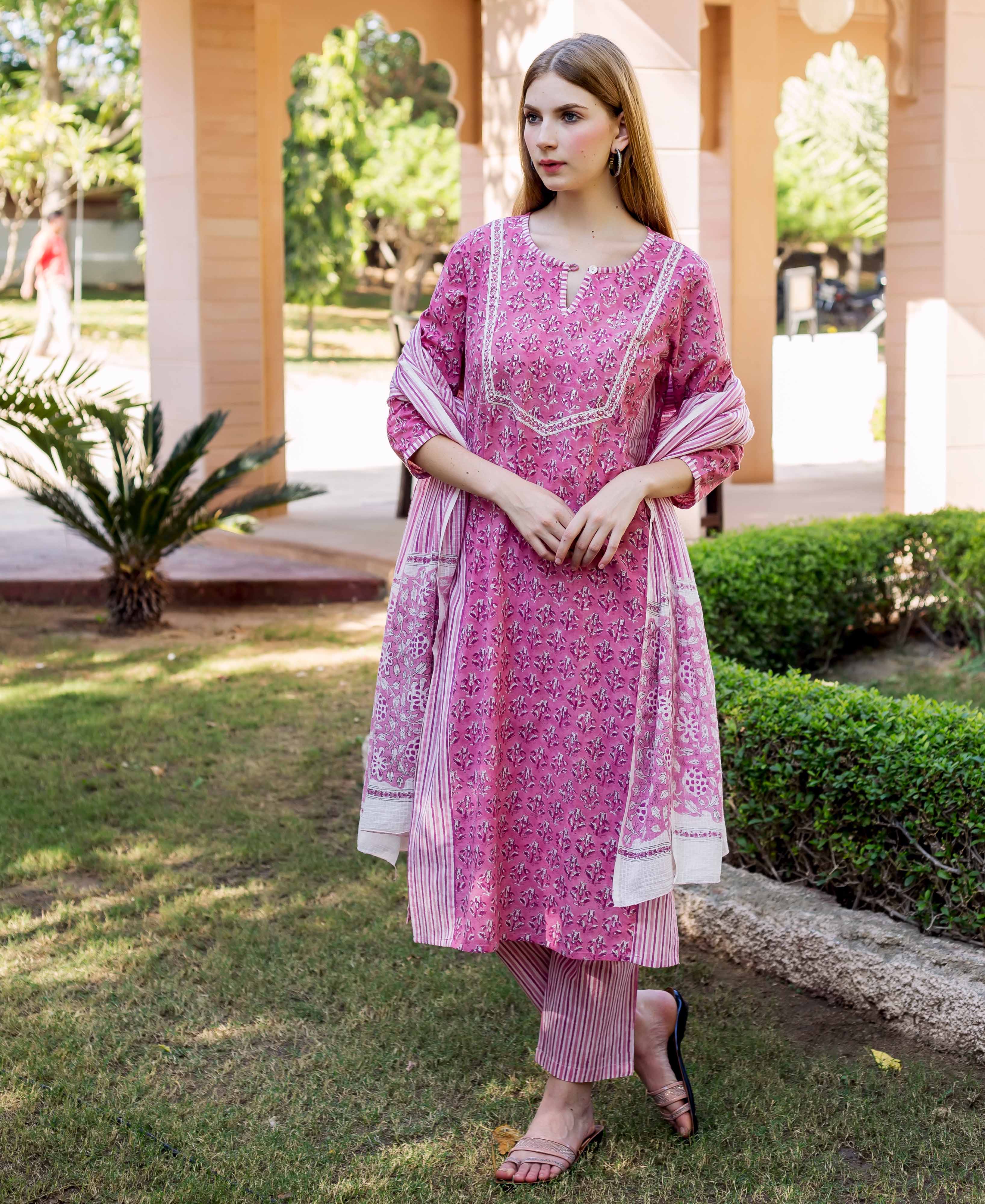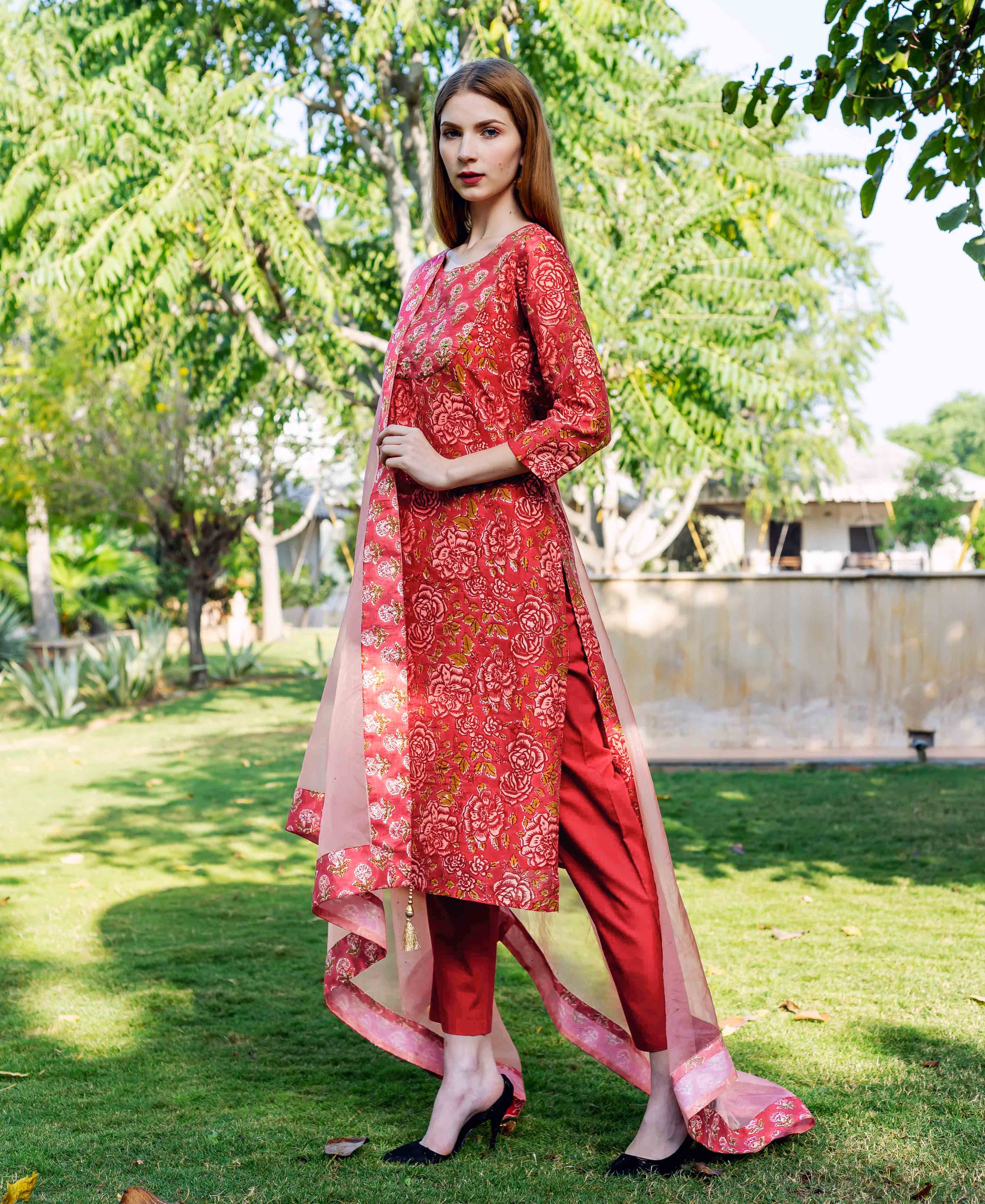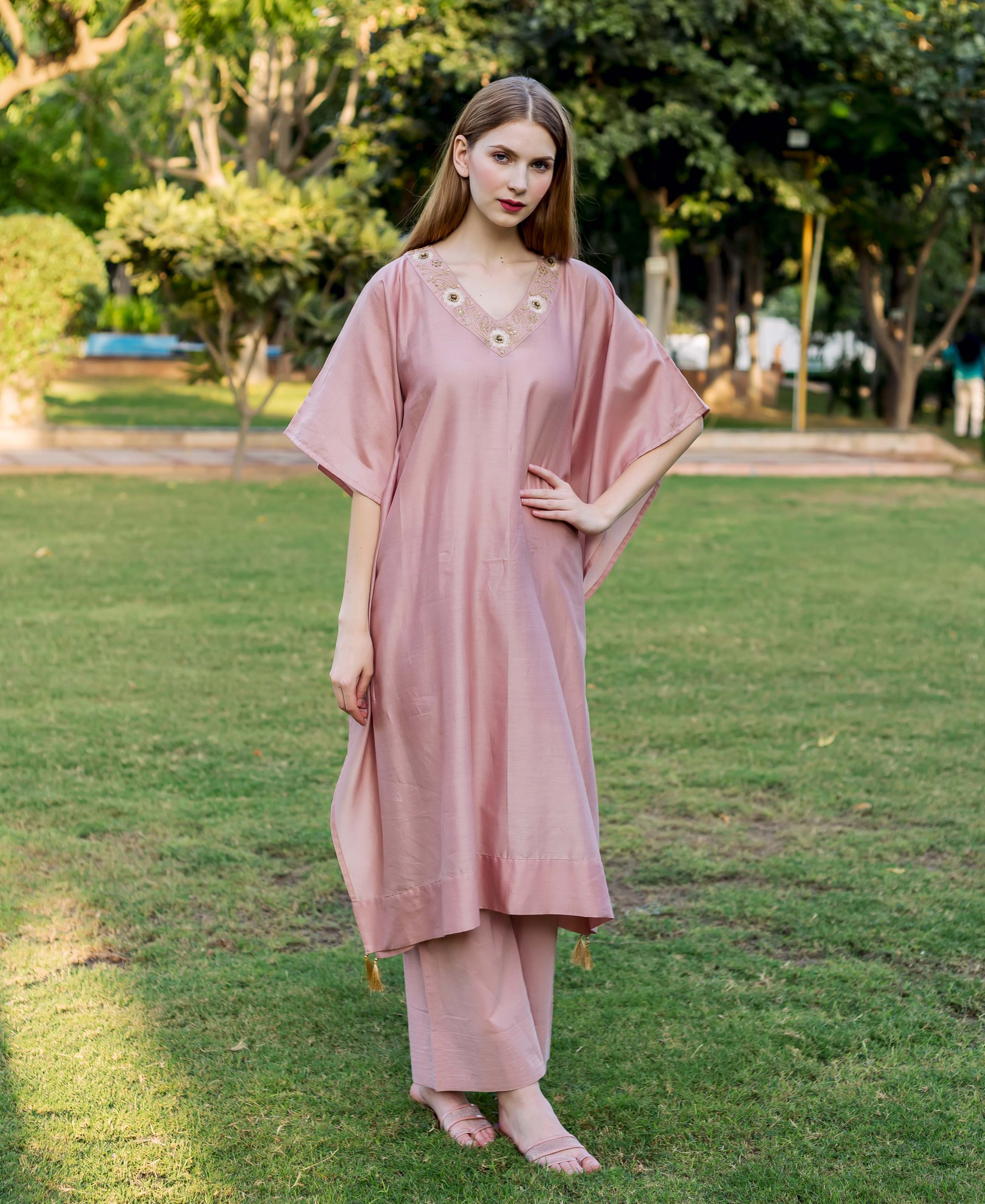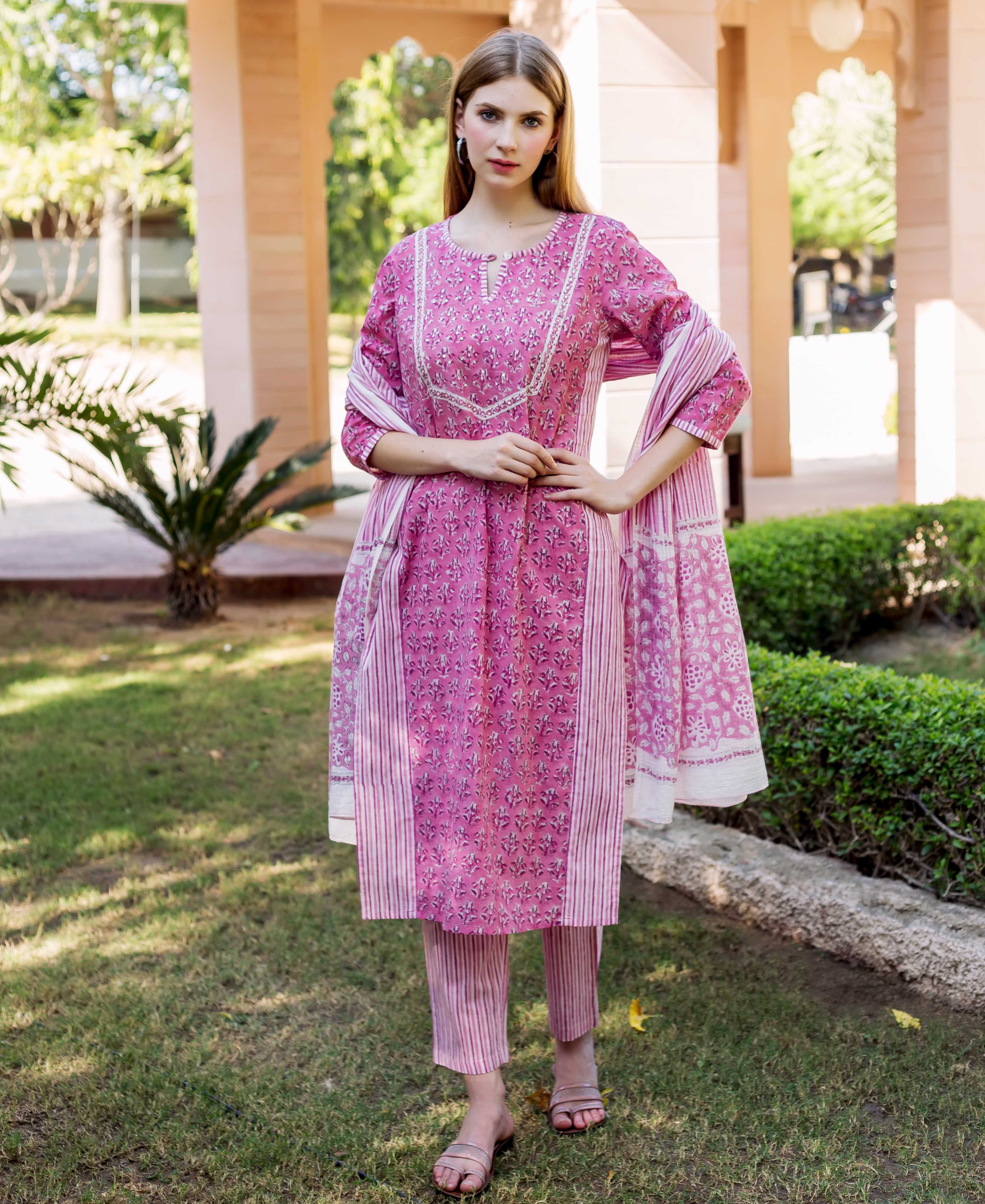 Eshika Raspberry Pink Embroidered Chanderi Dress
