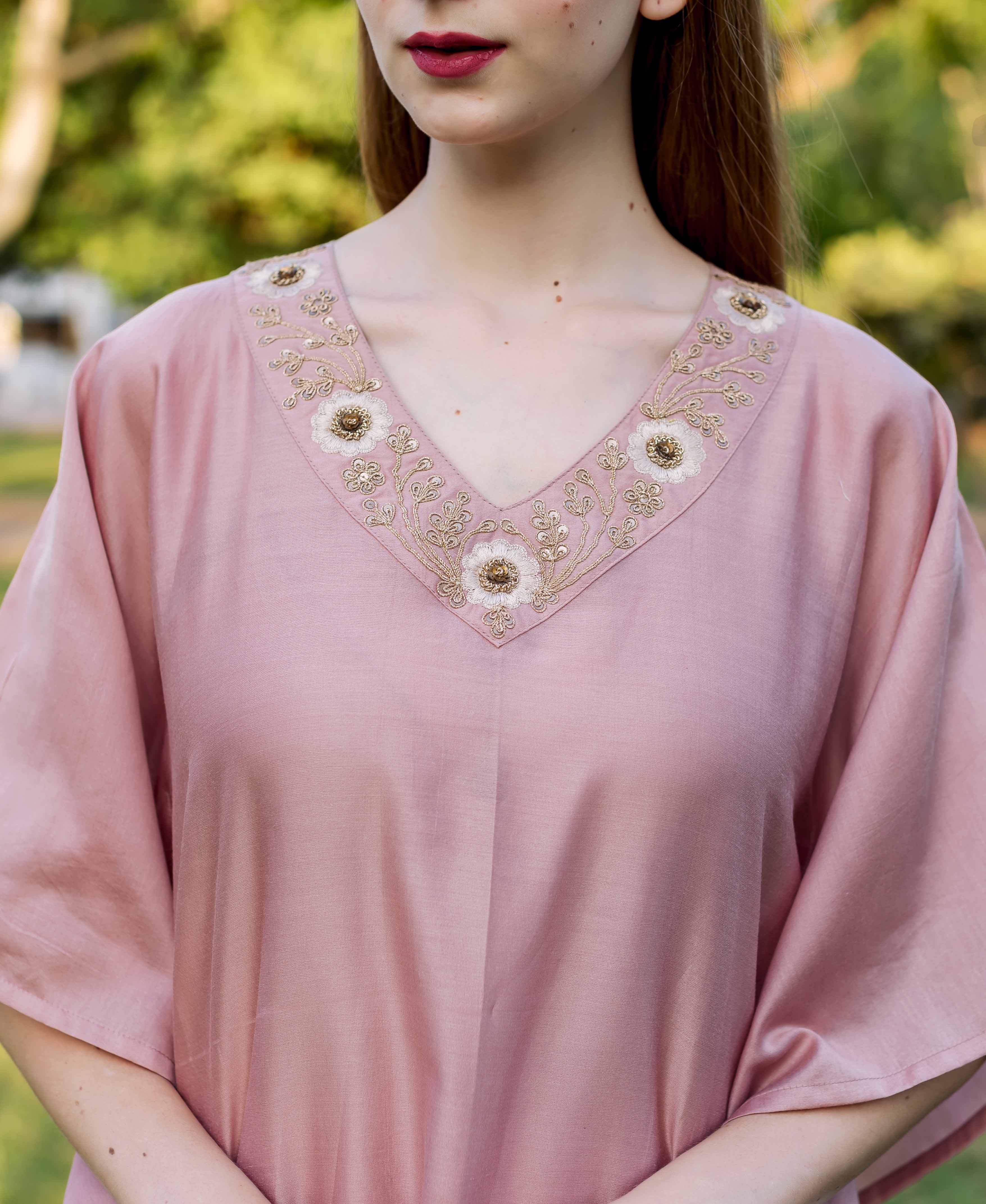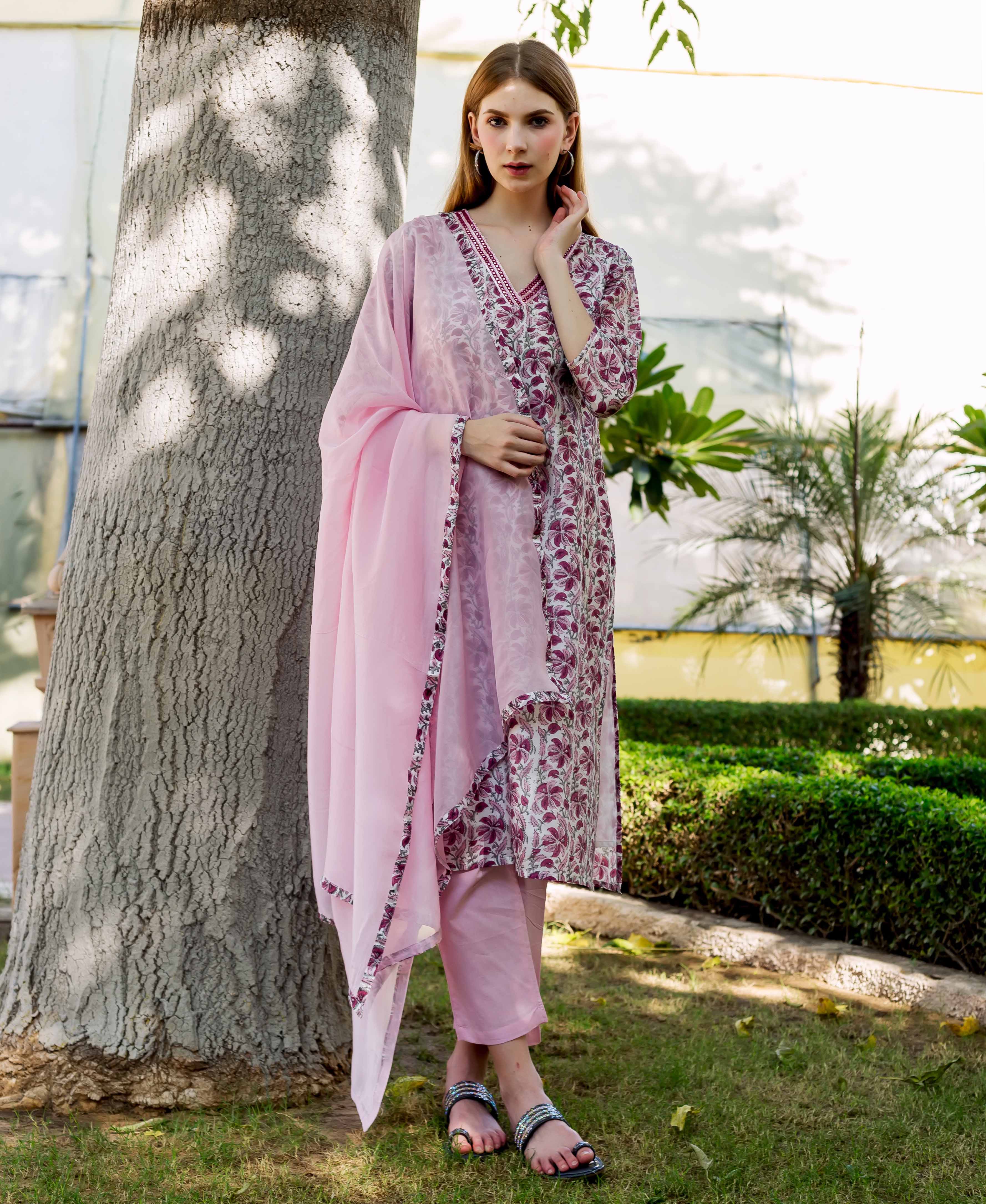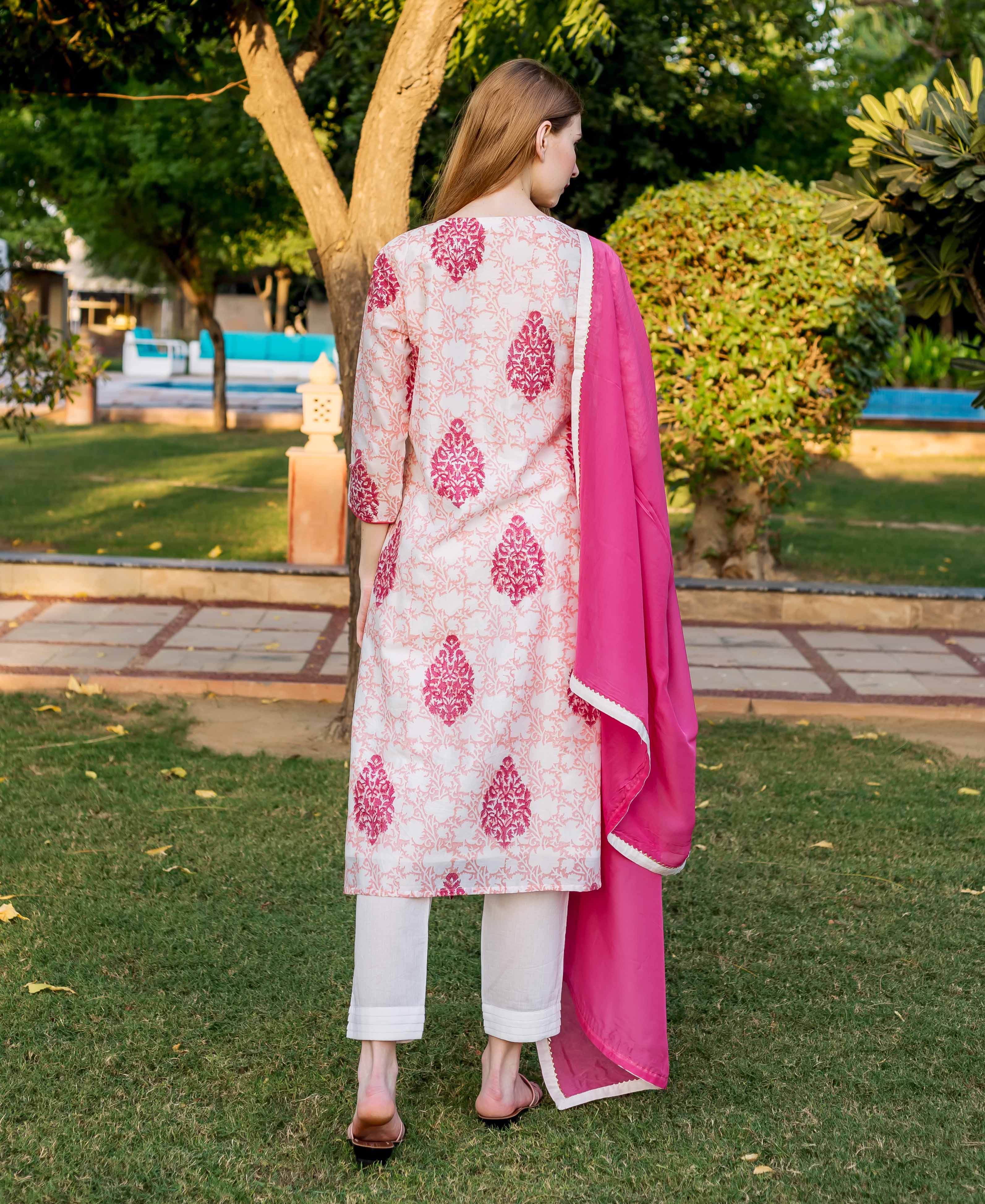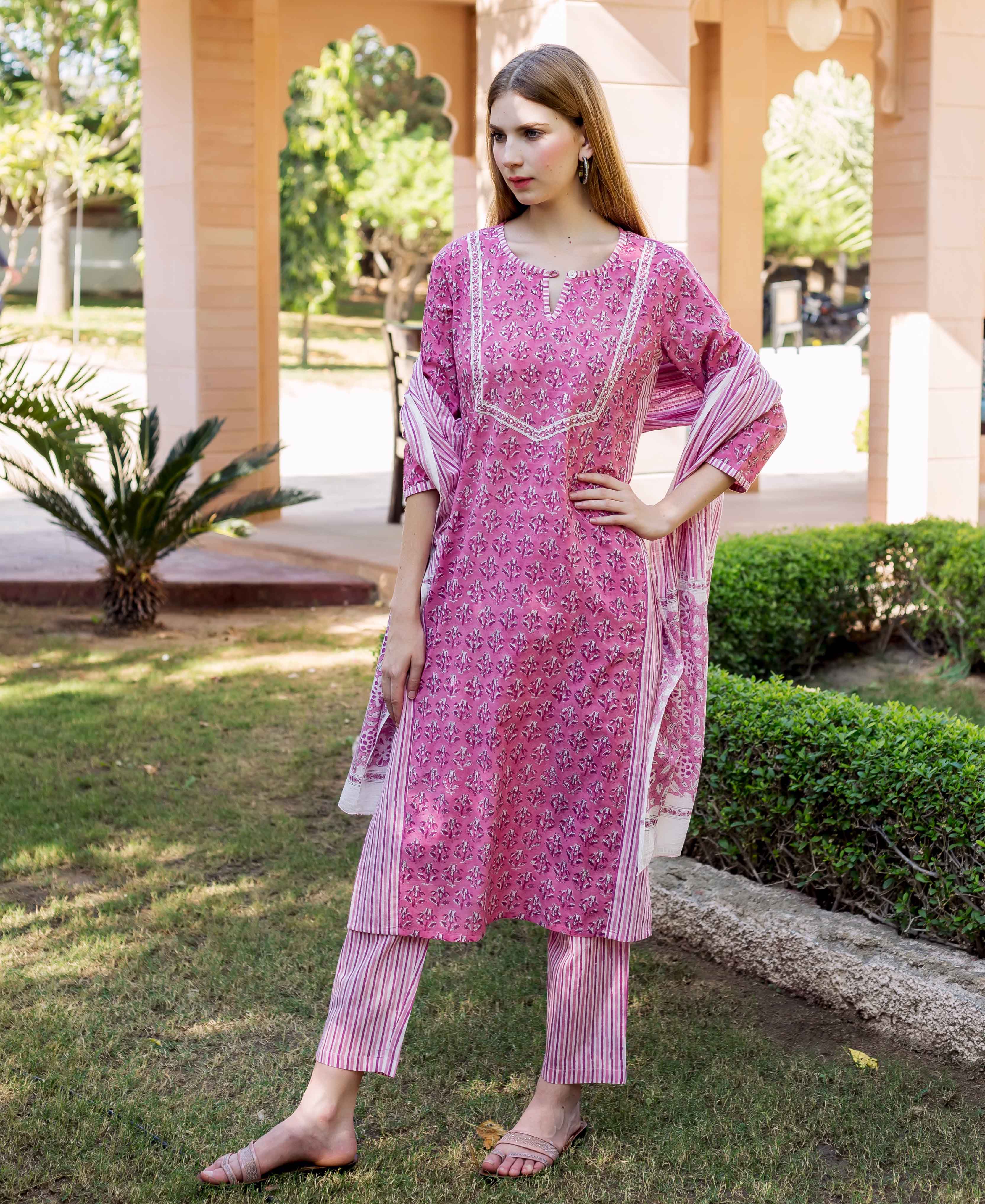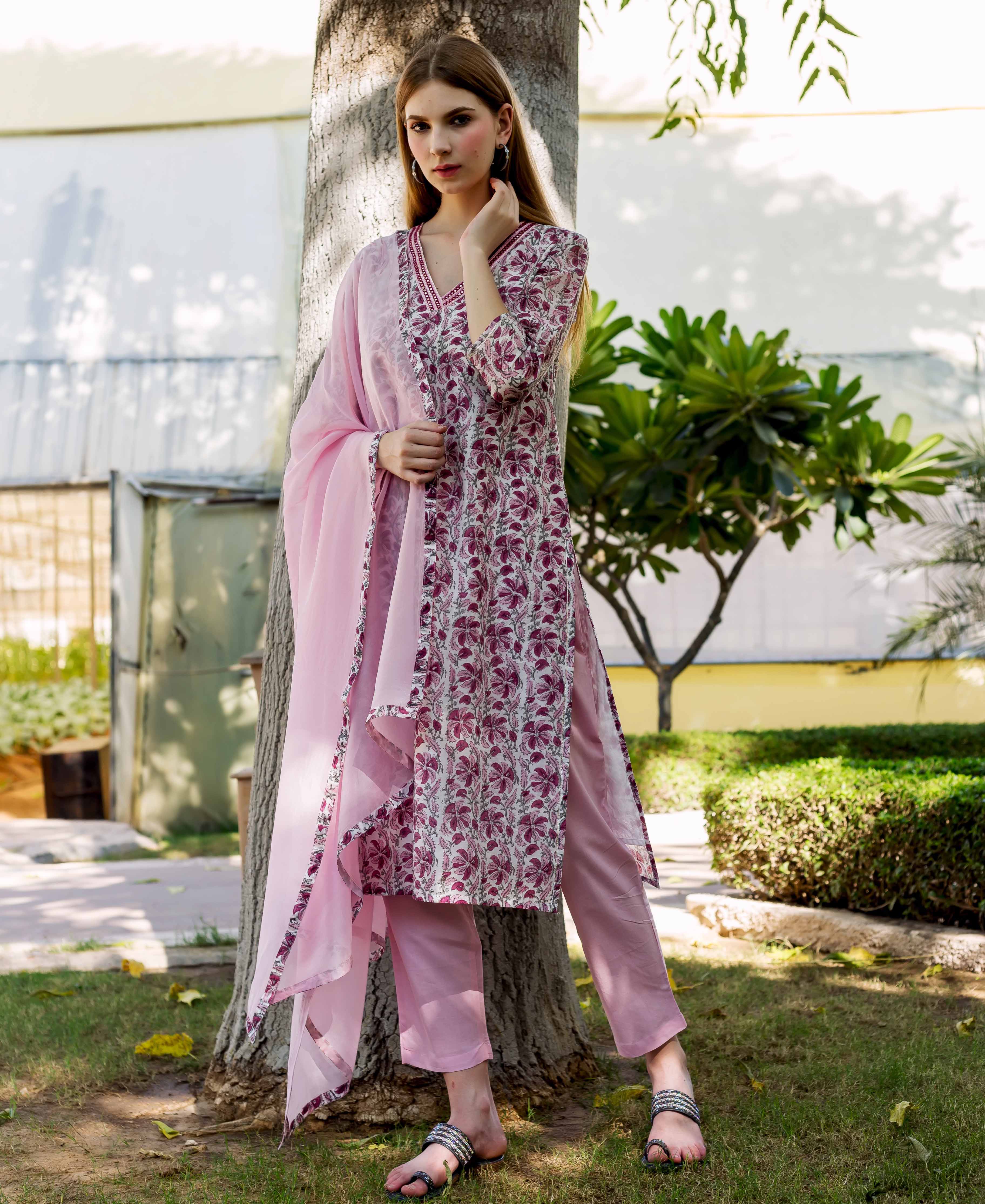 Eshika Raspberry Pink Embroidered Chanderi Dress