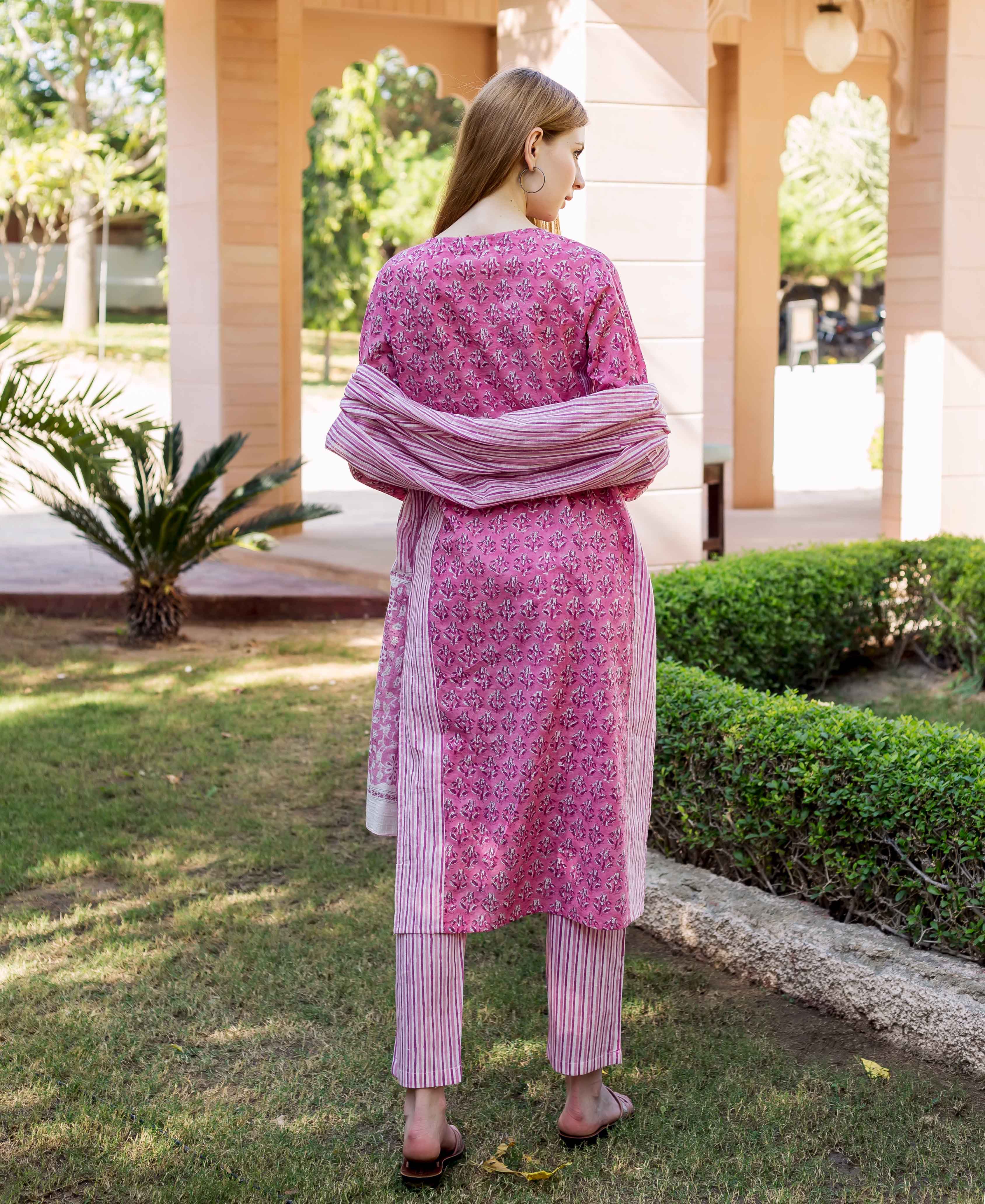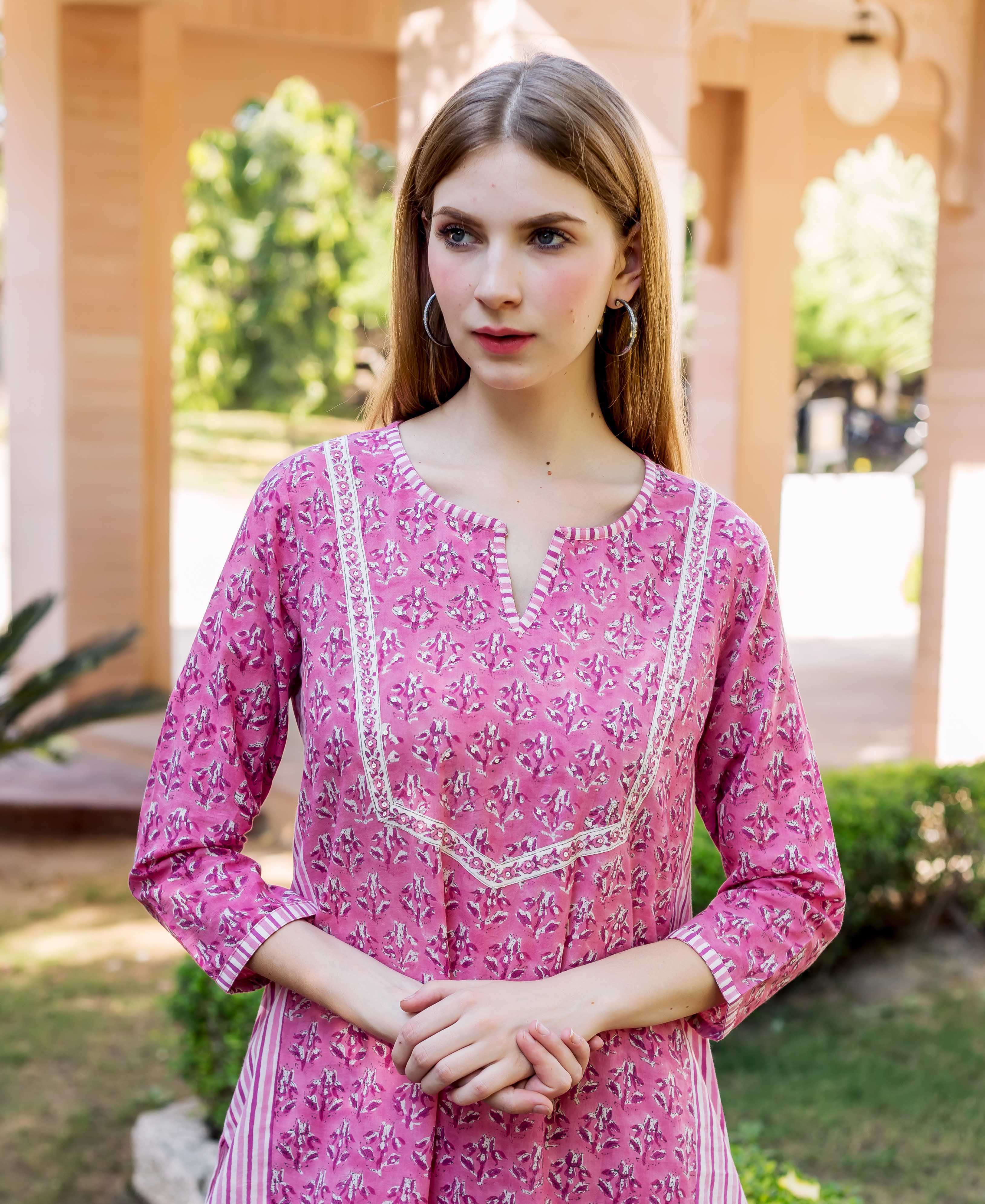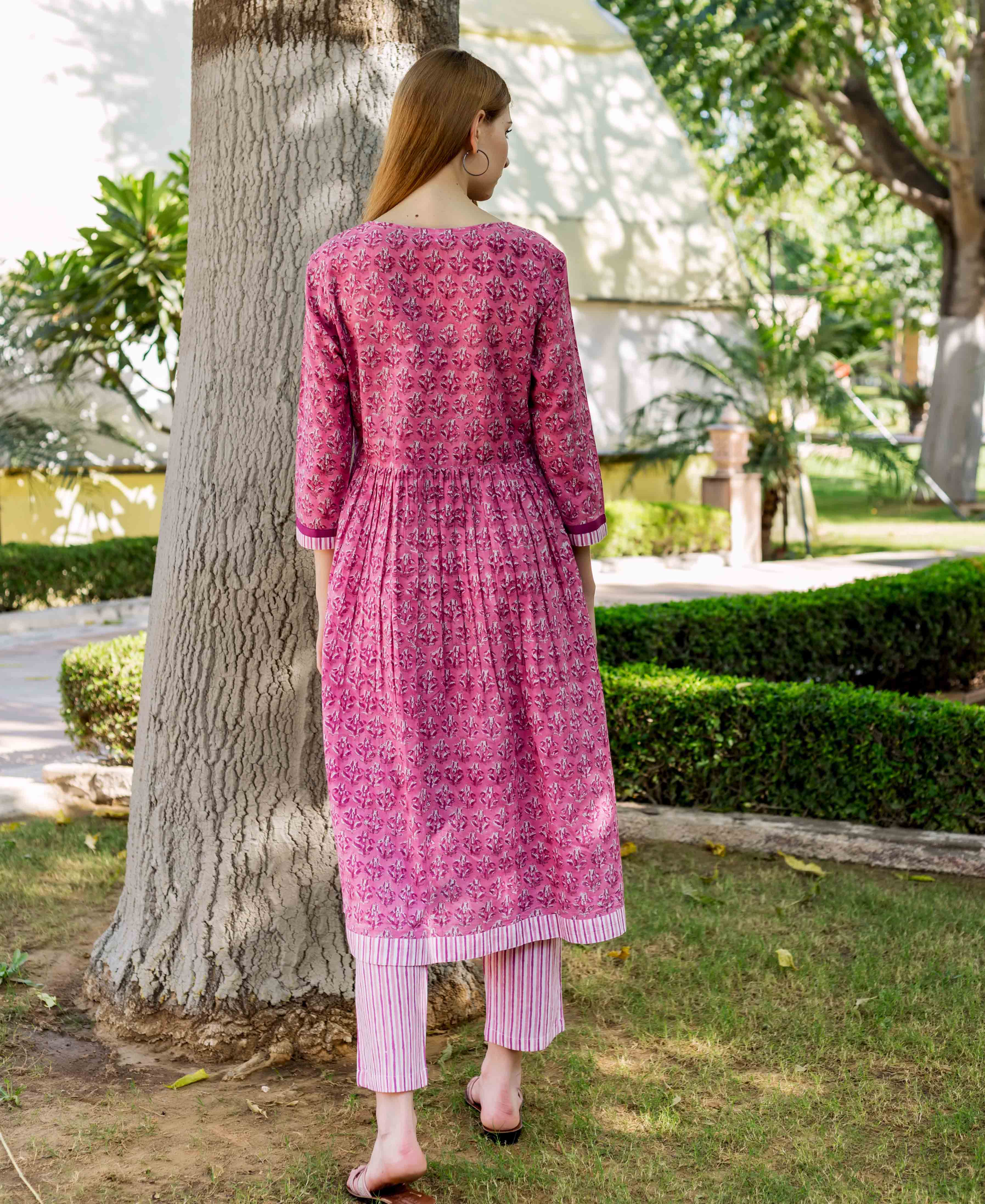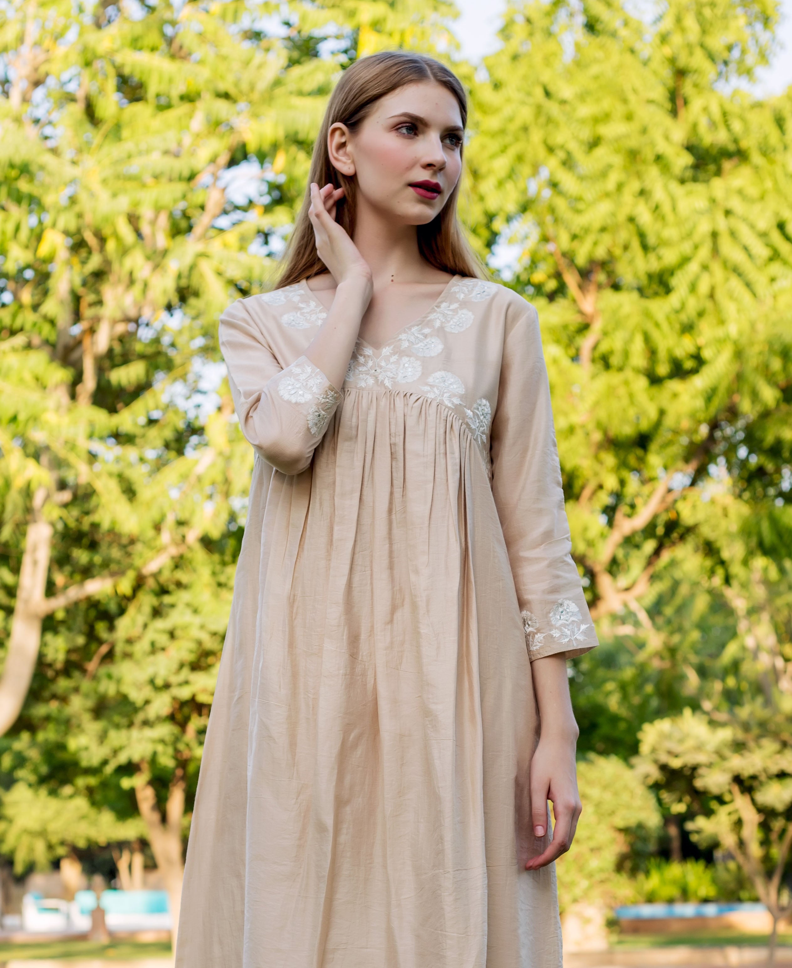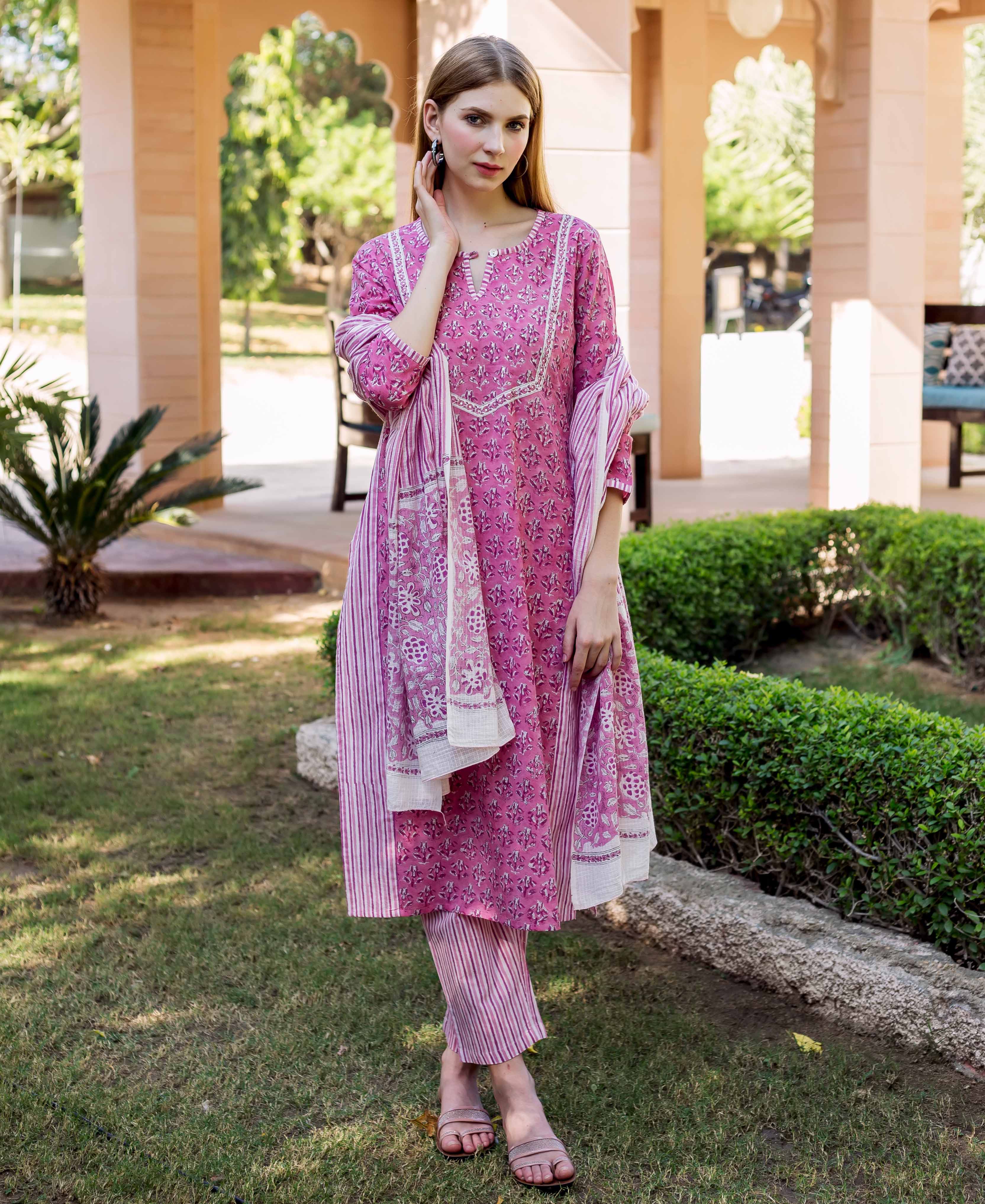 Eshika Raspberry Pink Embroidered Chanderi Dress