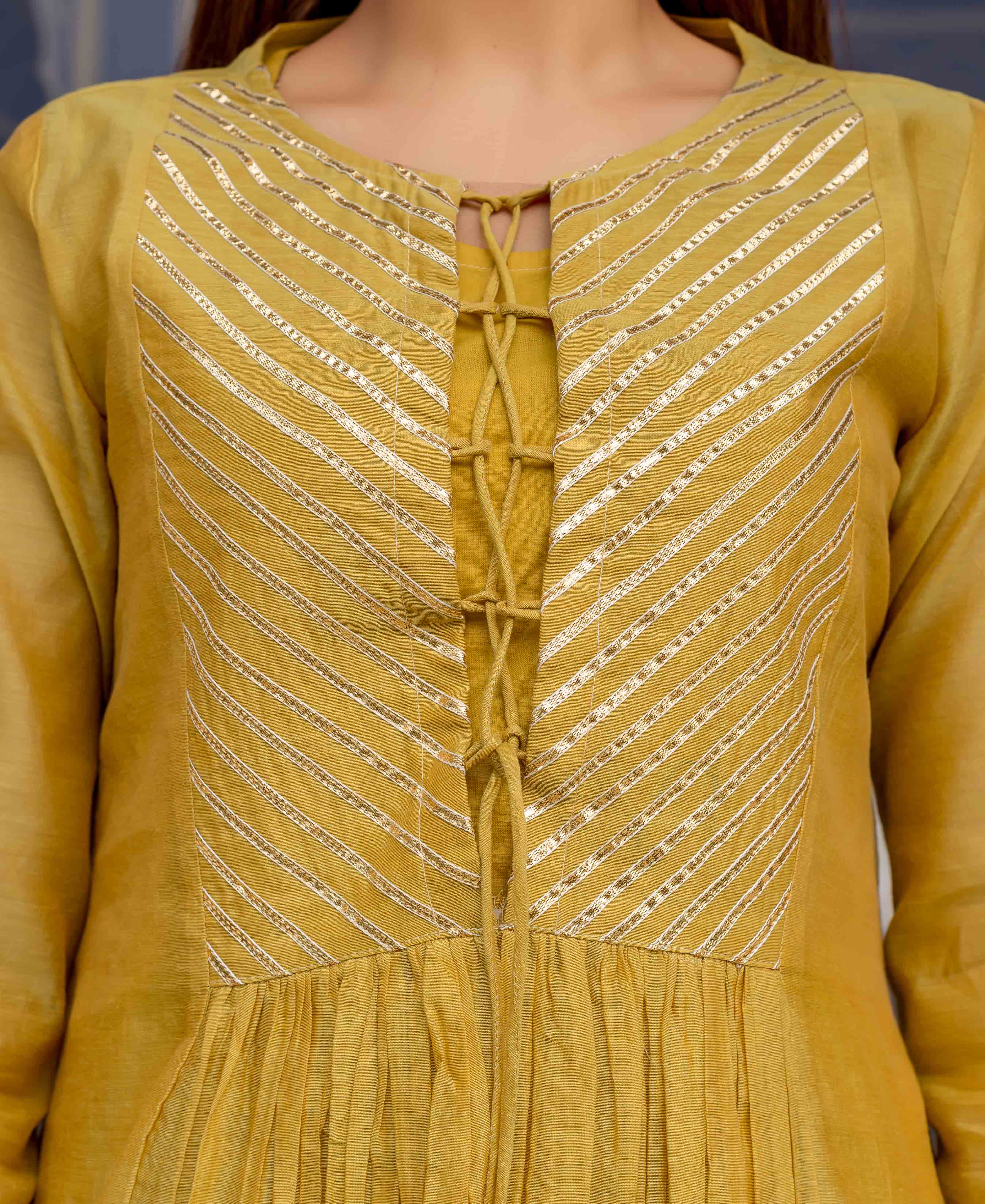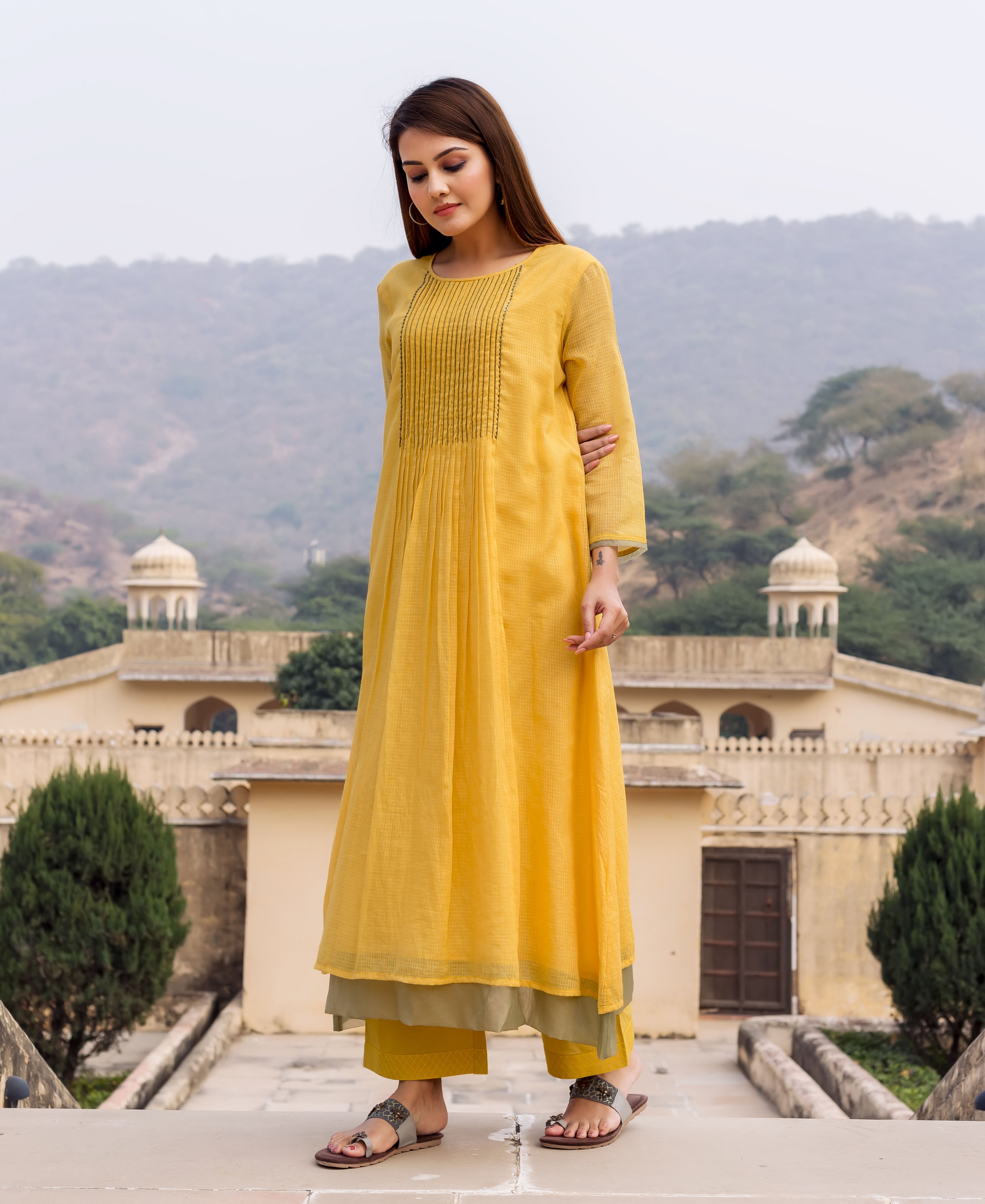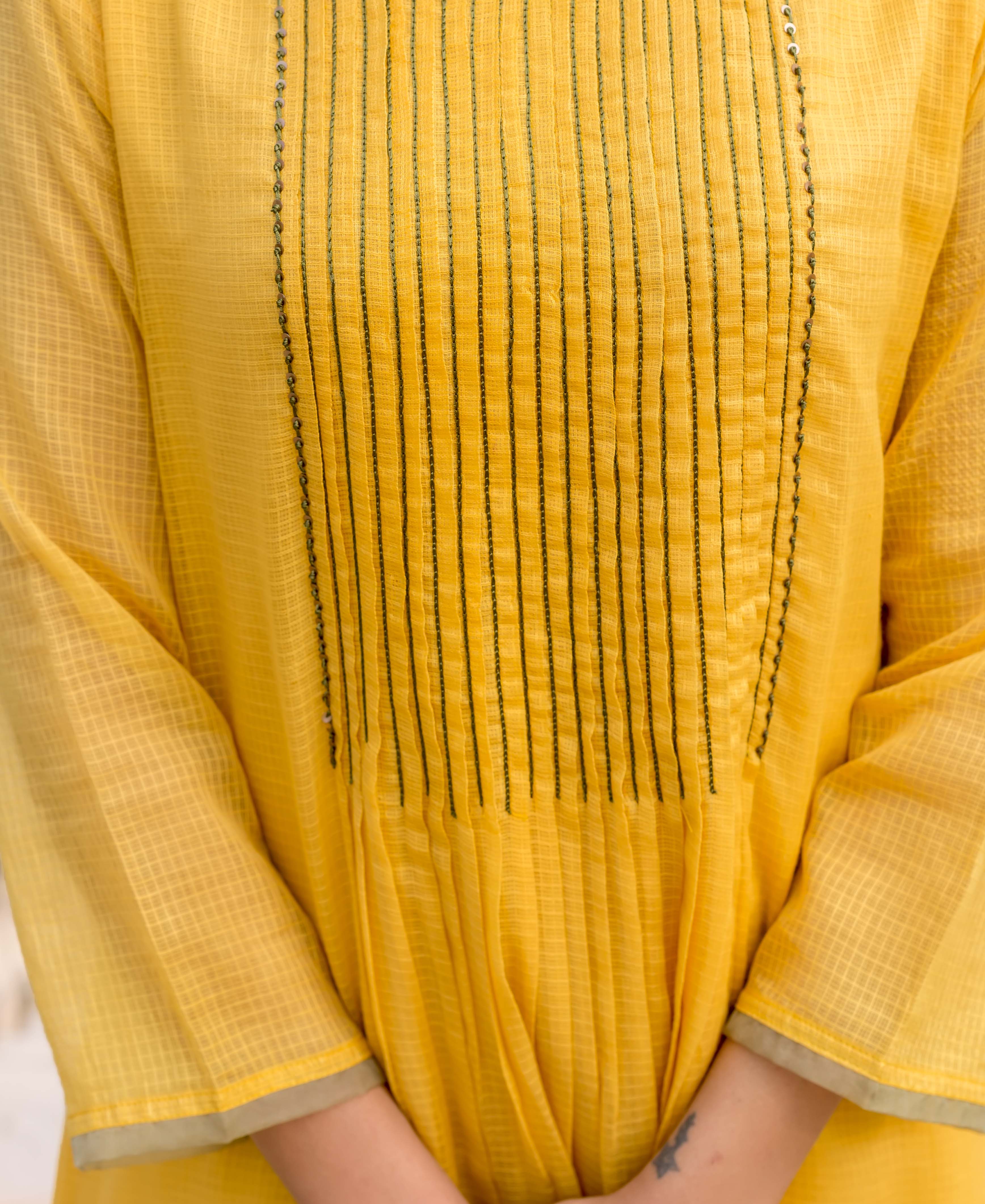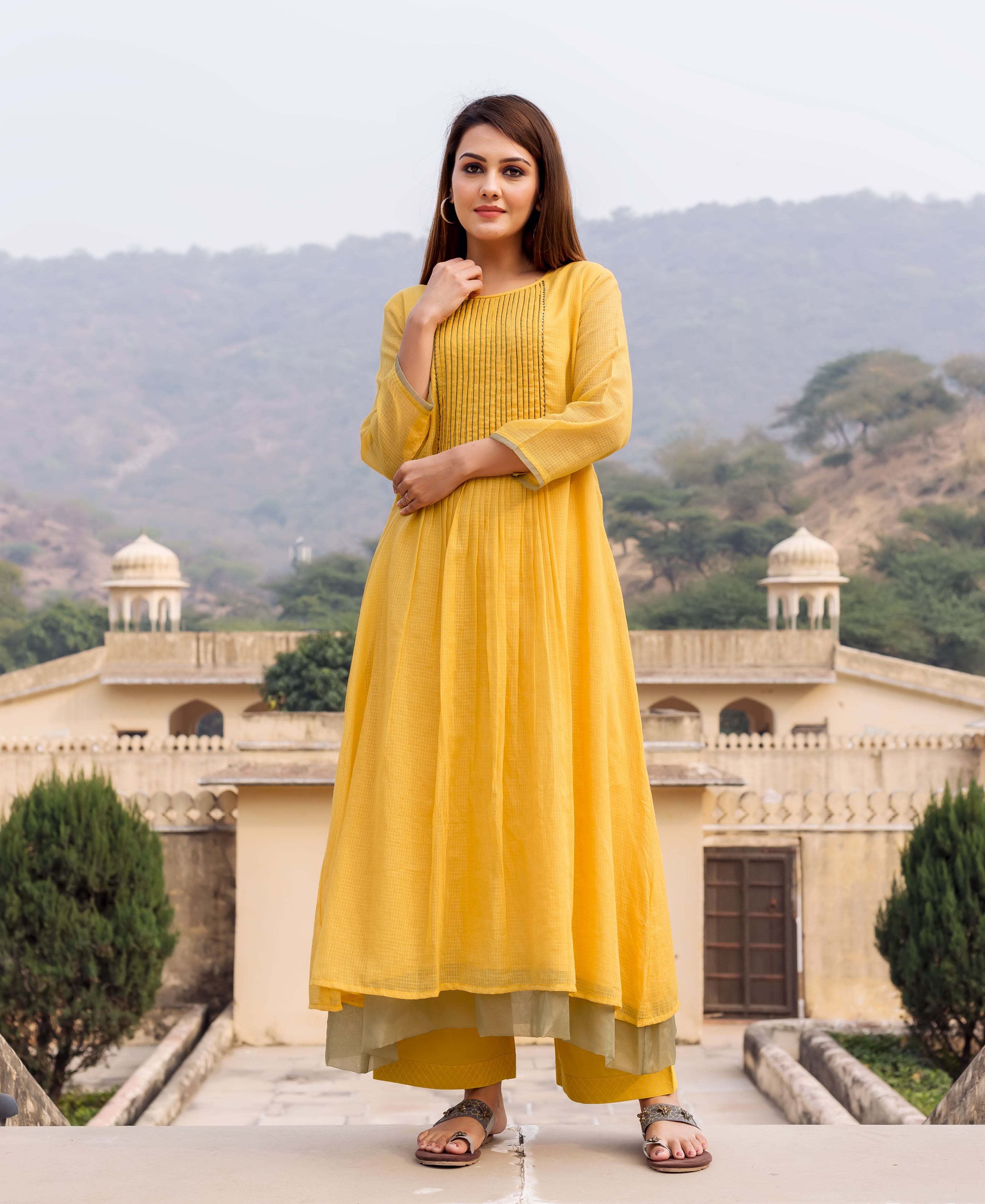 Kimono Collar Front Pleated Anarkali Style Kurta