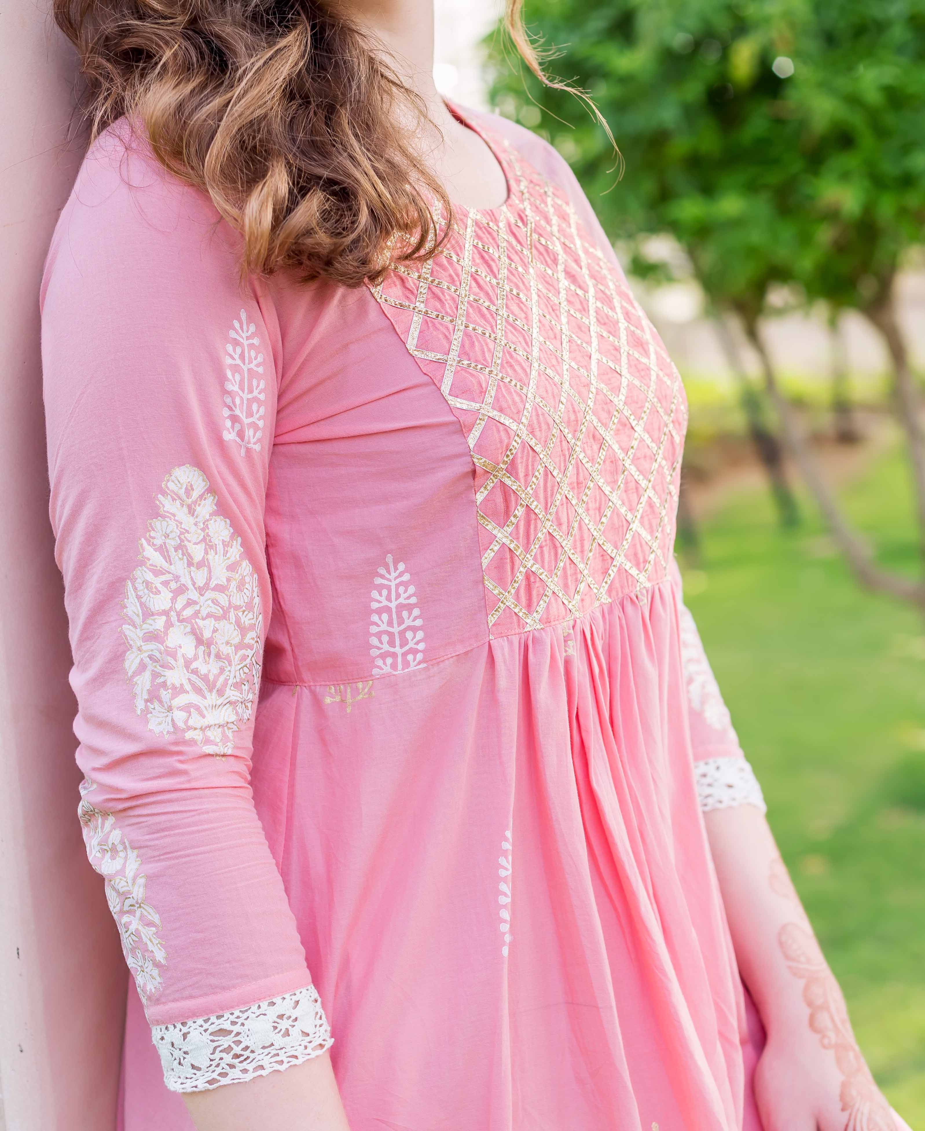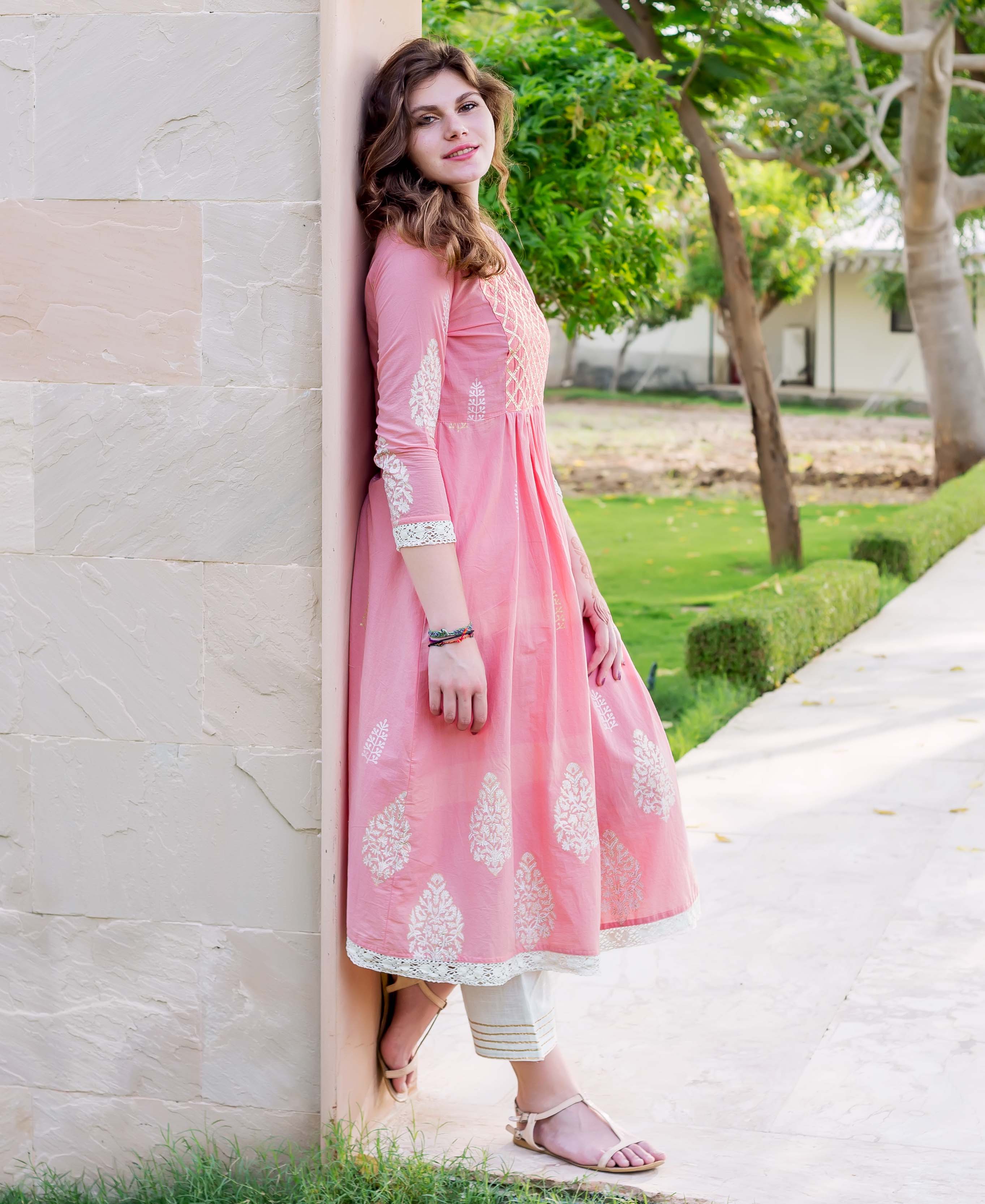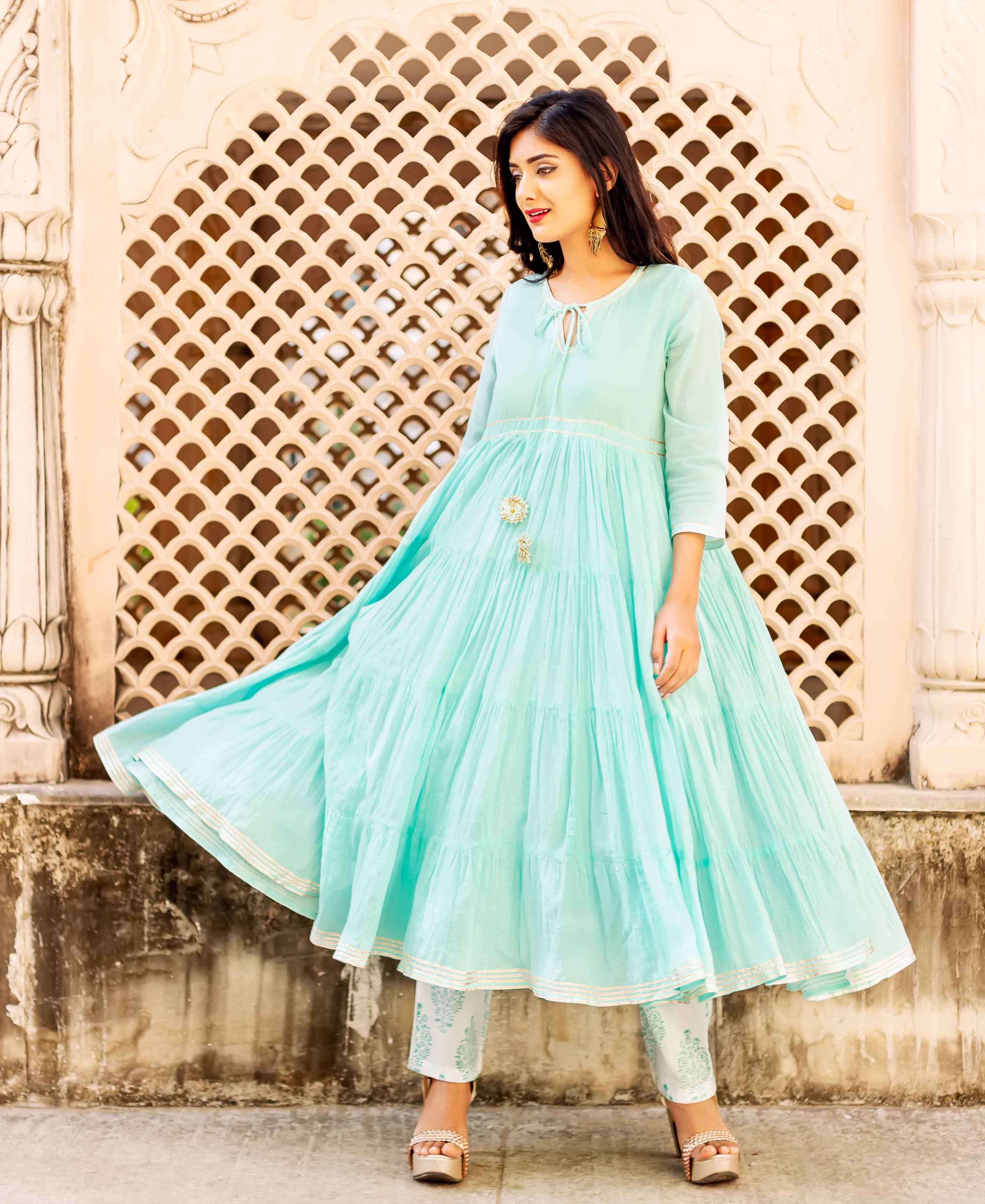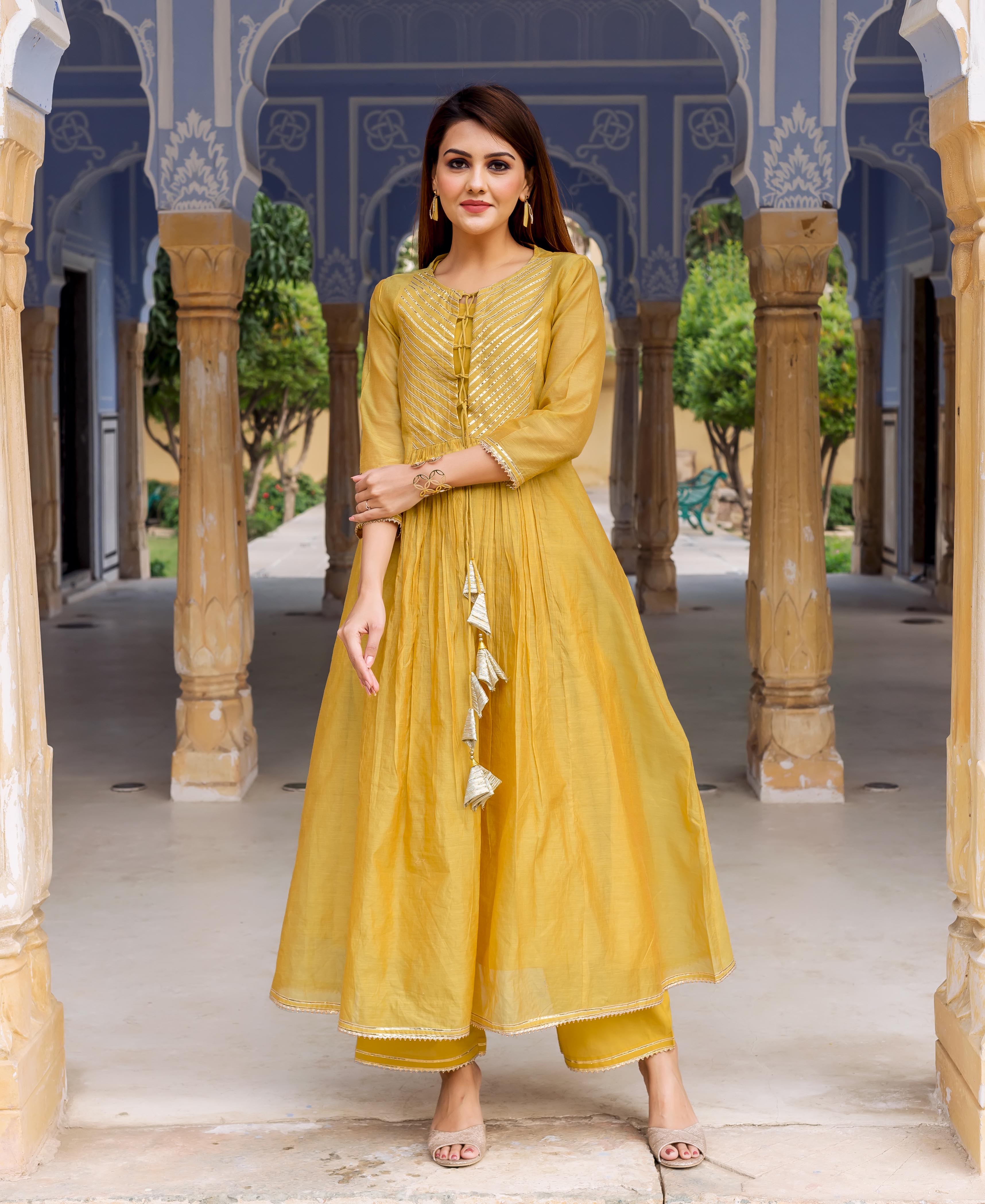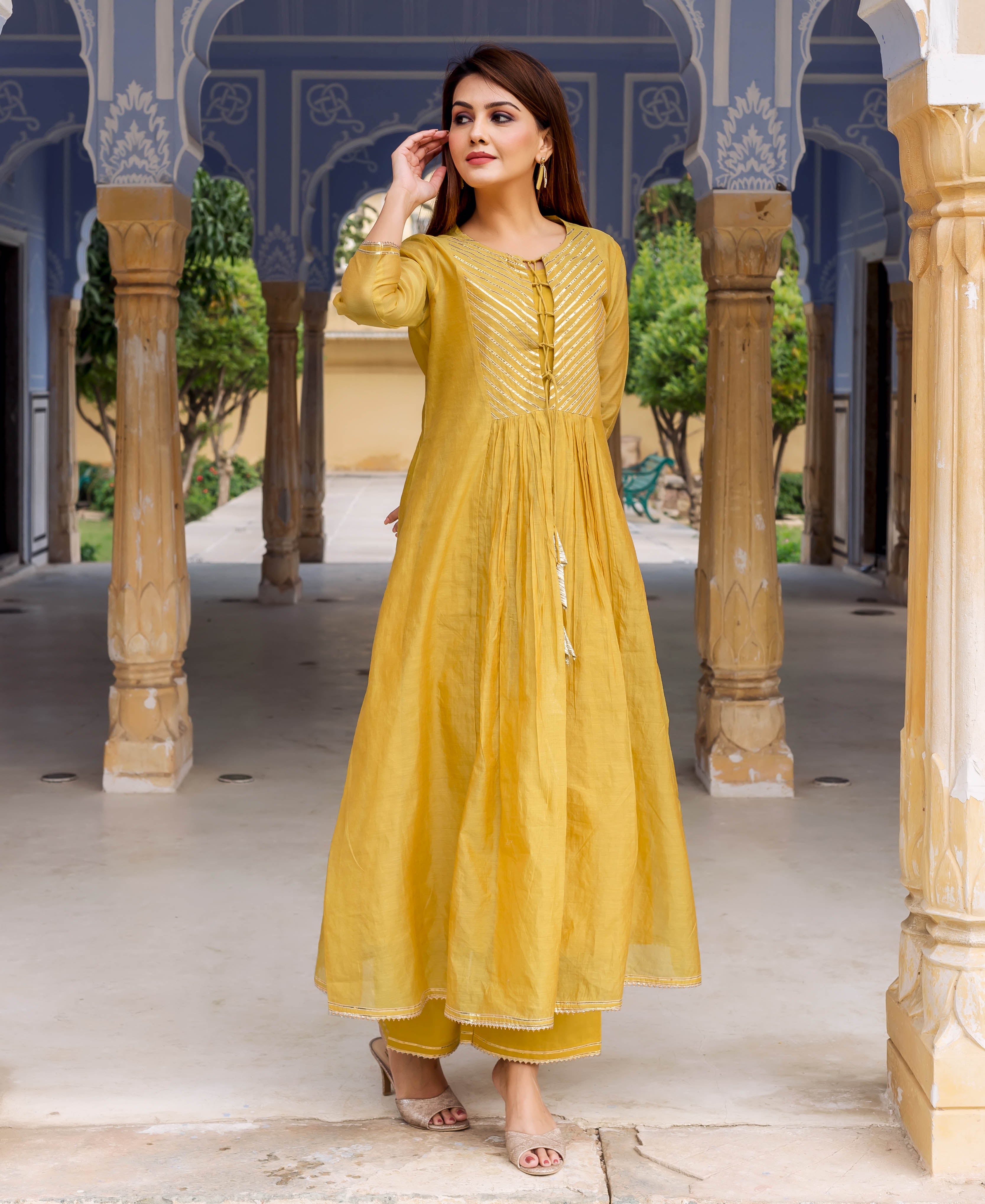 Kimono Collar Front Pleated Anarkali Style Kurta