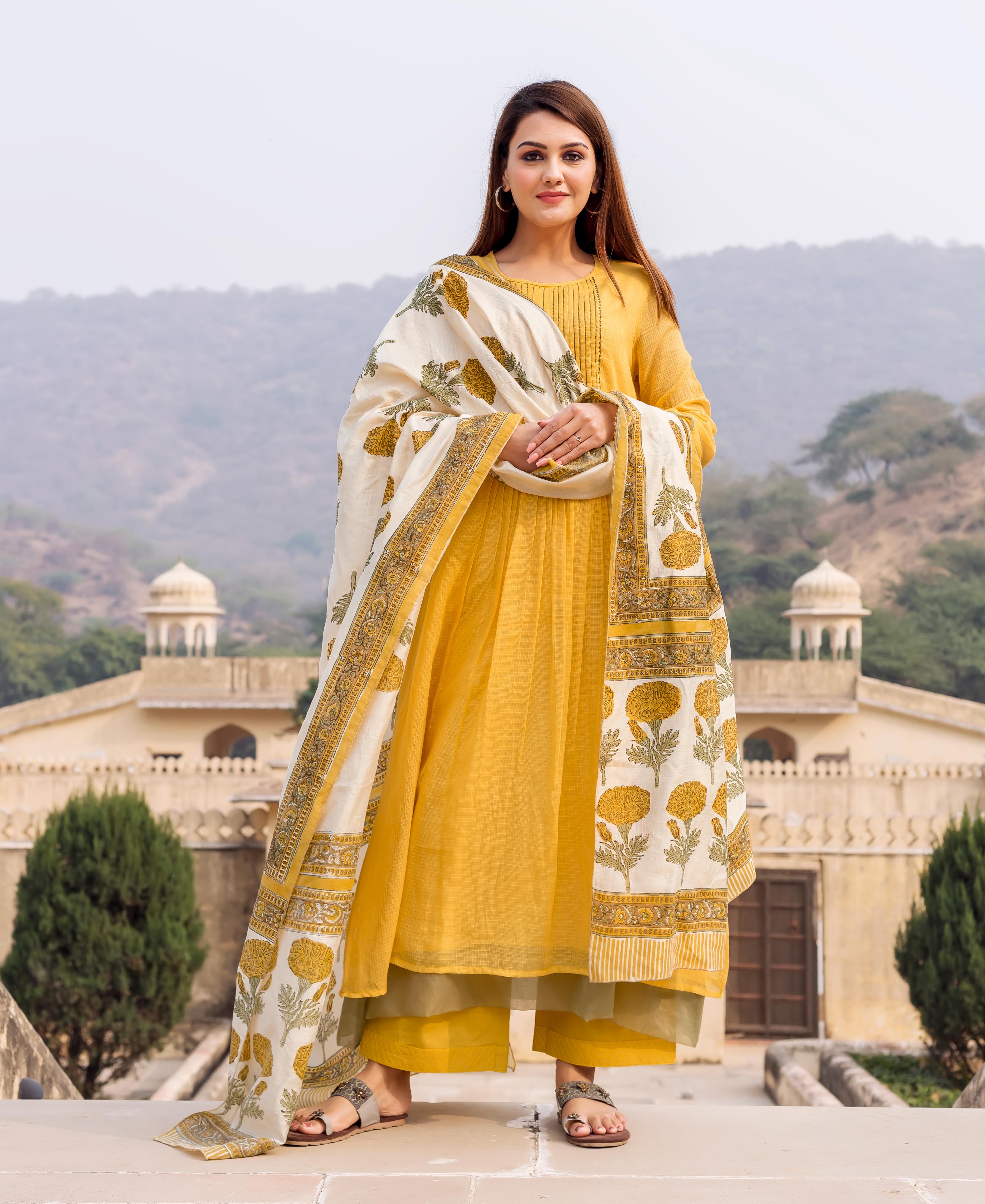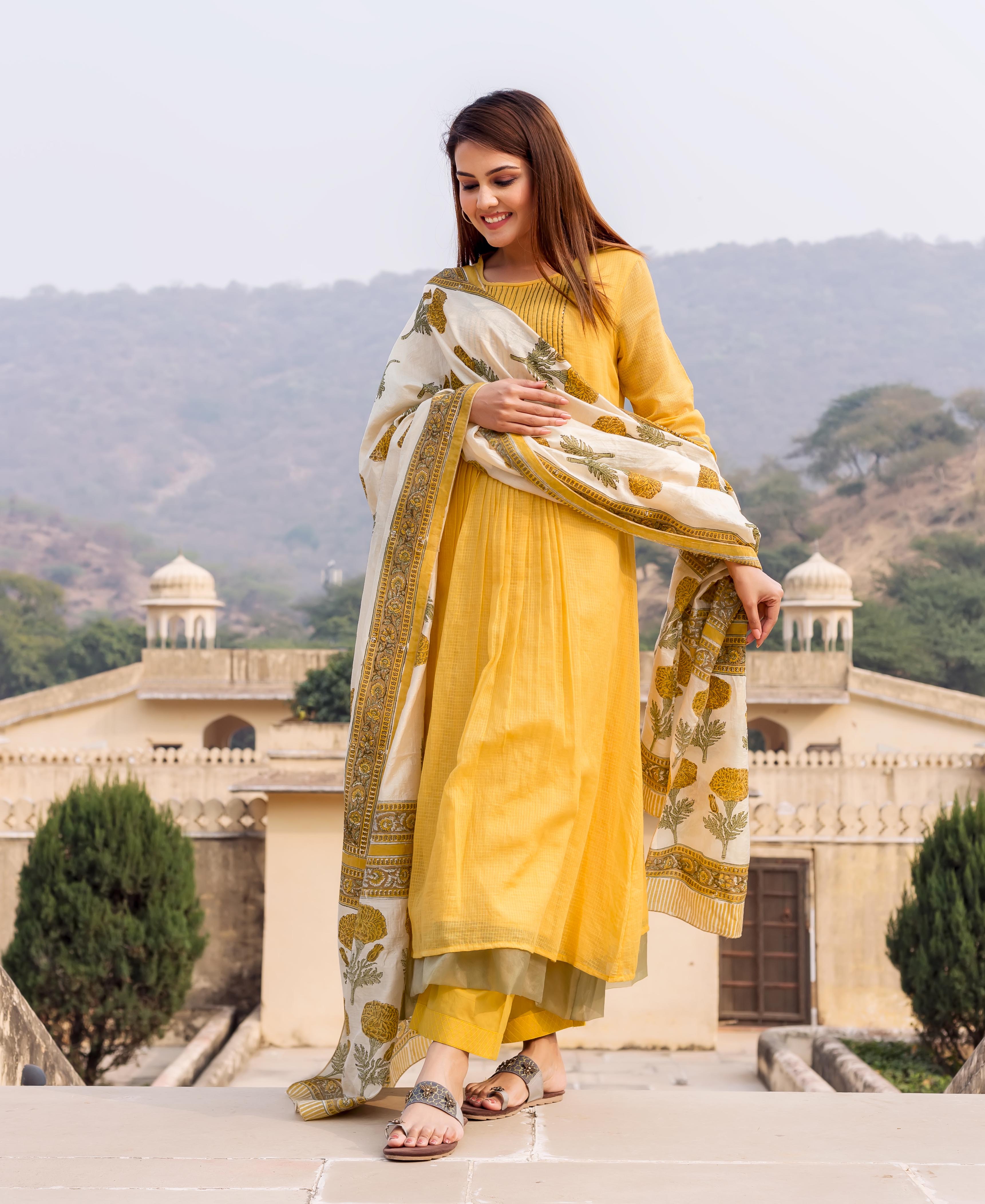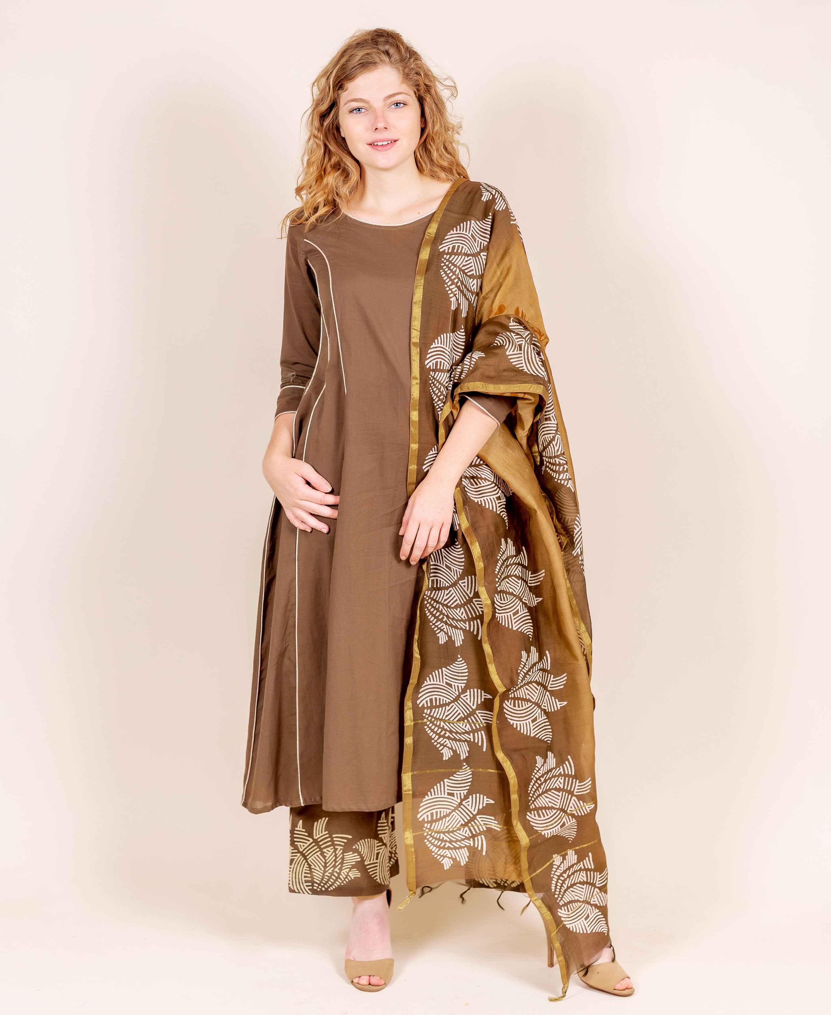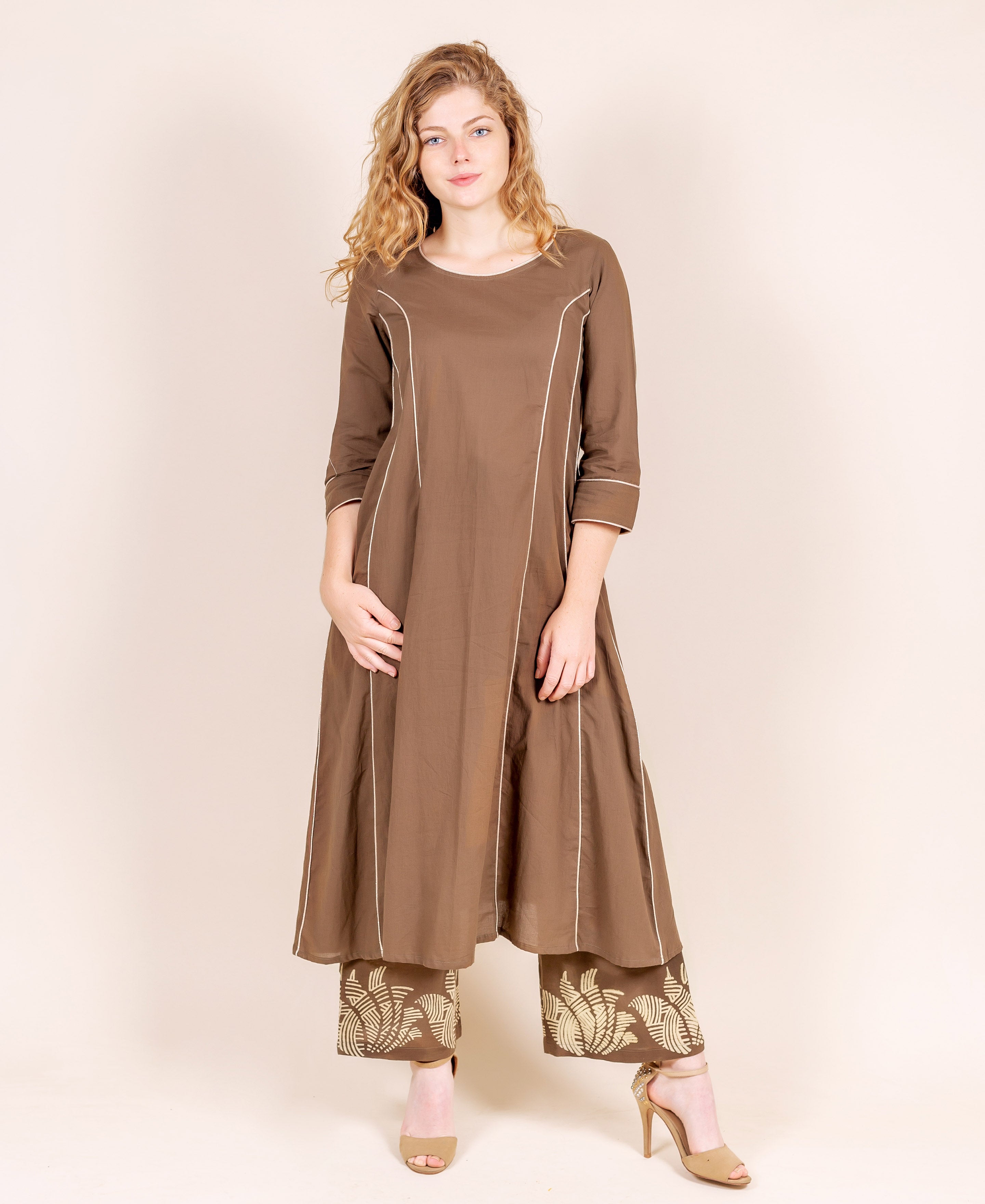 Kimono Collar Front Pleated Anarkali Style Kurta