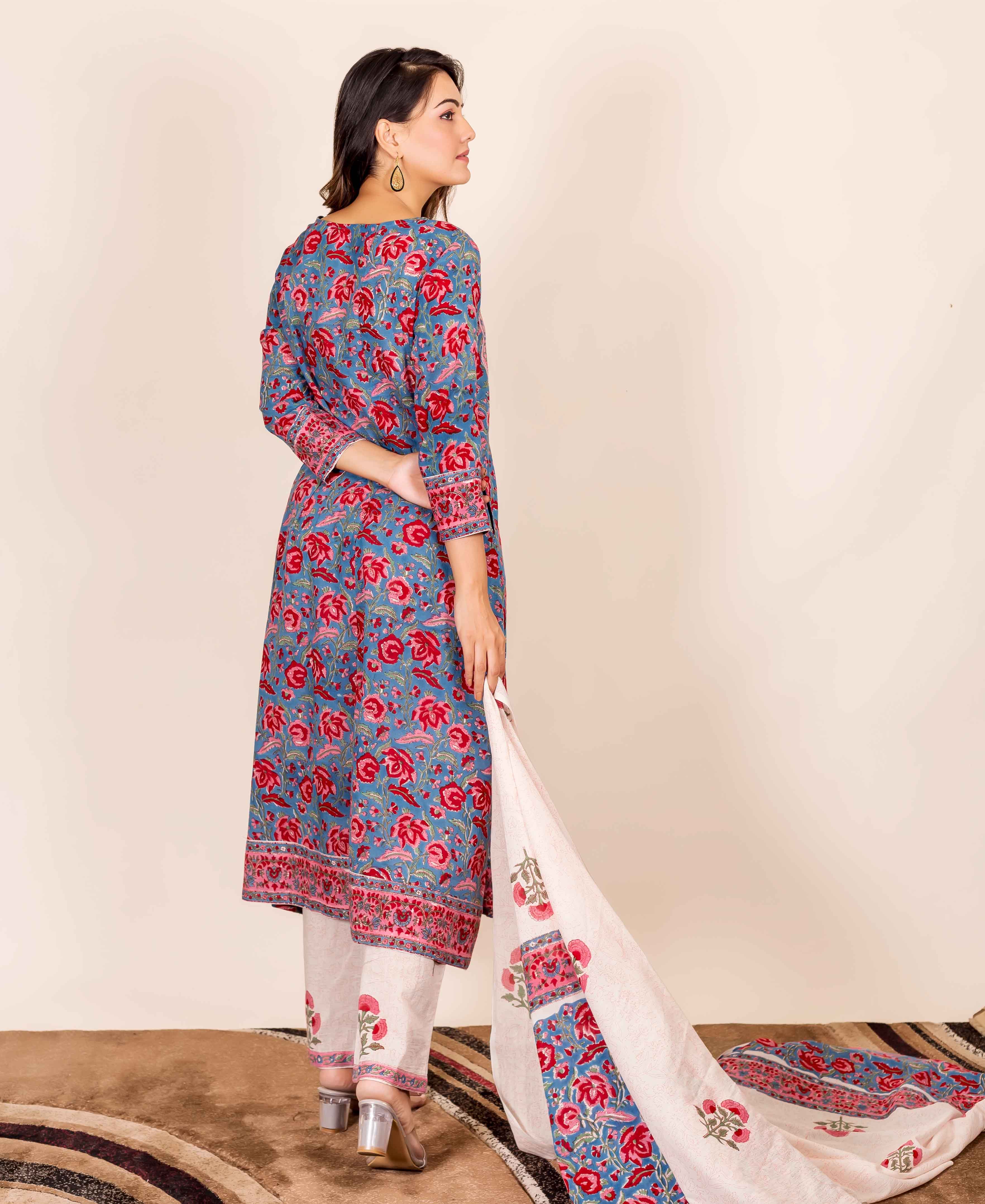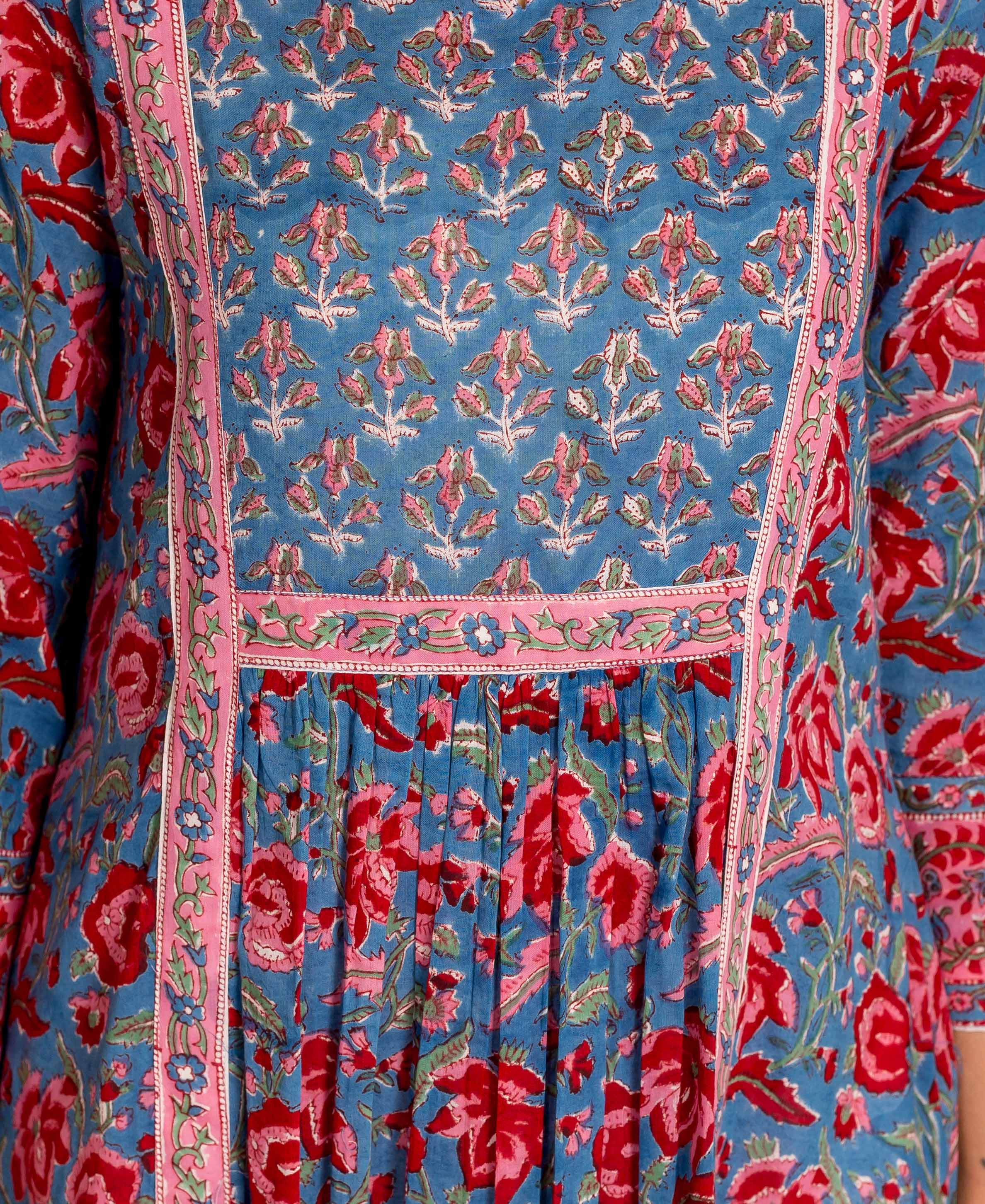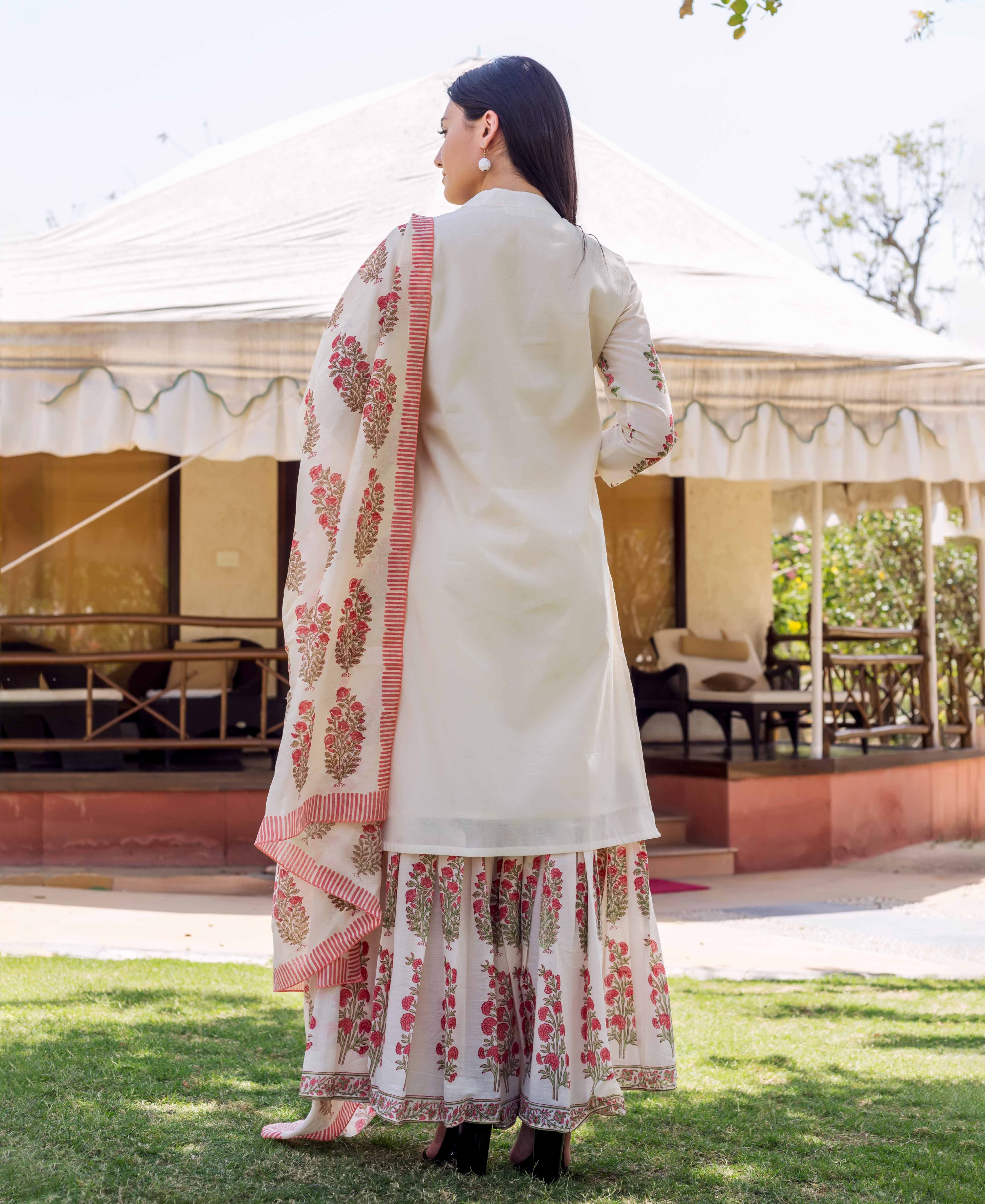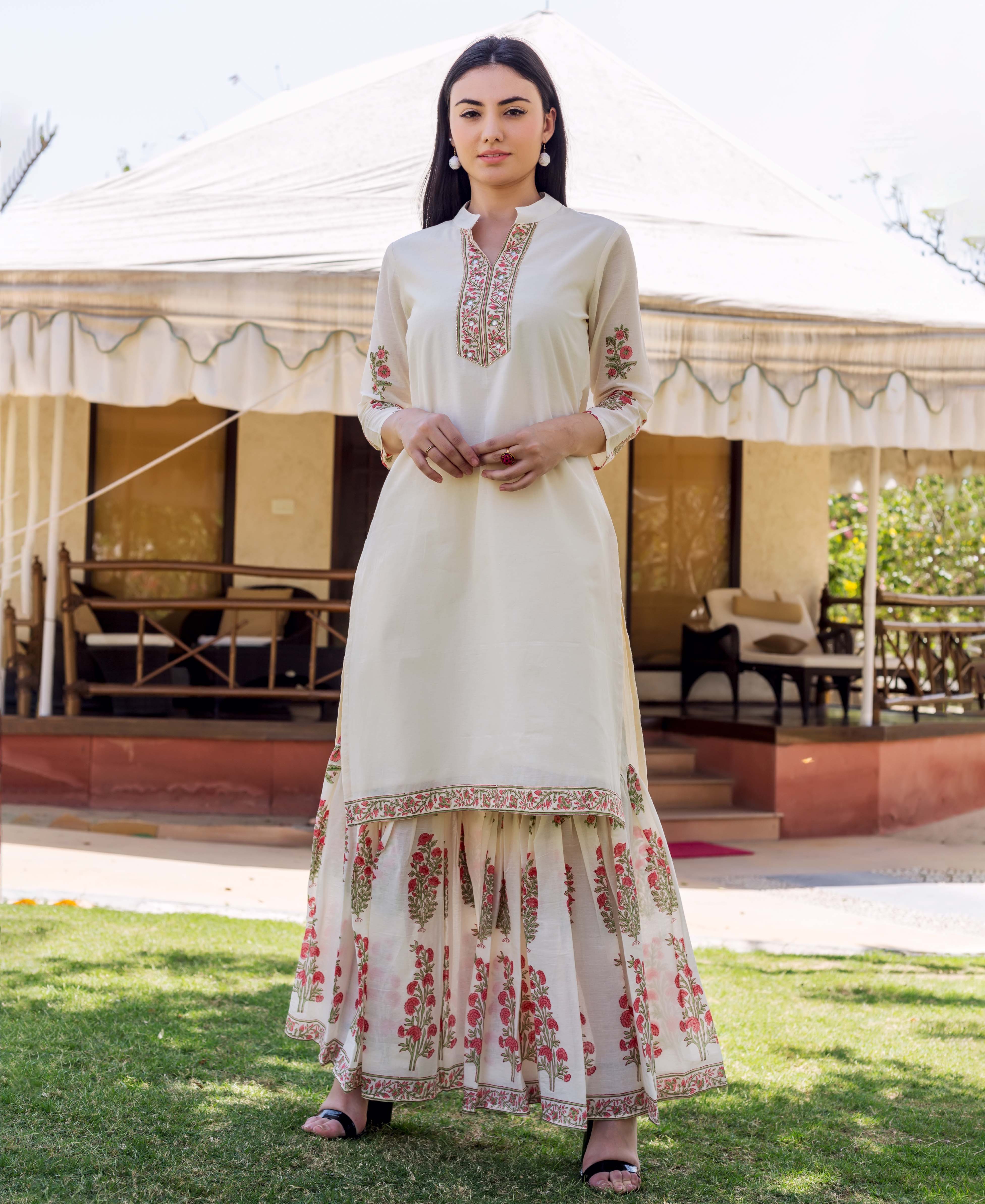 Turkish Blue Hand Block Printed Kurta and Sharara