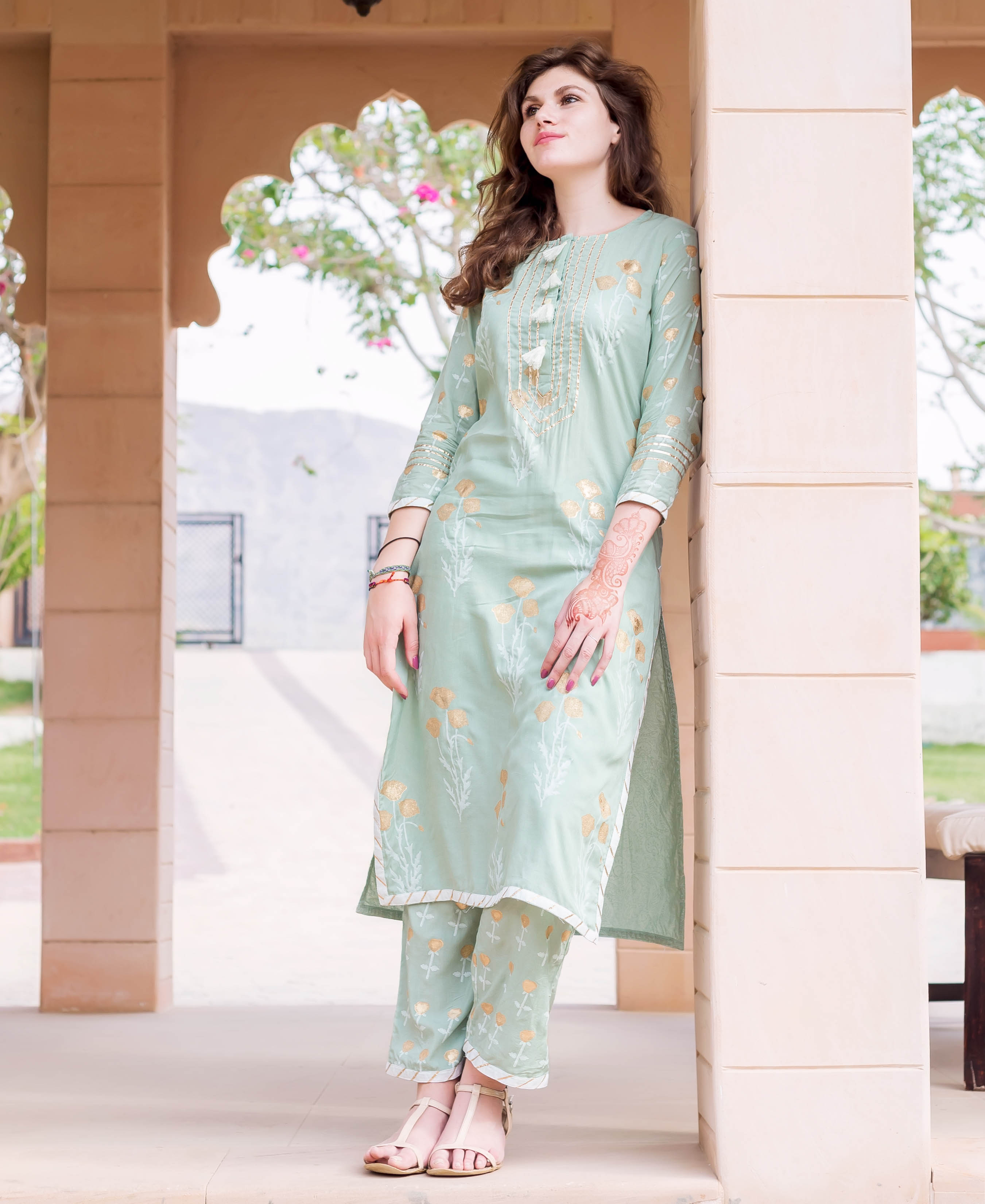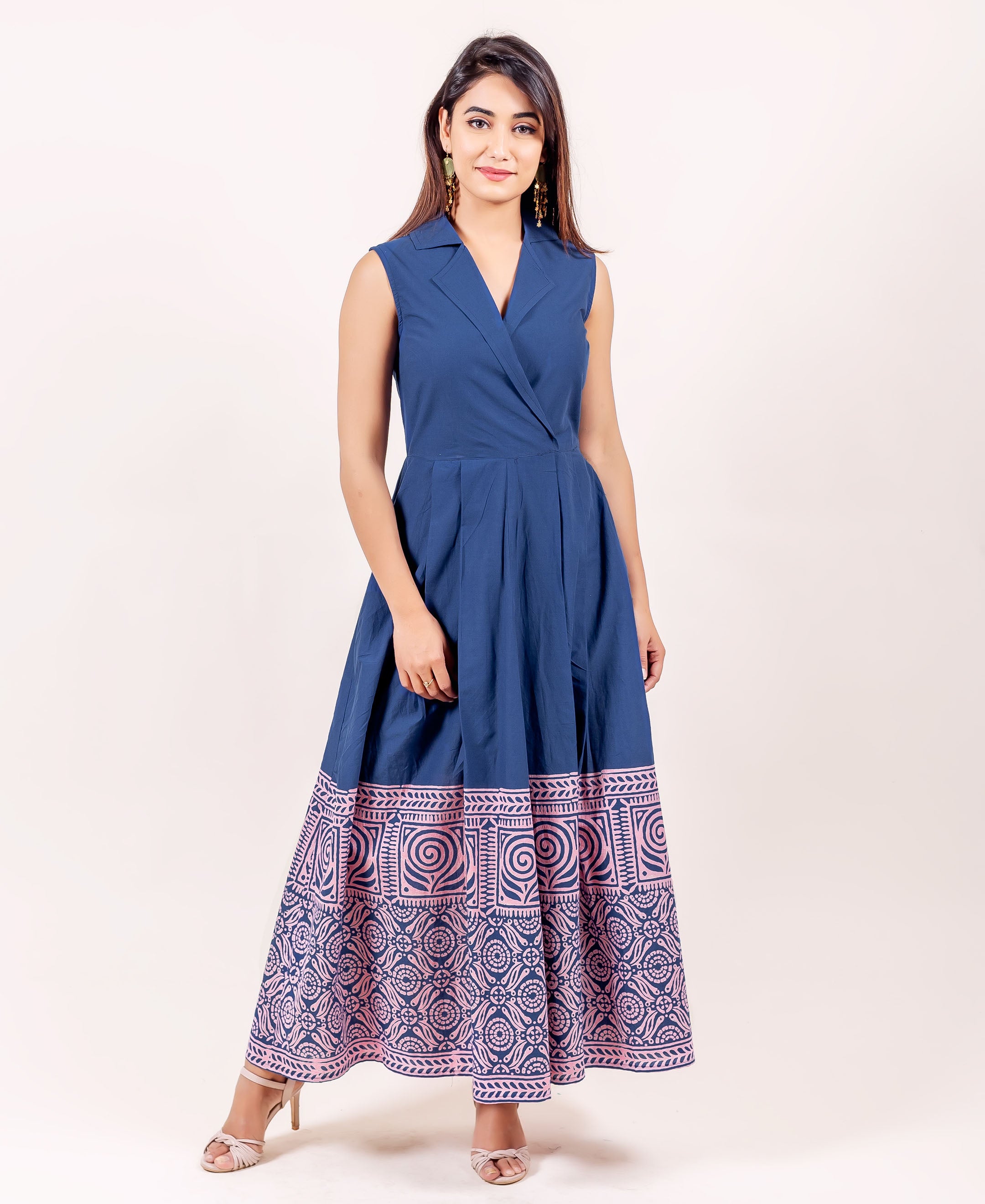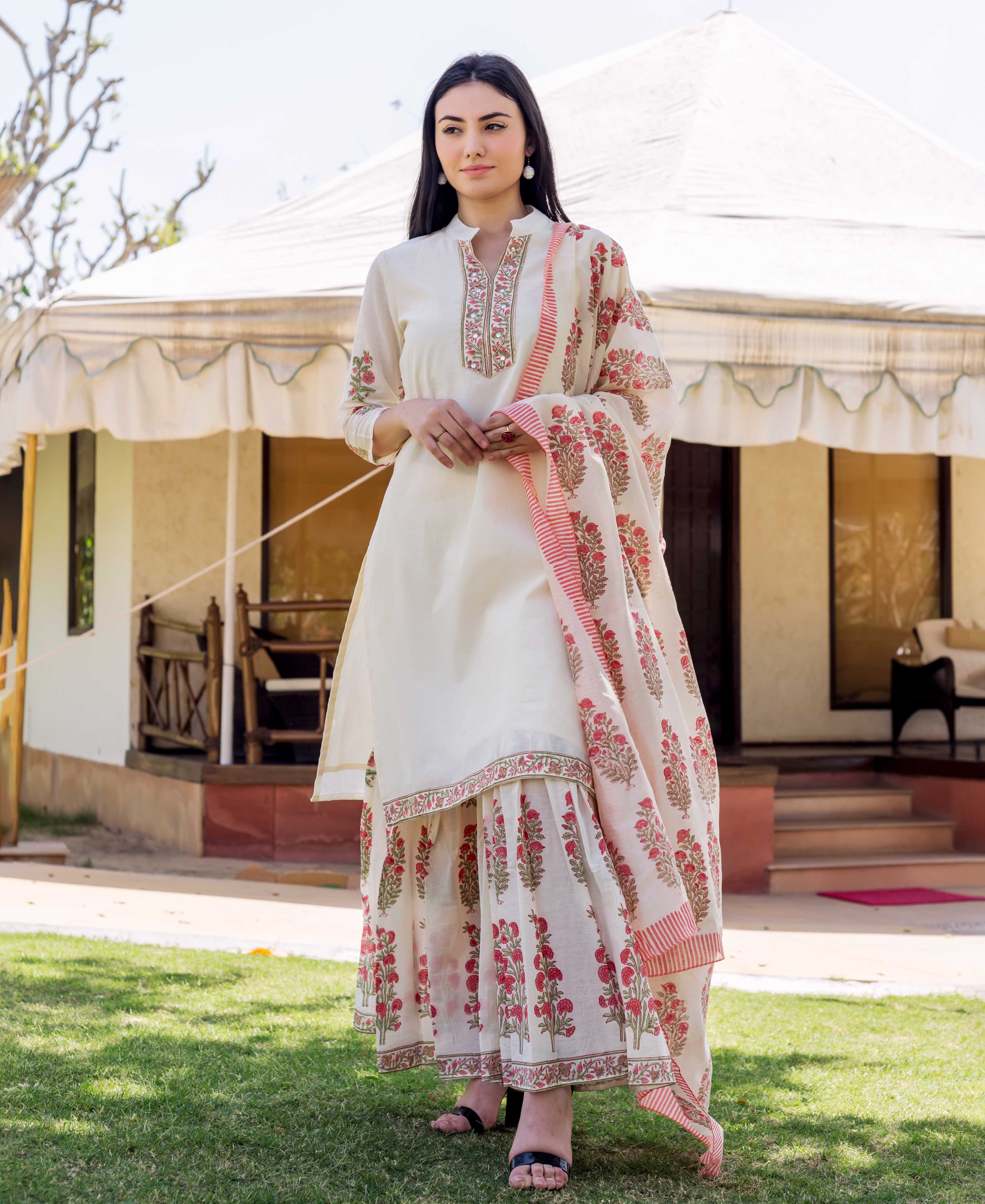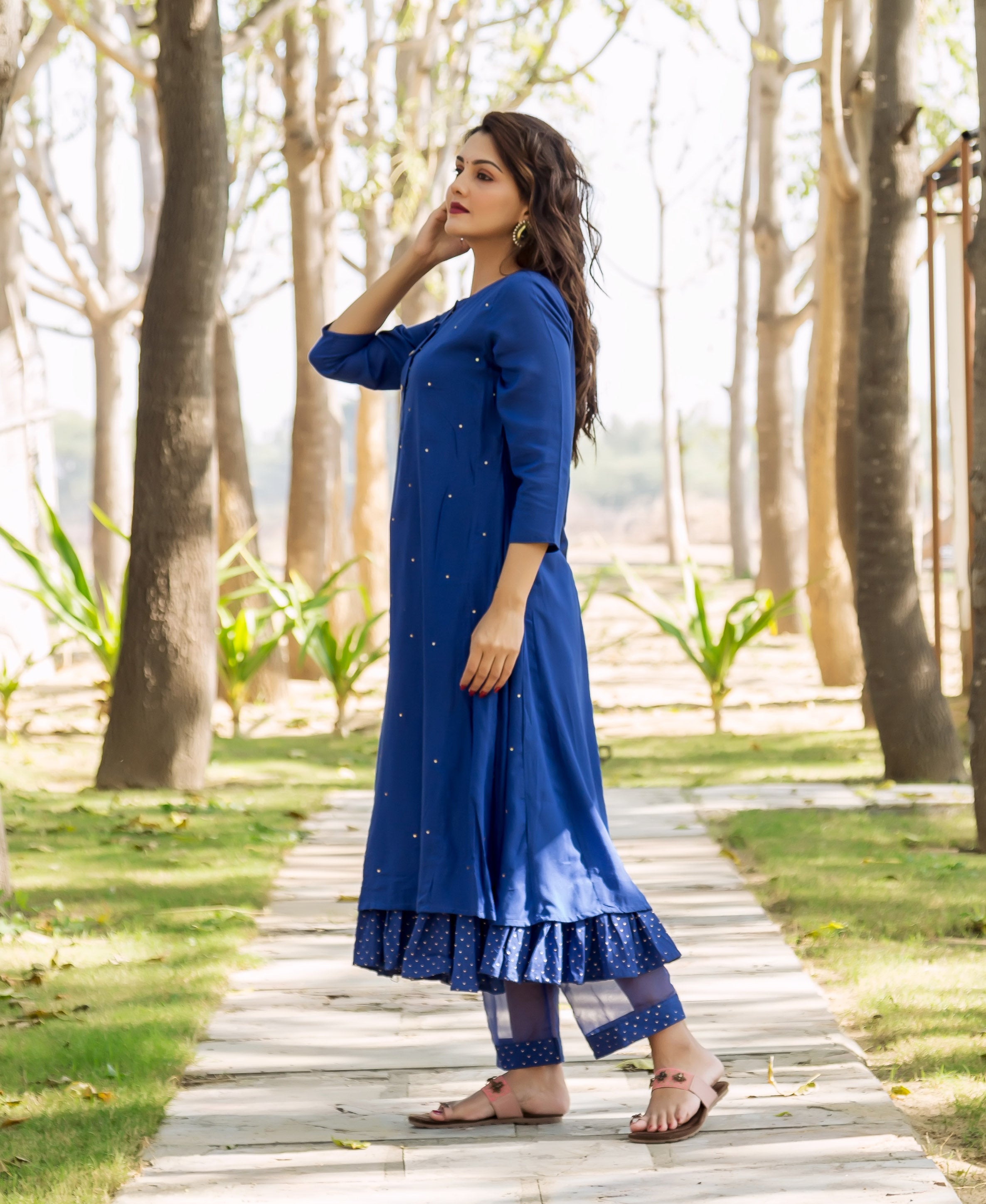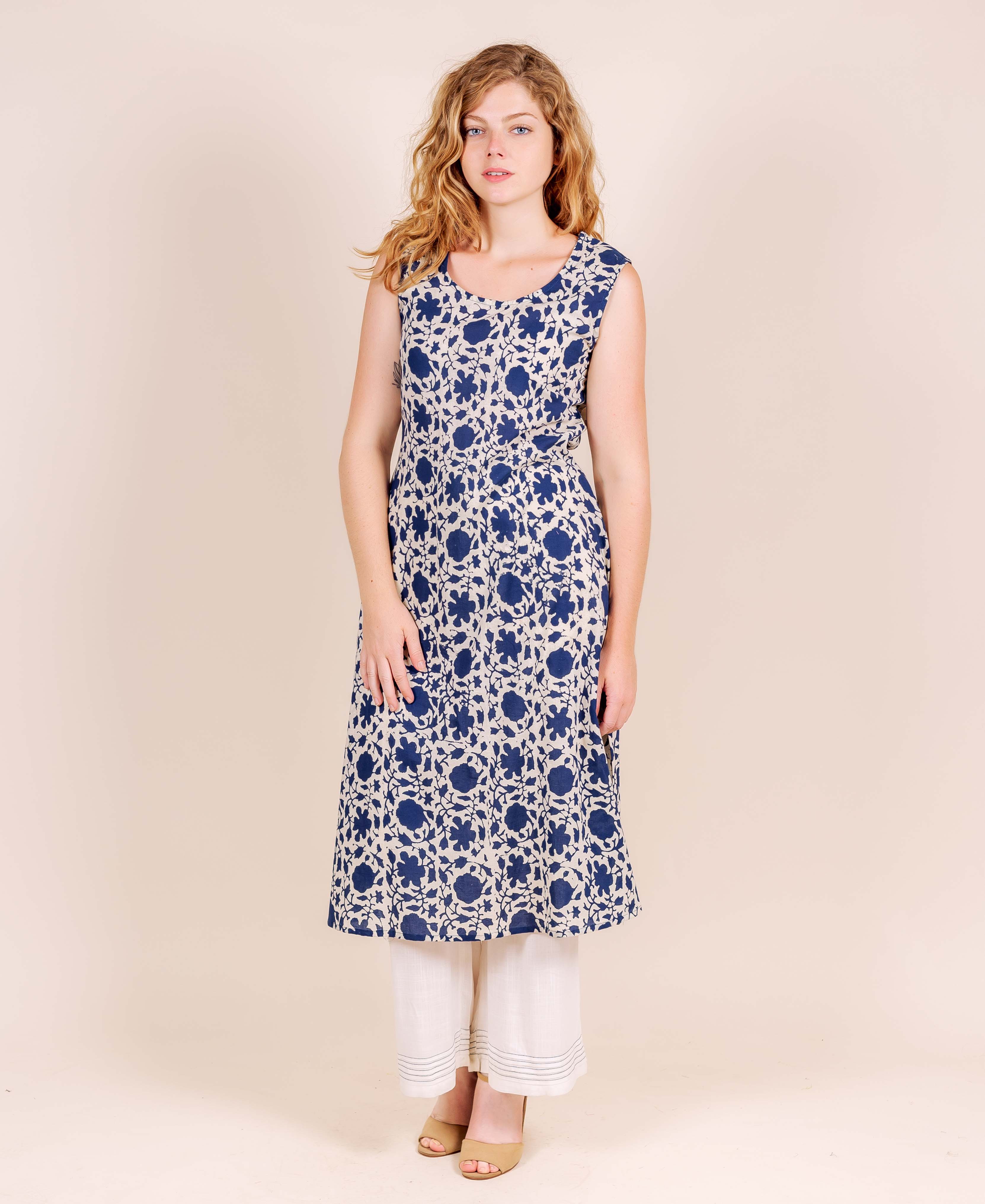 Turkish Blue Hand Block Printed Kurta and Sharara