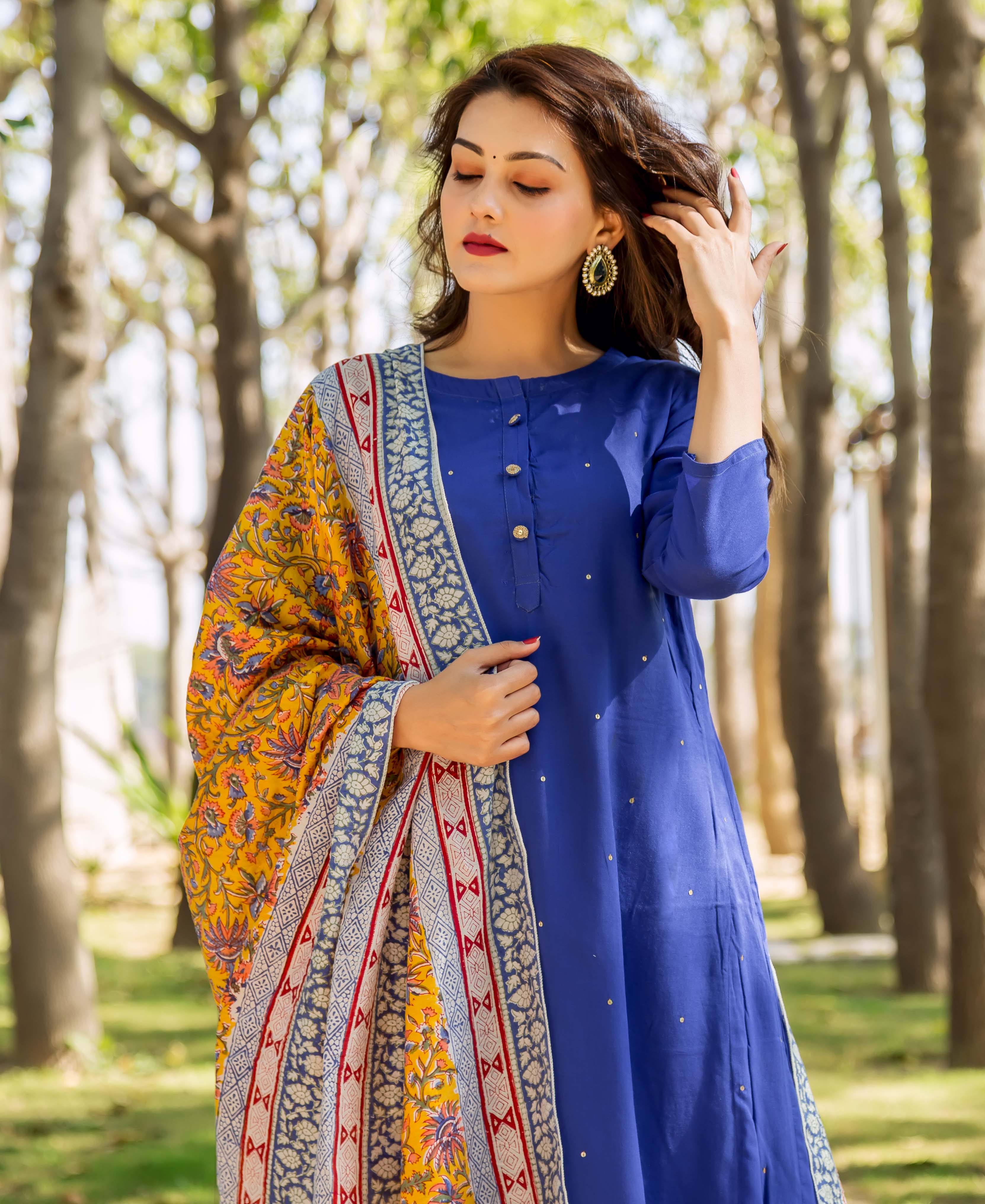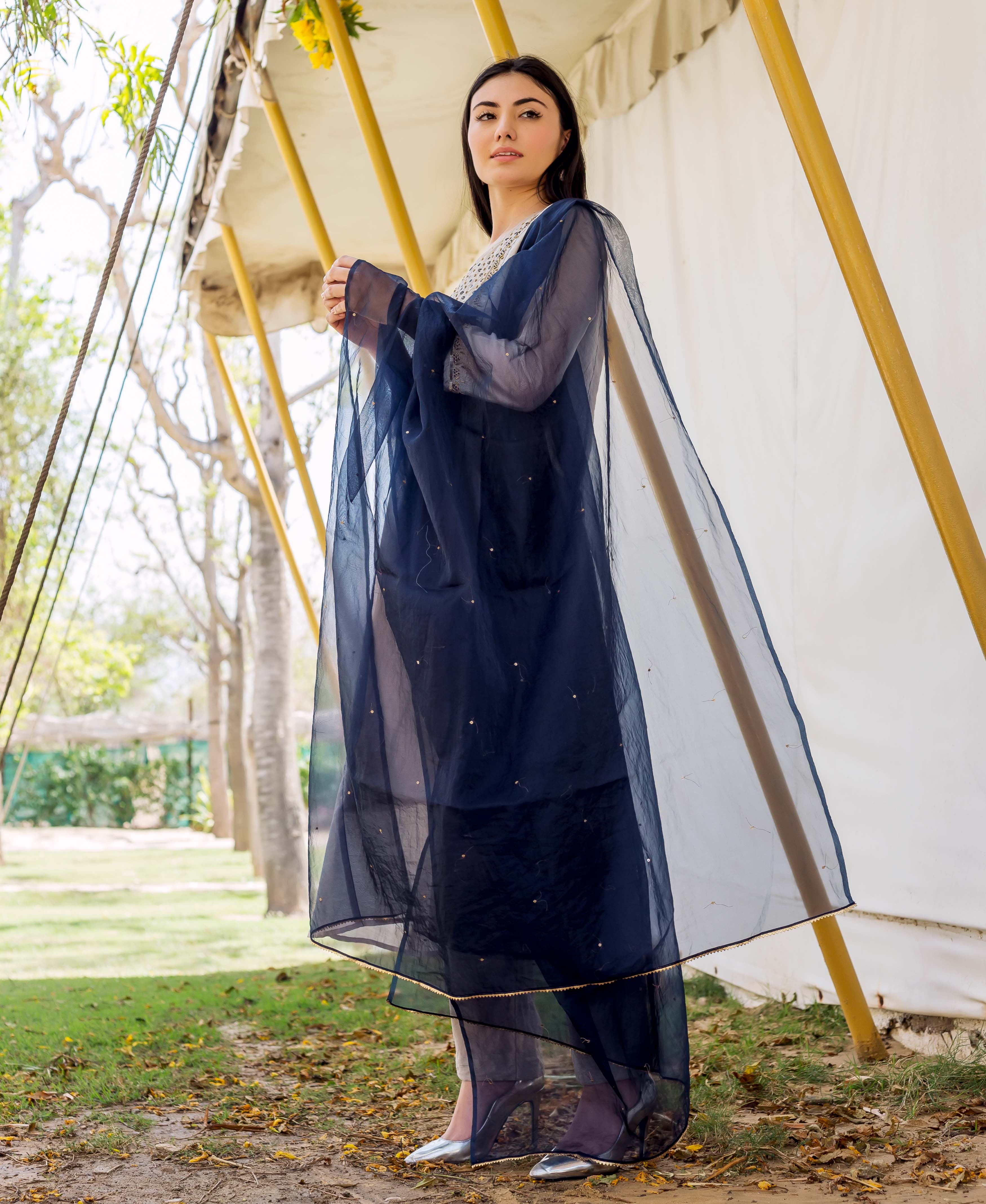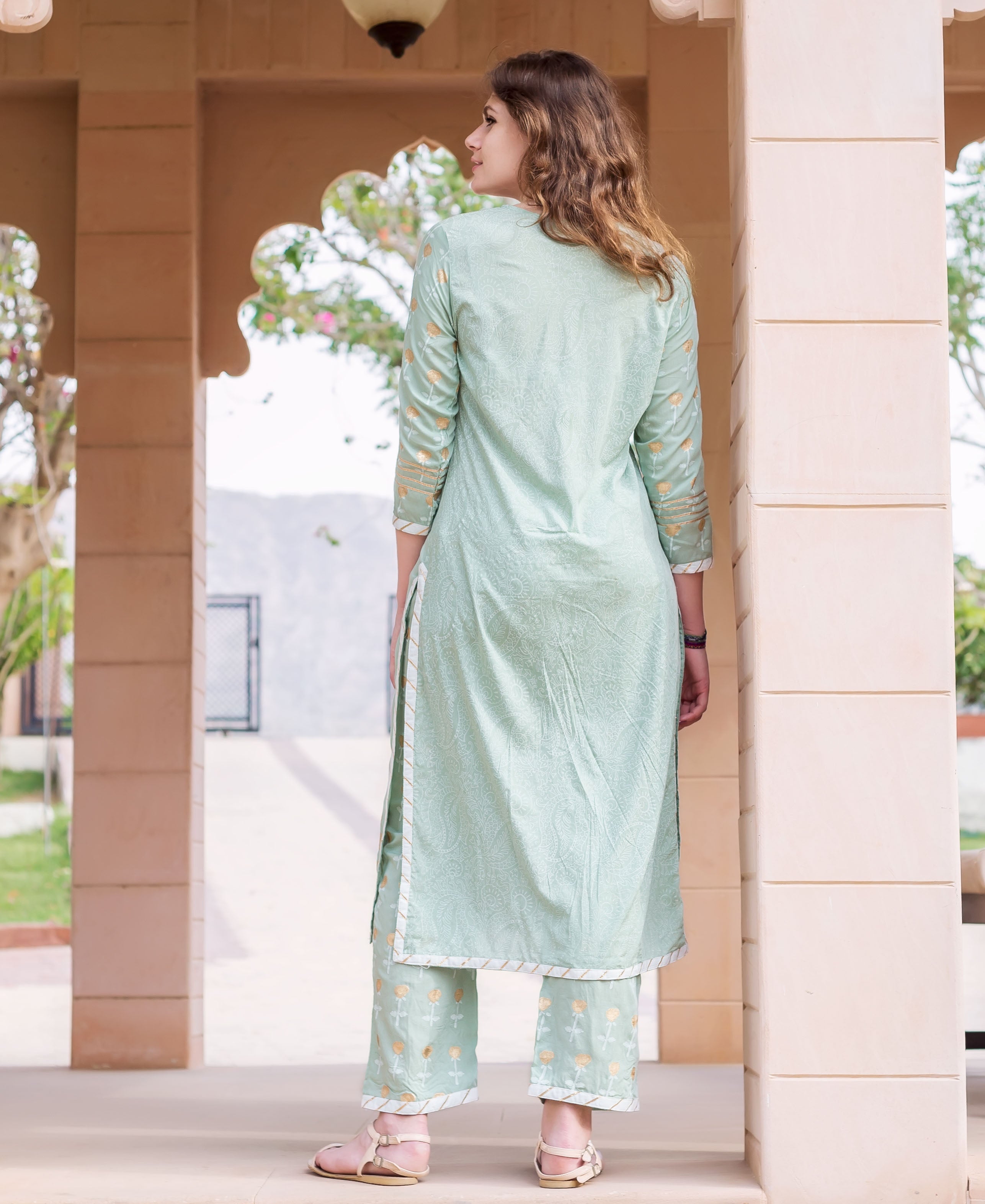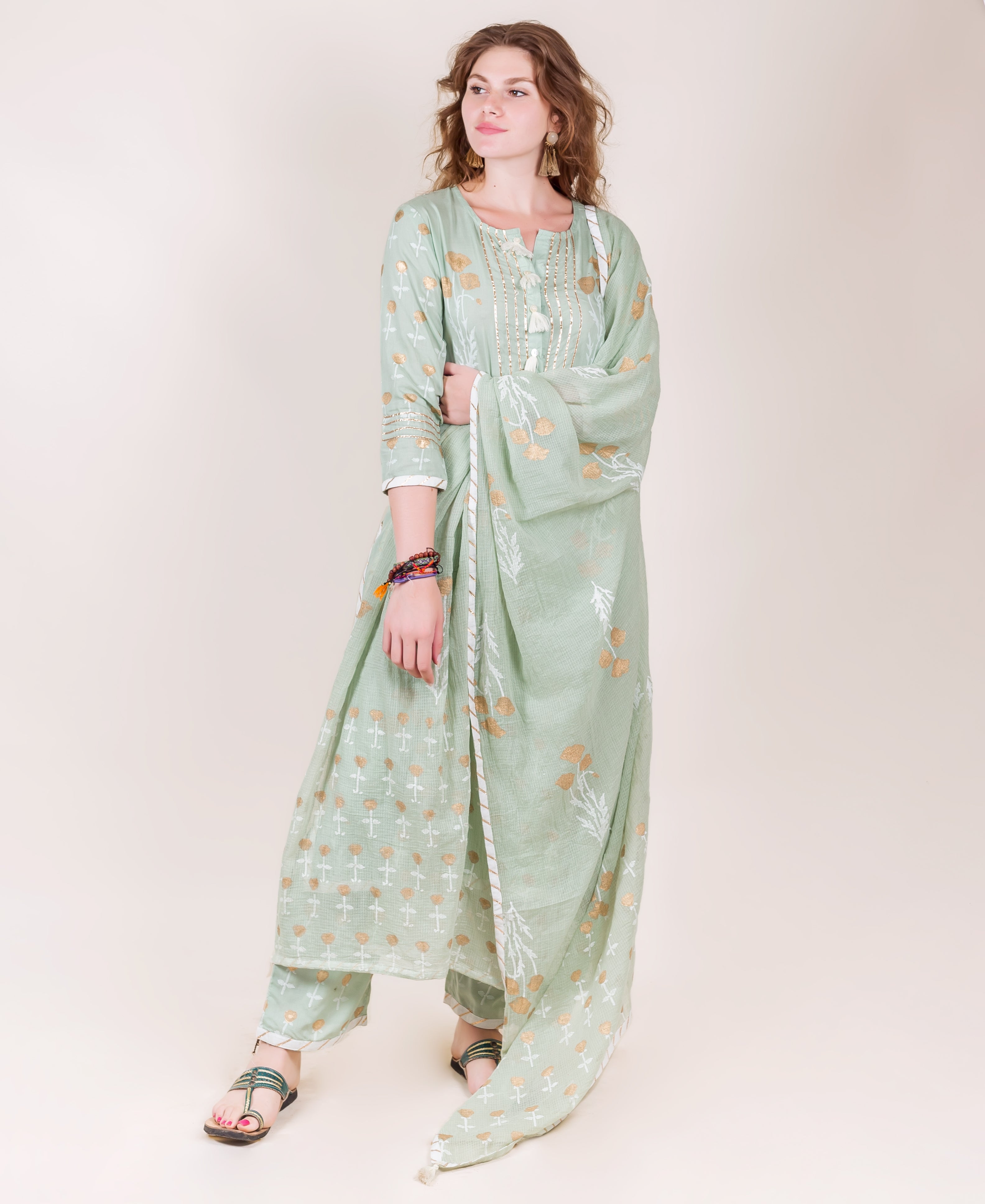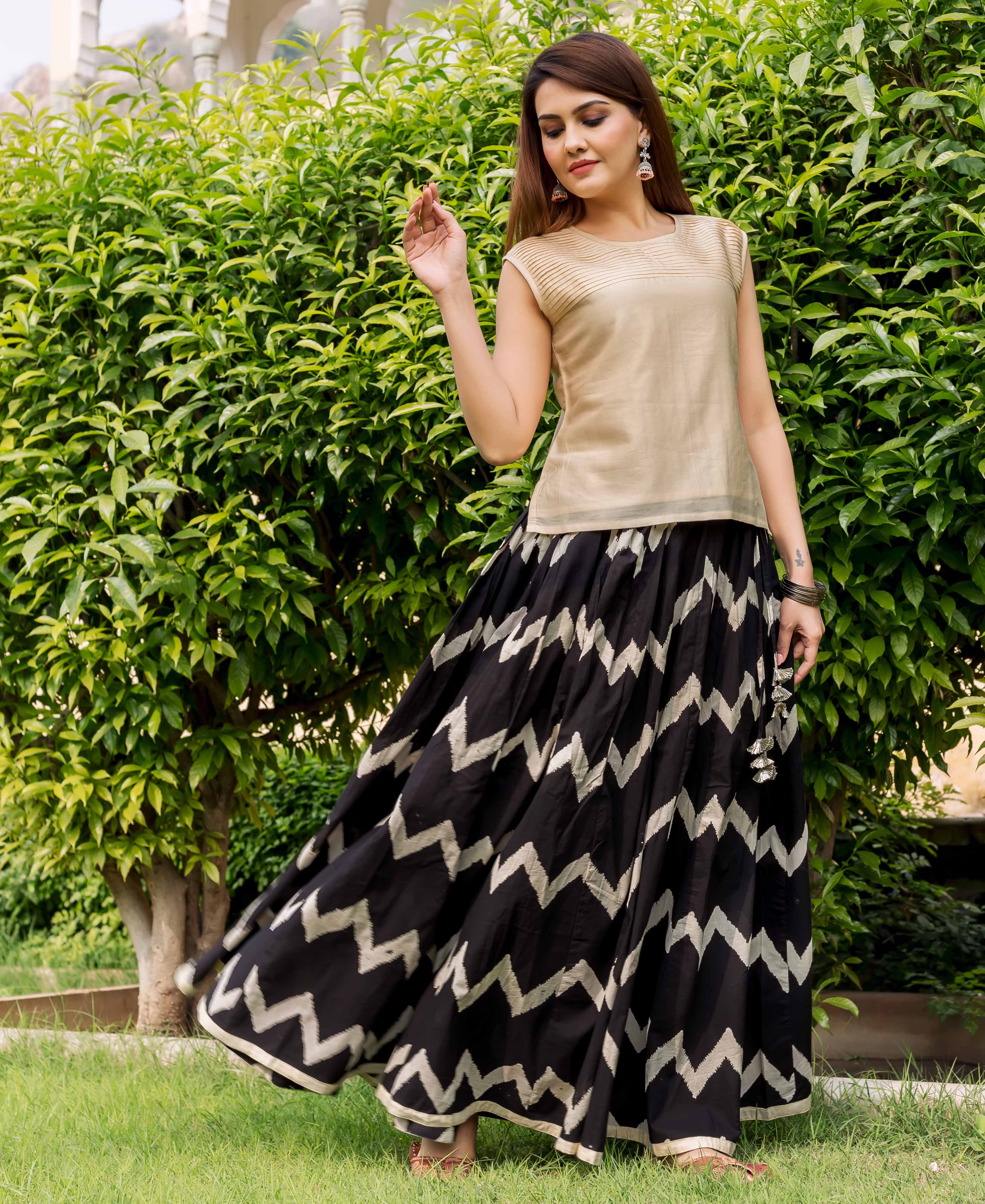 Turkish Blue Hand Block Printed Kurta and Sharara