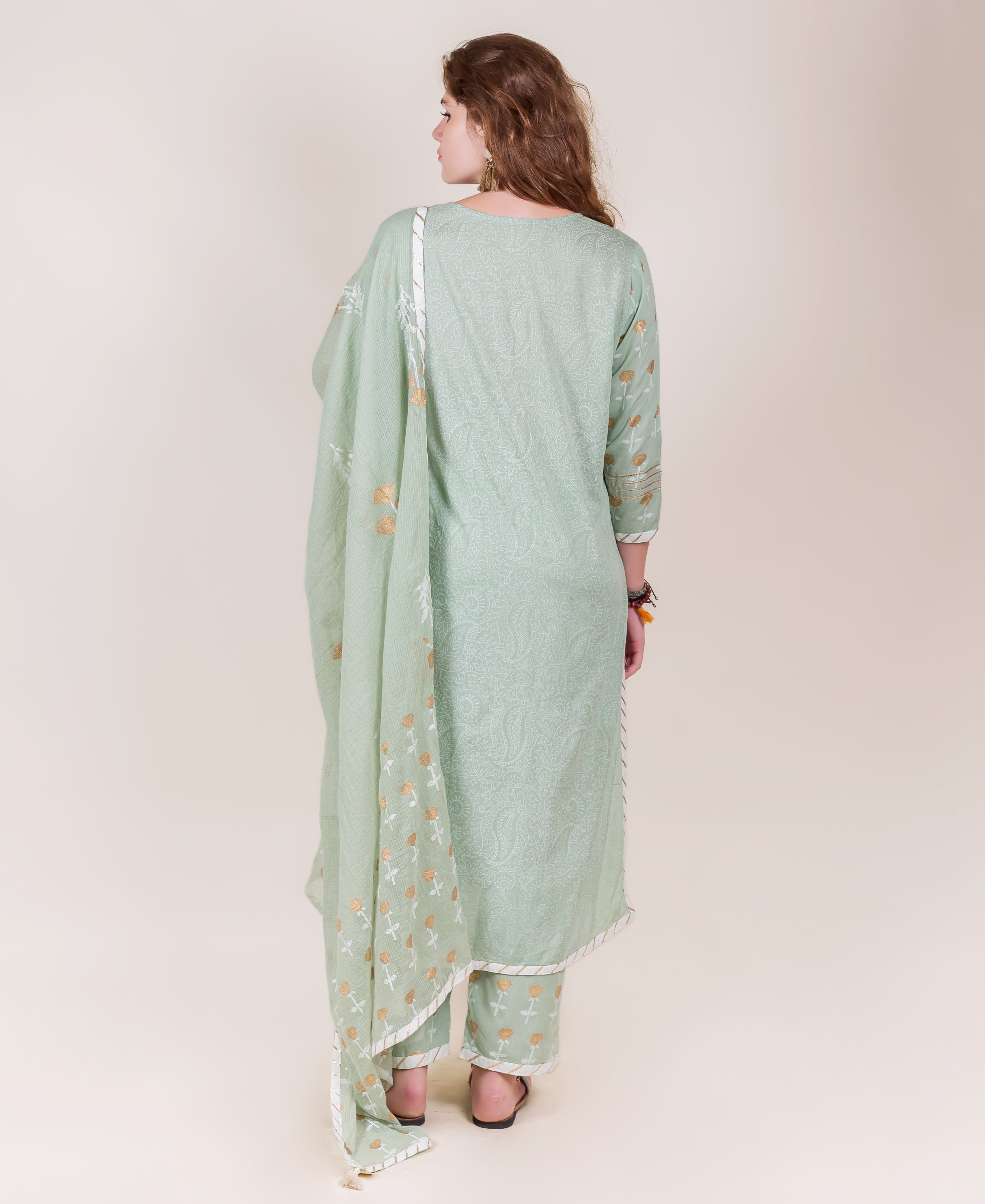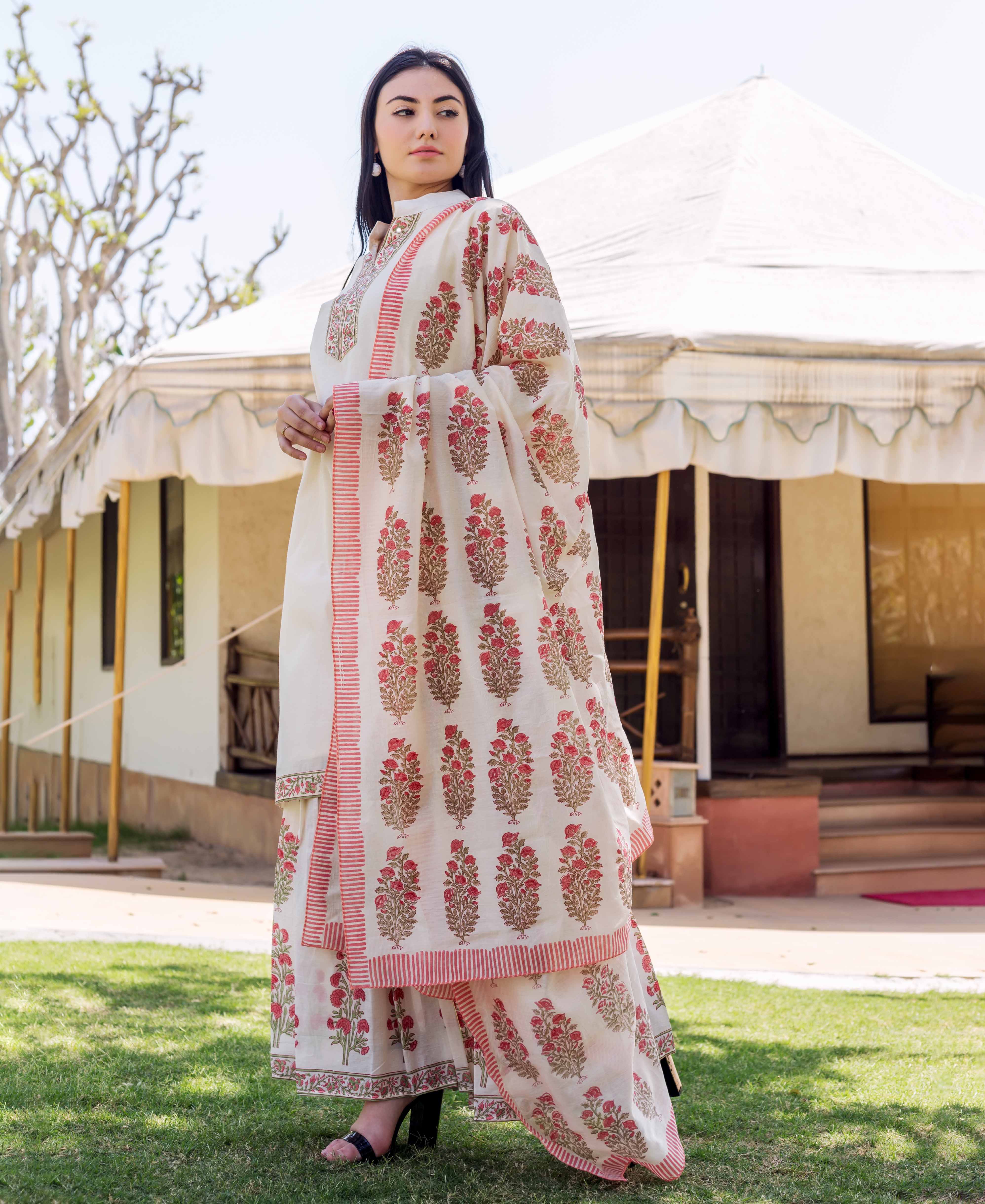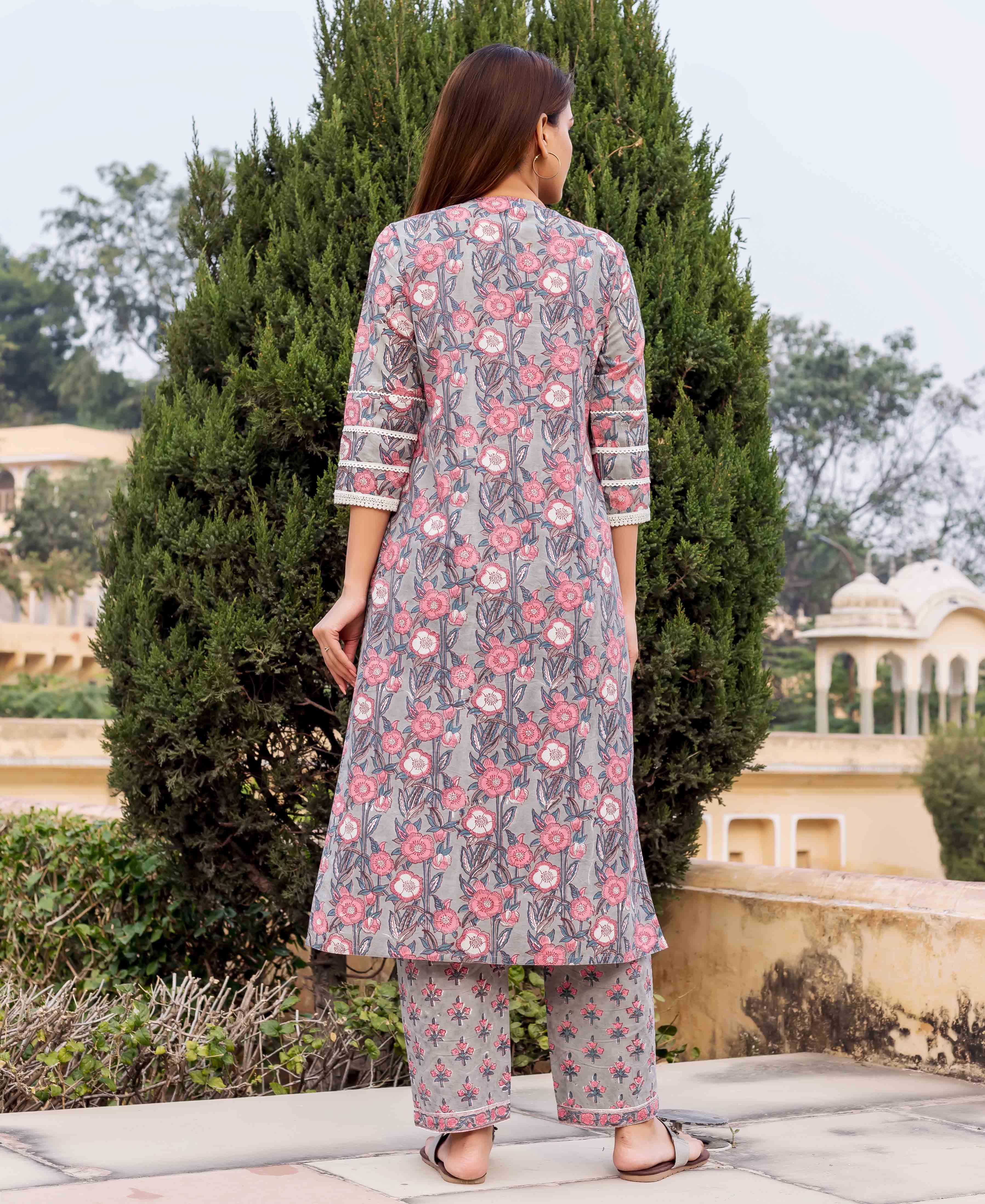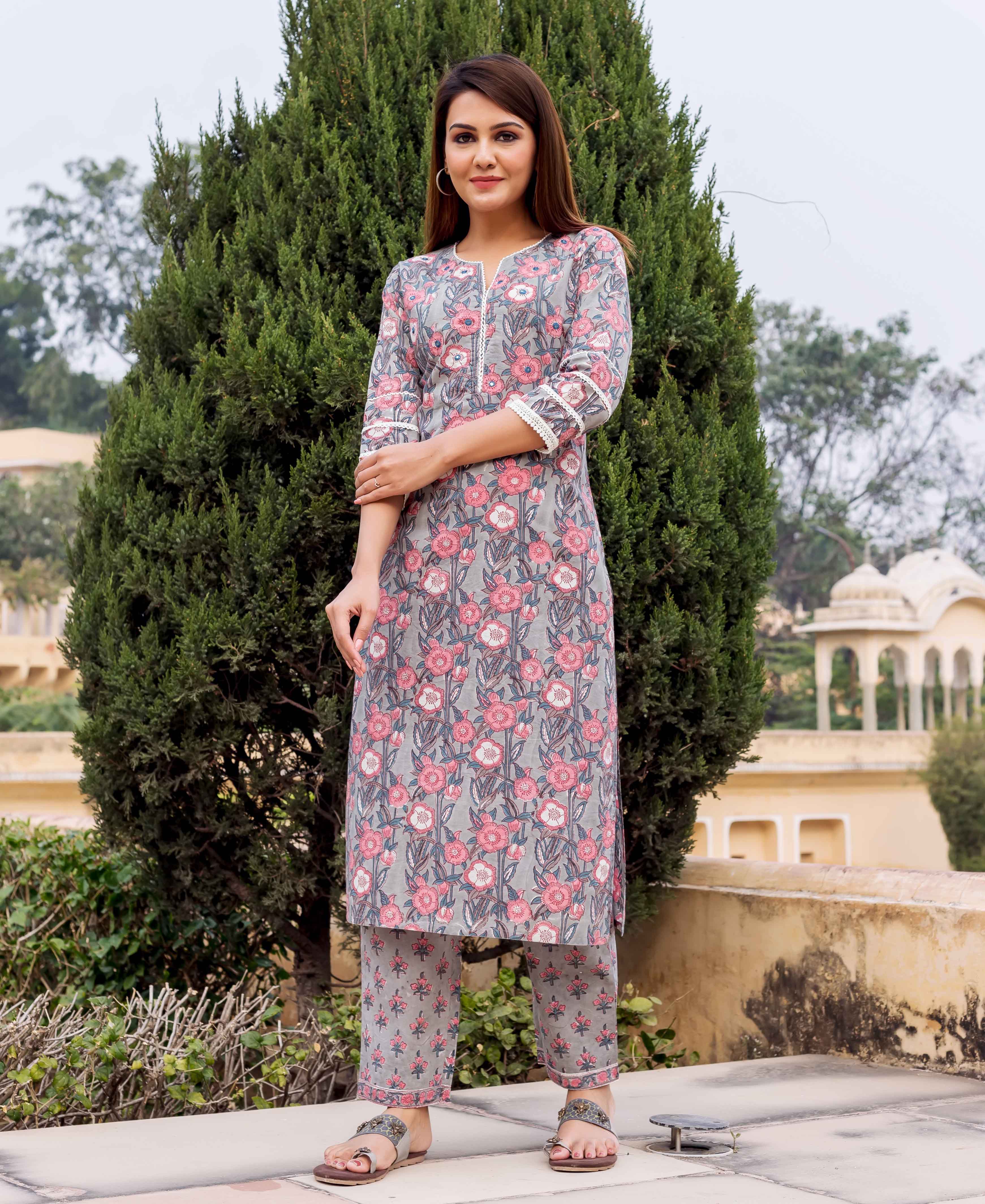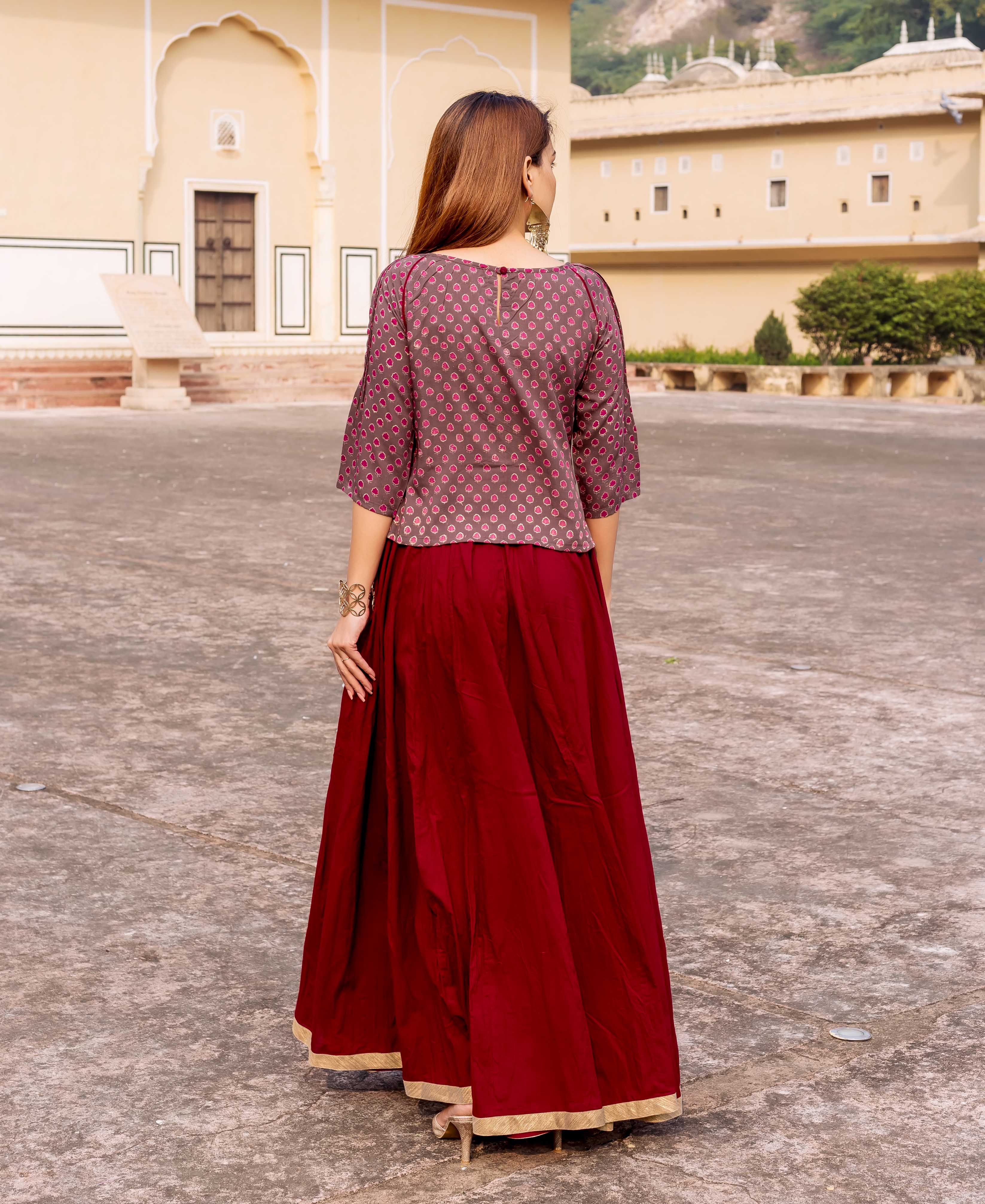 Turkish Blue Hand Block Printed Kurta and Sharara
