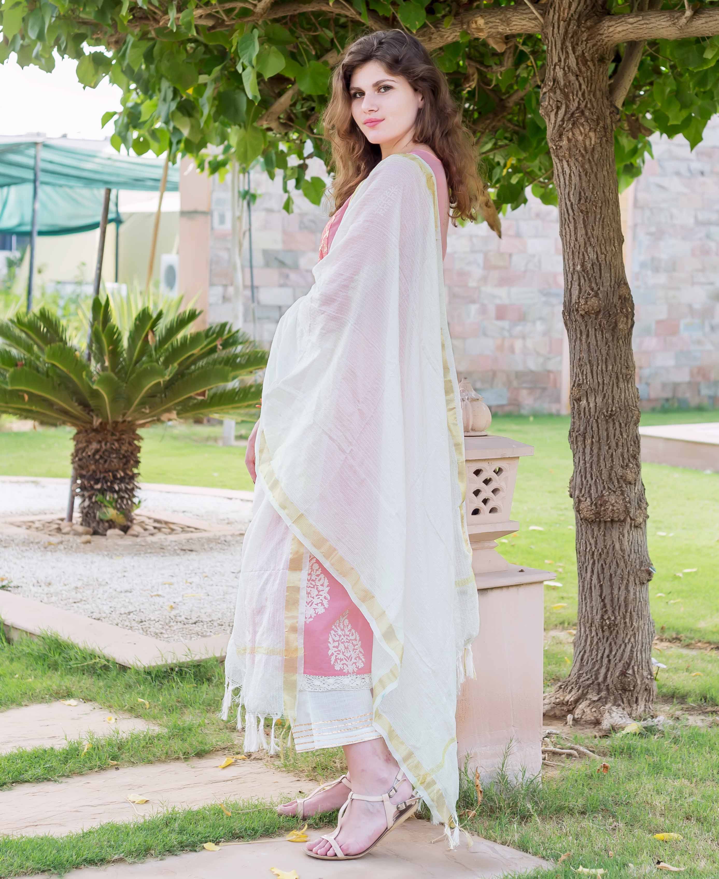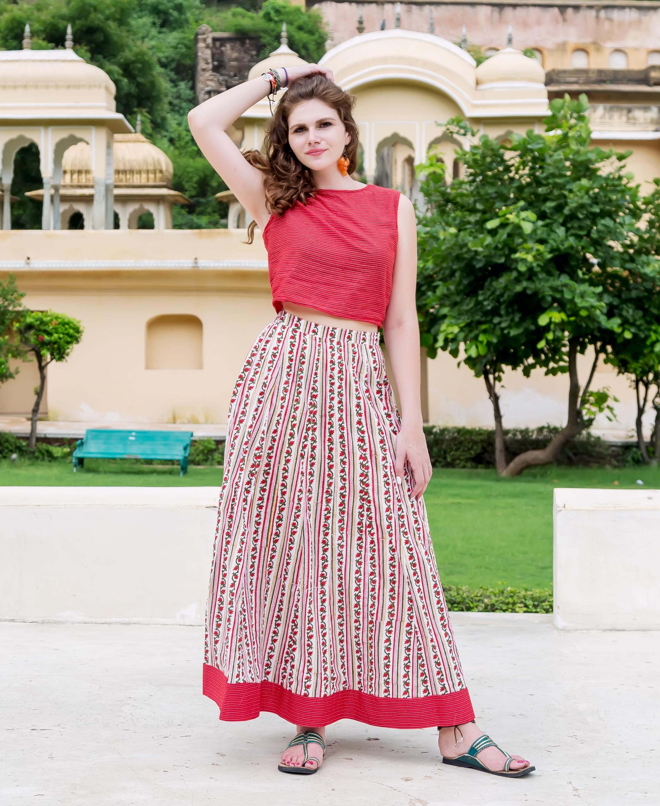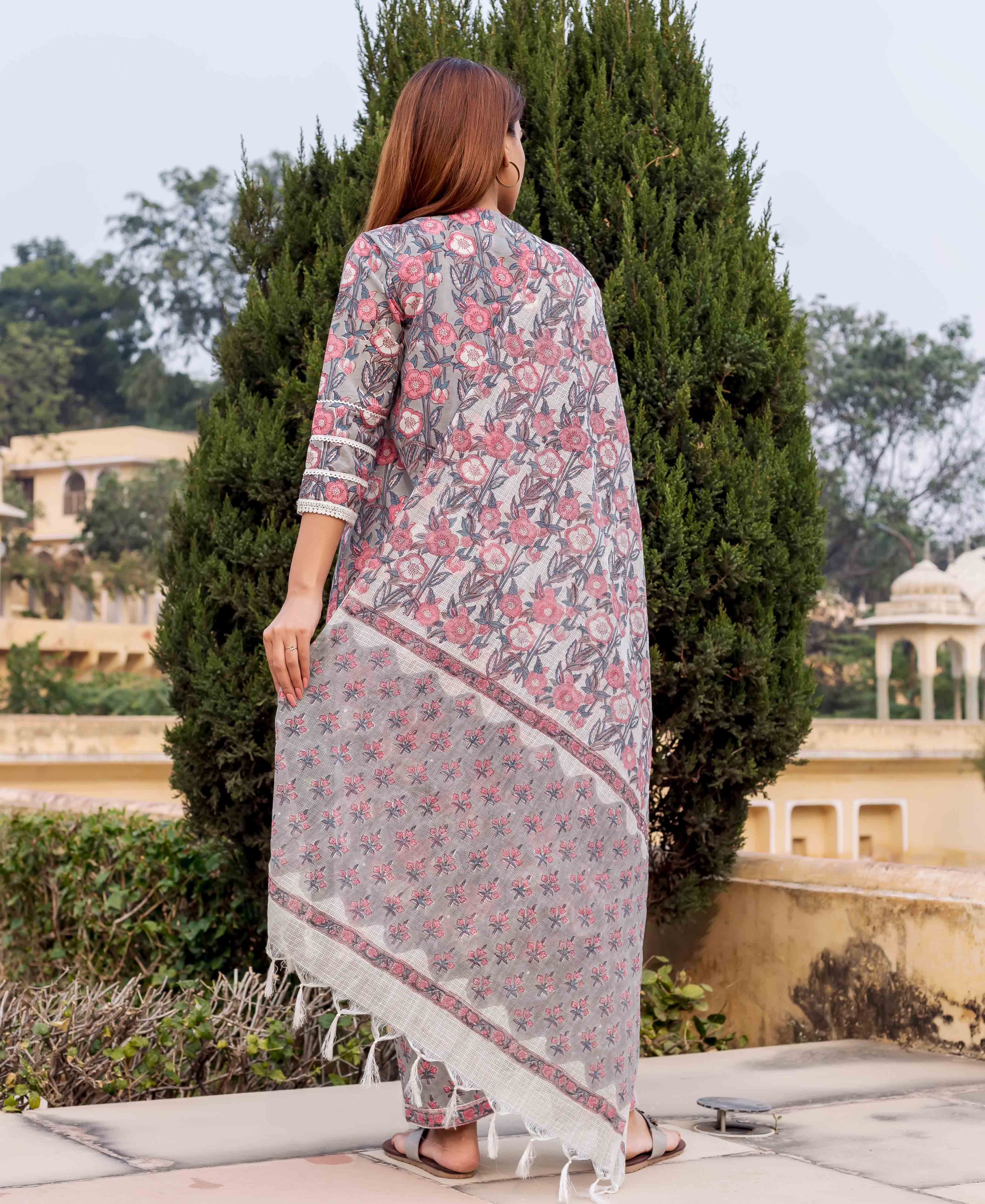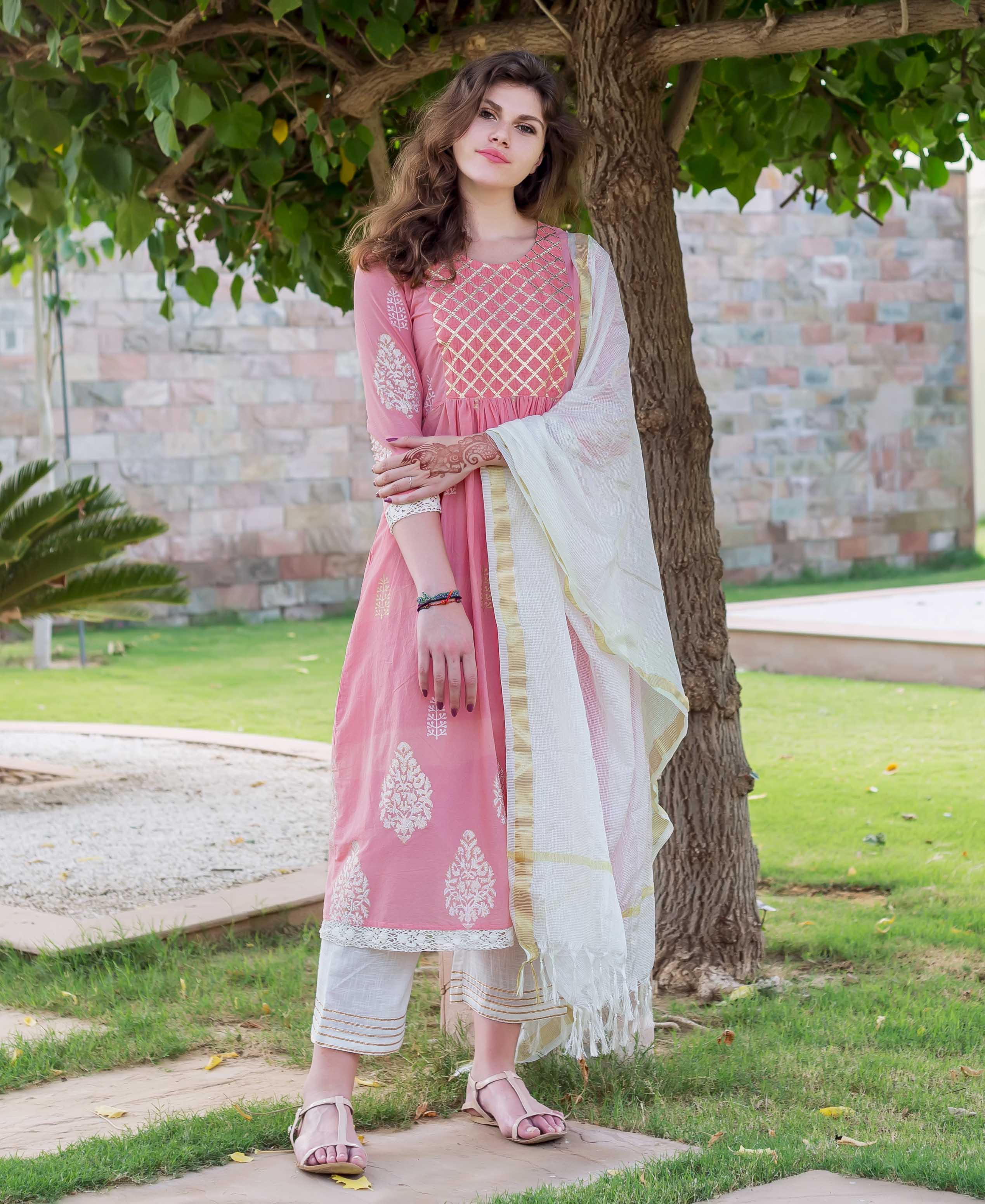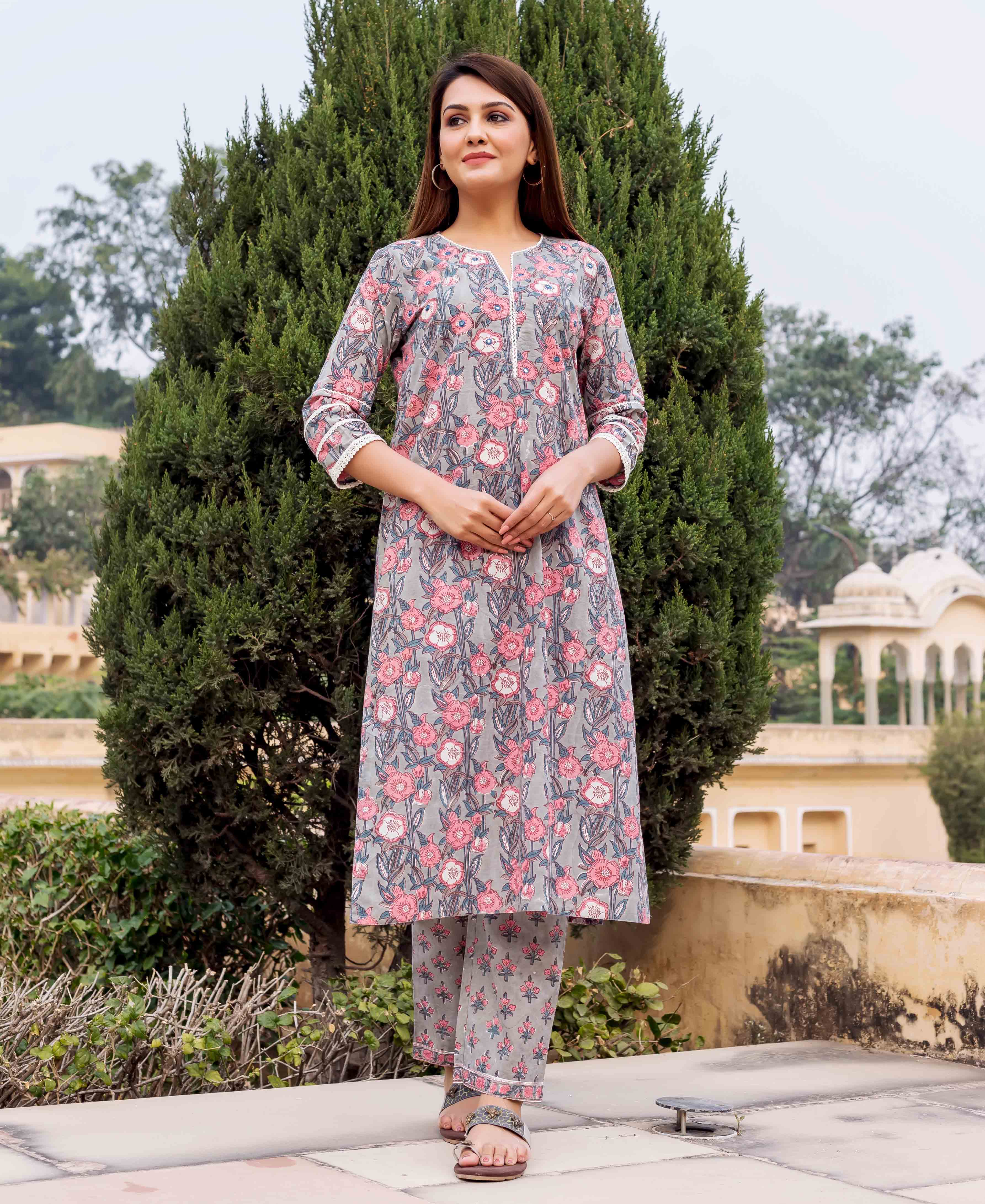 Turkish Blue Hand Block Printed Kurta and Sharara