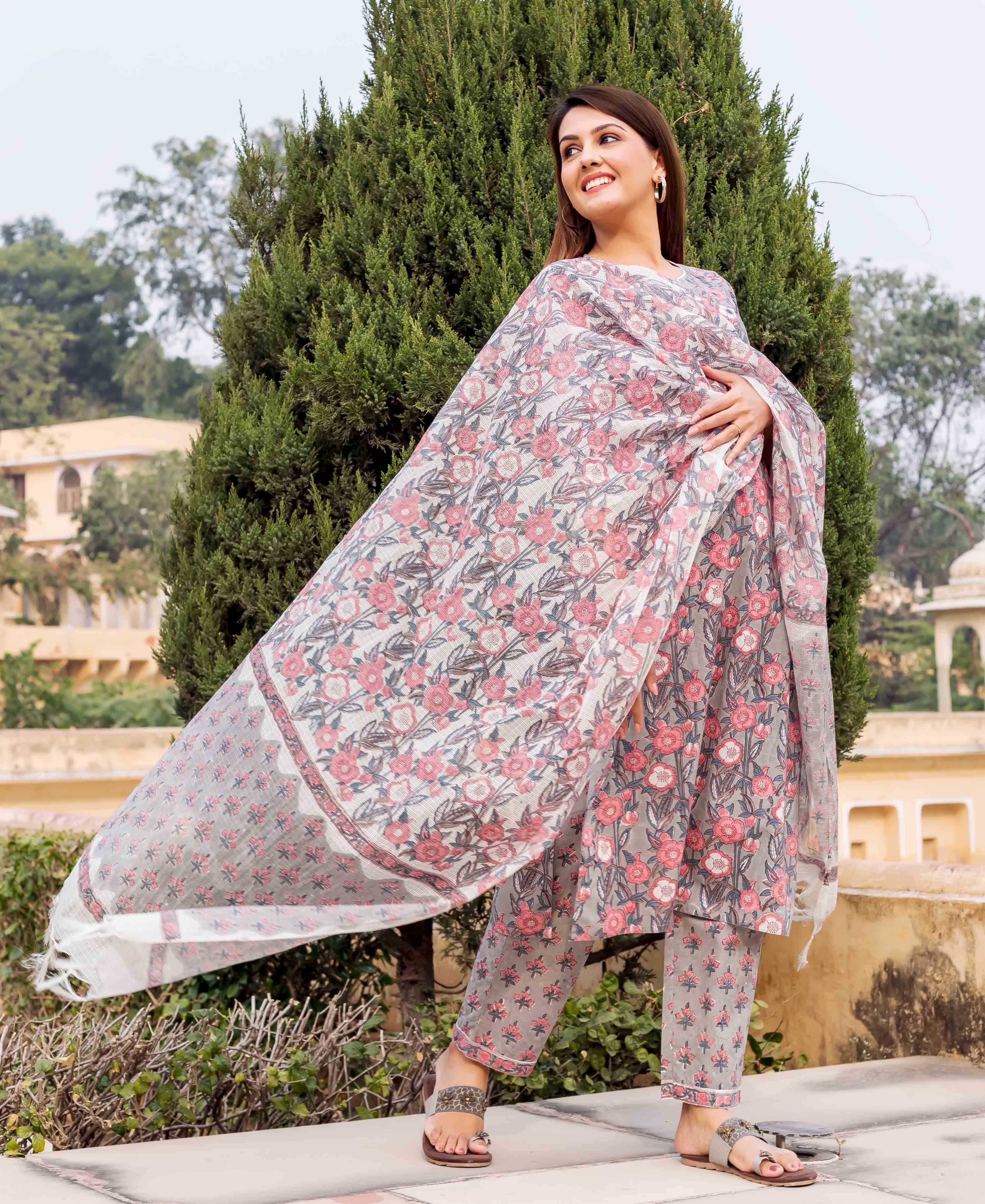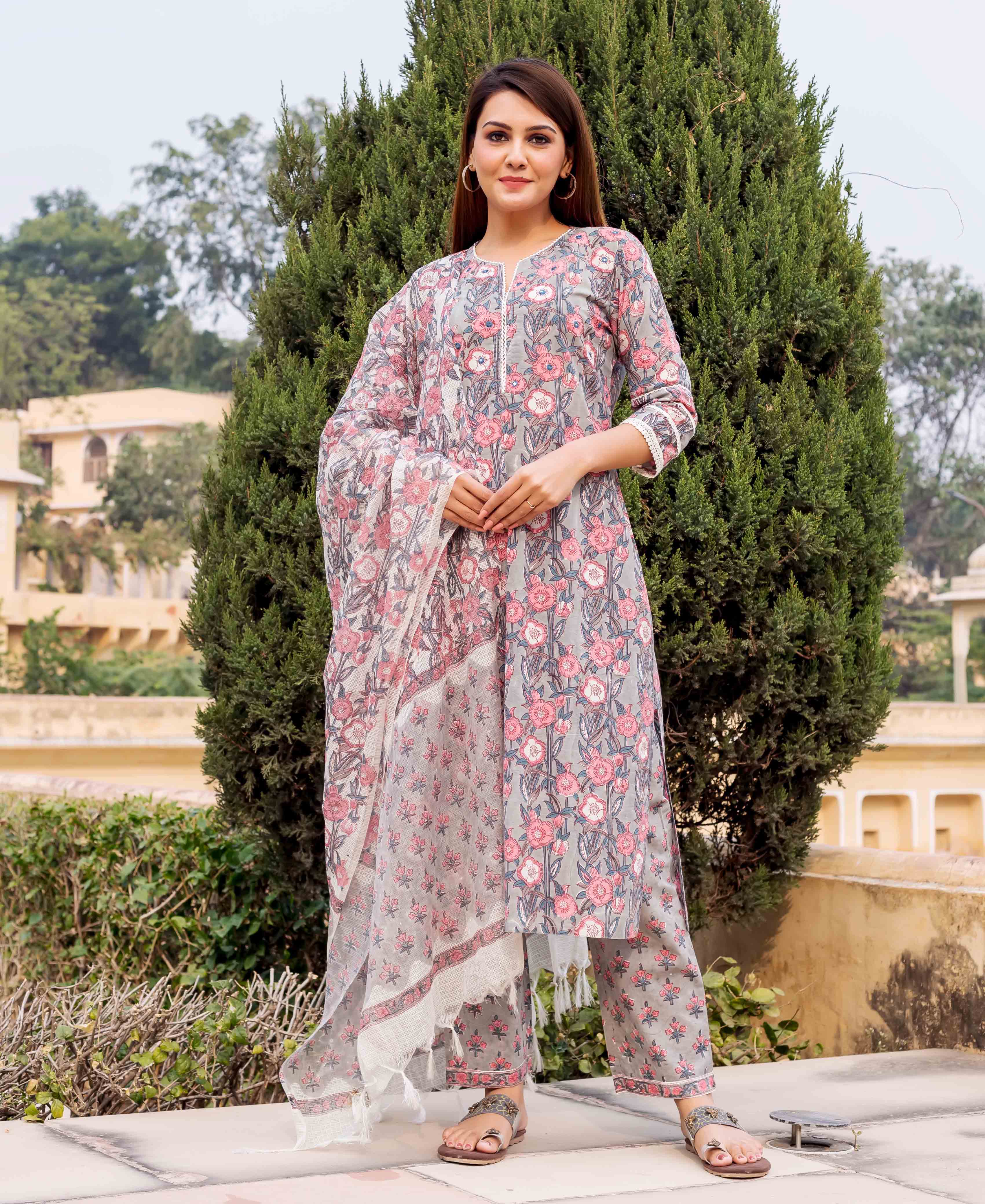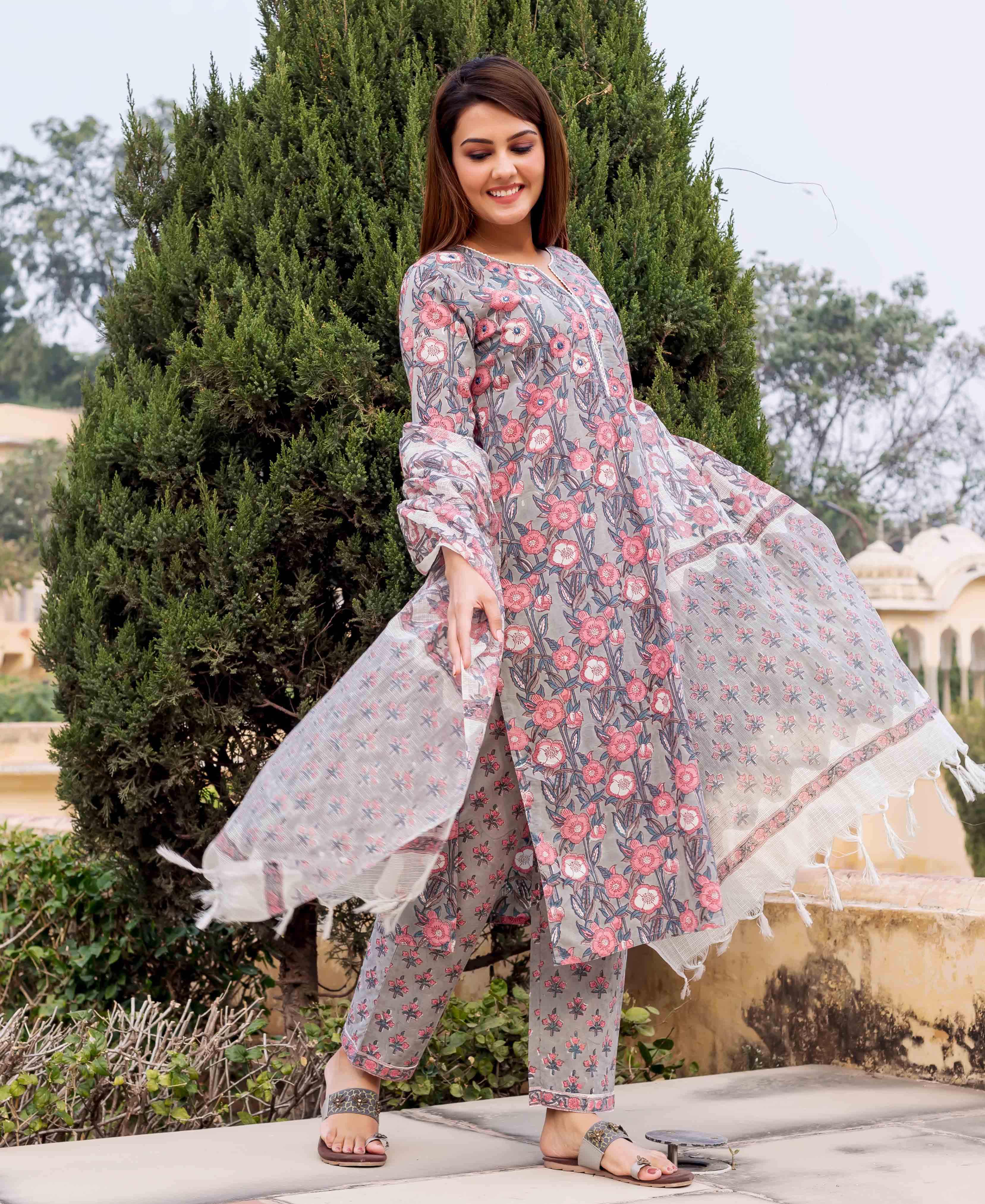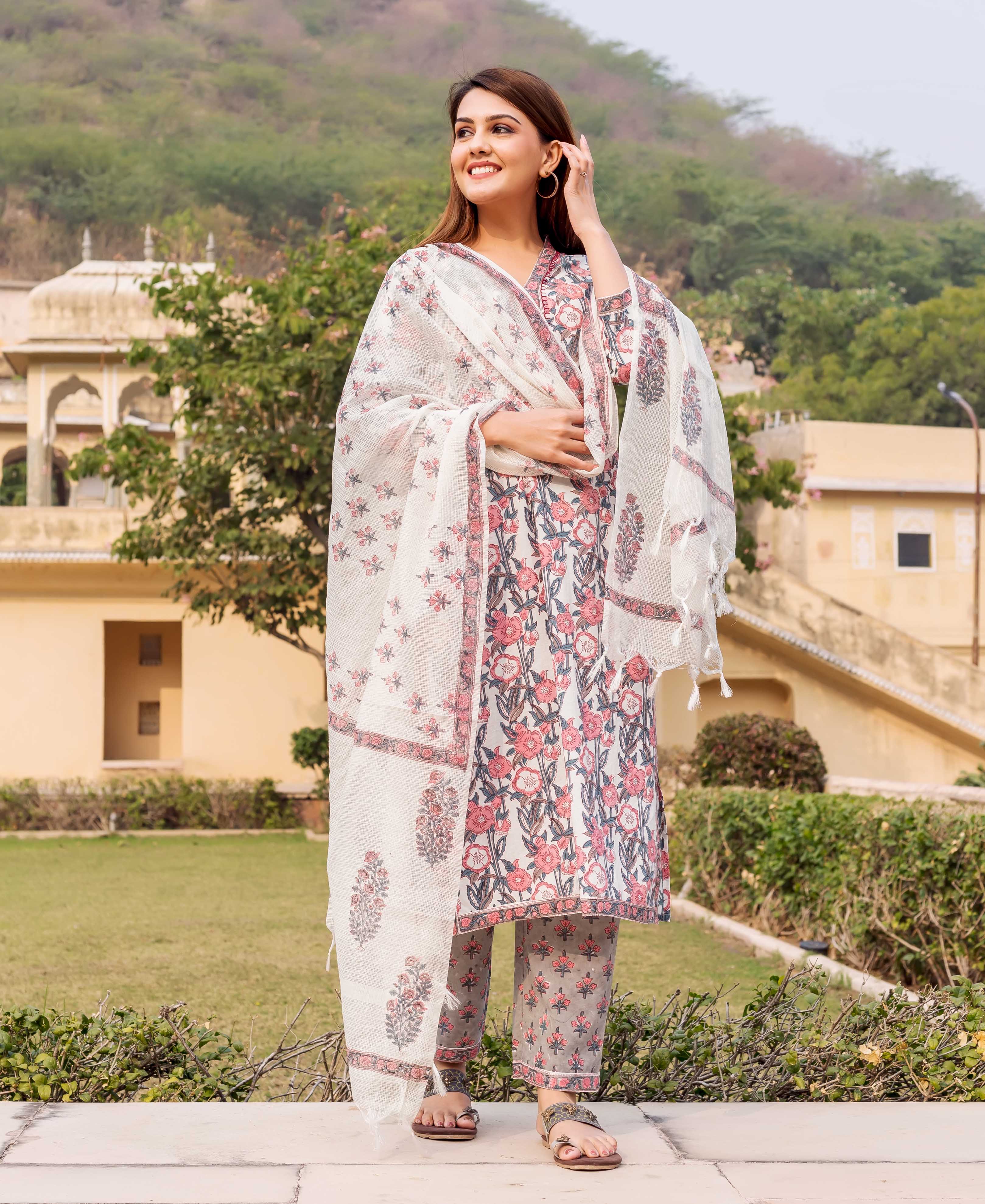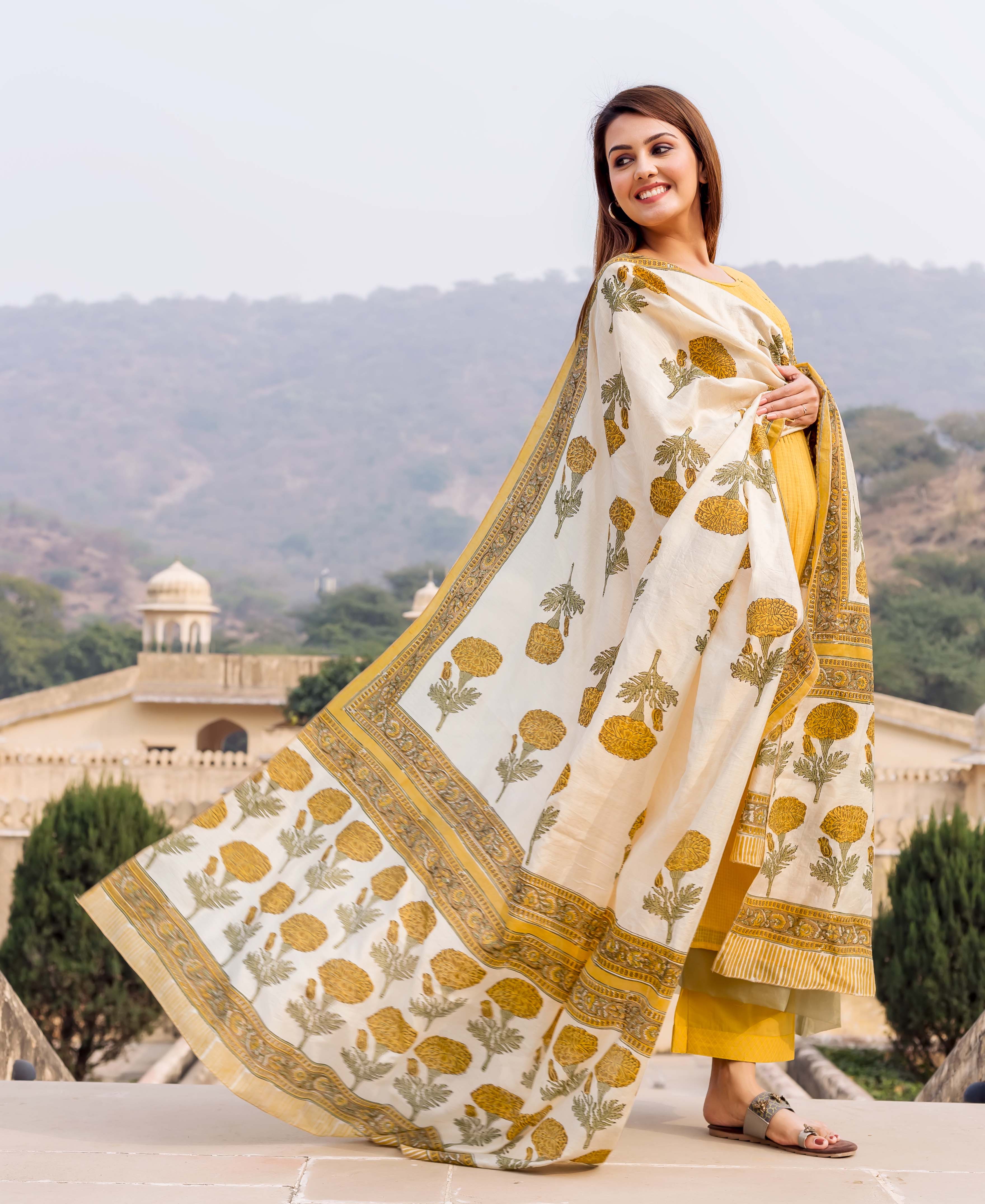 Turkish Blue Hand Block Printed Kurta and Sharara