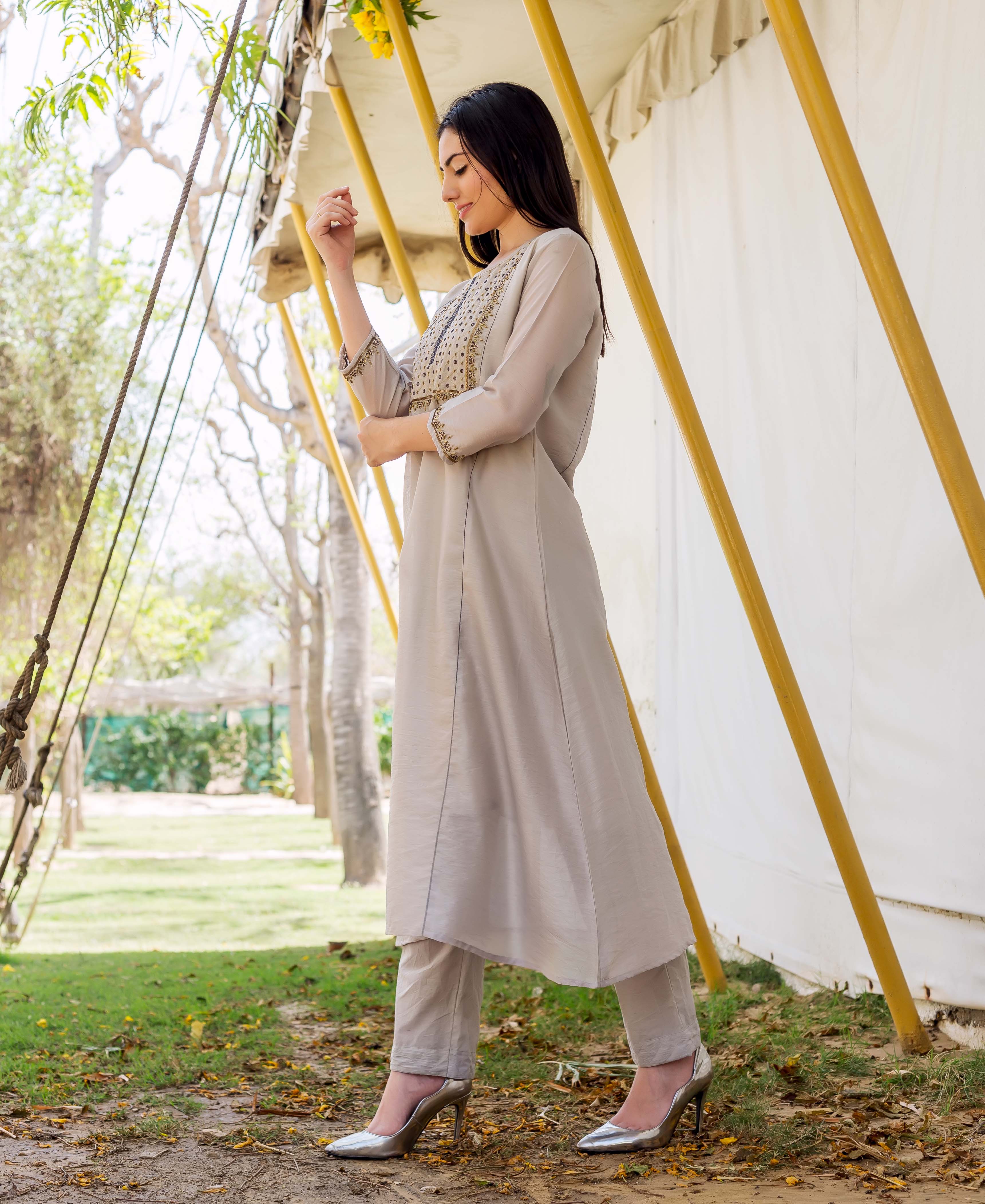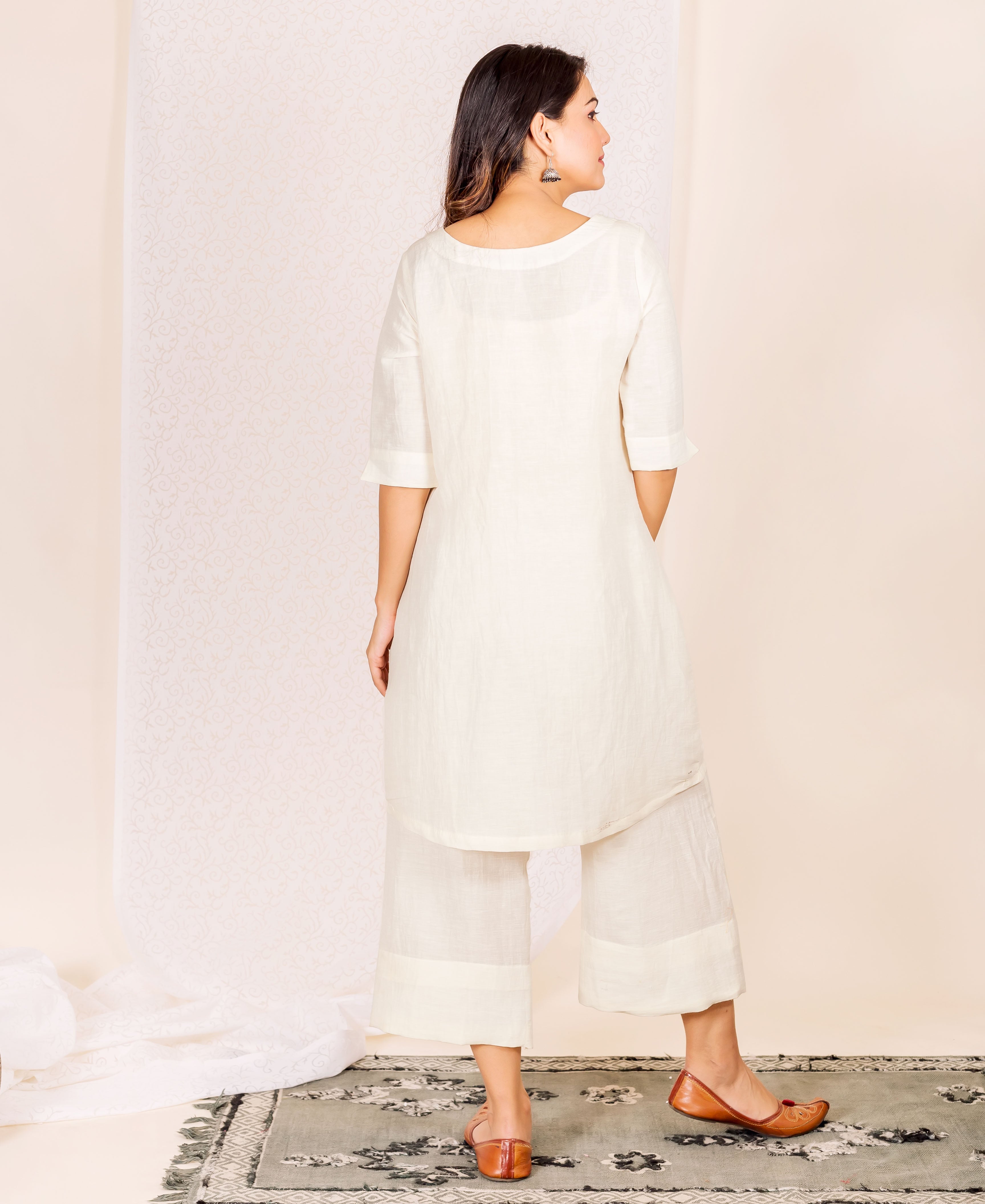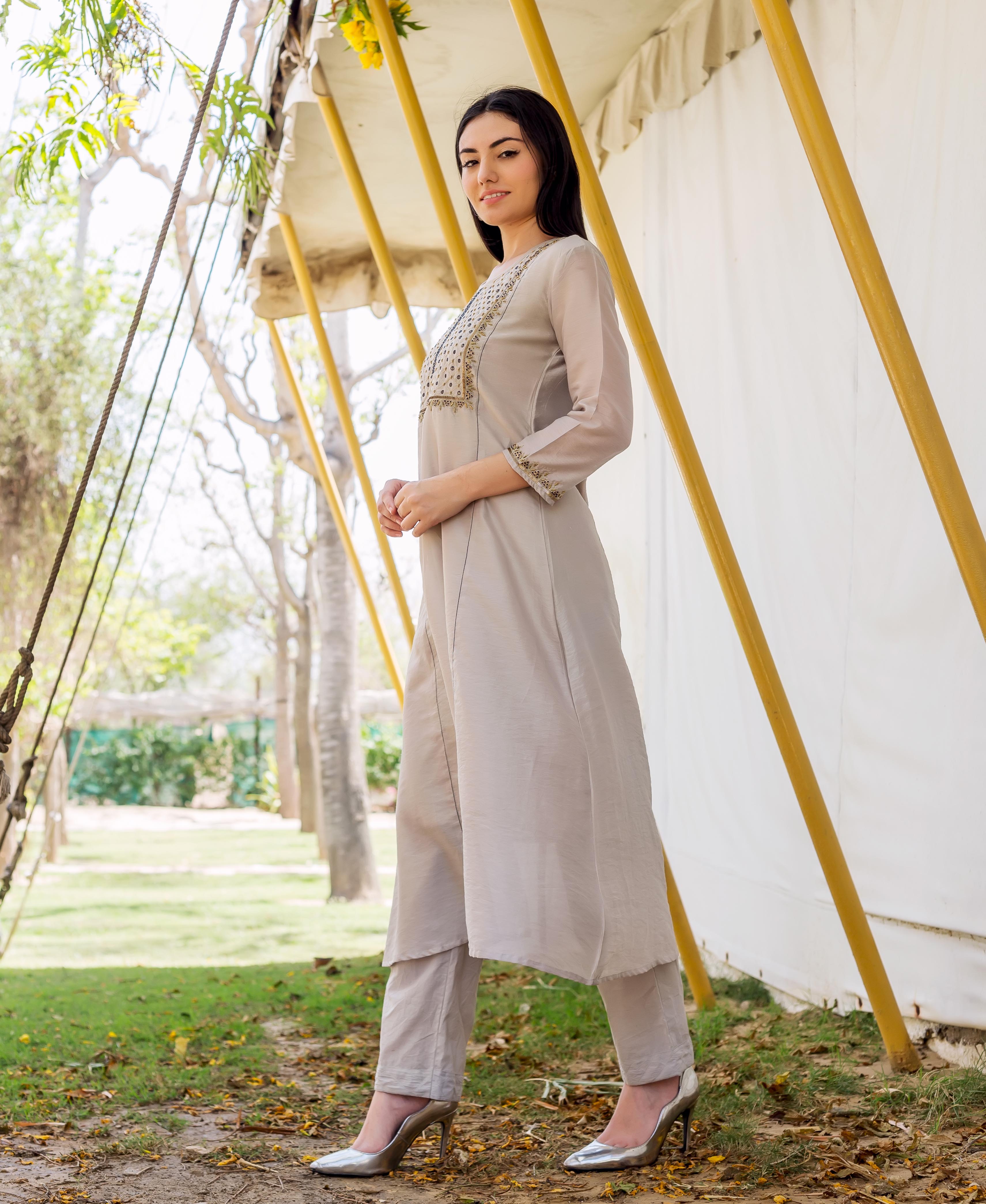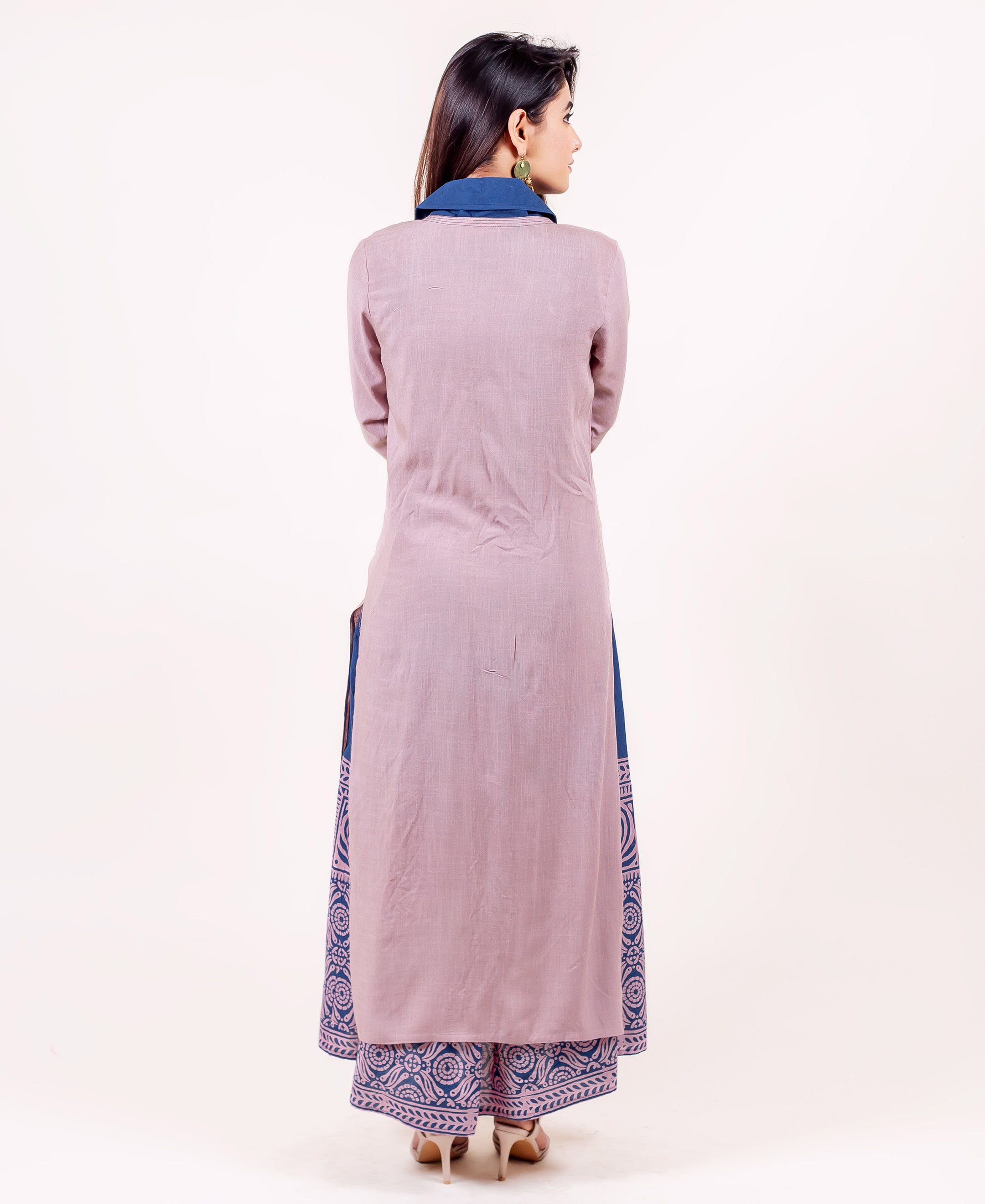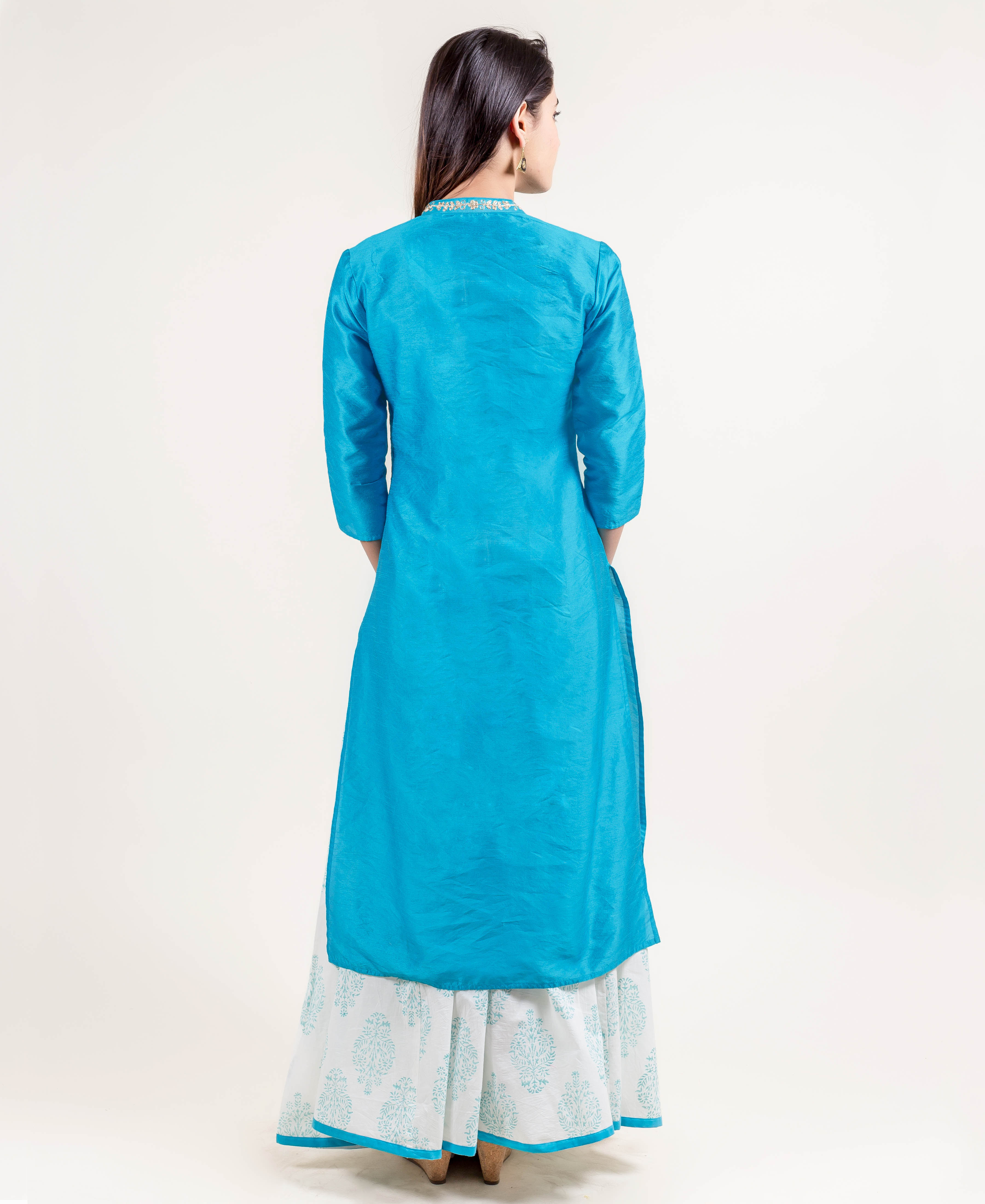 Split Neck Embroidered Chanderi Indo Western Kurta