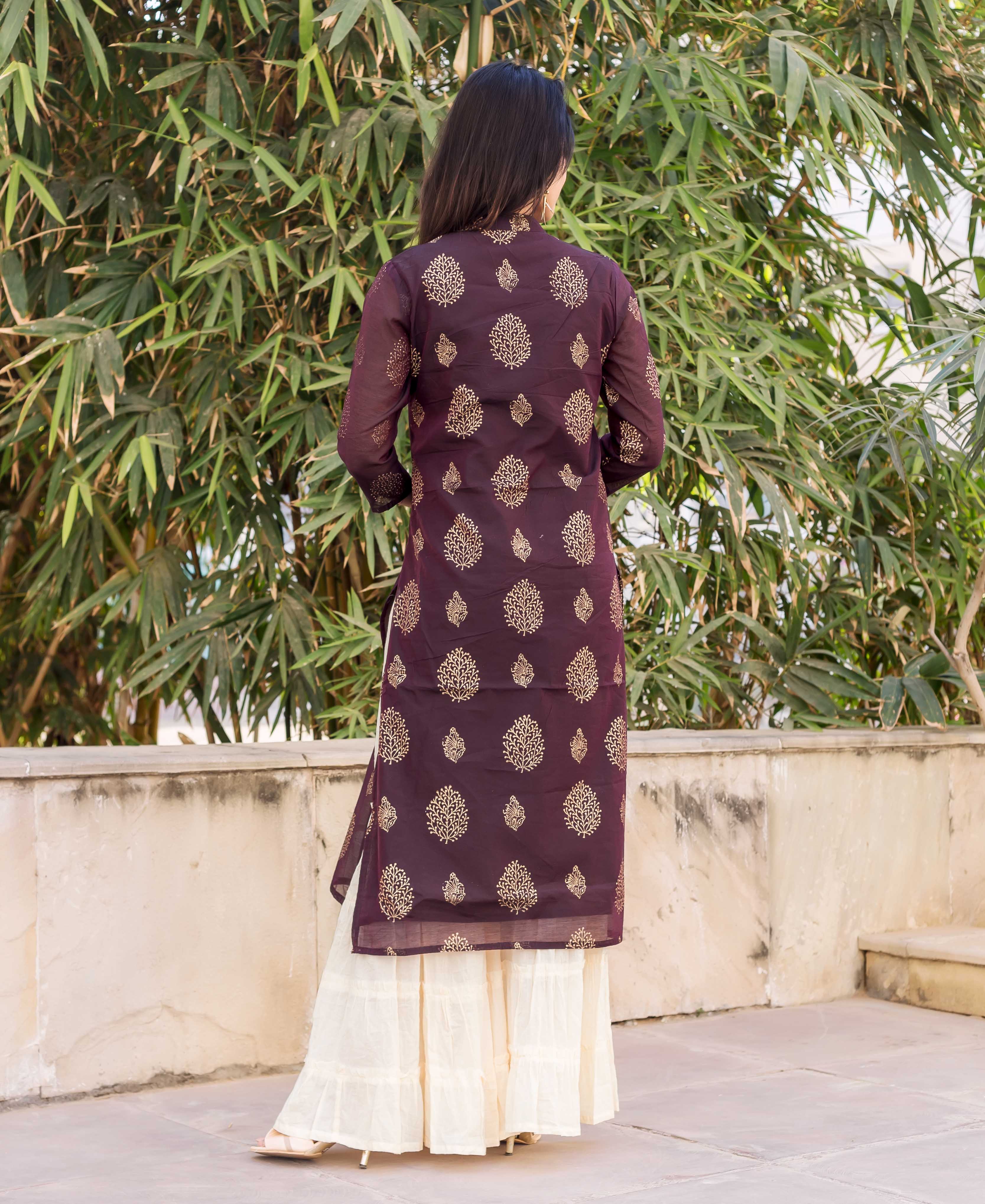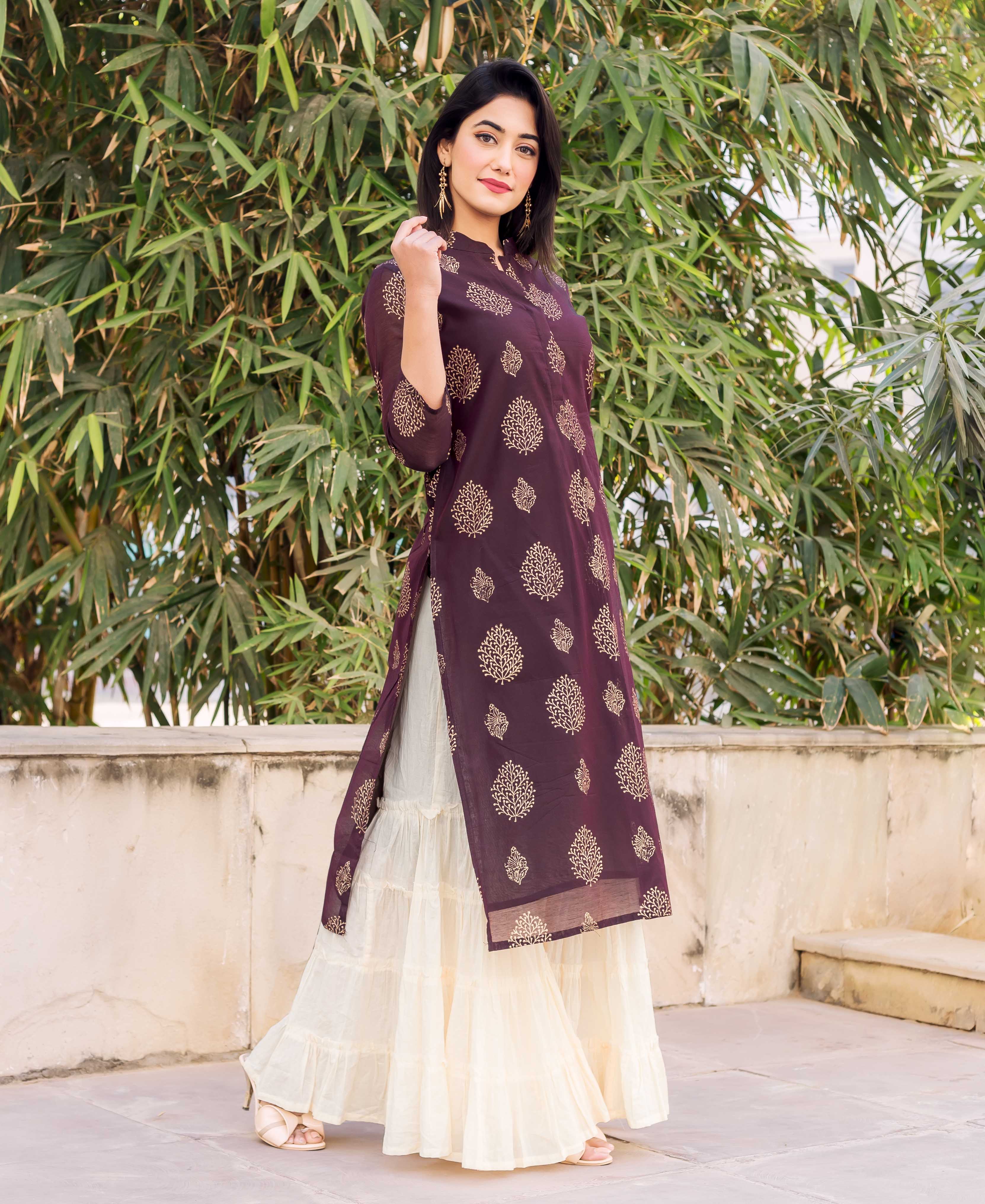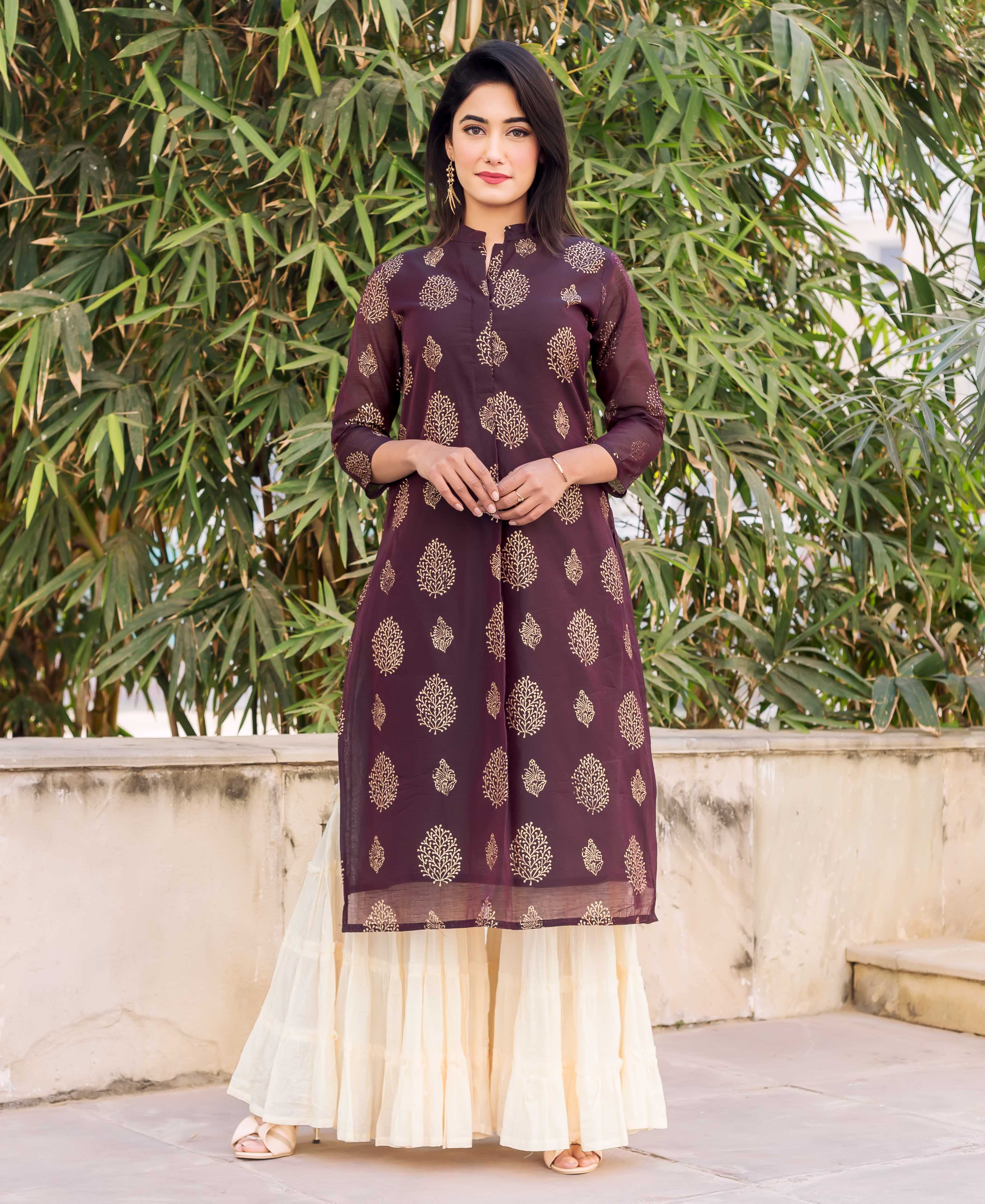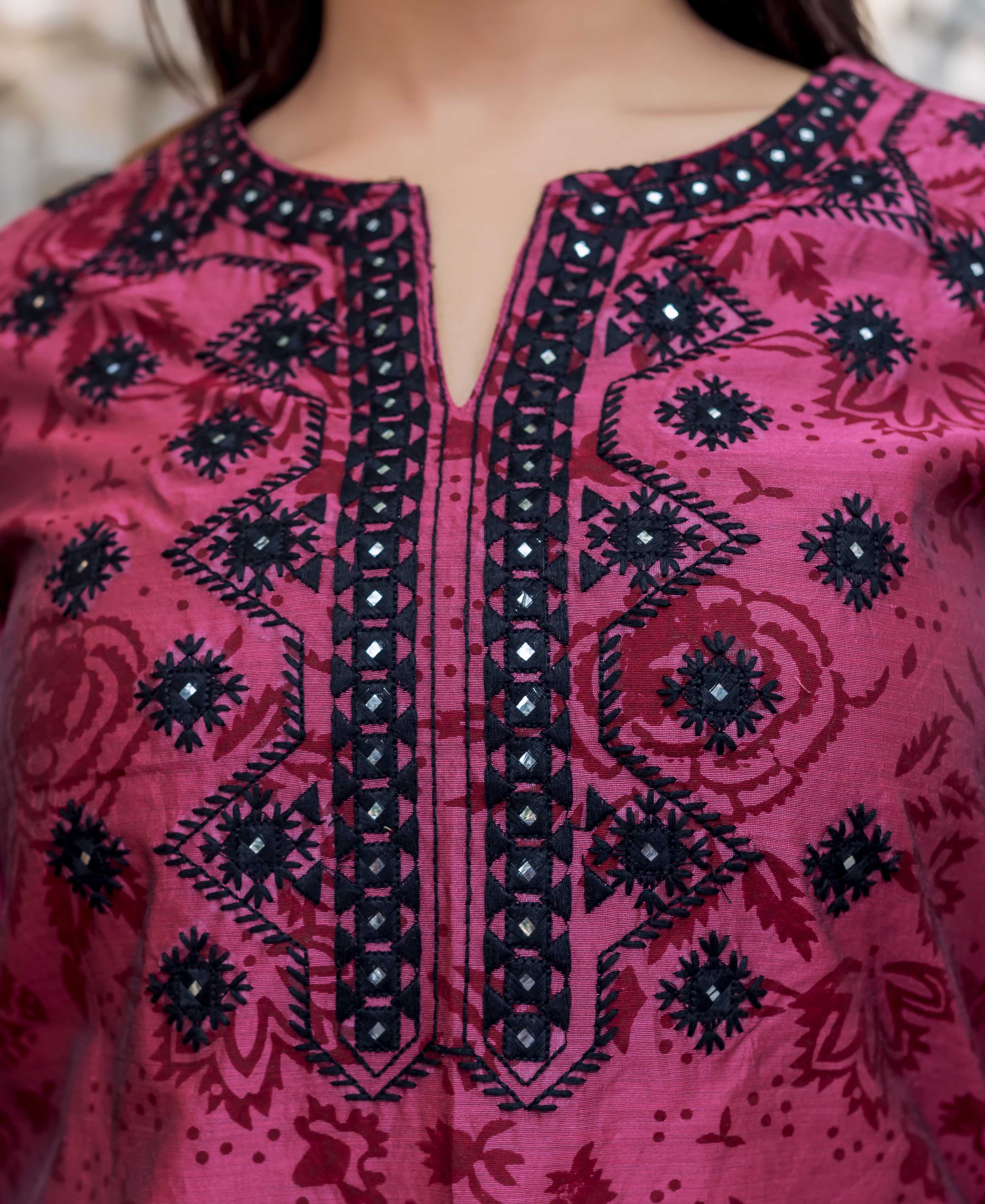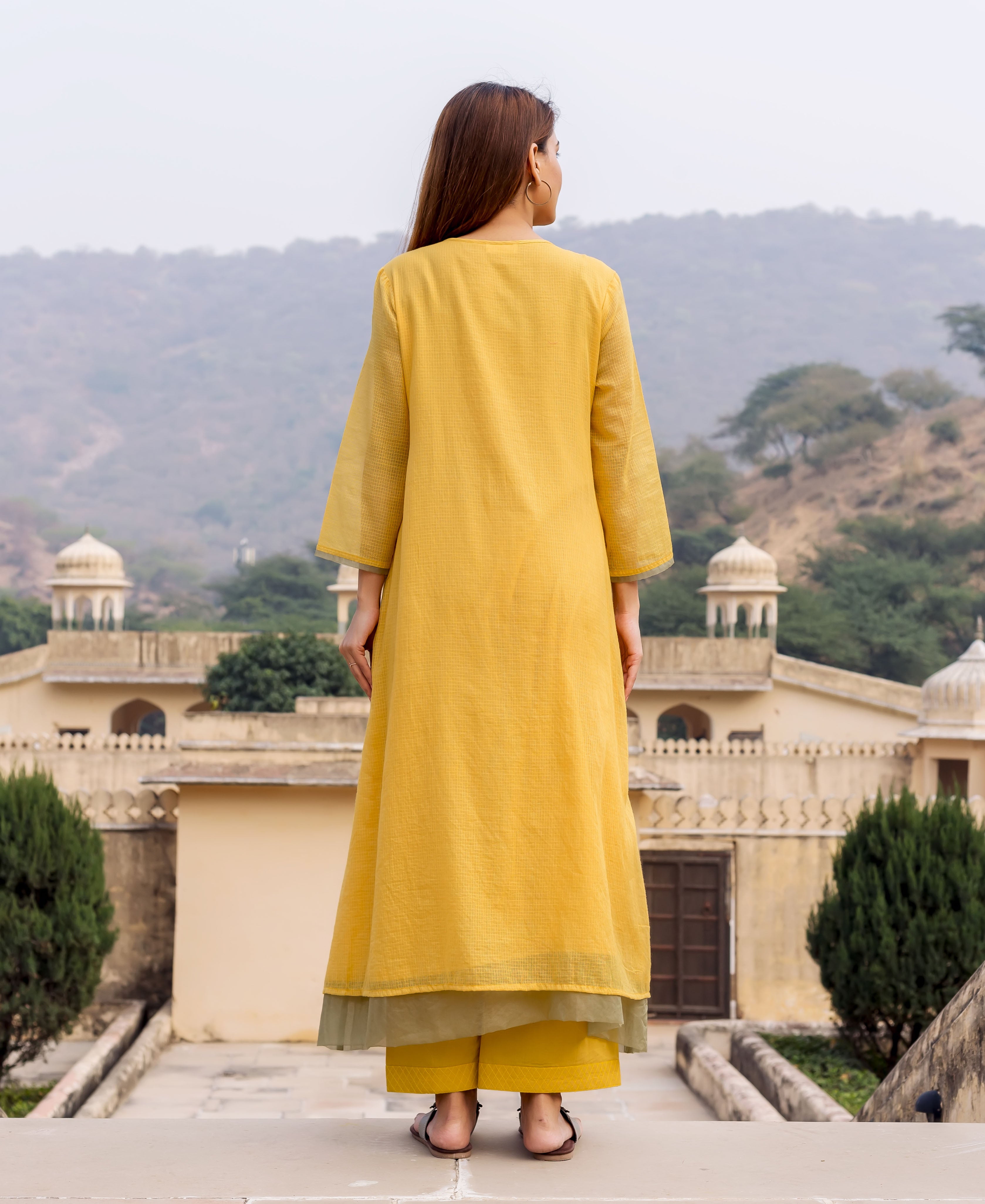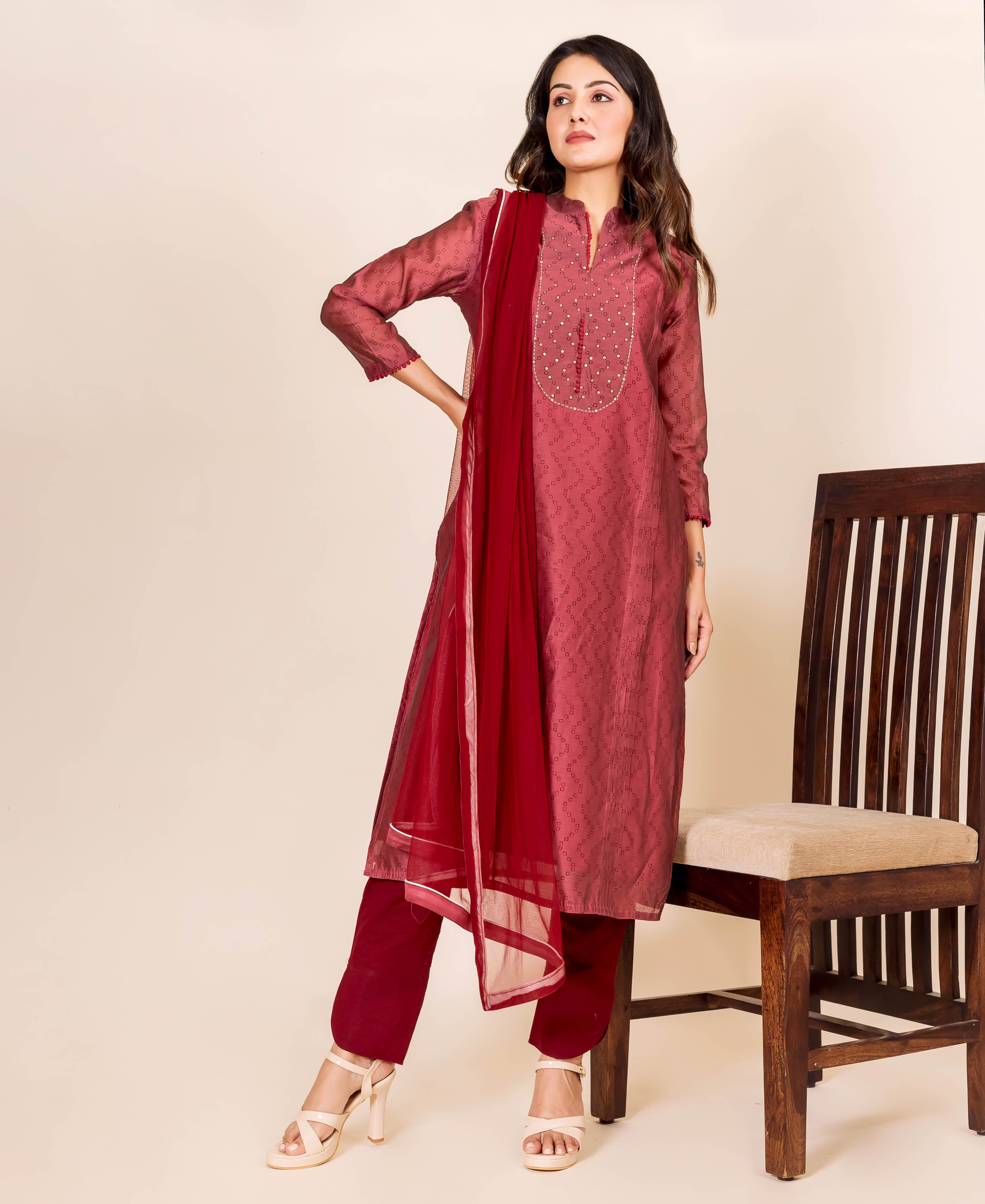 Split Neck Embroidered Chanderi Indo Western Kurta