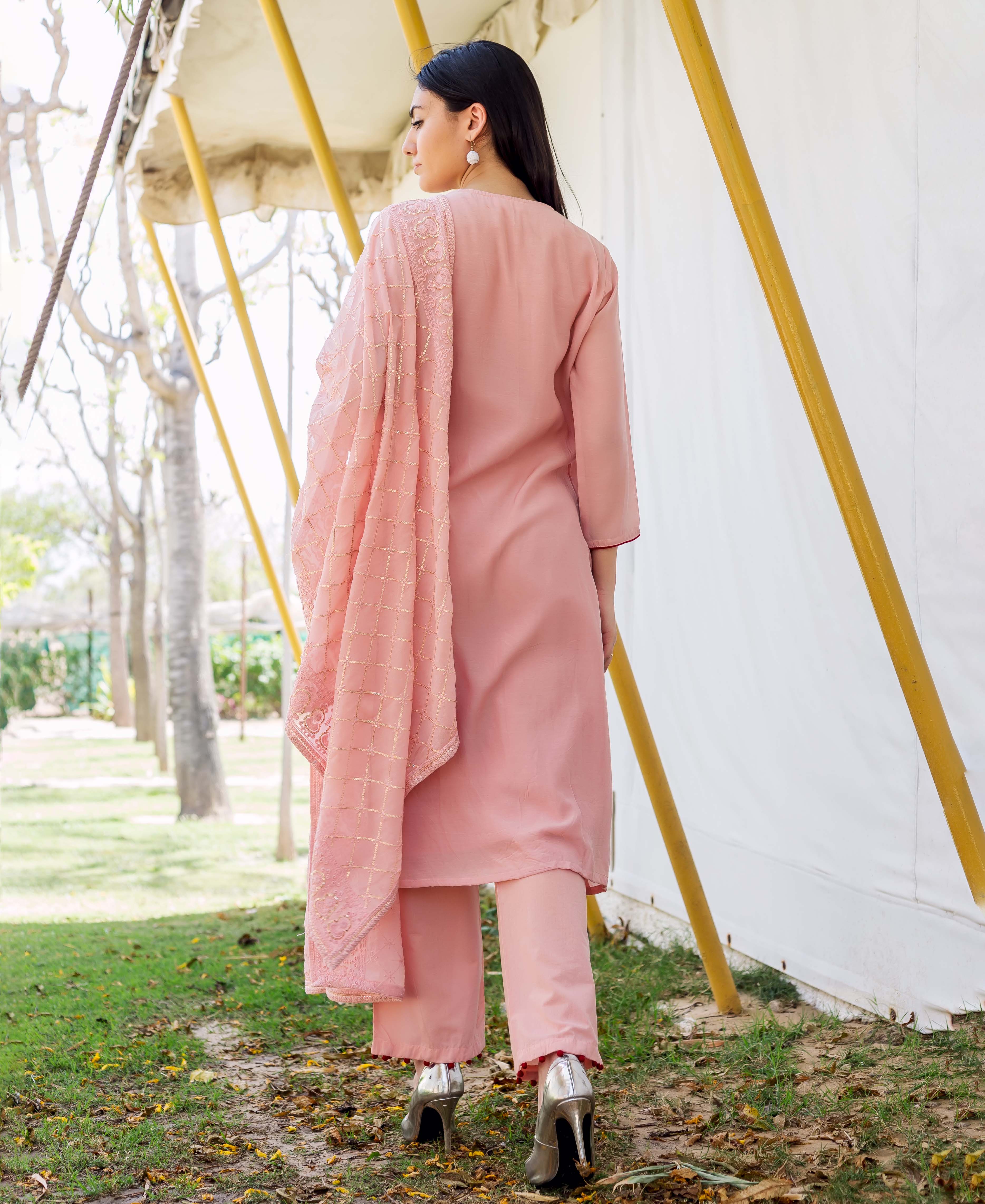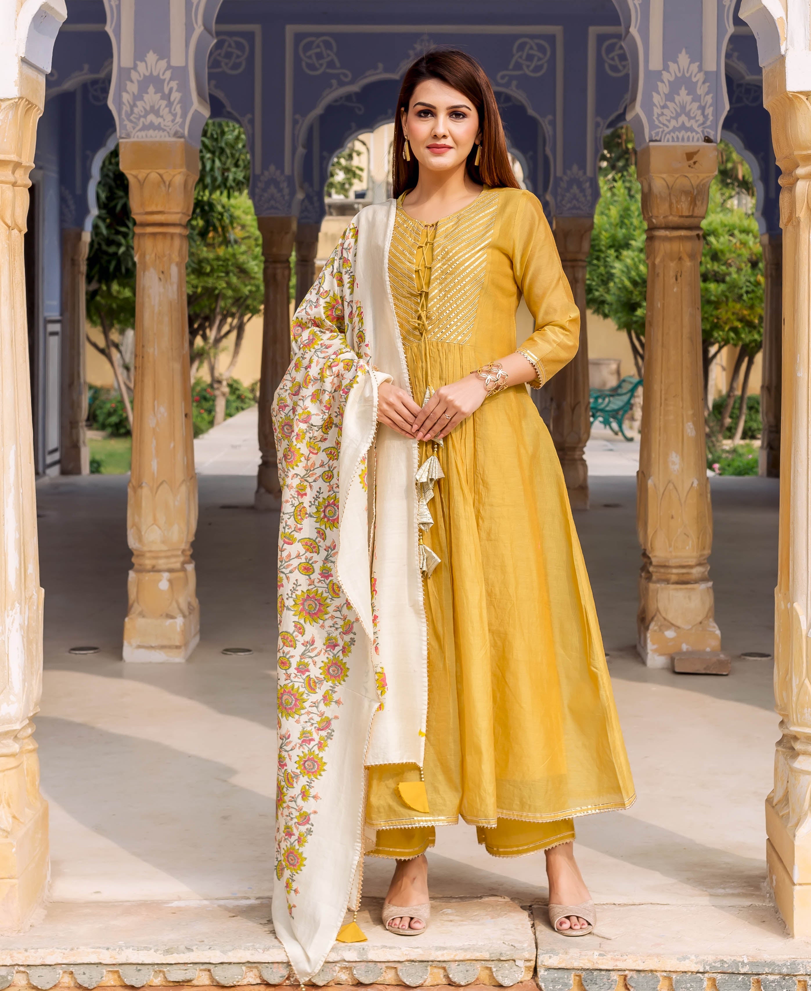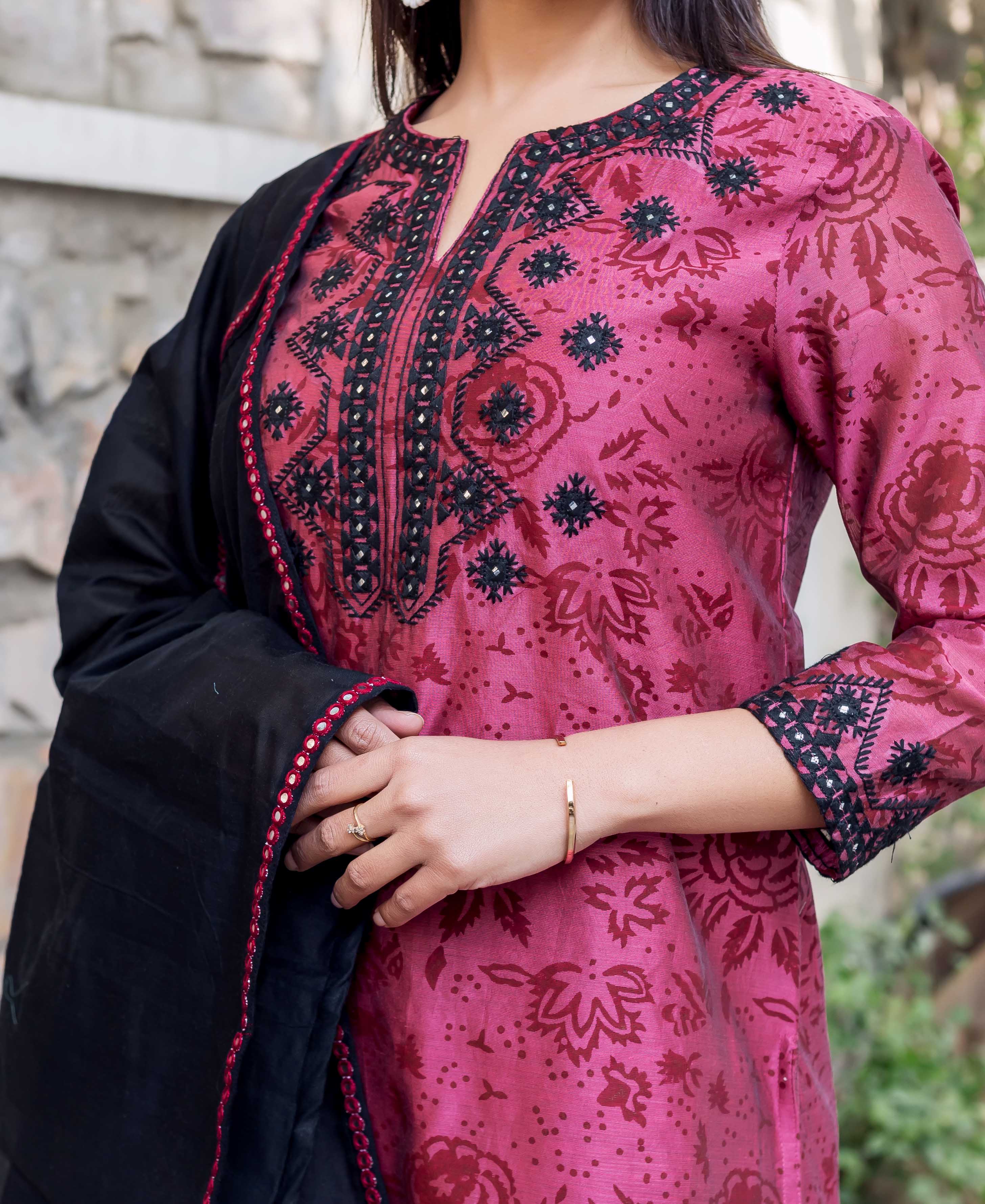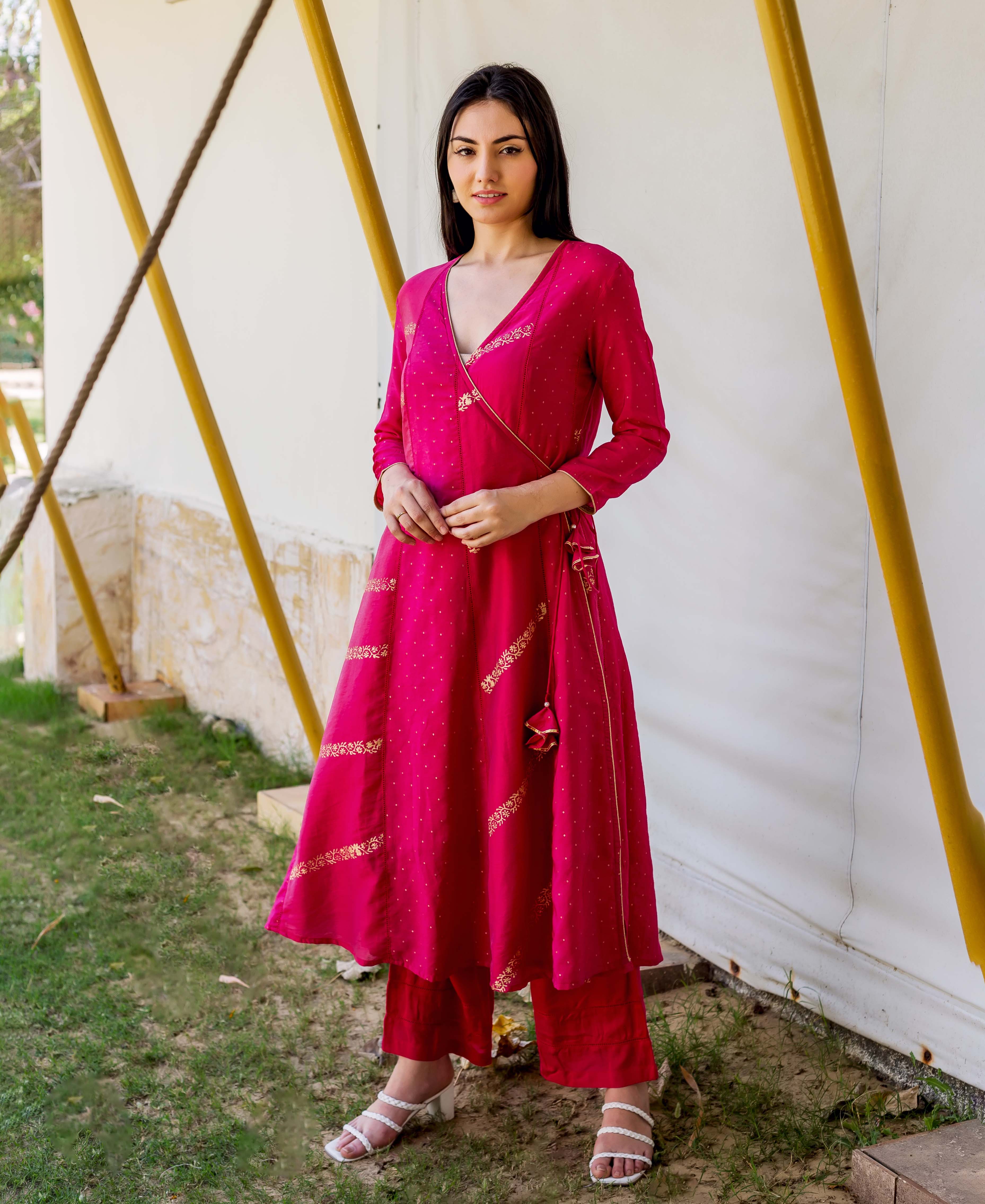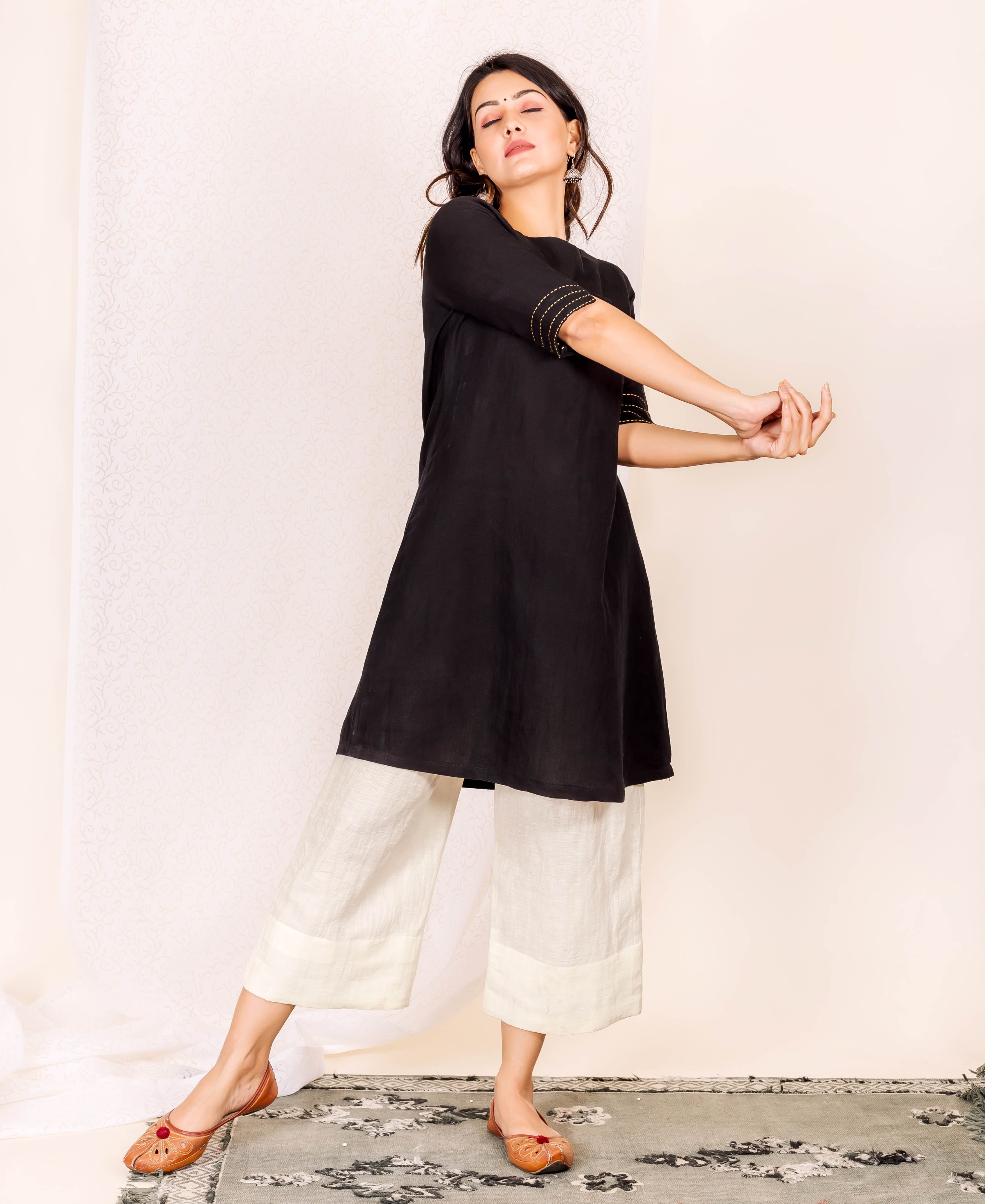 Split Neck Embroidered Chanderi Indo Western Kurta