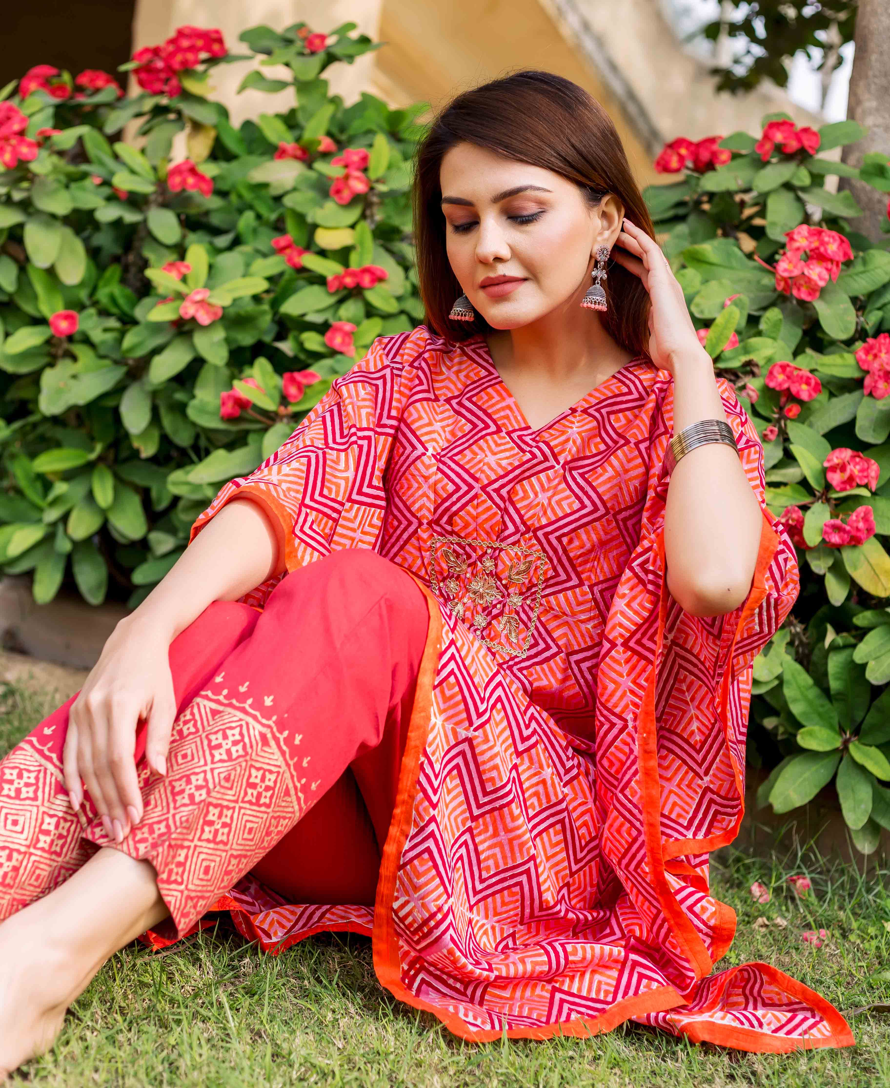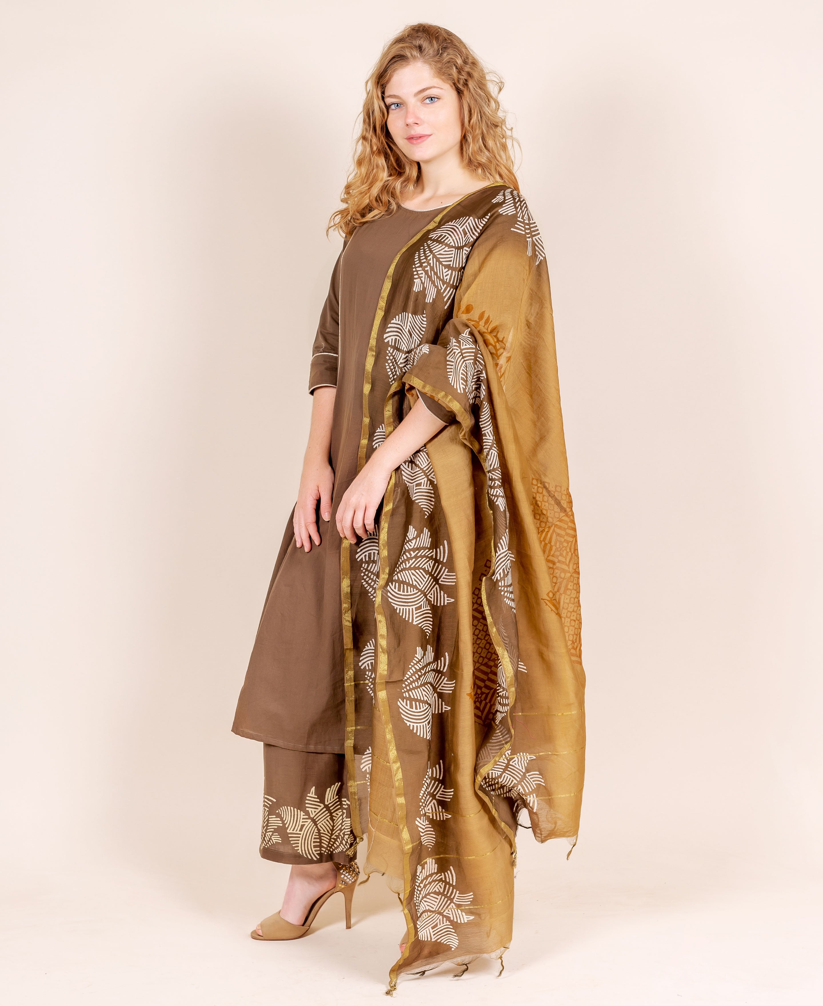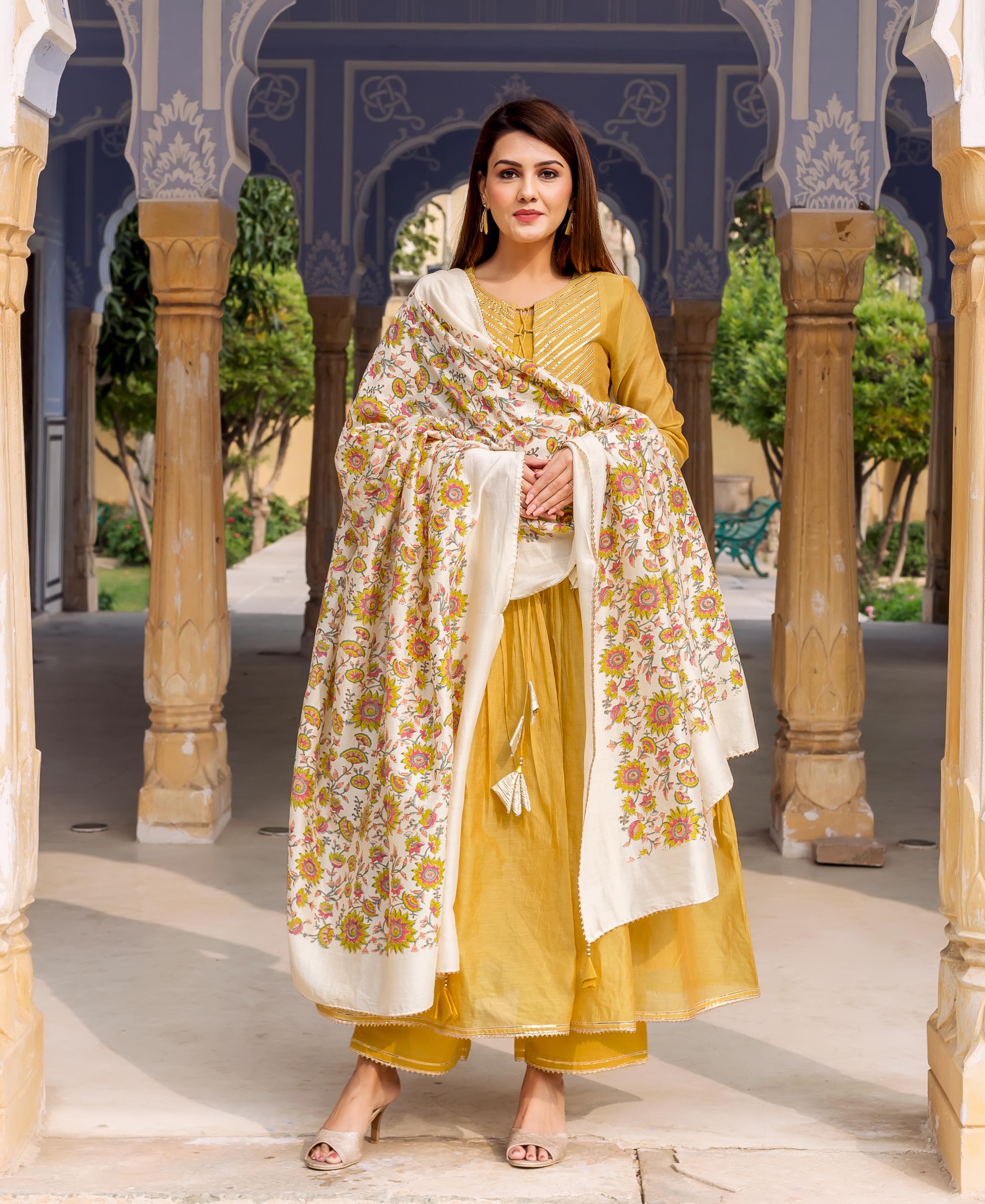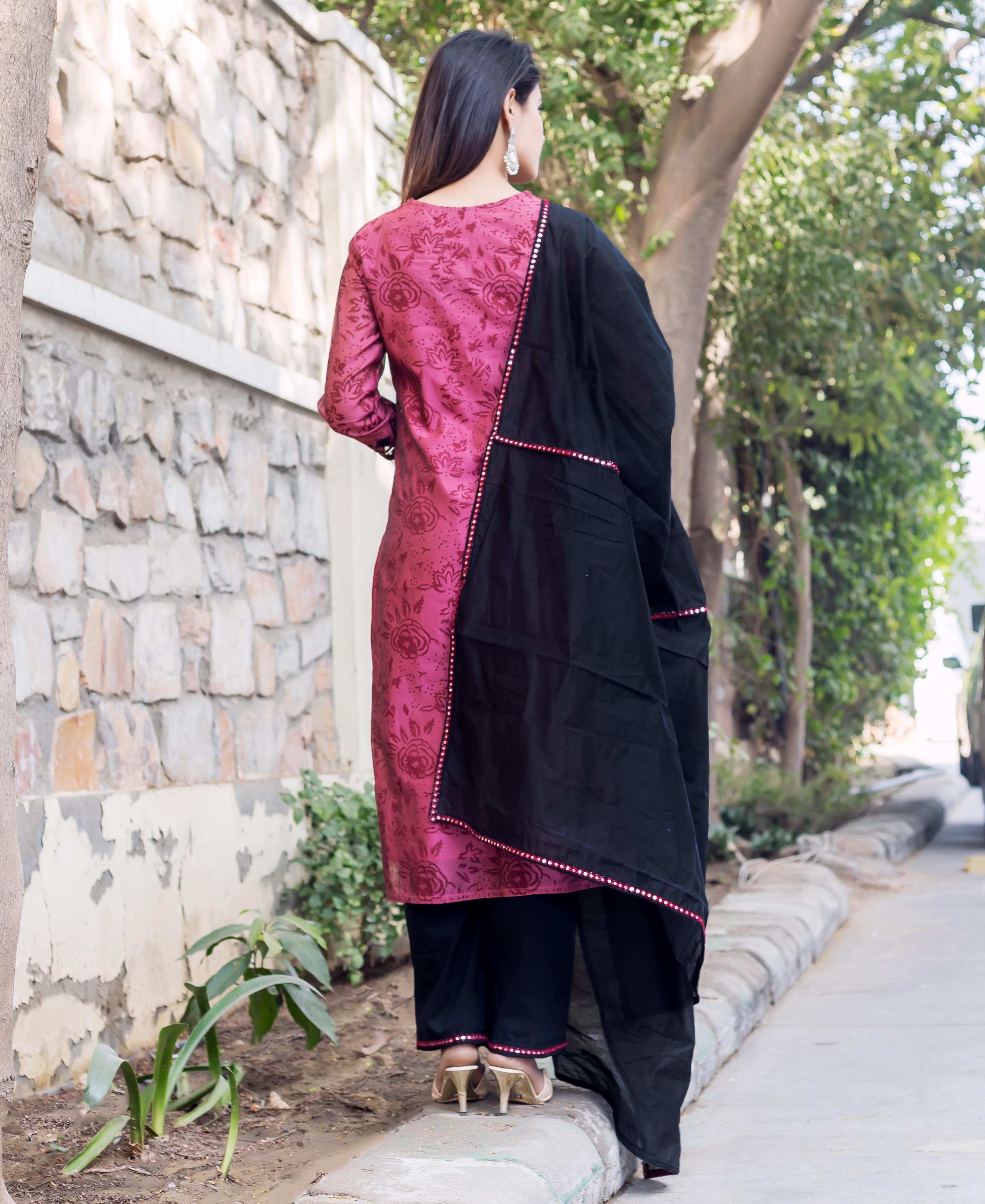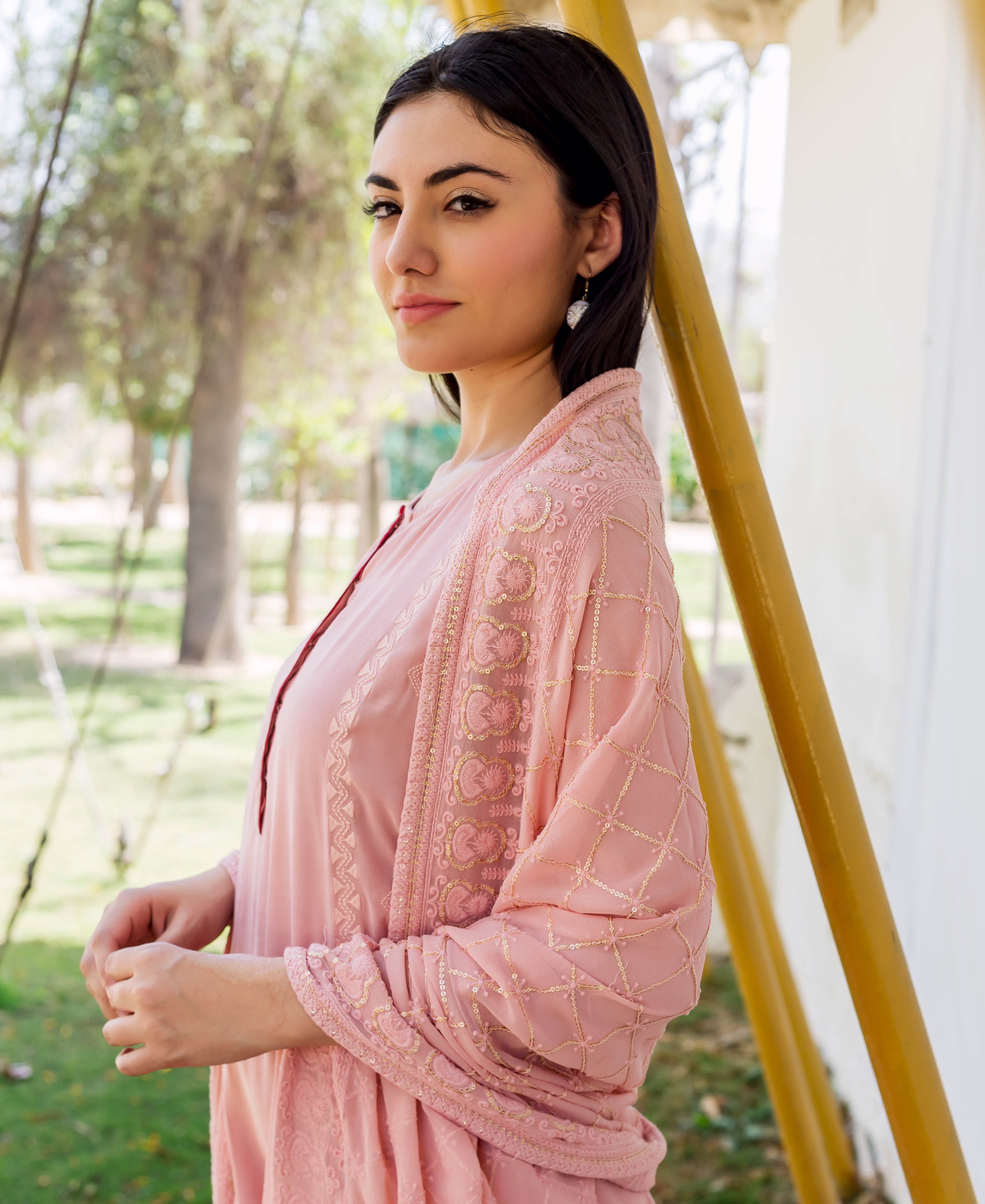 Split Neck Embroidered Chanderi Indo Western Kurta