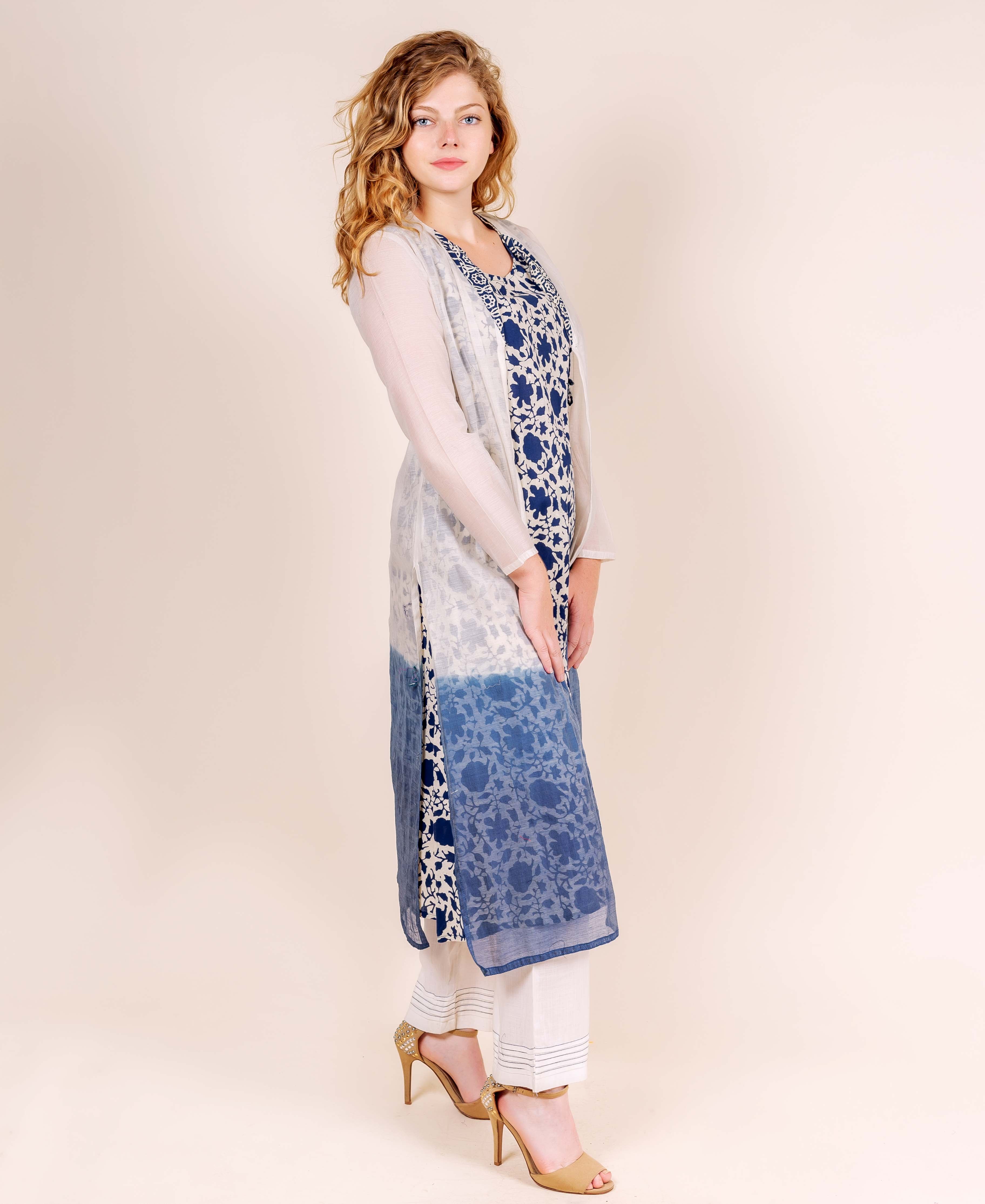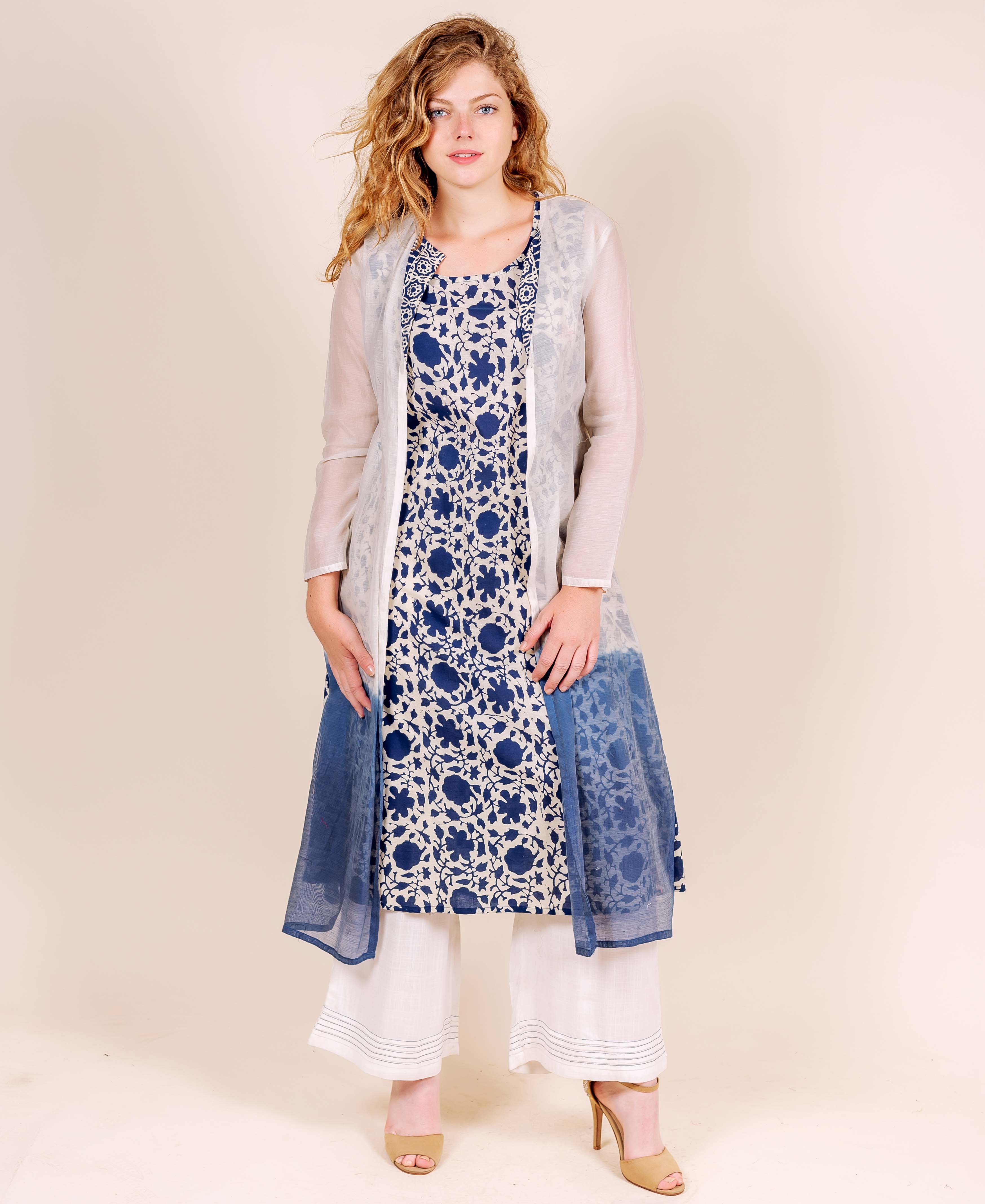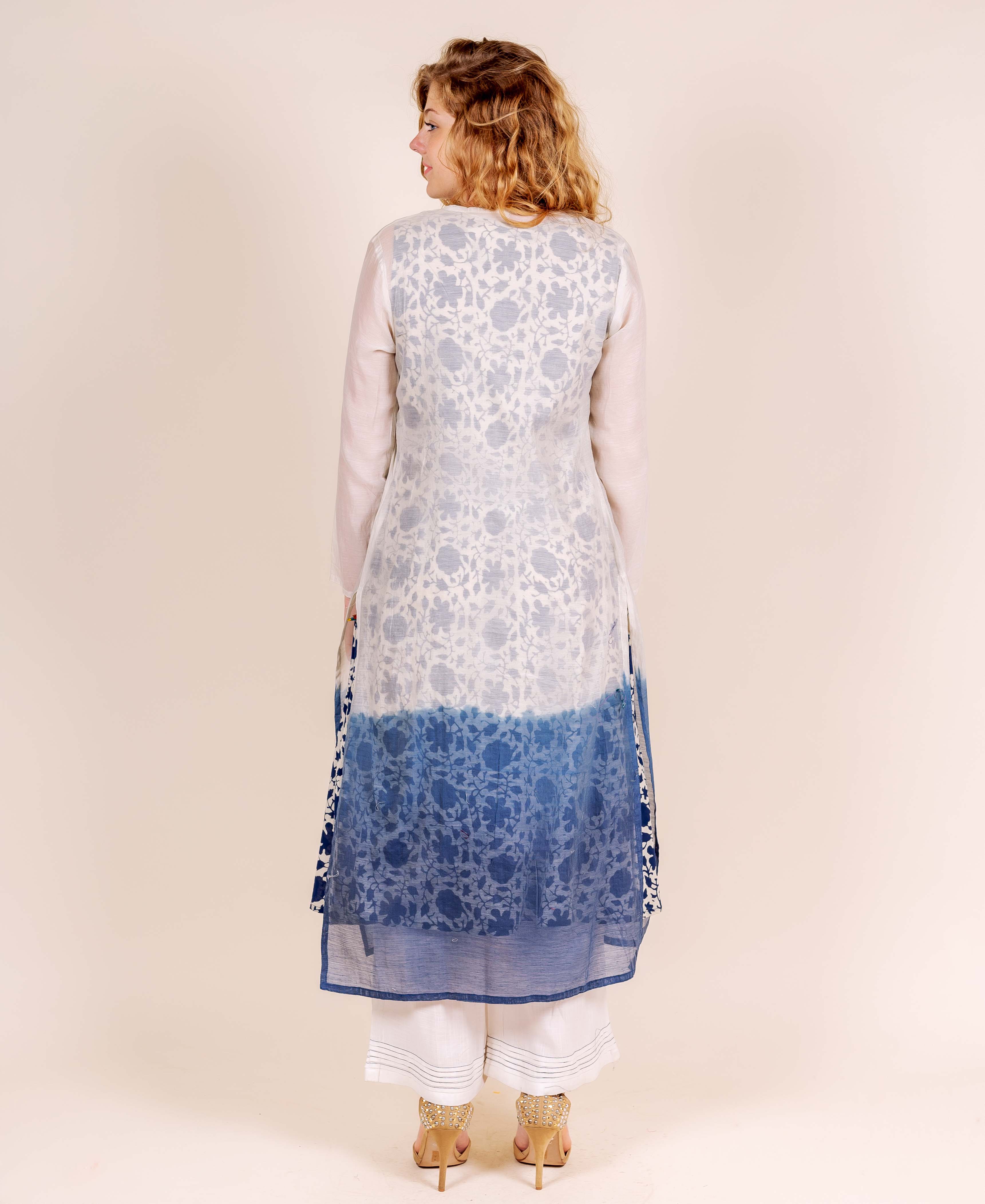 Indo Western Ombre Chanderi Jacket Sleeveless Kurta