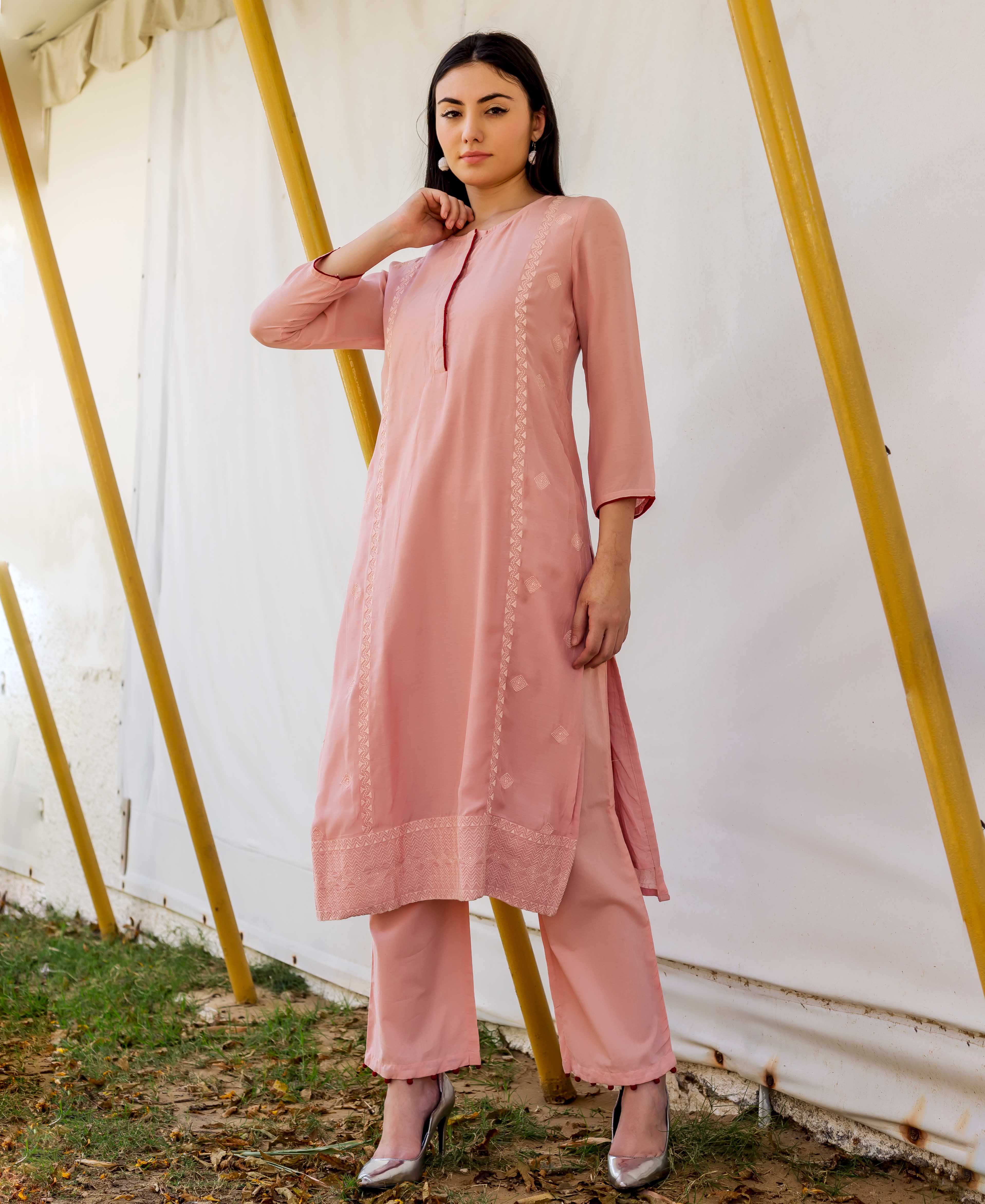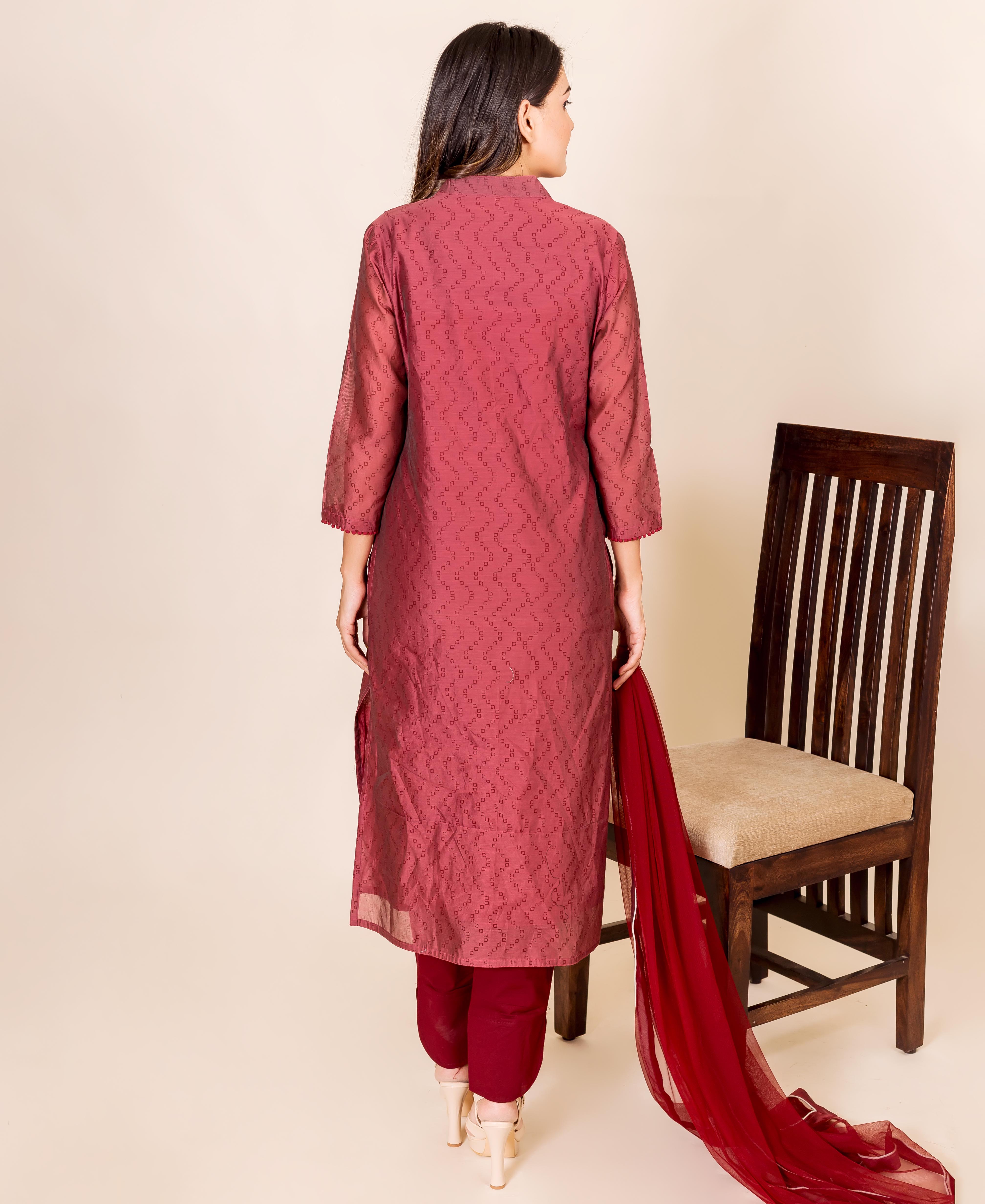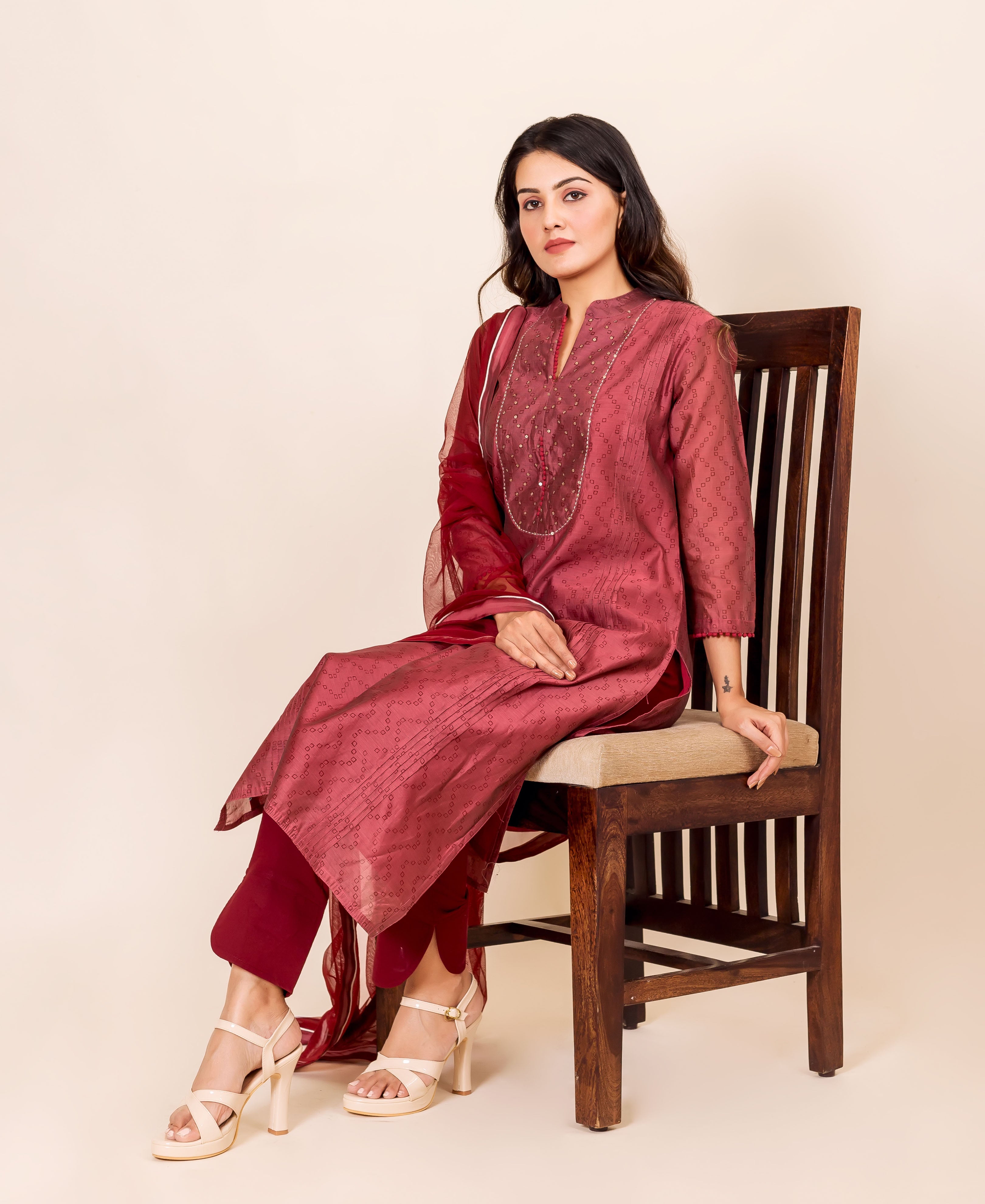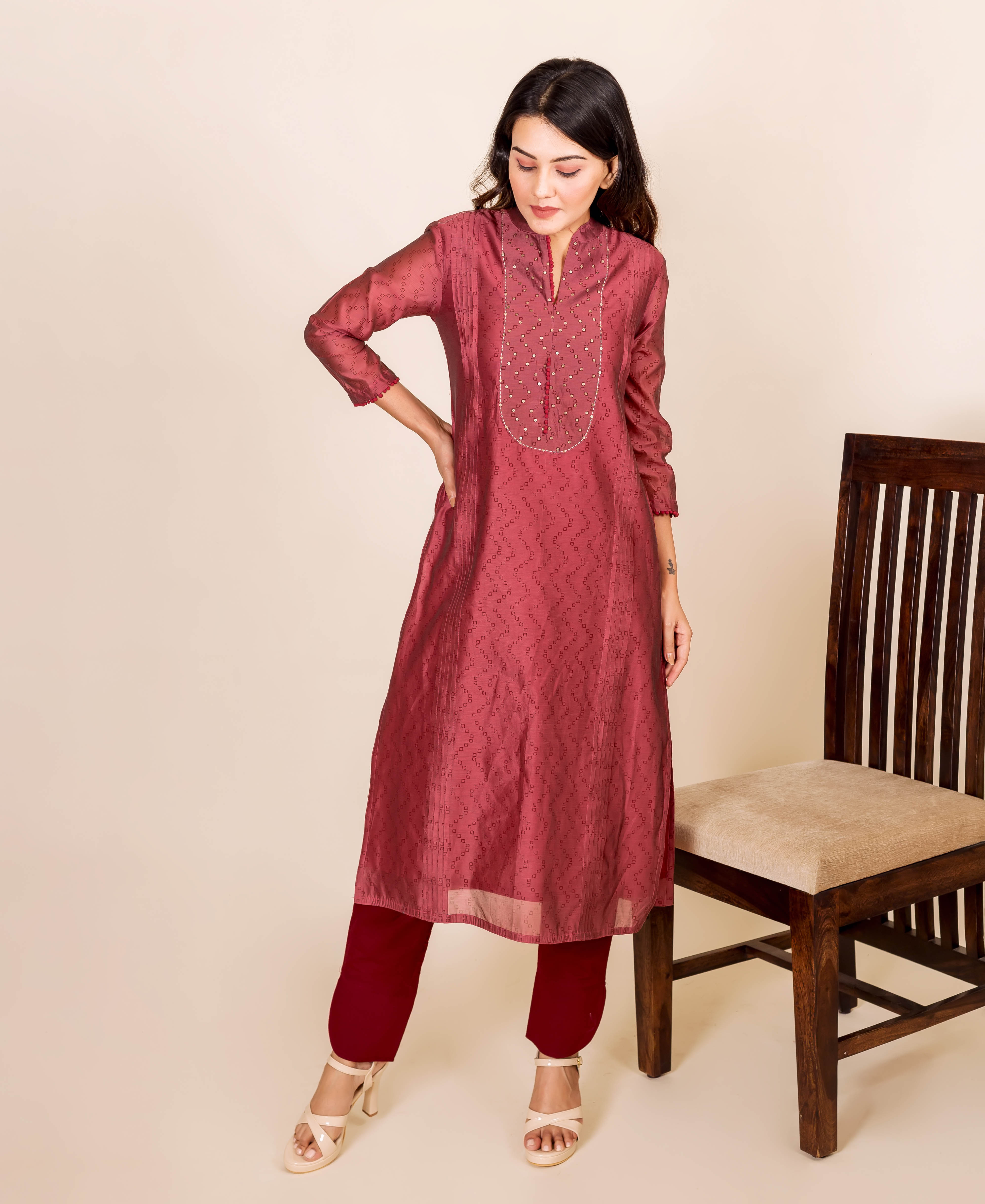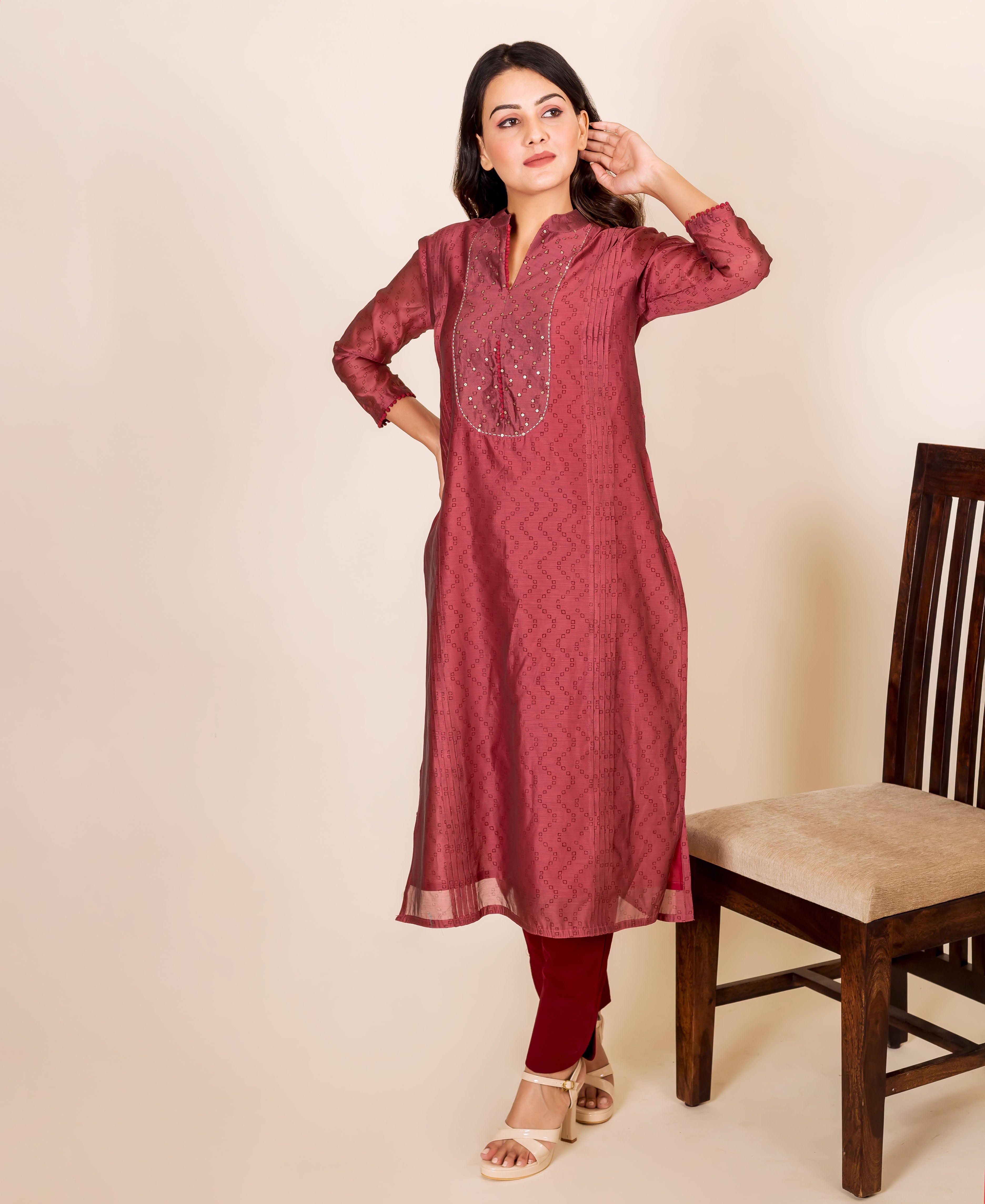 Flat Mandarin Neck Monochrome Embroidered Kurta