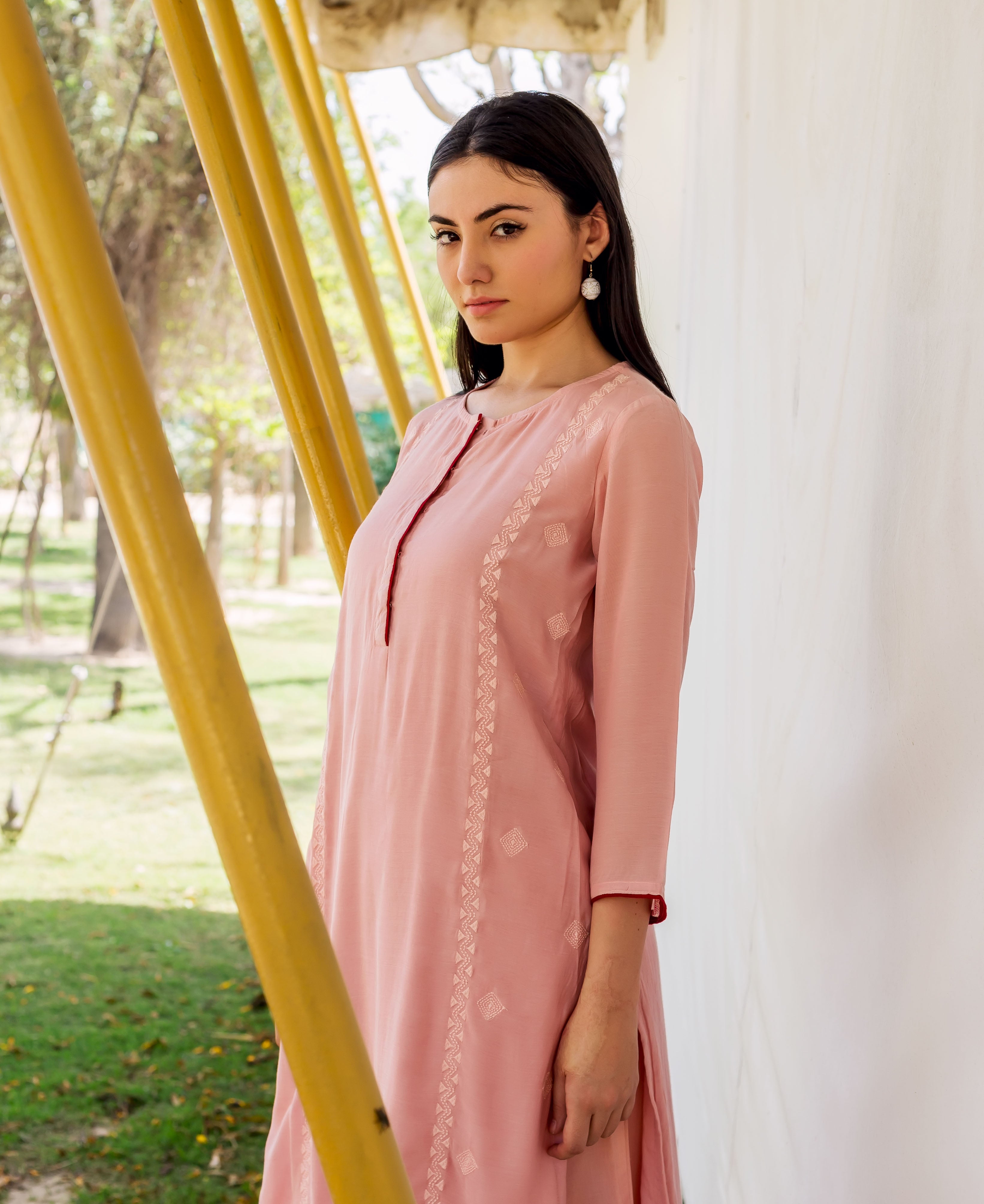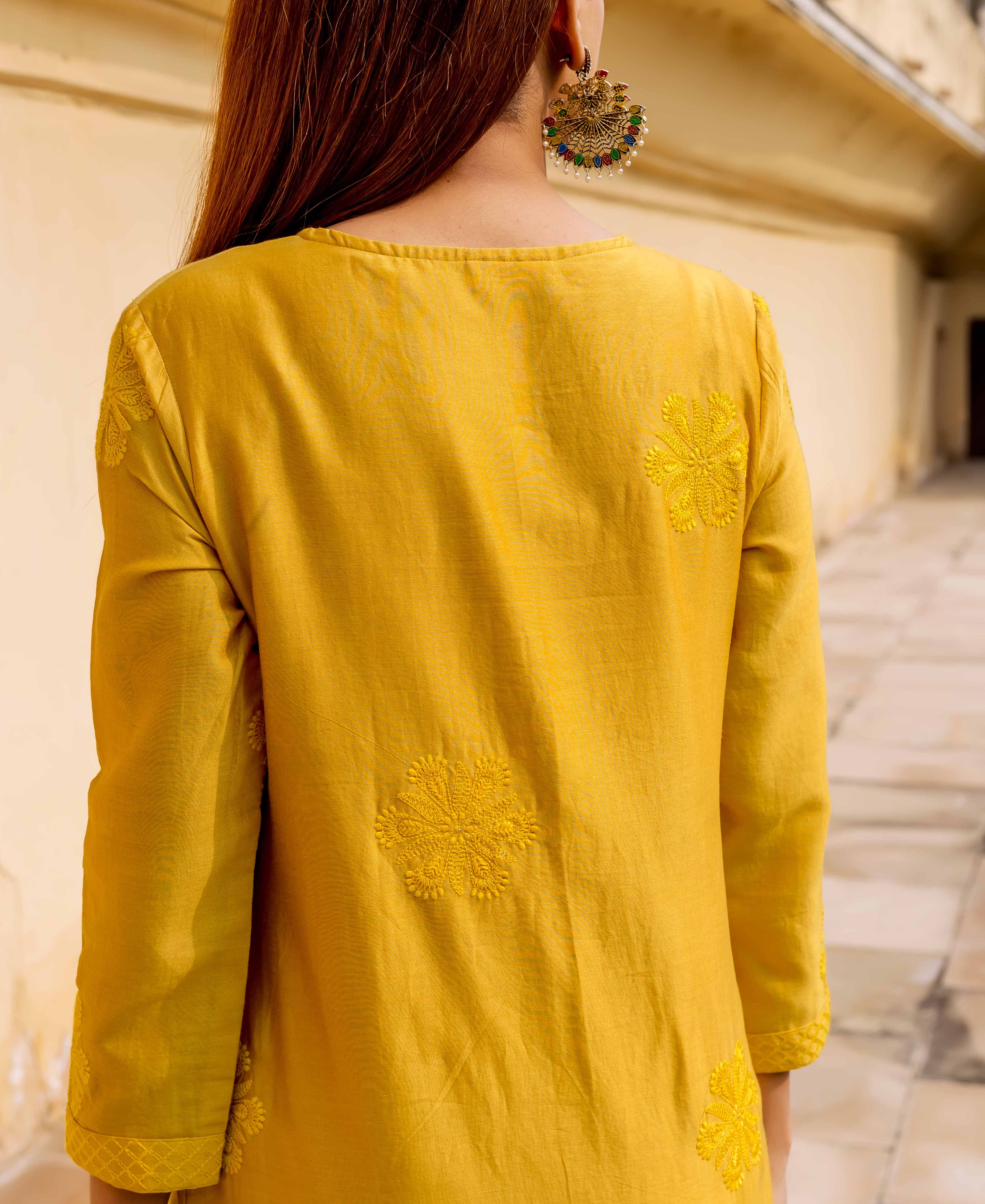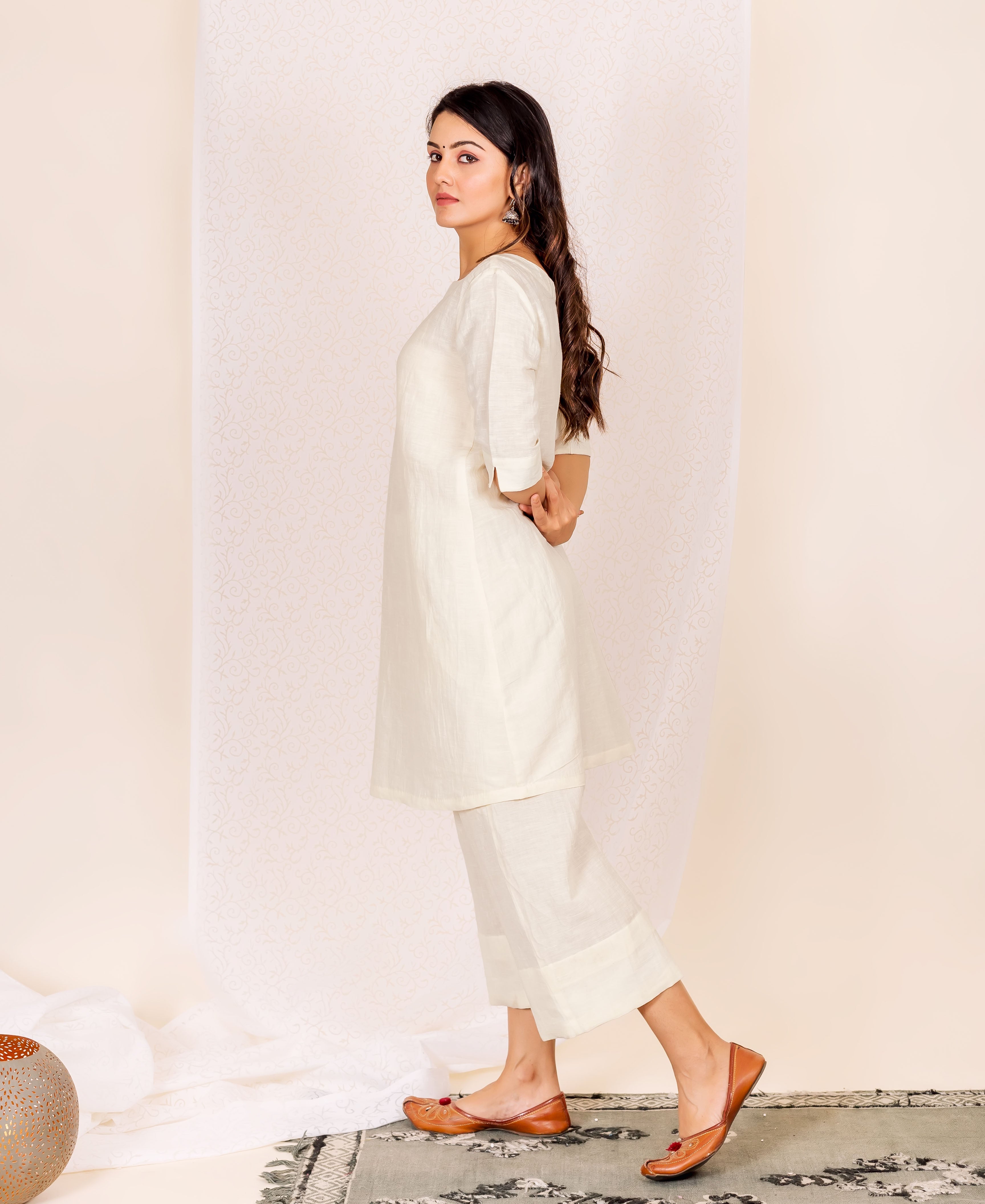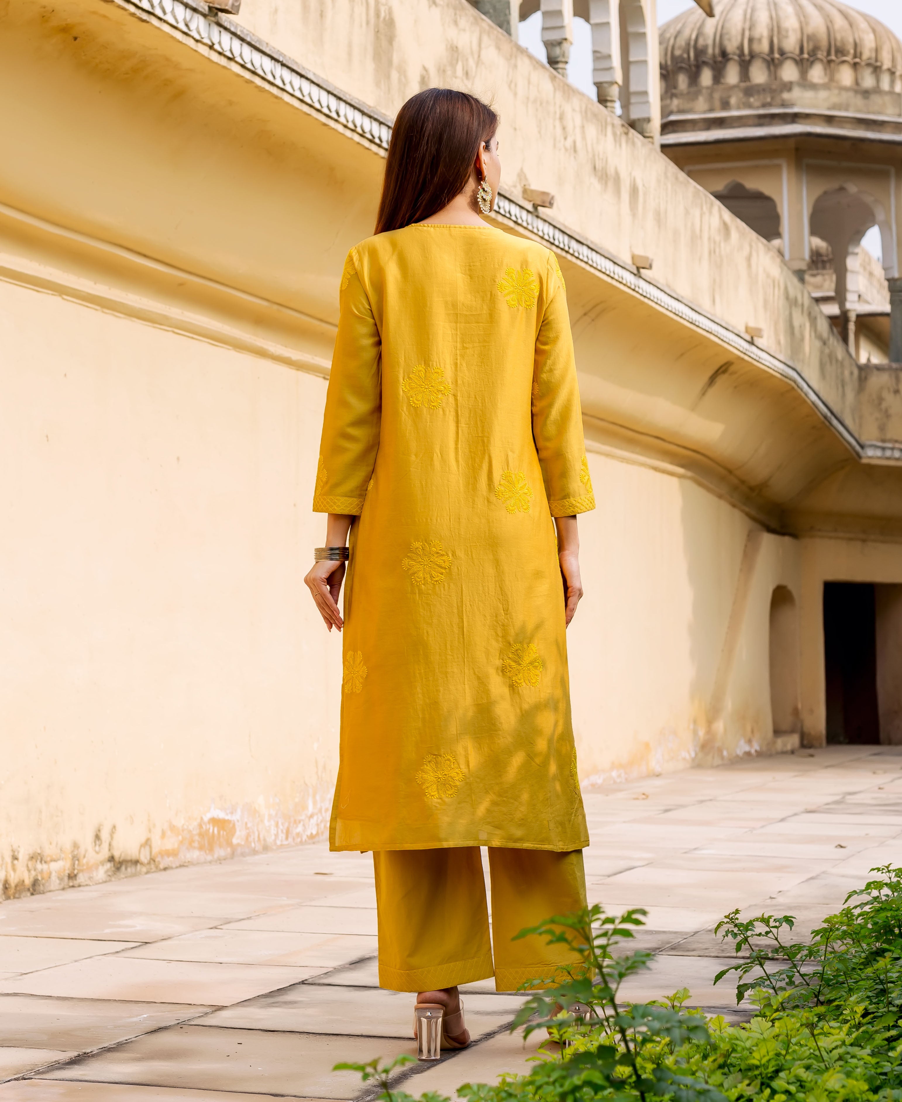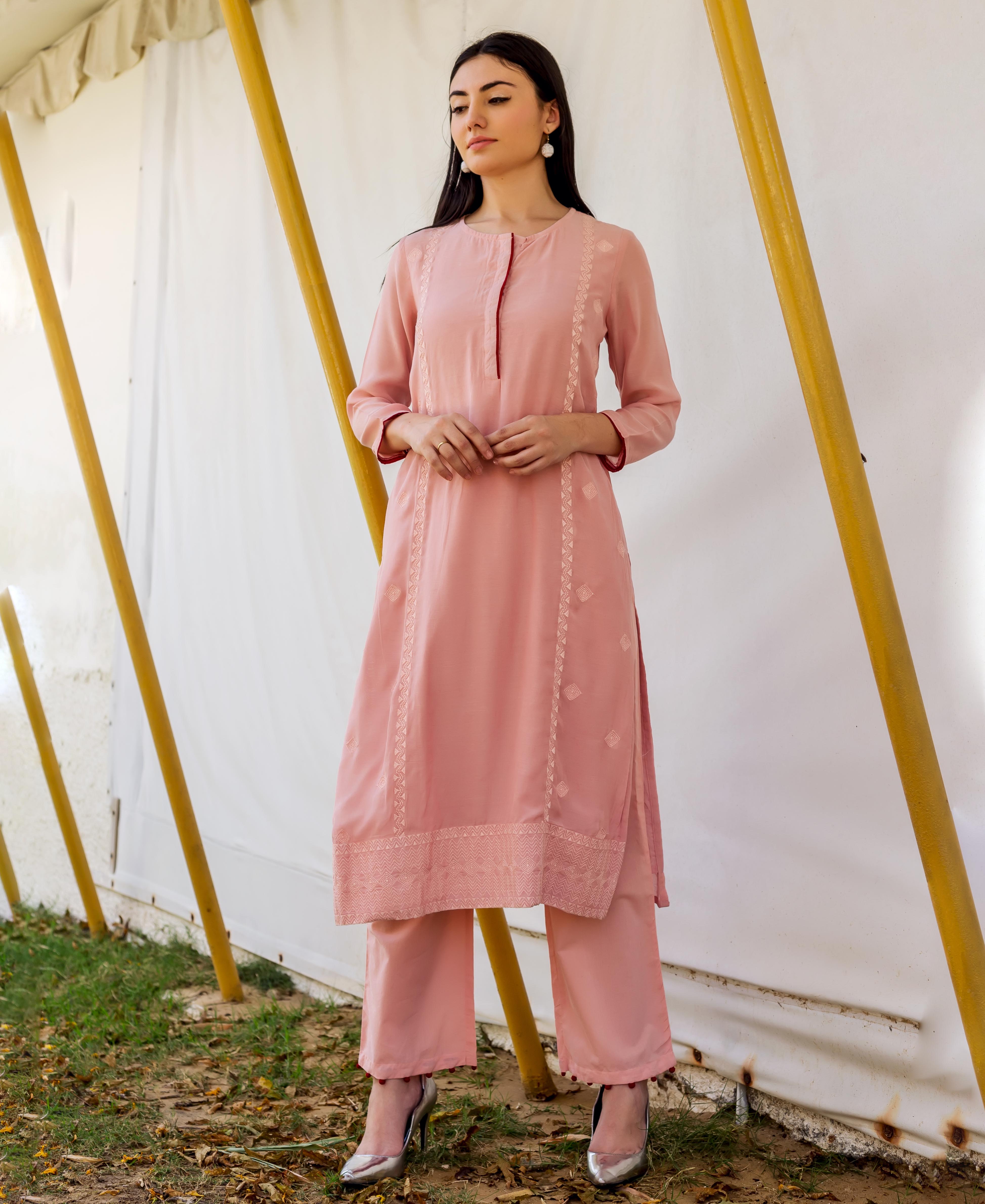 Flat Mandarin Neck Monochrome Embroidered Kurta