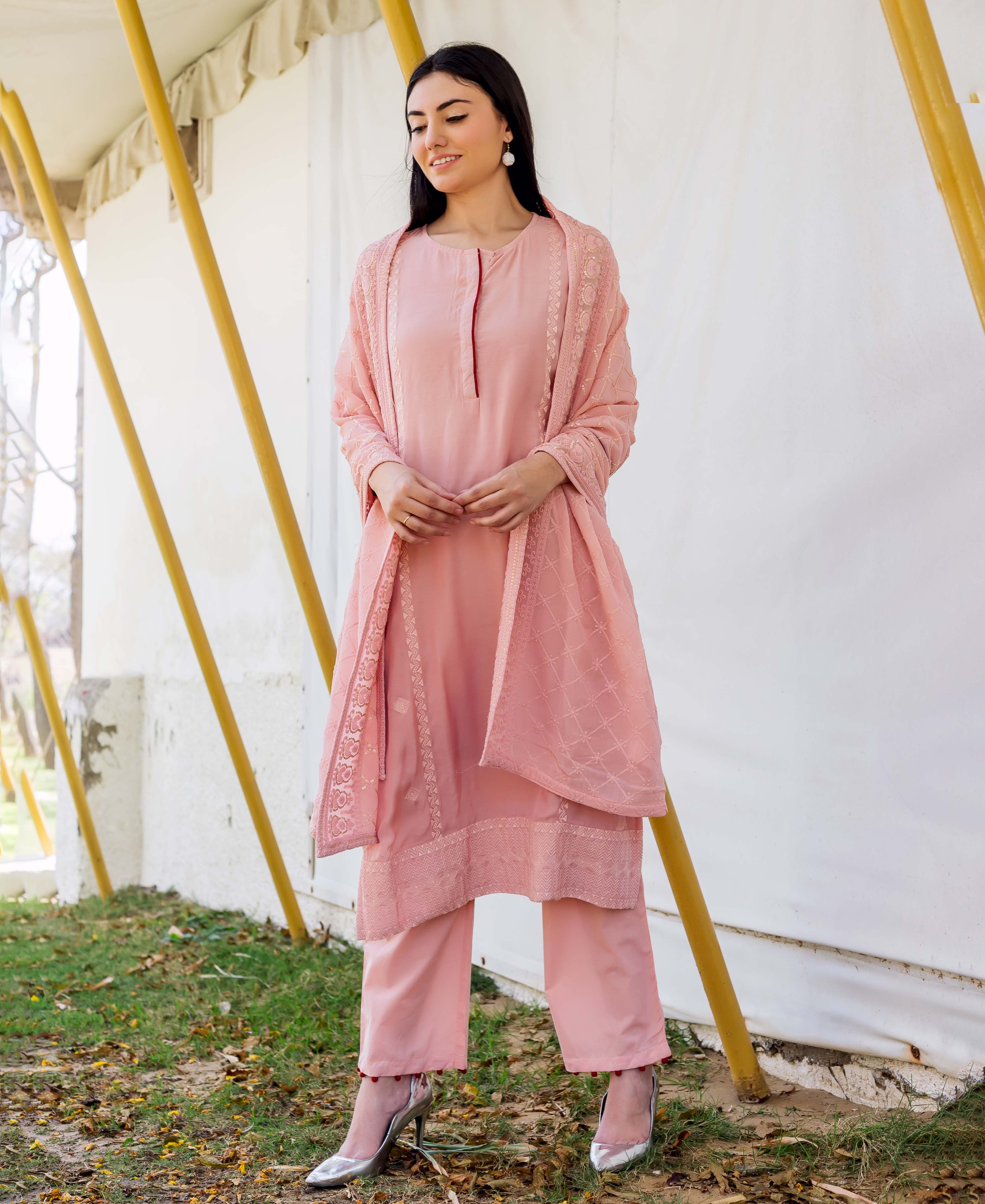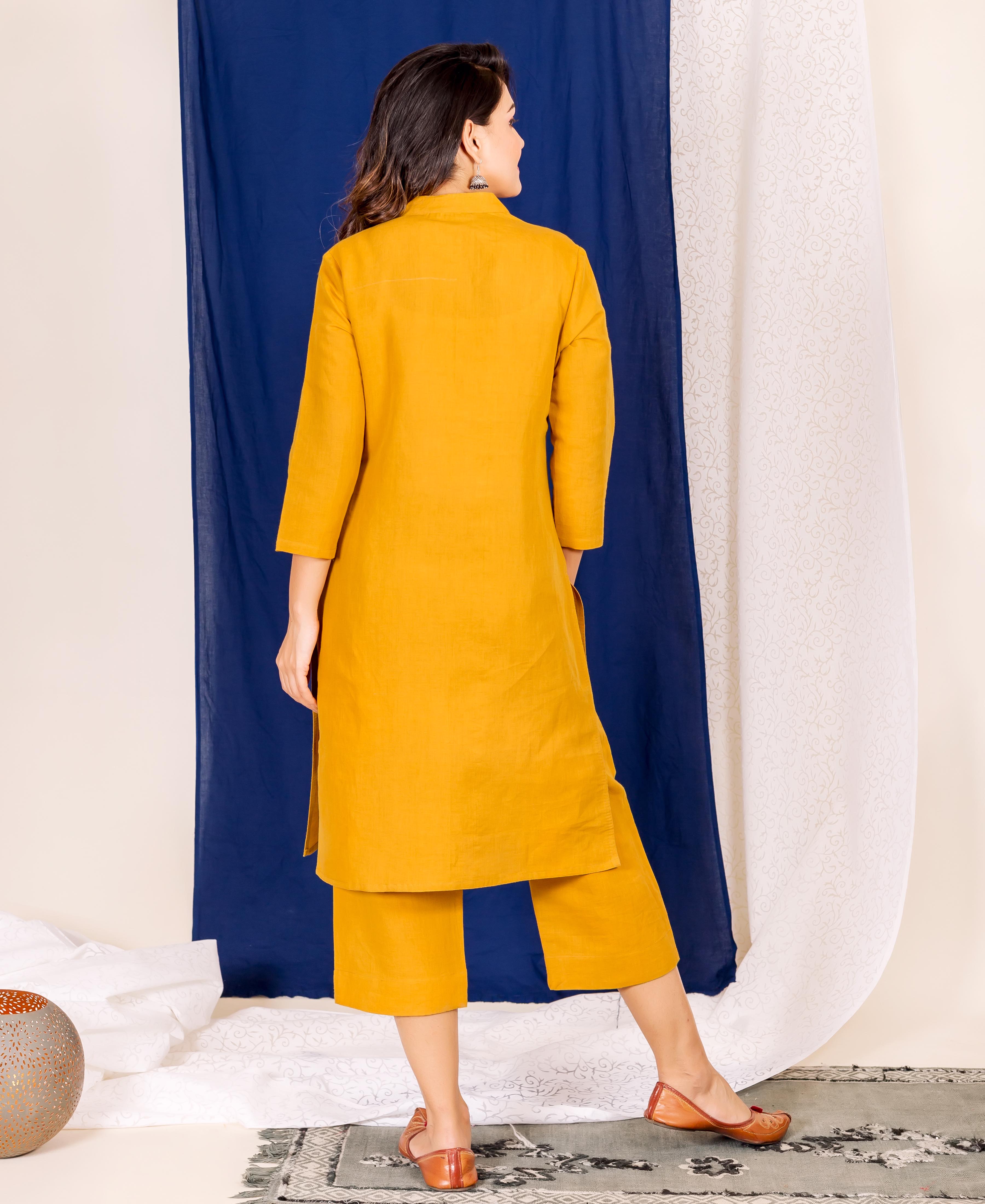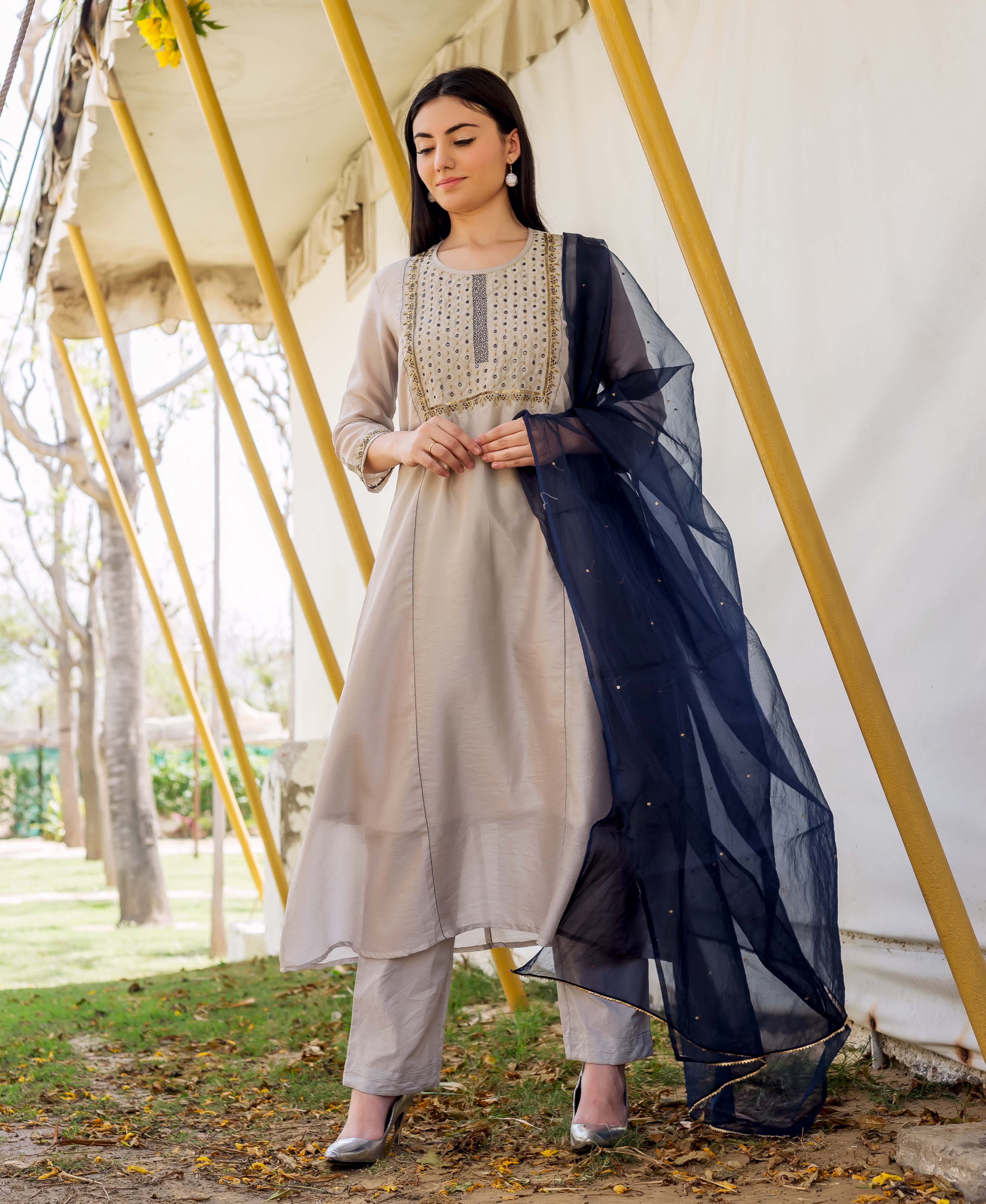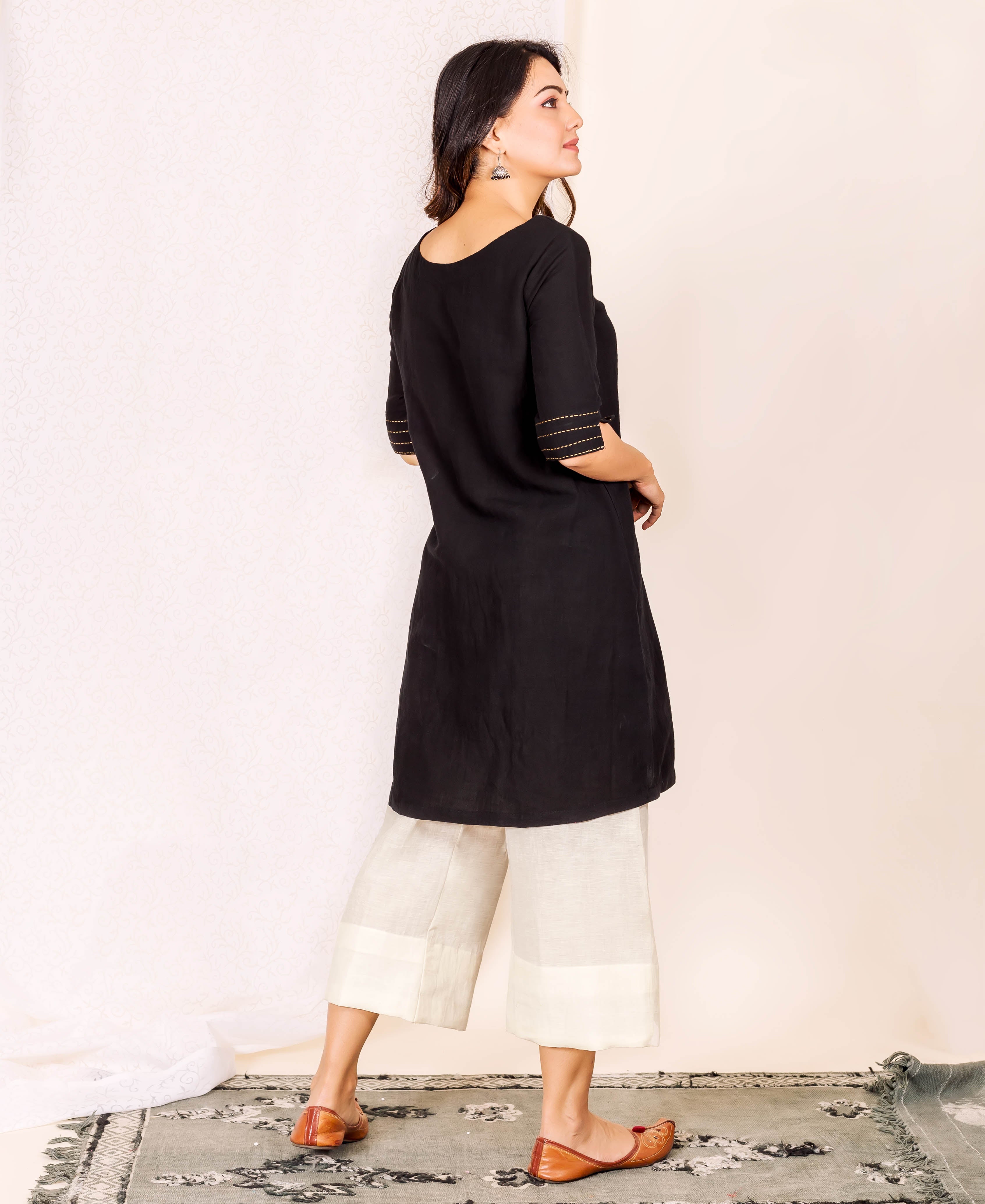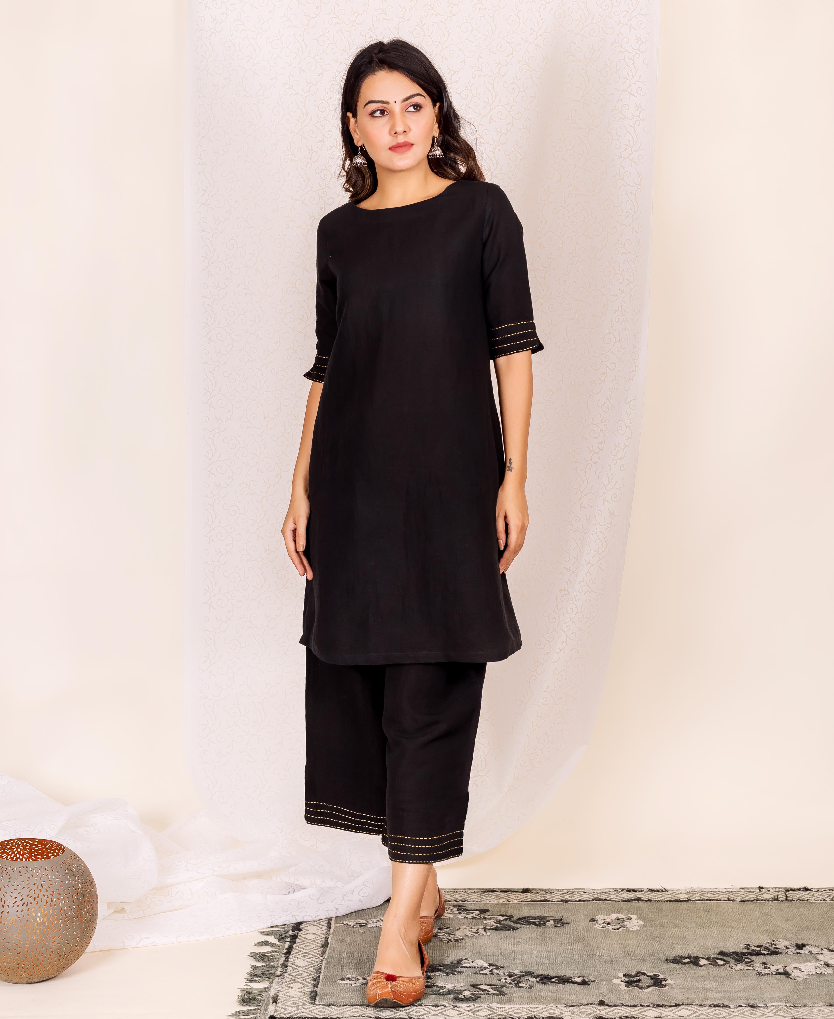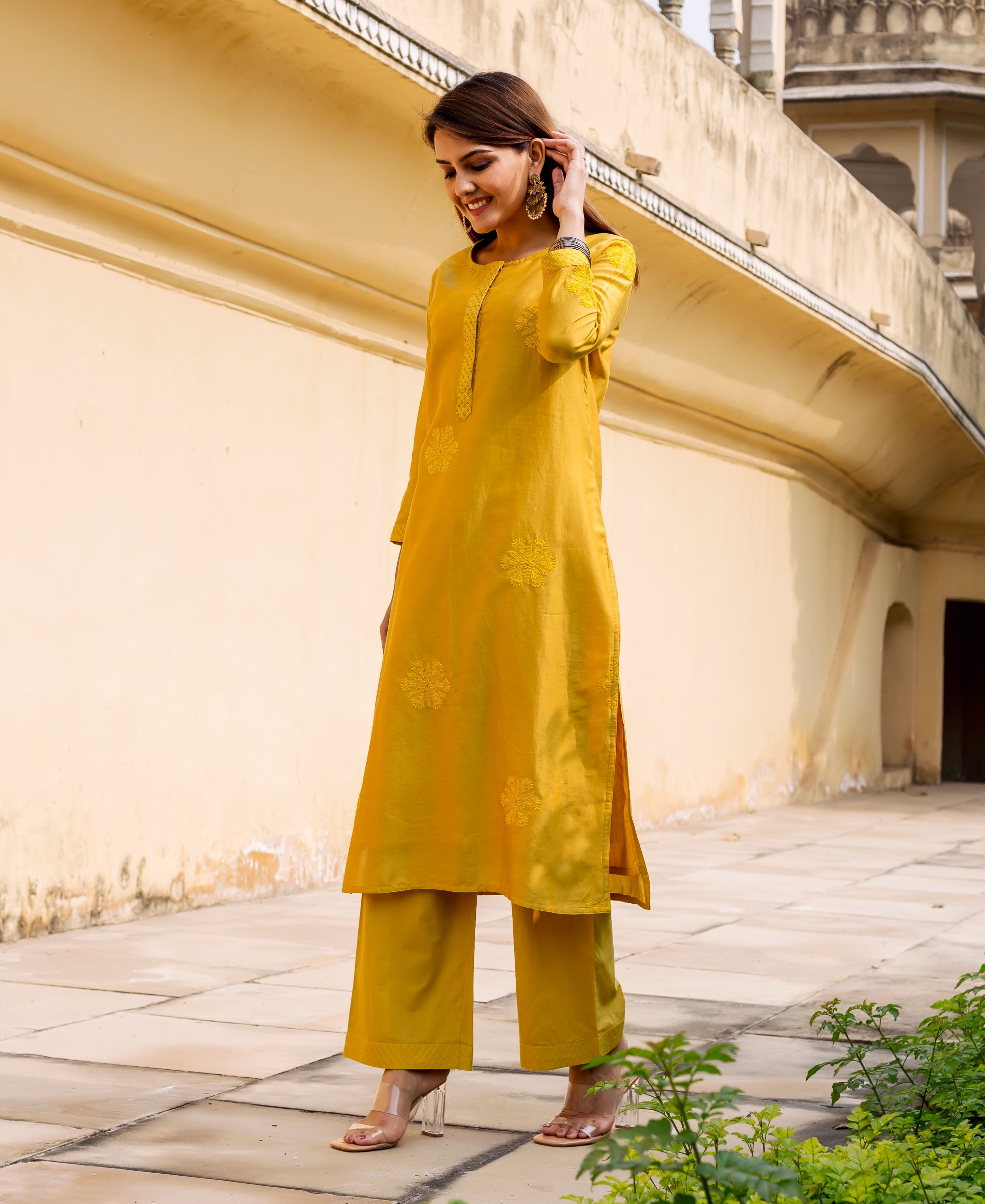 Flat Mandarin Neck Monochrome Embroidered Kurta