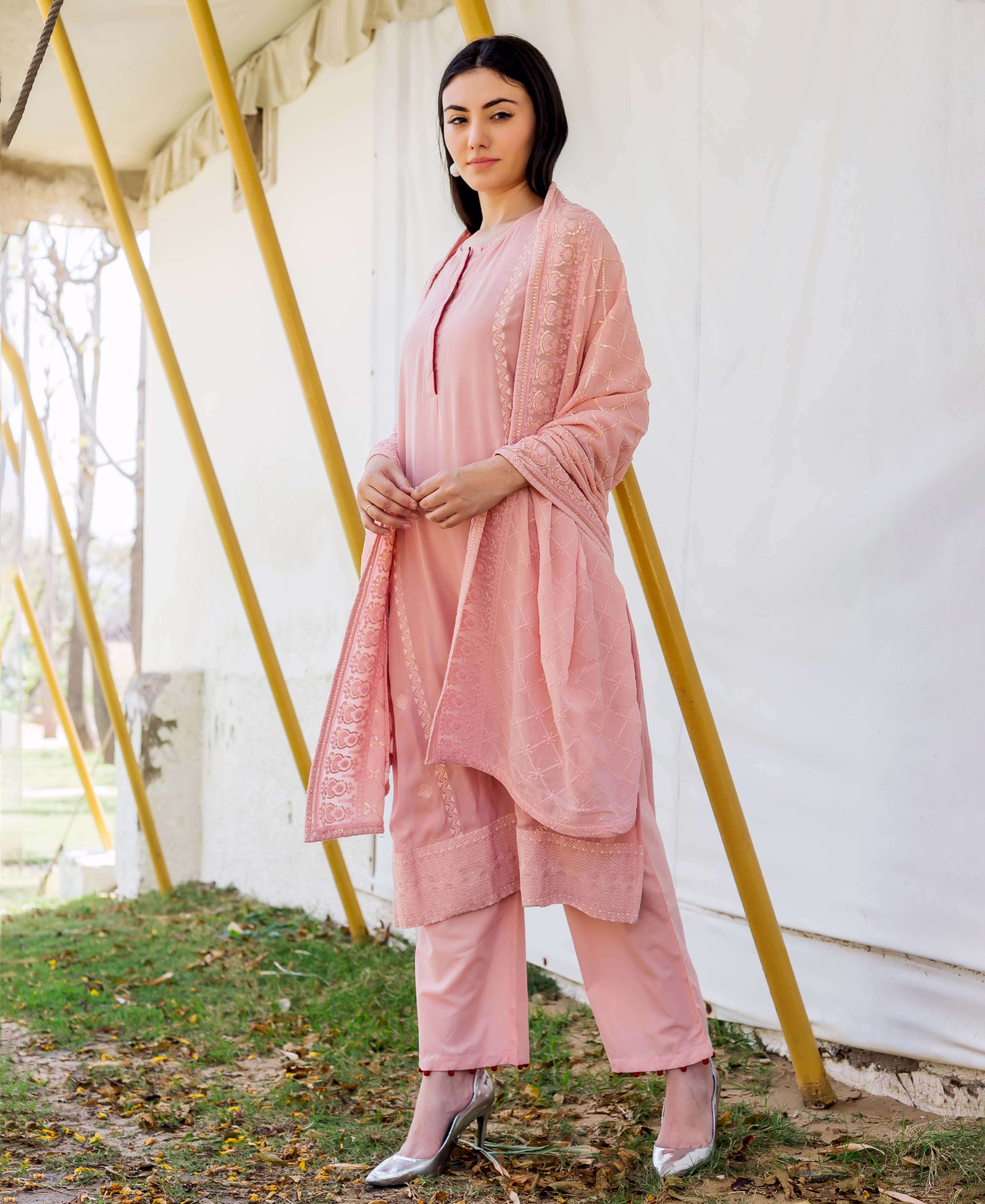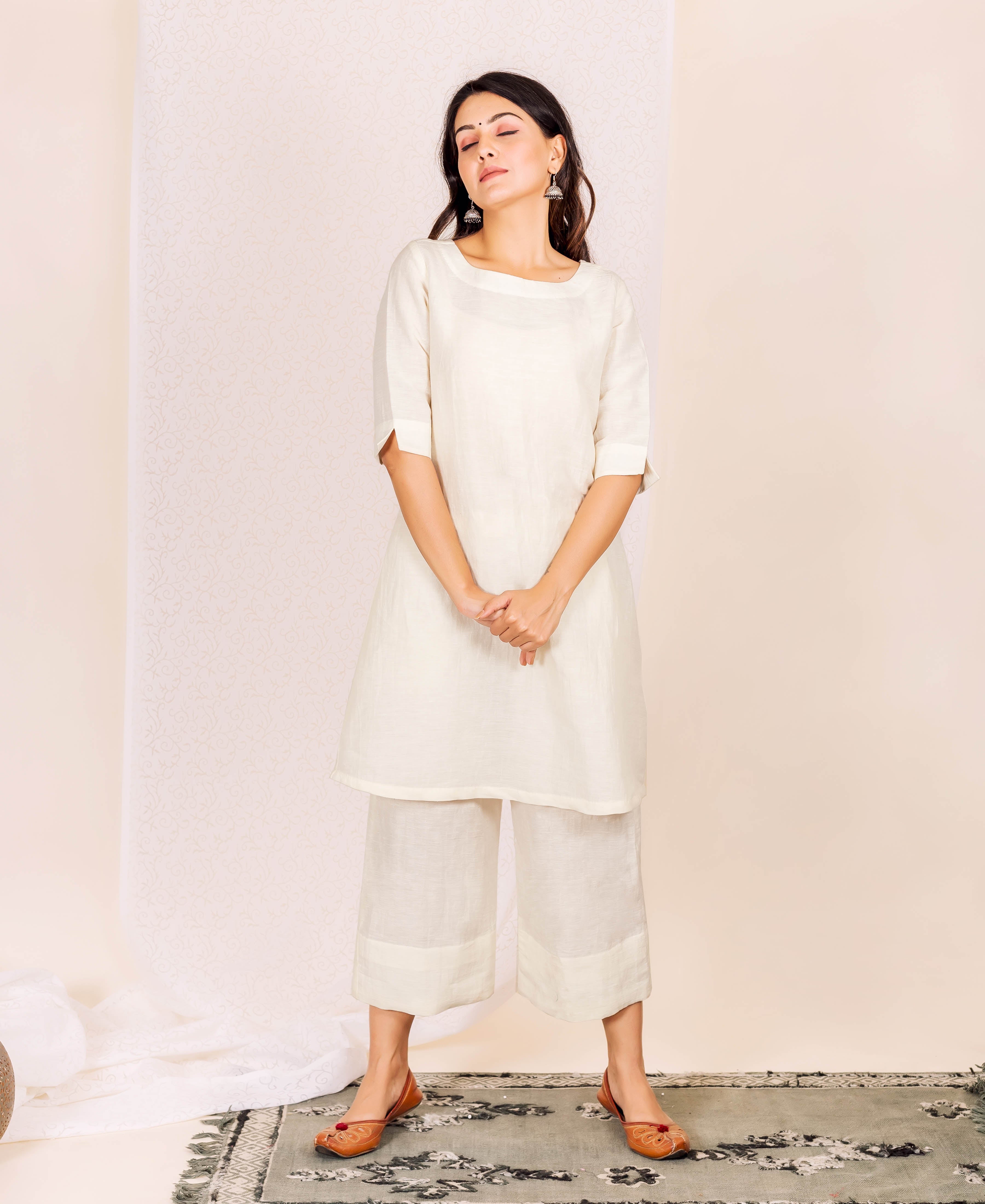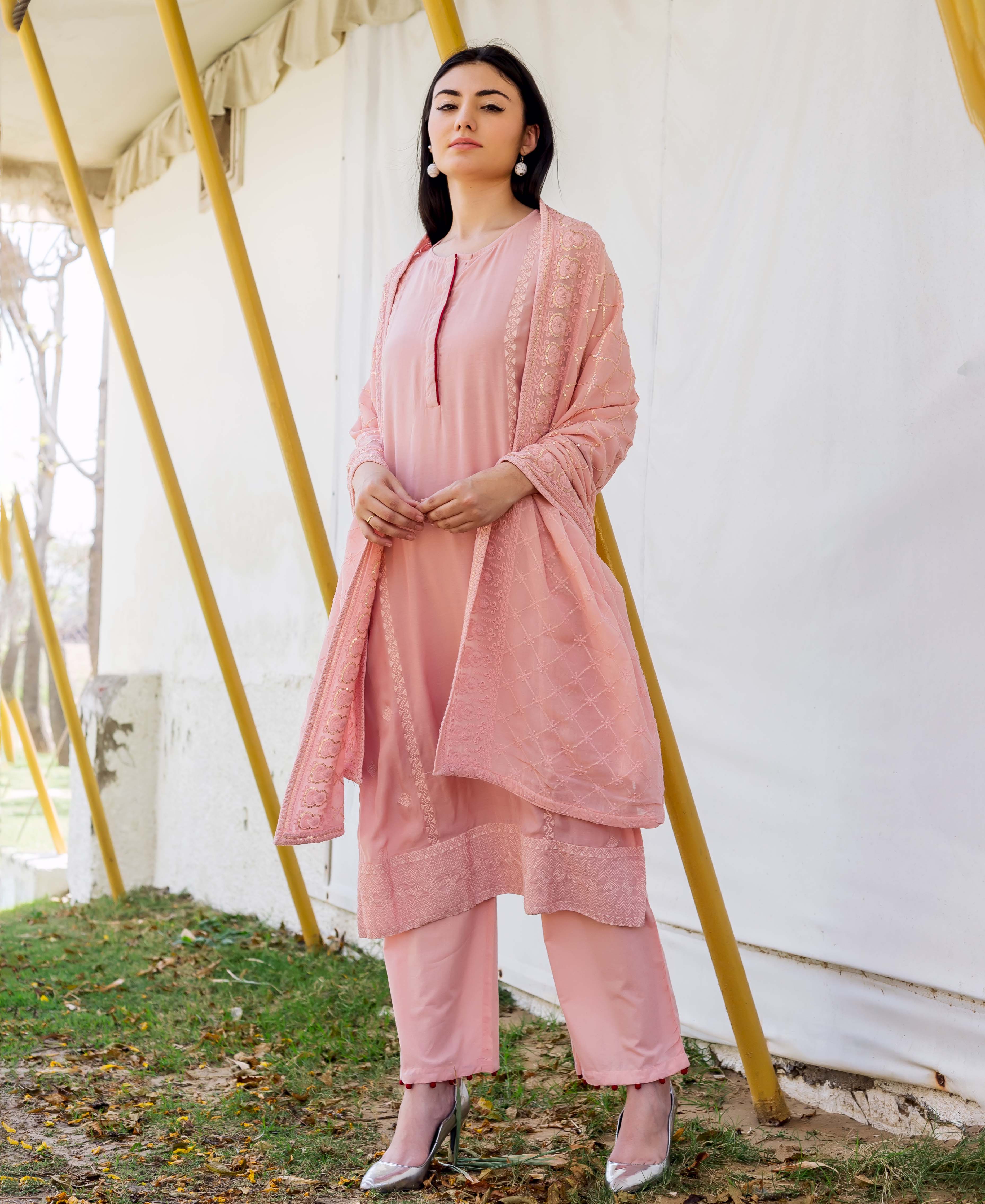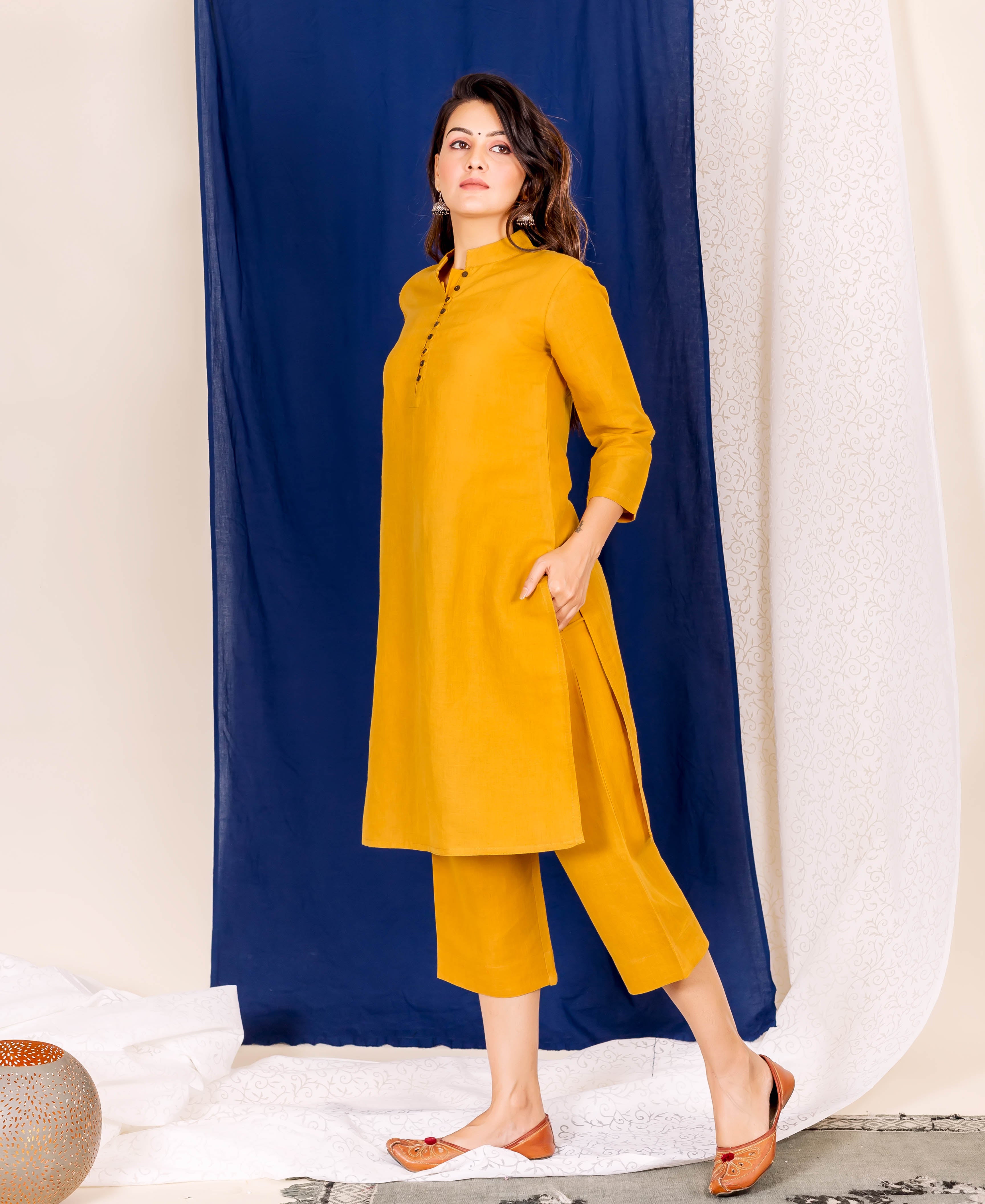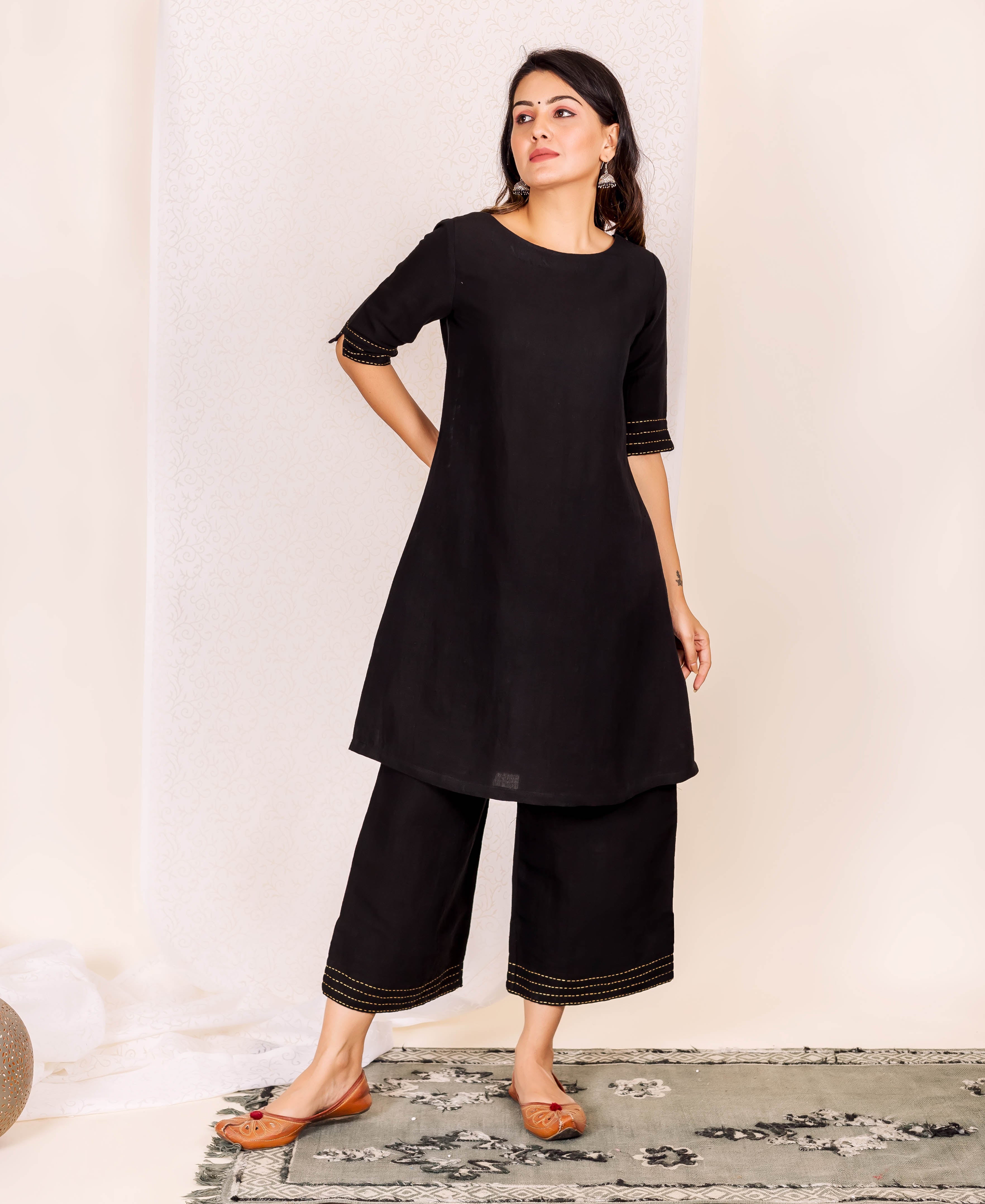 Flat Mandarin Neck Monochrome Embroidered Kurta
