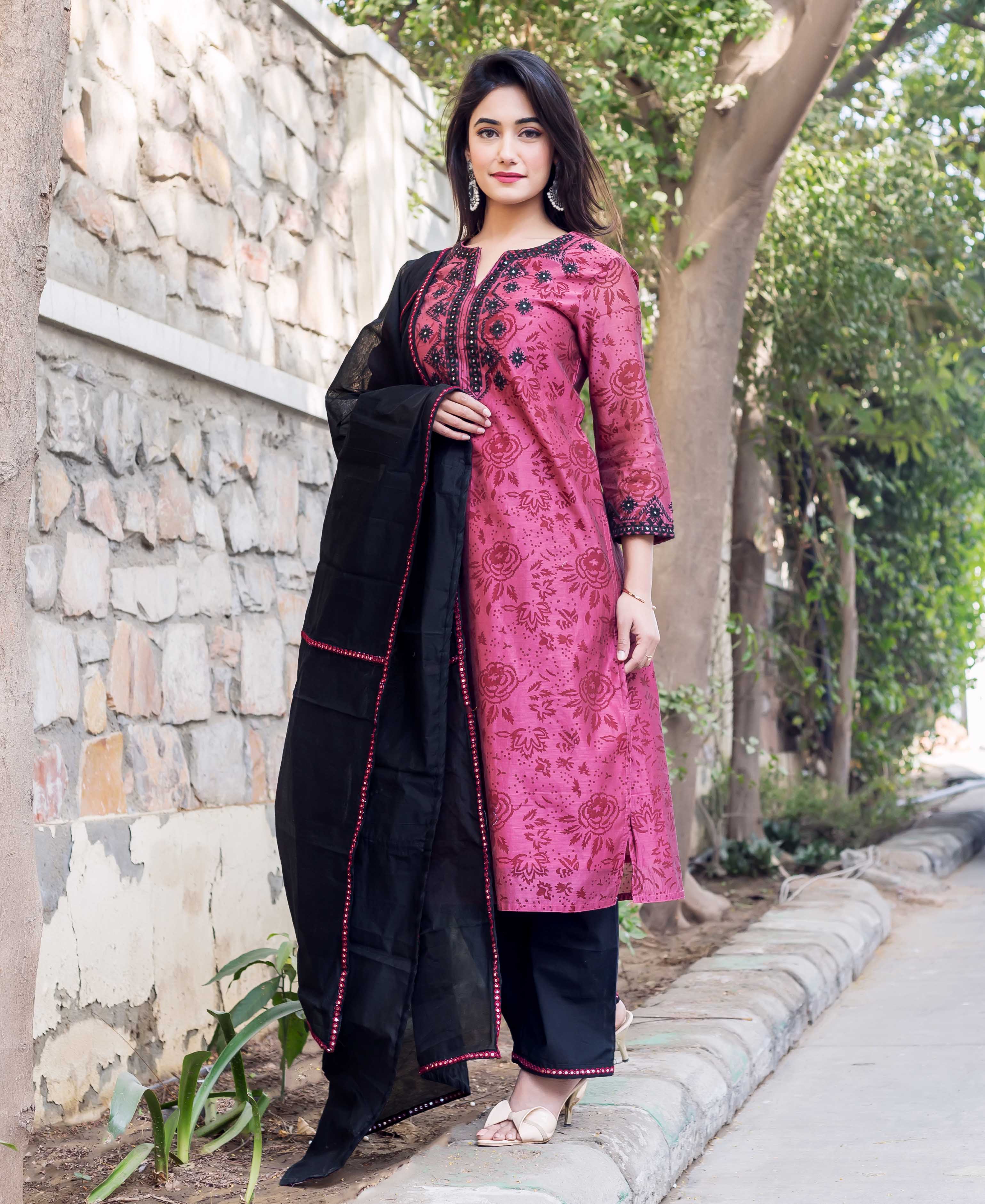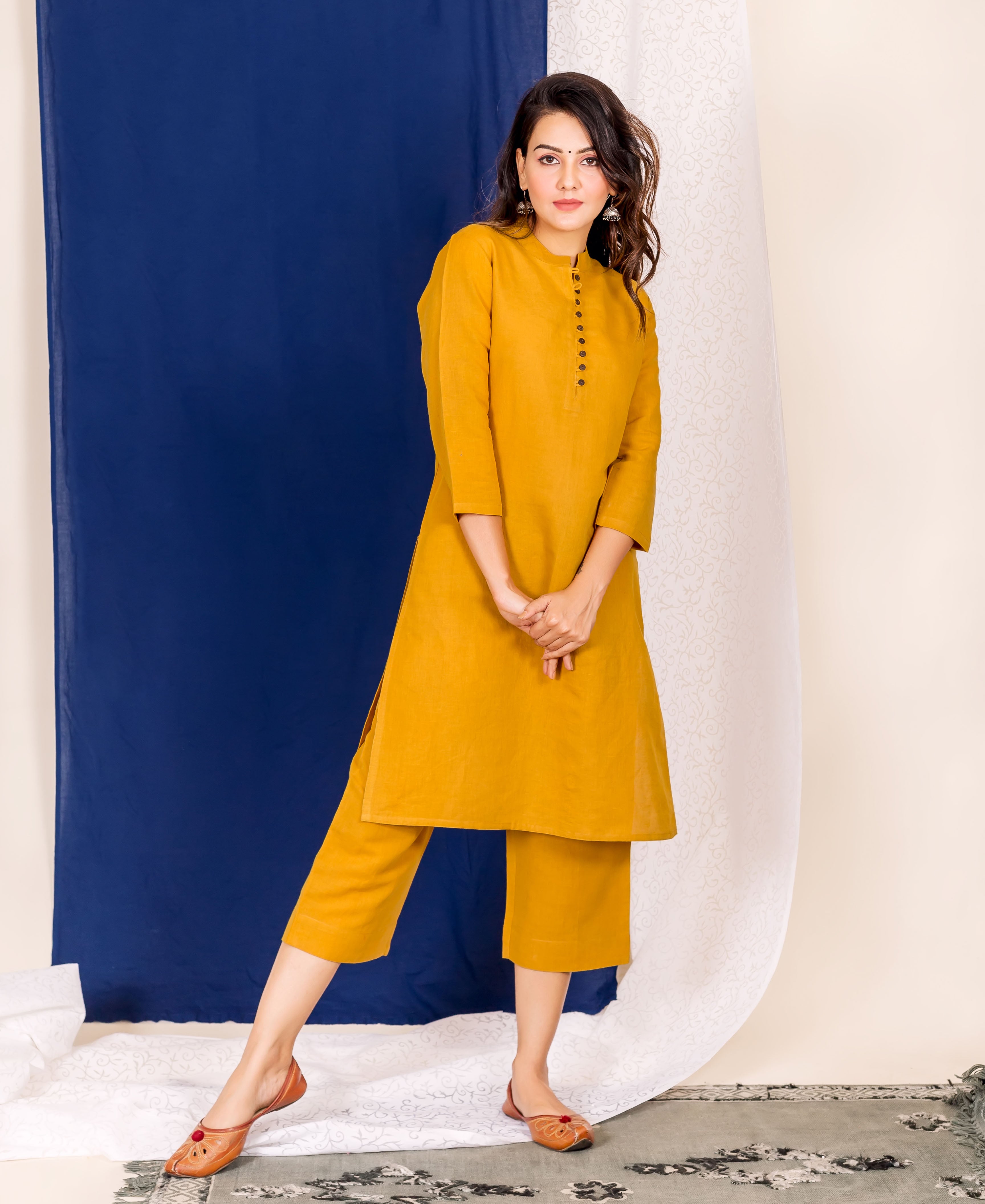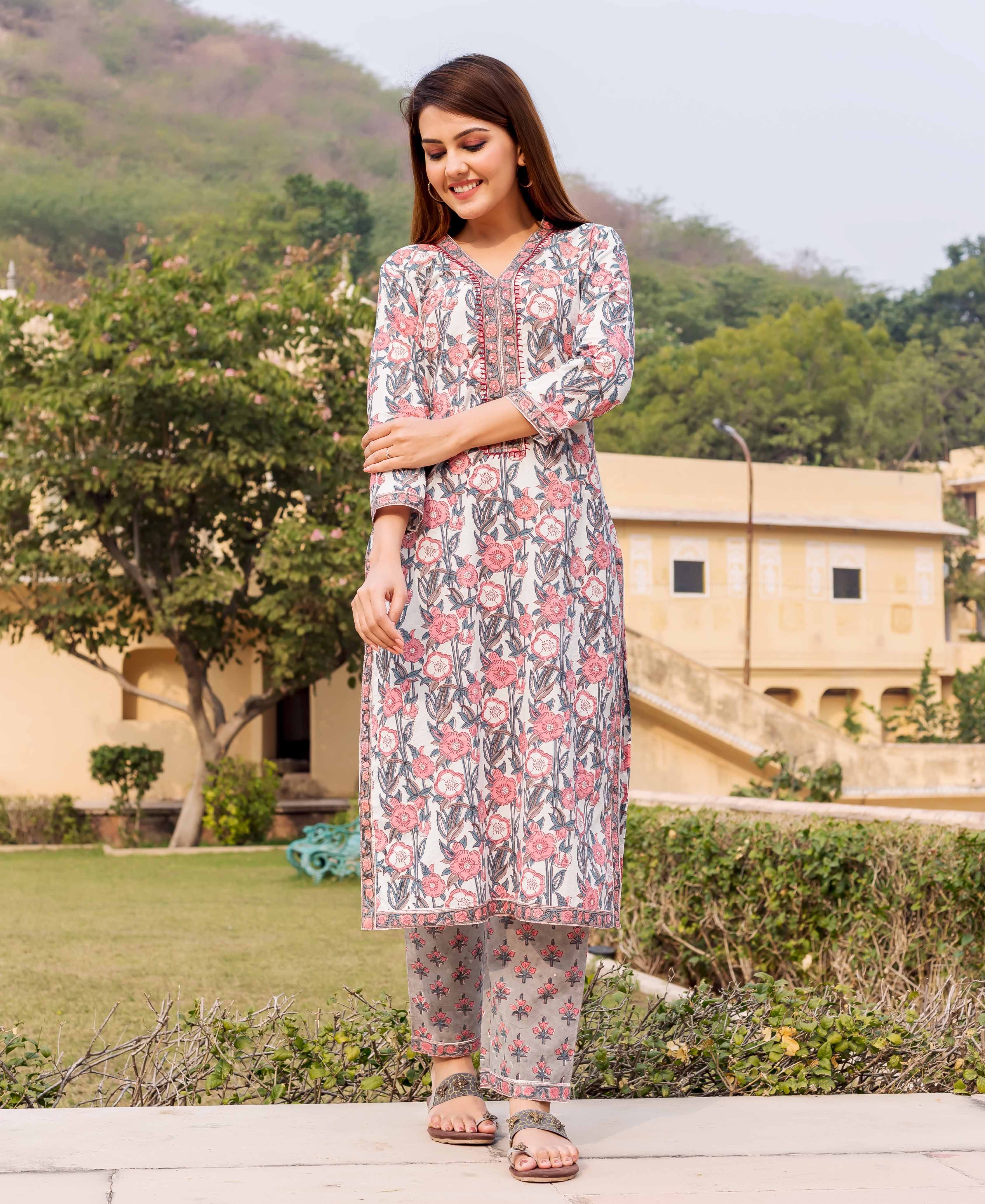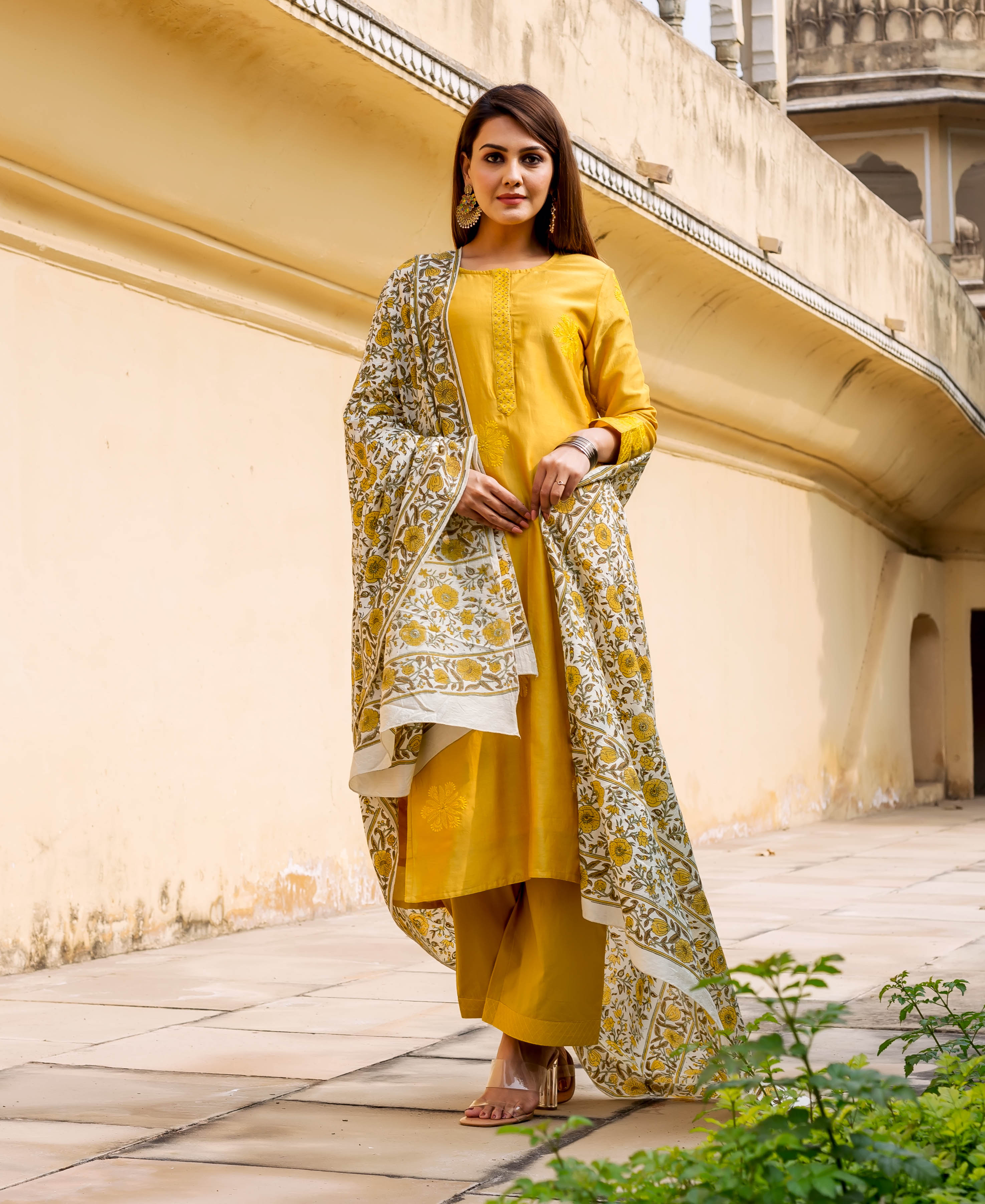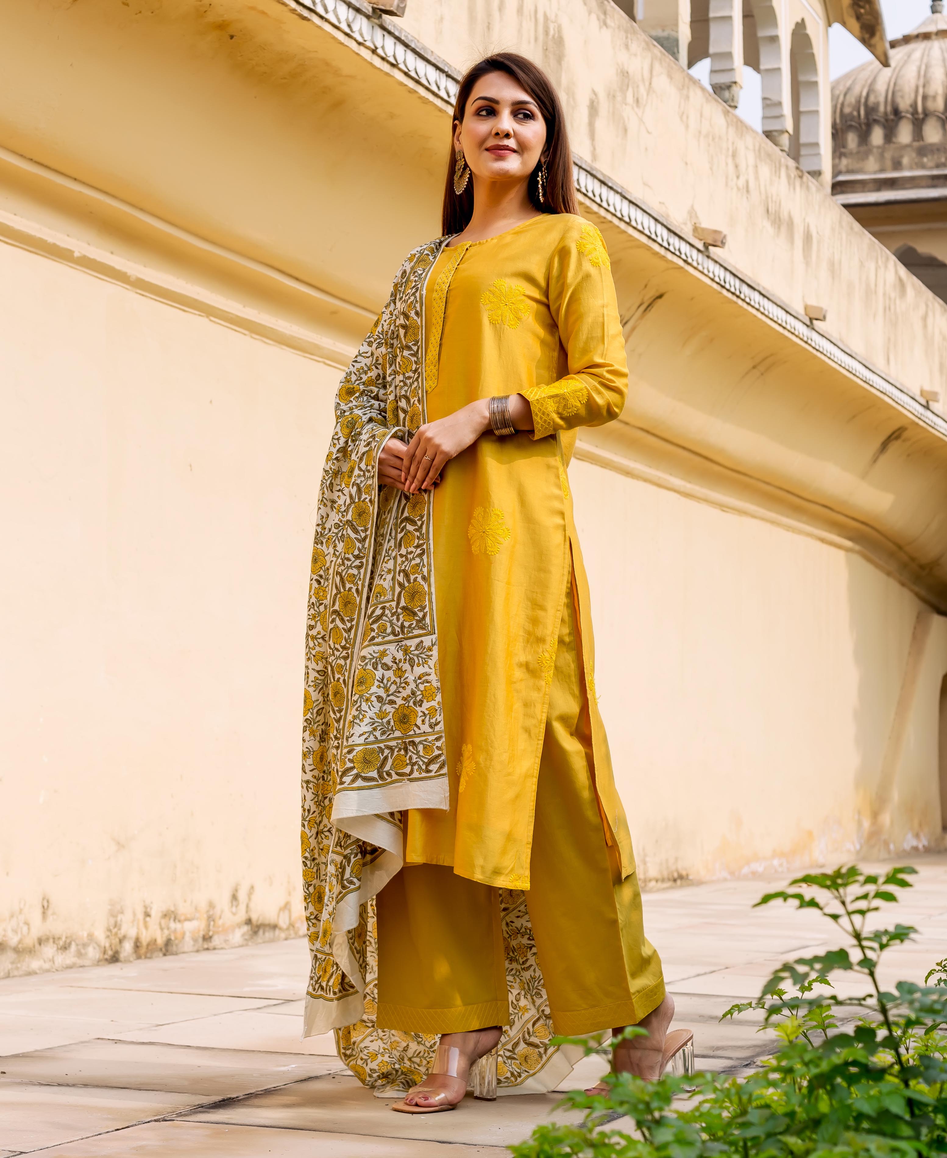 Flat Mandarin Neck Monochrome Embroidered Kurta