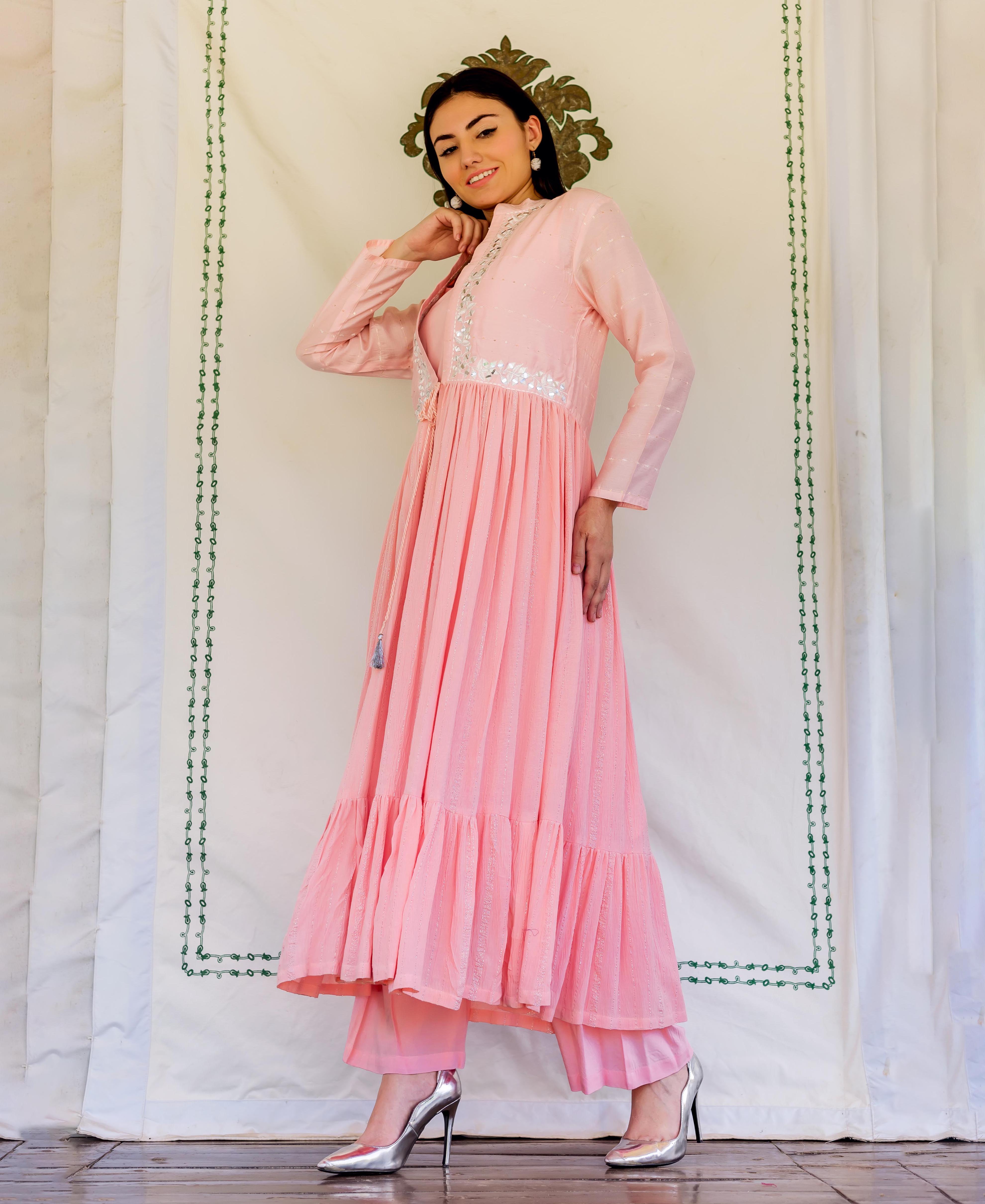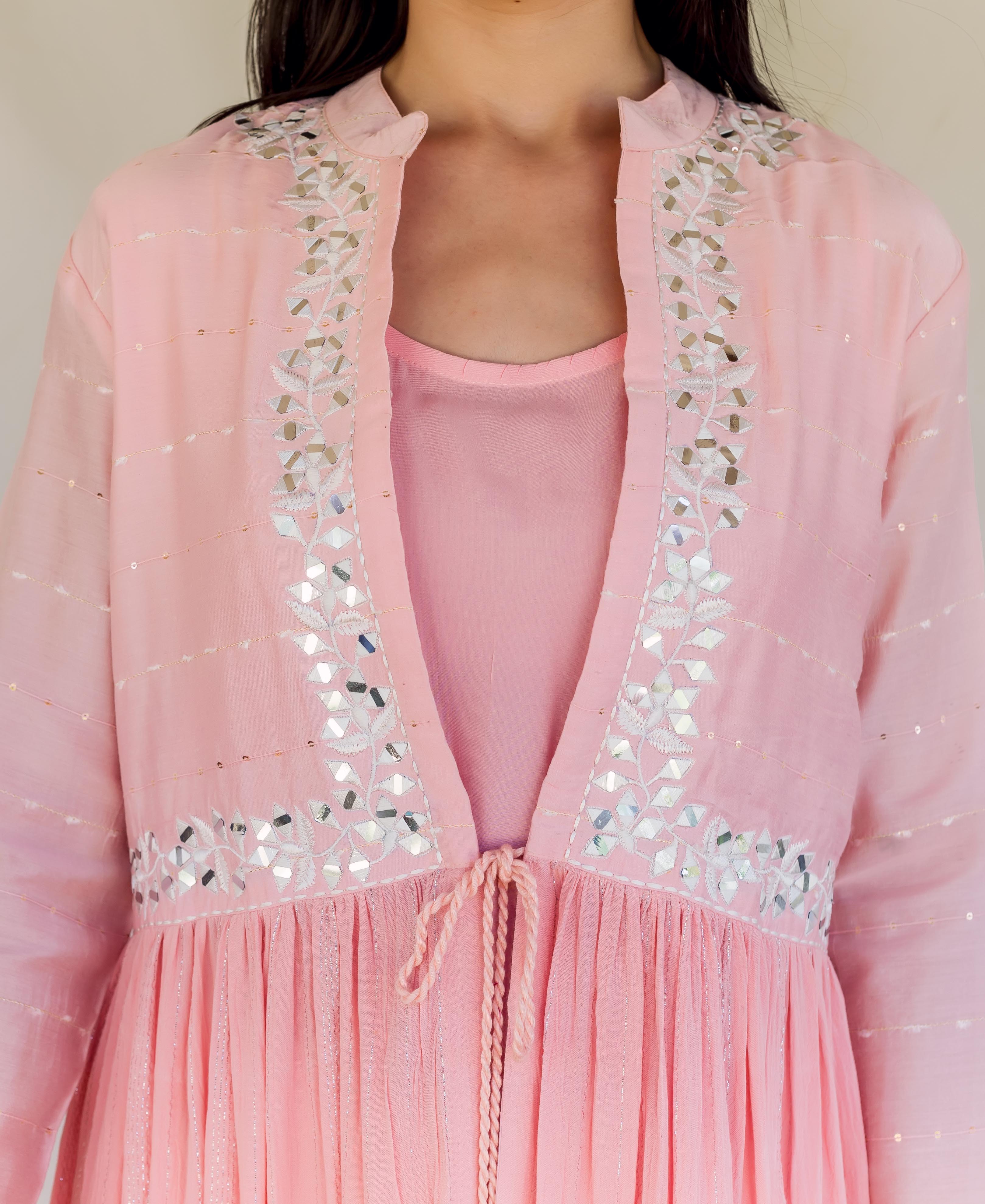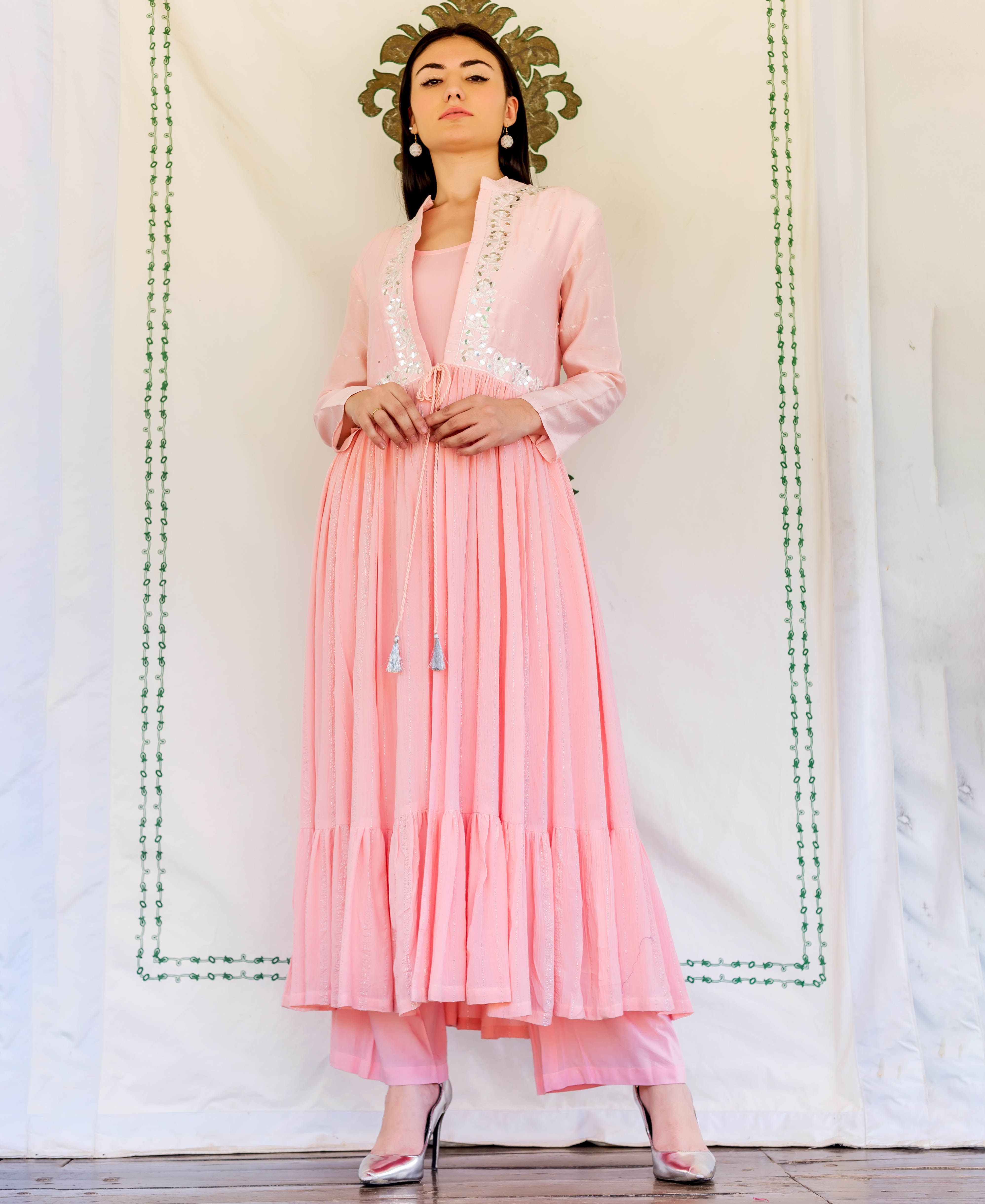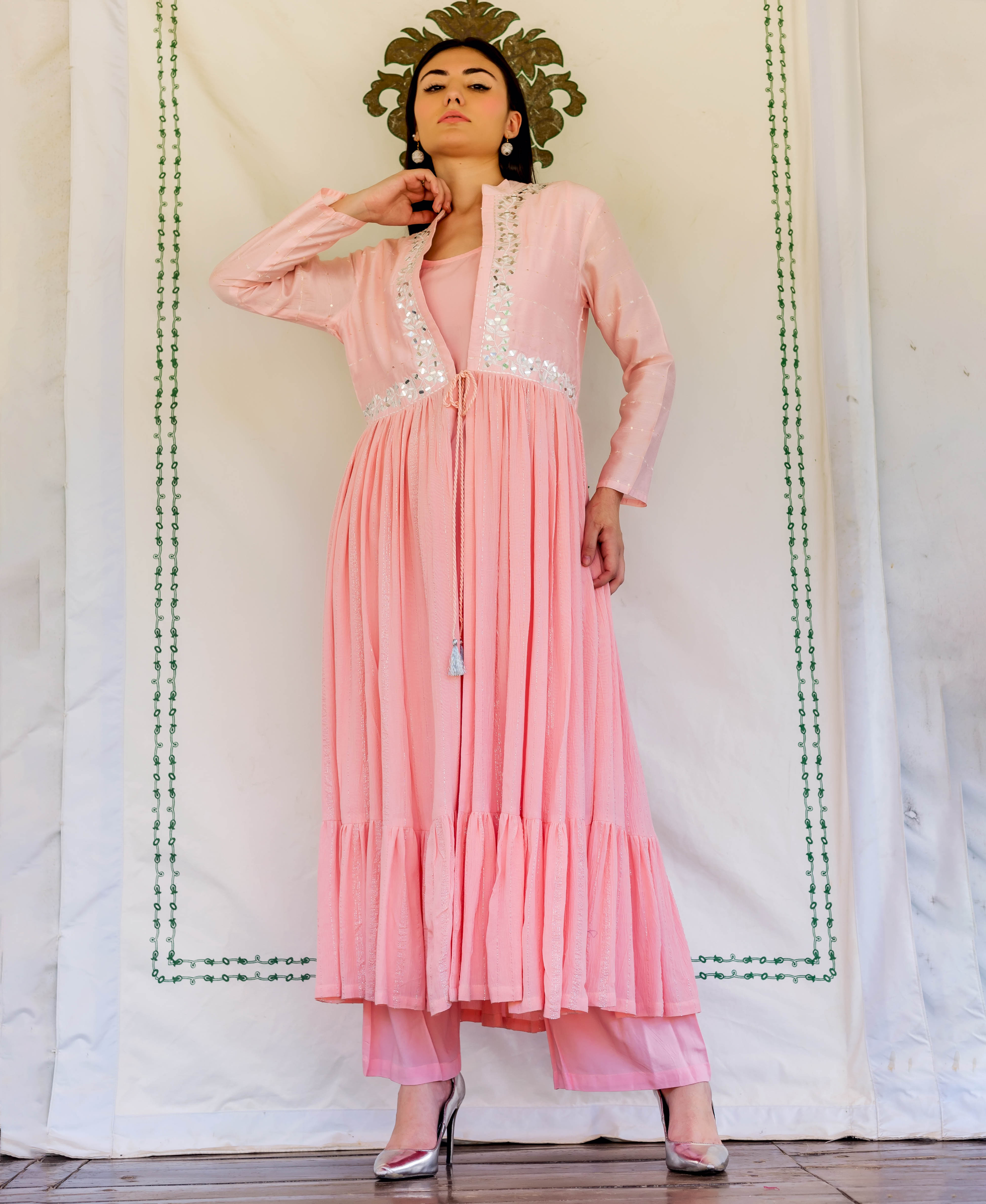 Empire Cut Jacket Style Multi Layered Indo Western Dress