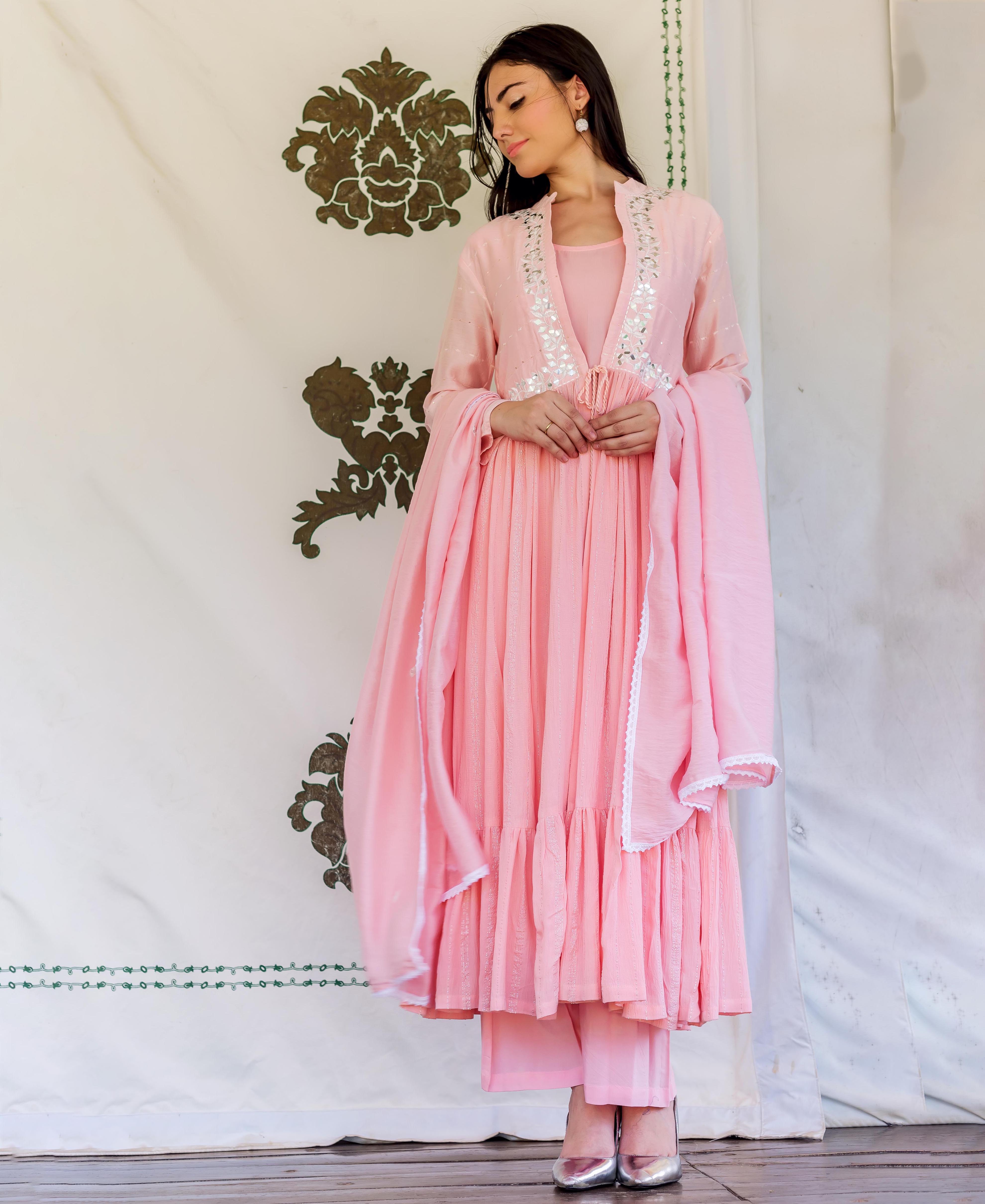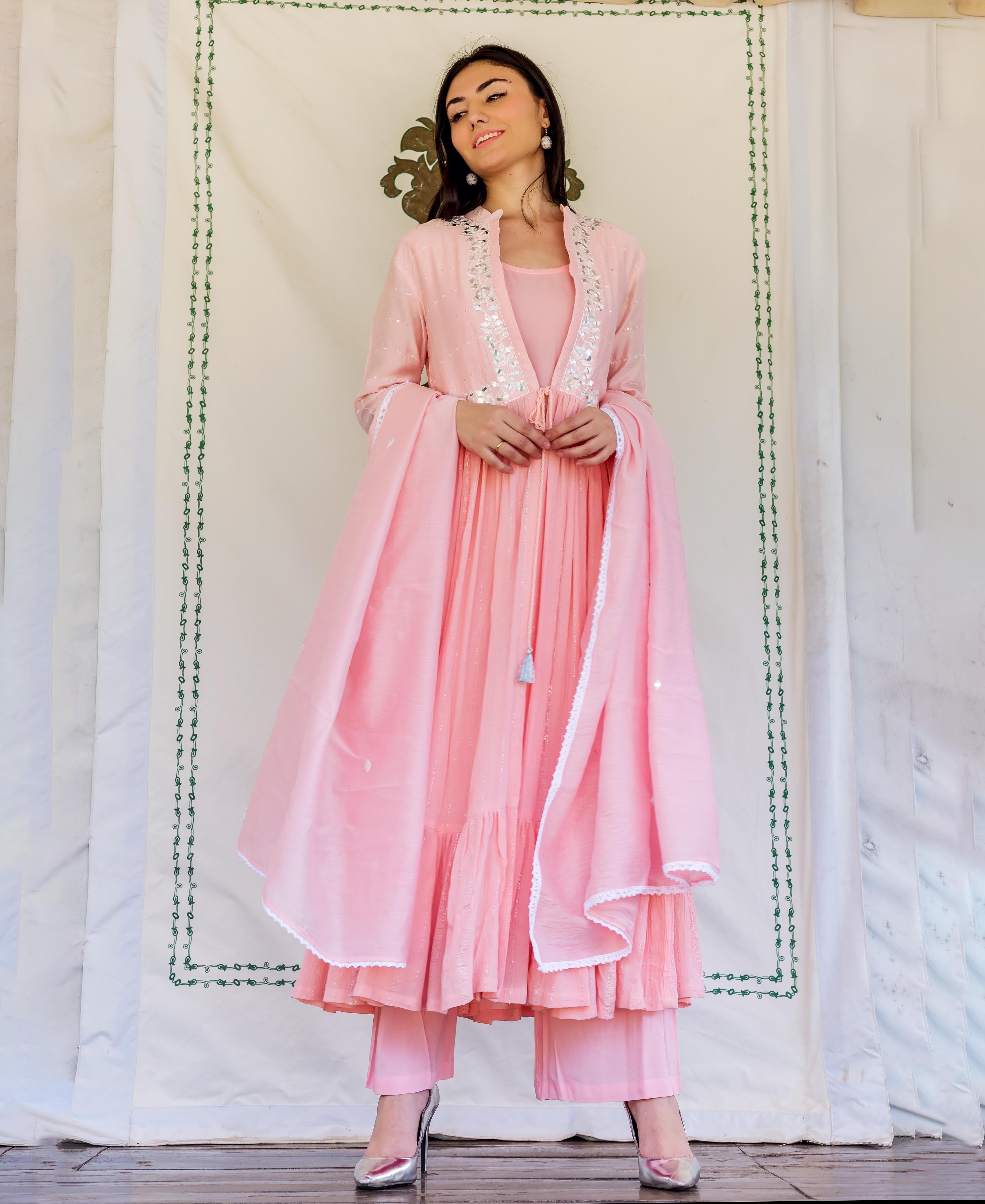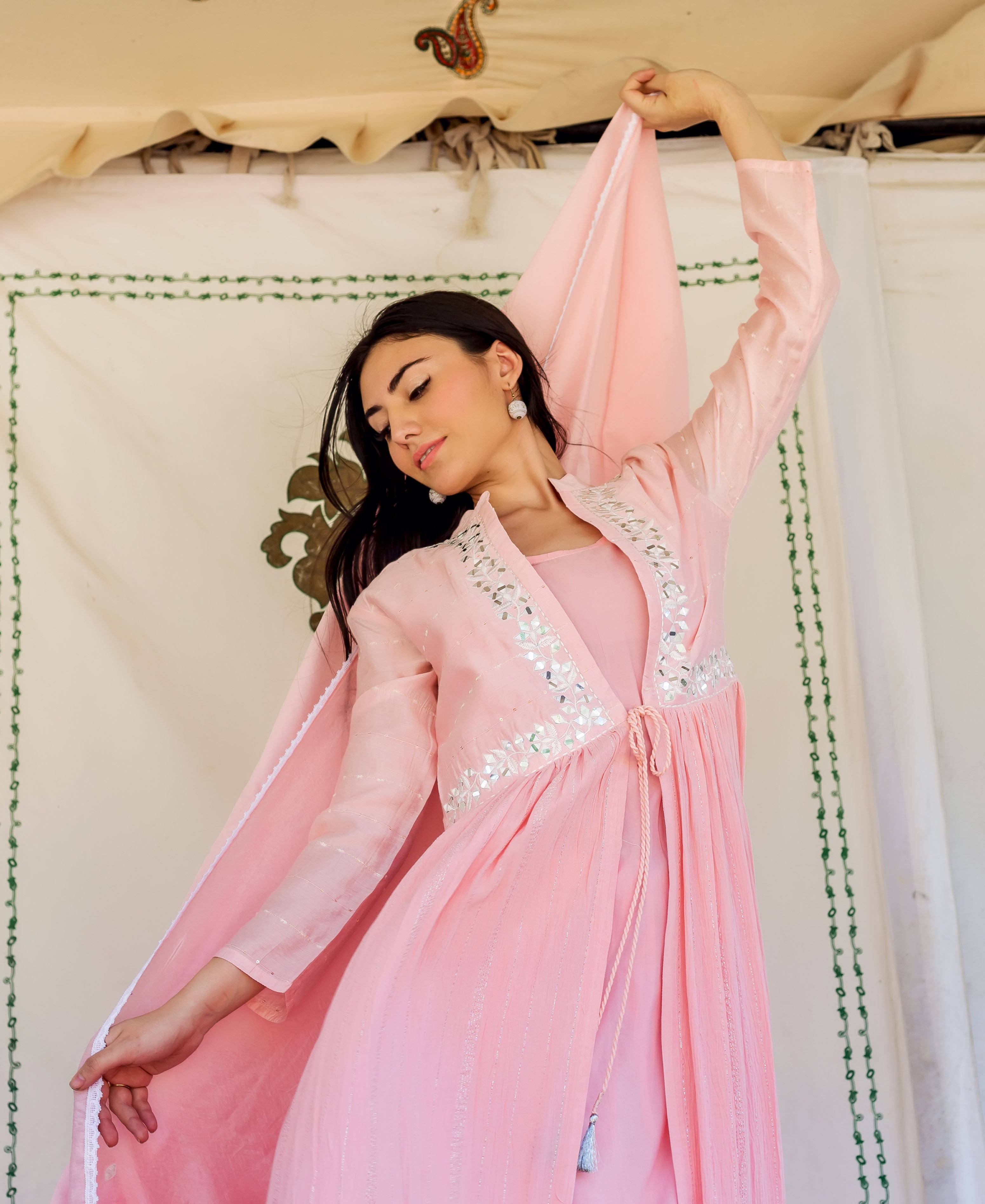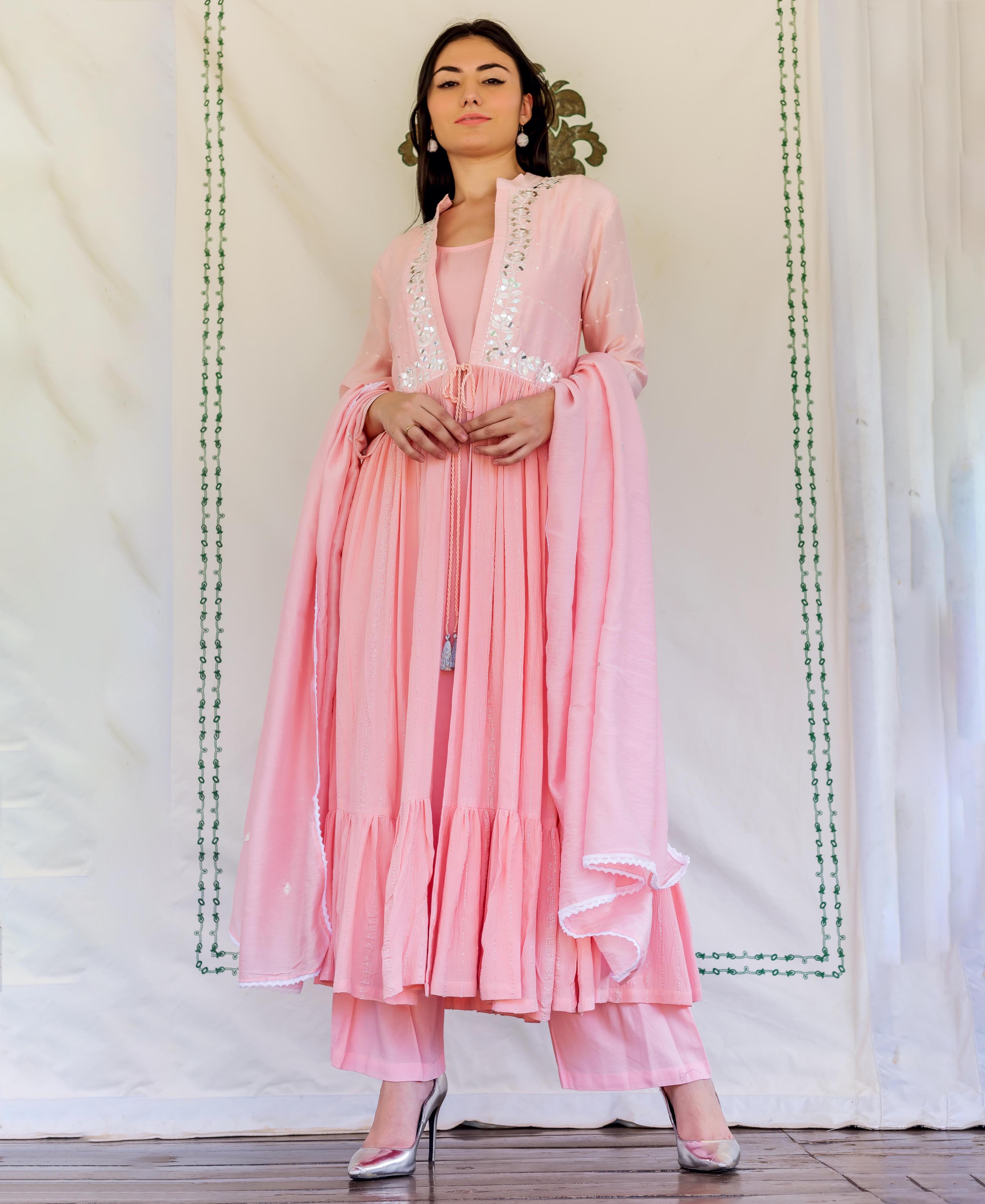 Empire Cut Jacket Style Multi Layered Indo Western Dress