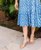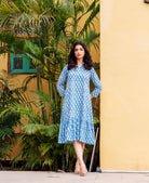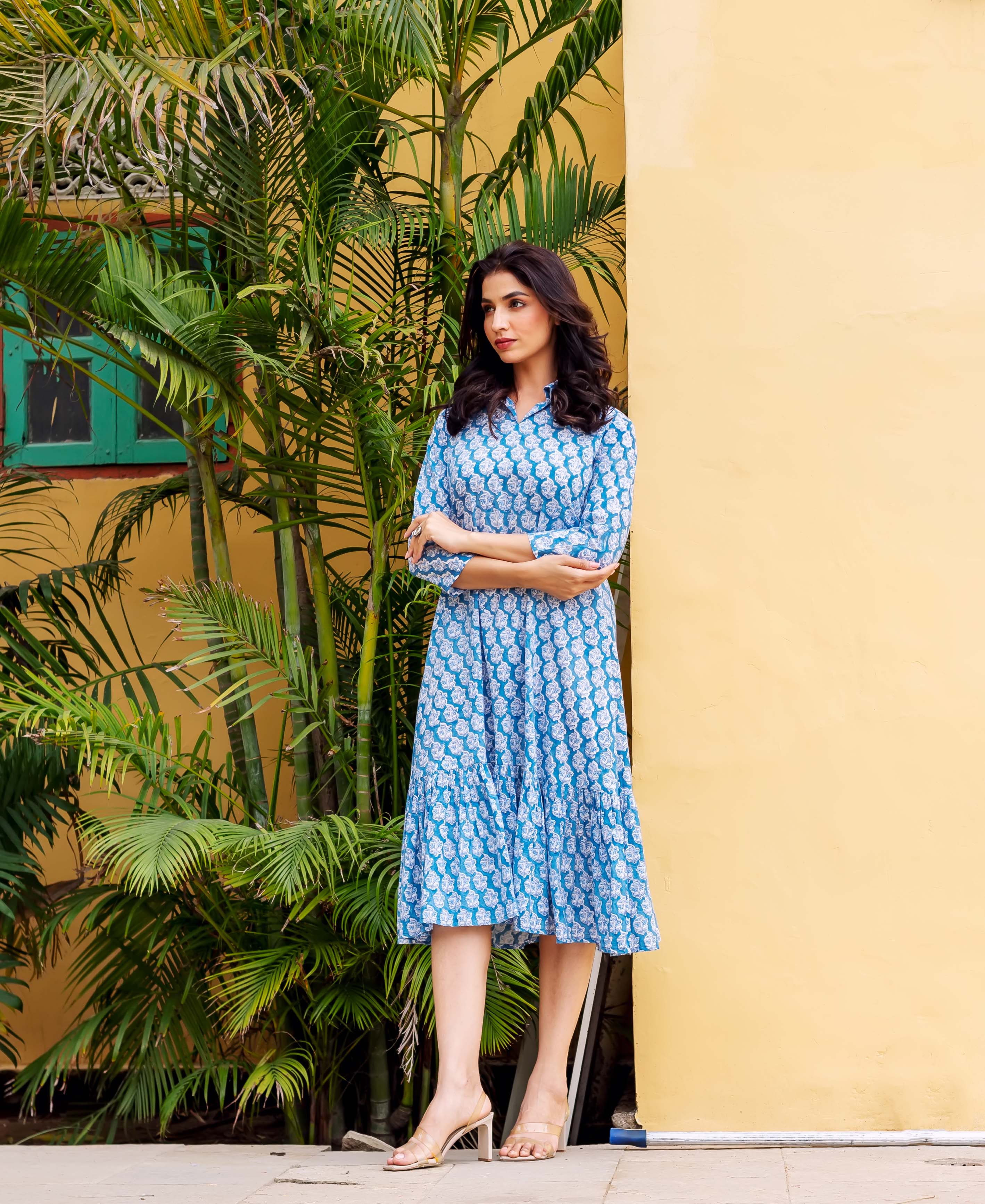 Unique Features: Hand-blocked prints showcasing traditional craftsmanship, paired with cotton’s breathable comfort and a tiered design for added movement