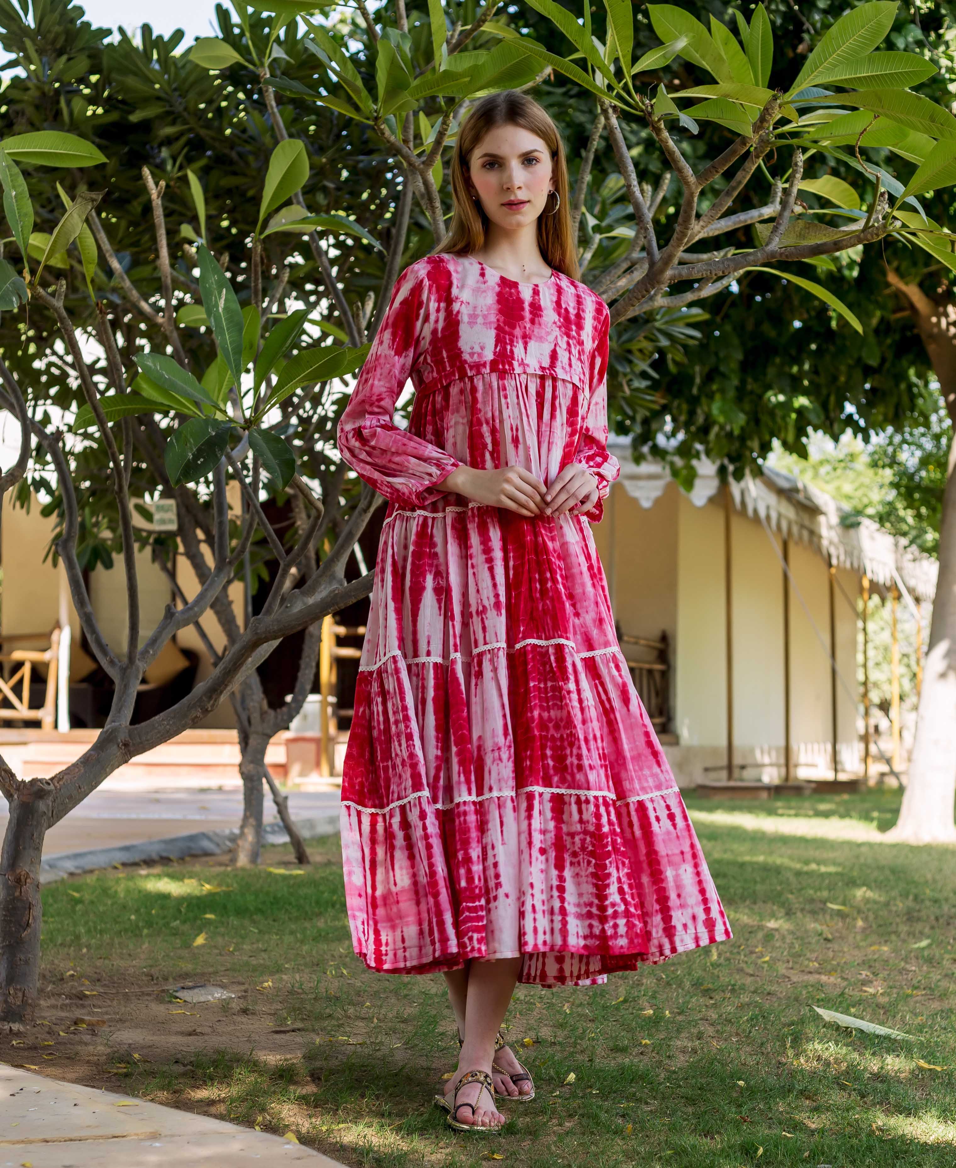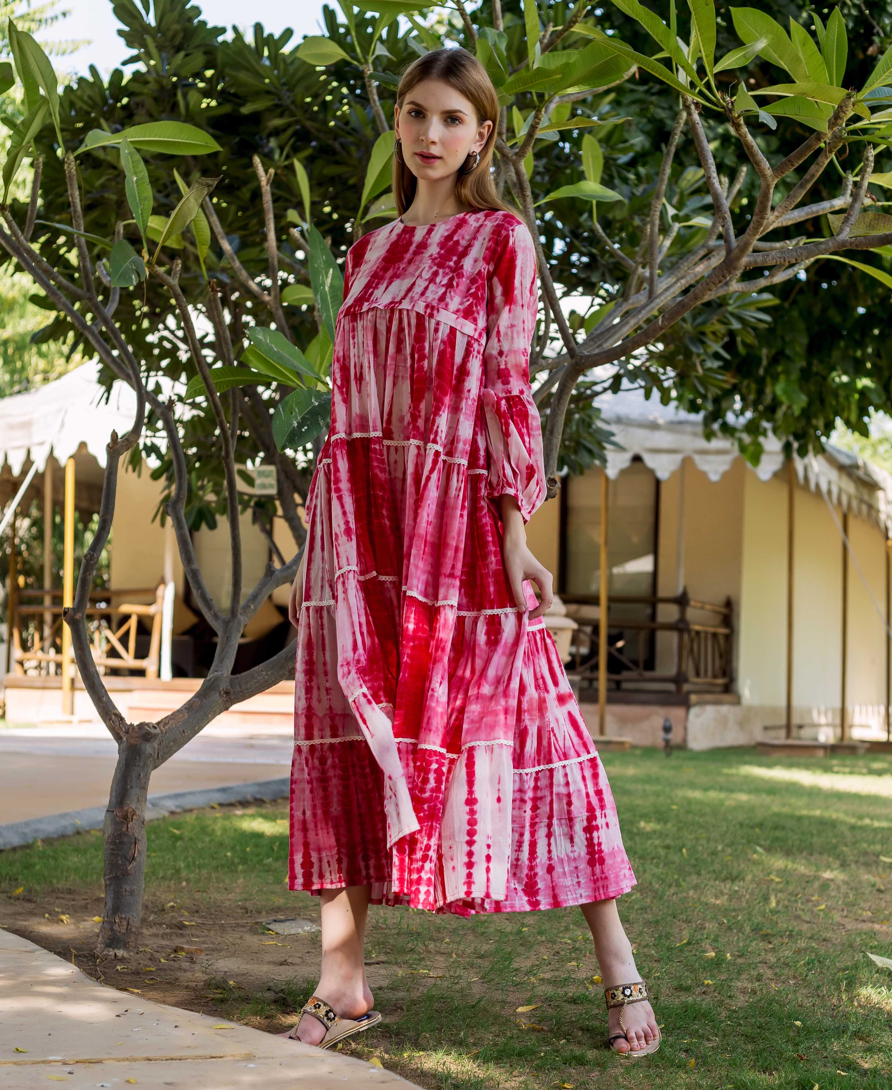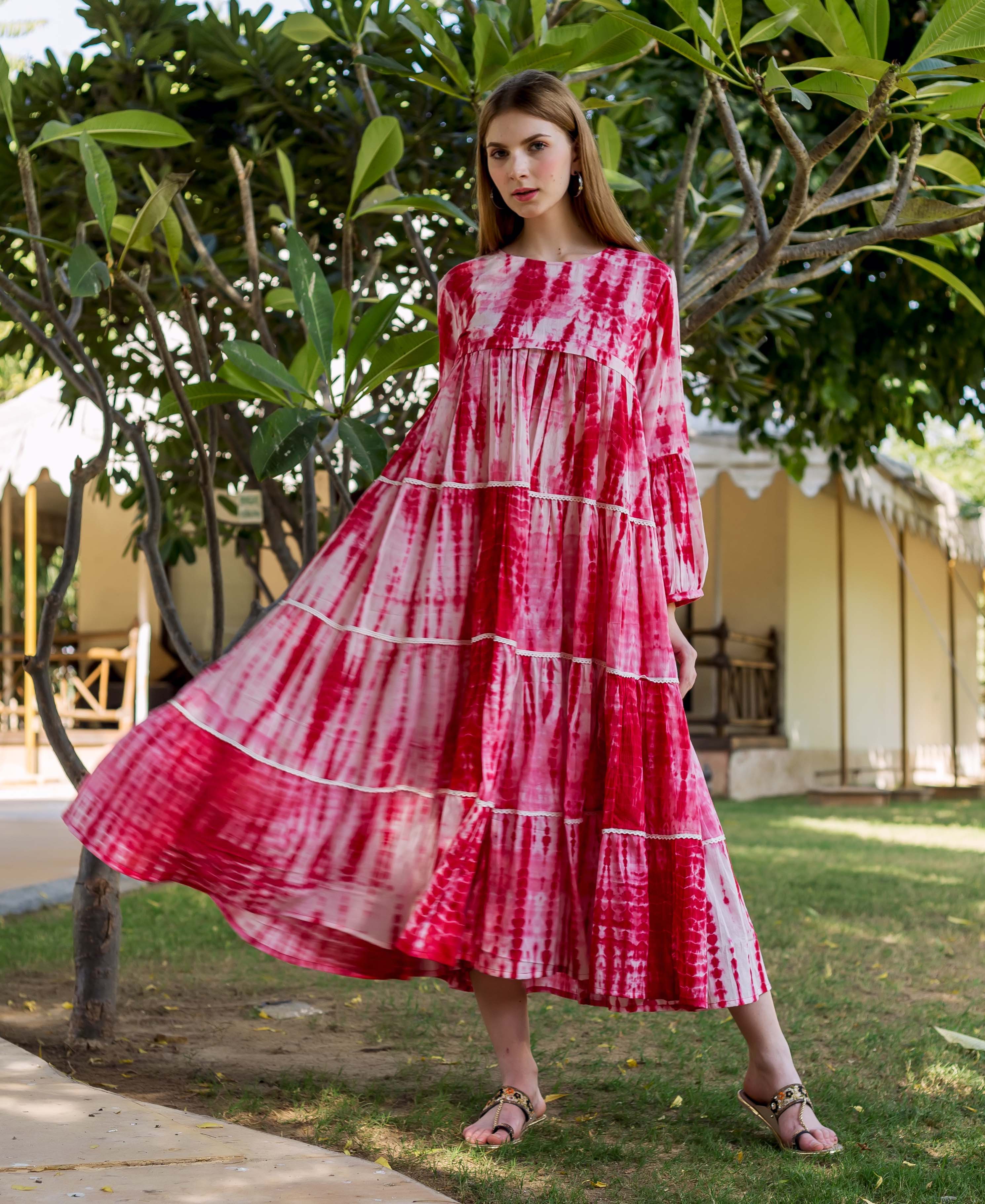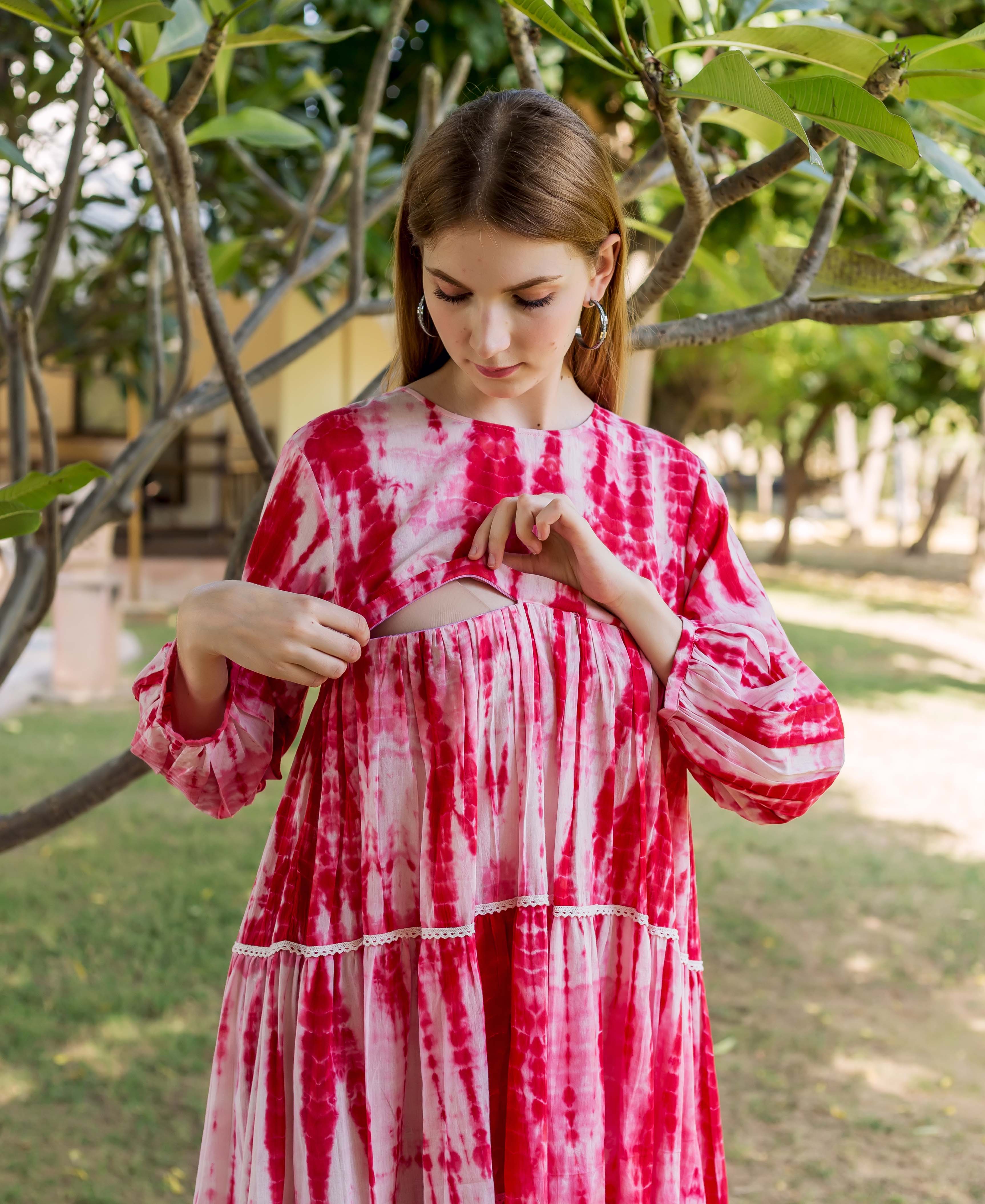 Red Tie Dye Maternal and Nursing Tiered Dress