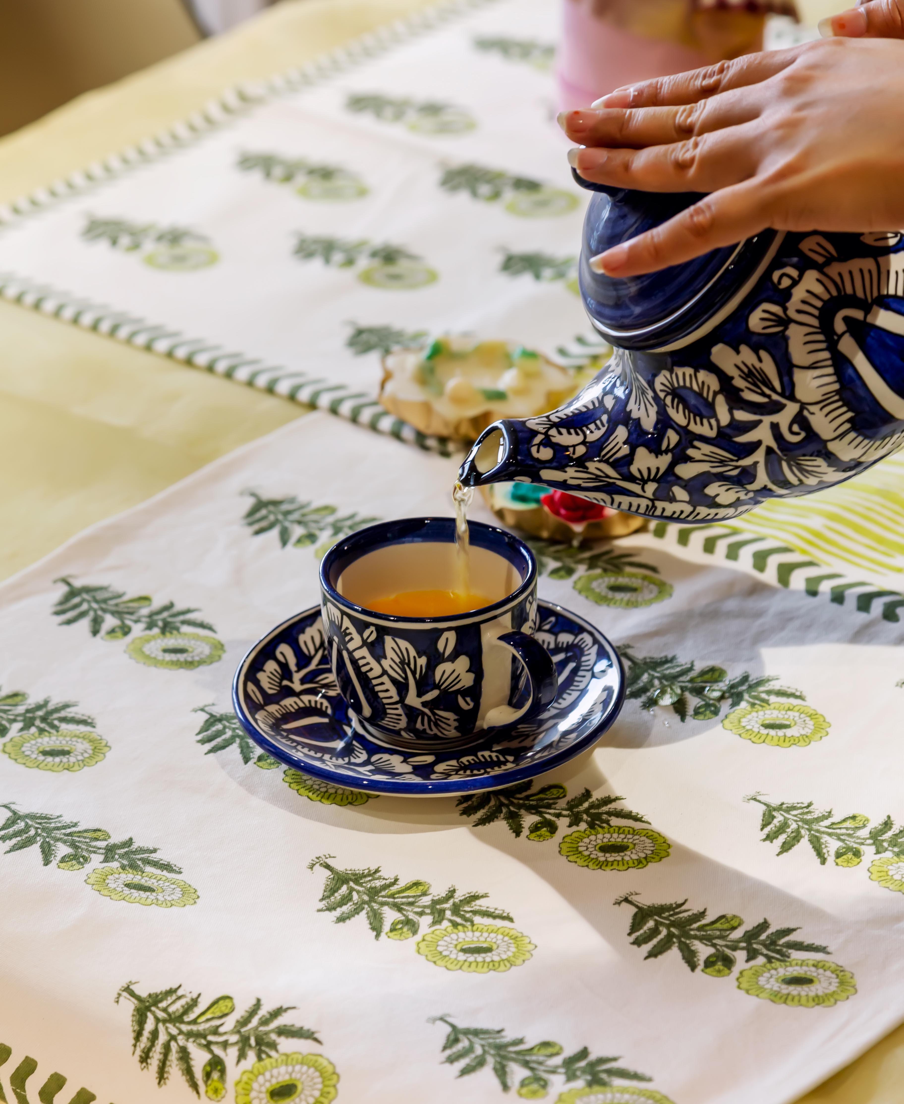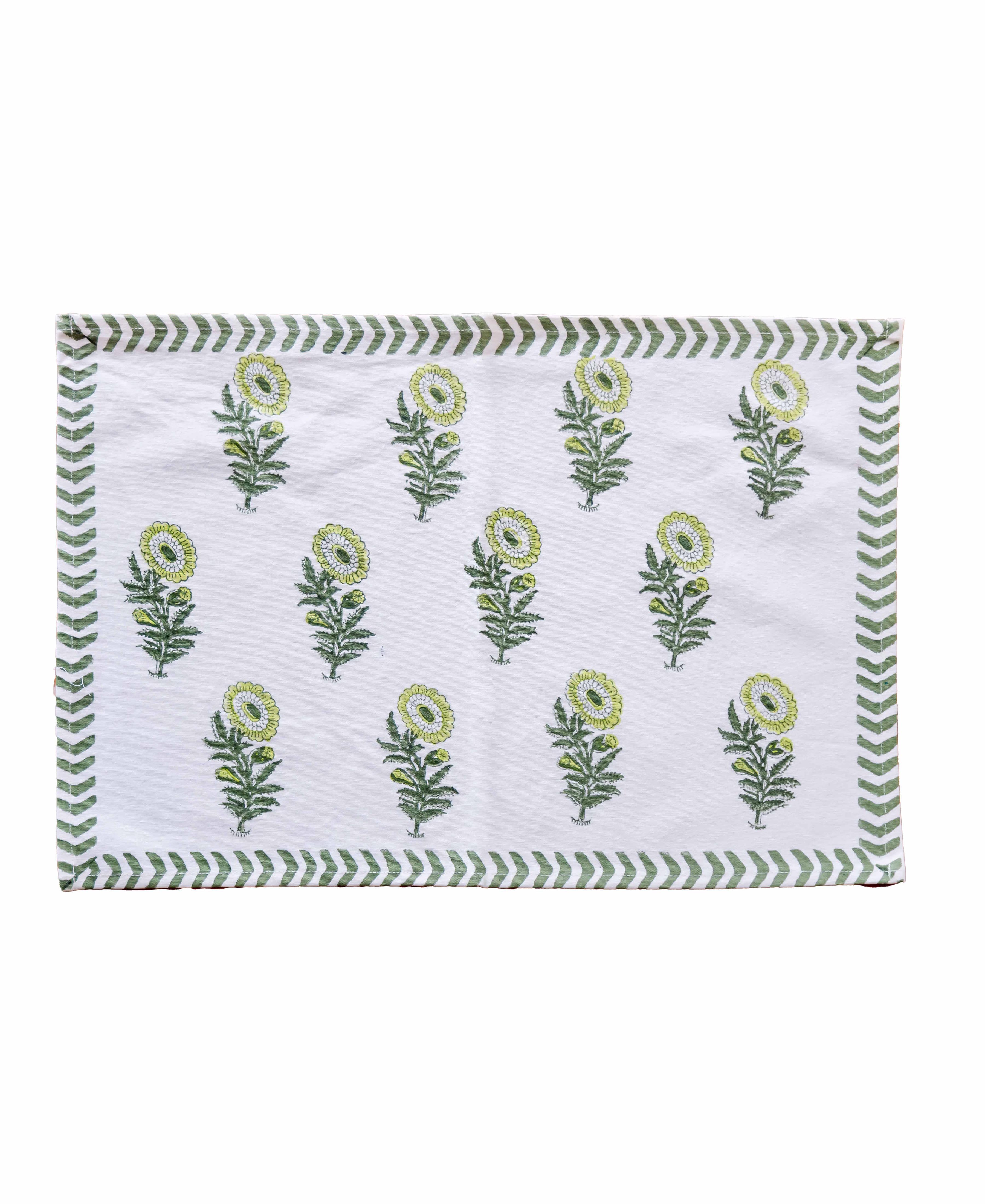 Lime Meadow Hand Block Printed Cotton Canvas Table Mats