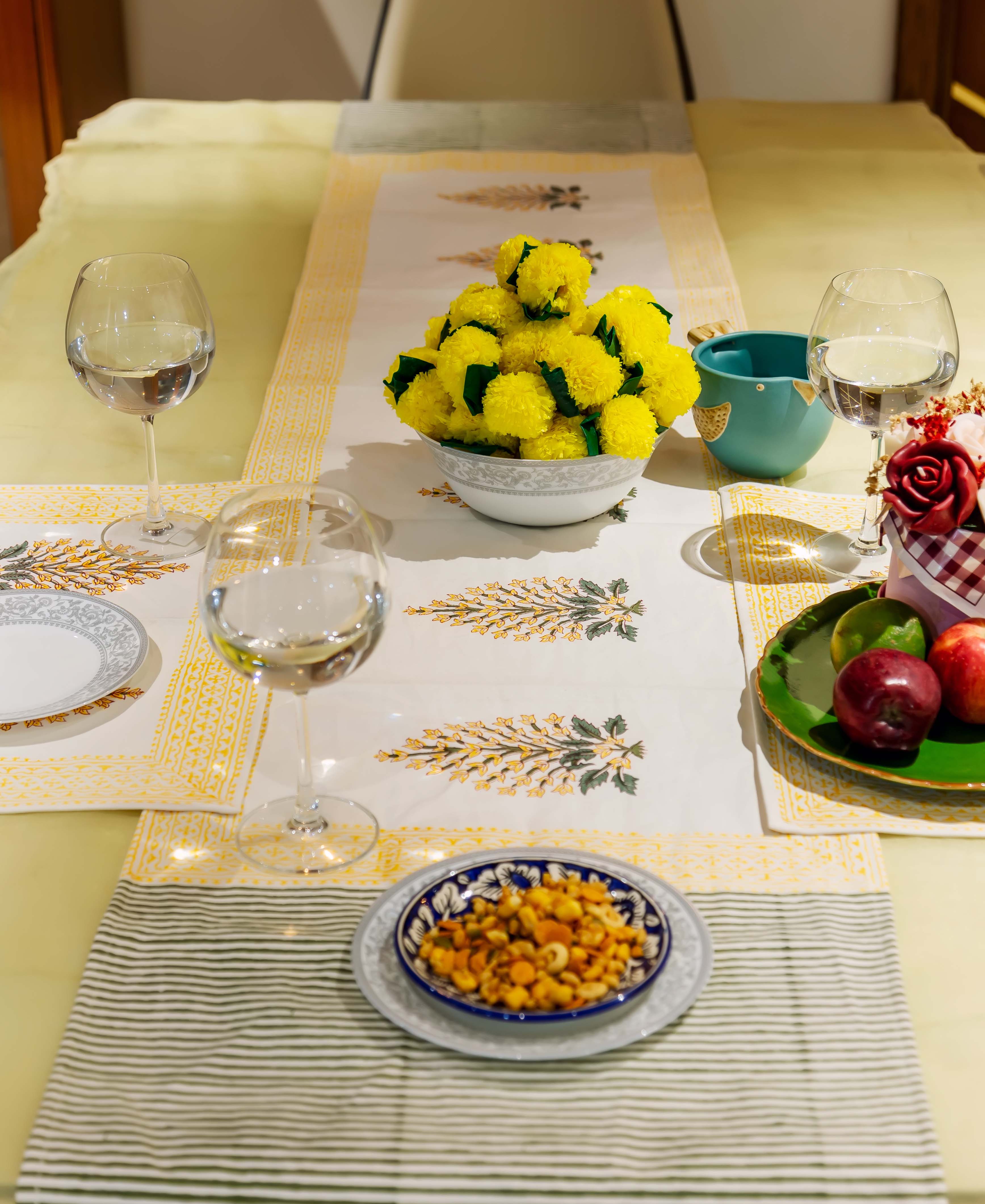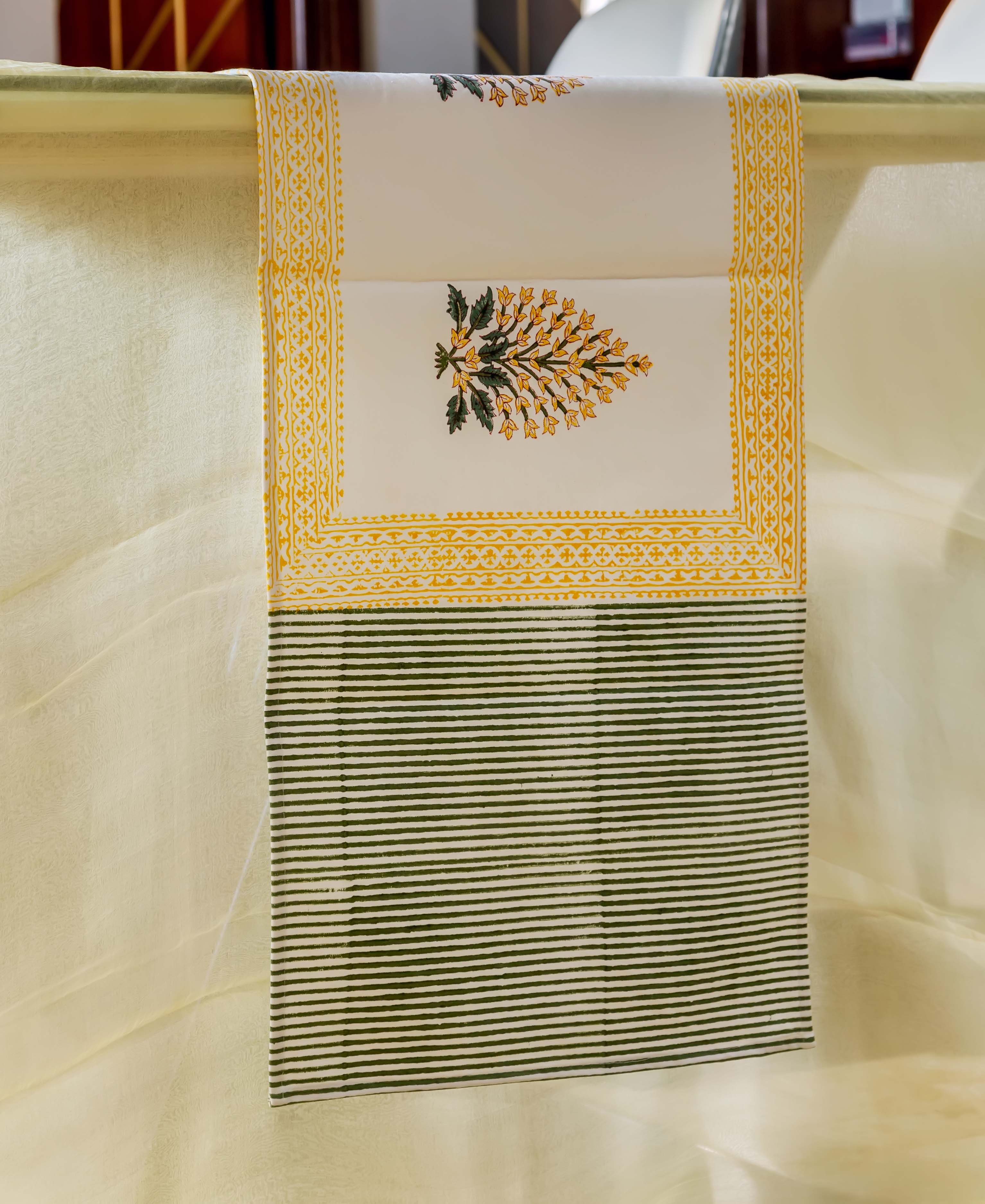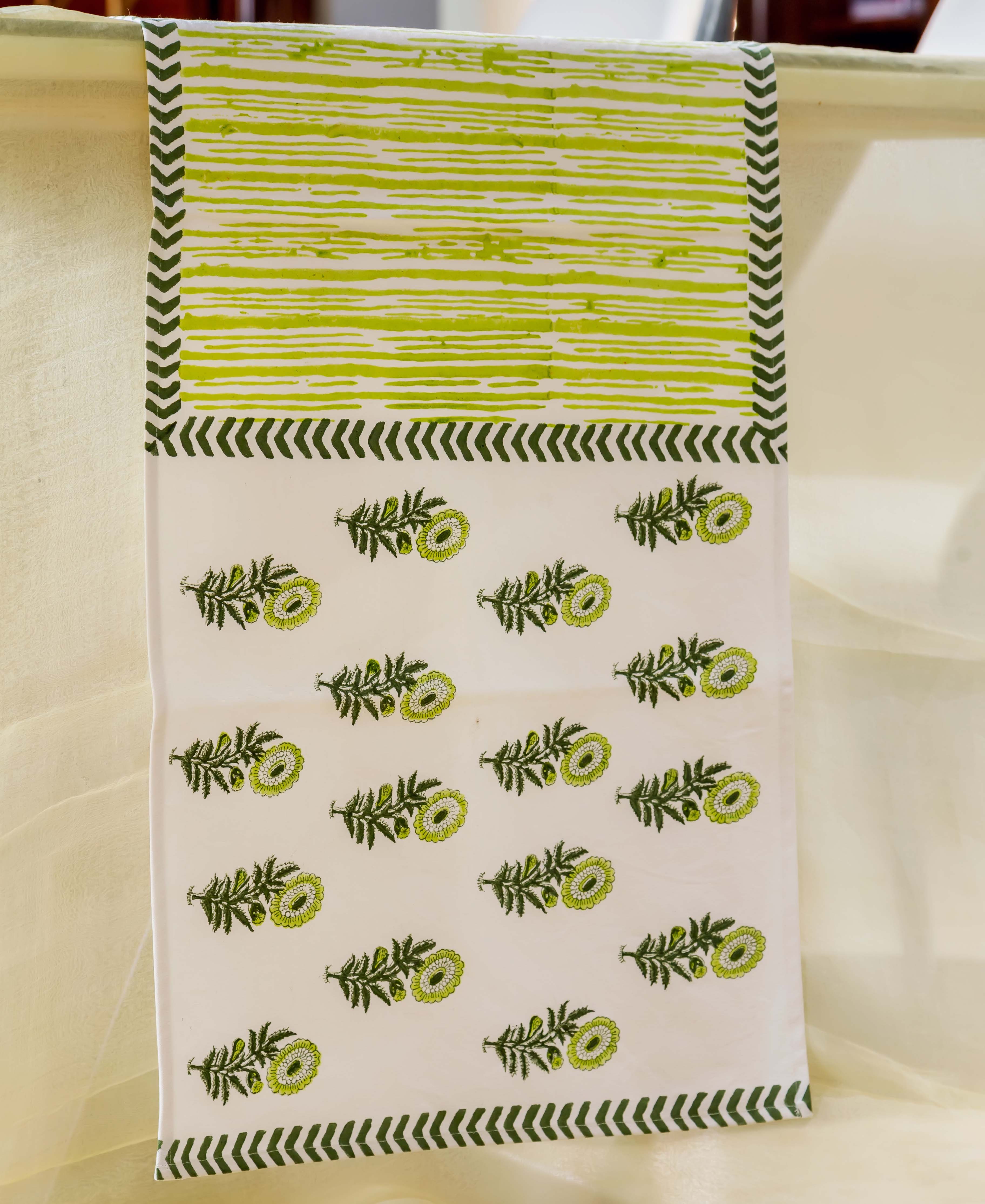 Lime Meadow Hand Block Printed Canvas Table Runner
