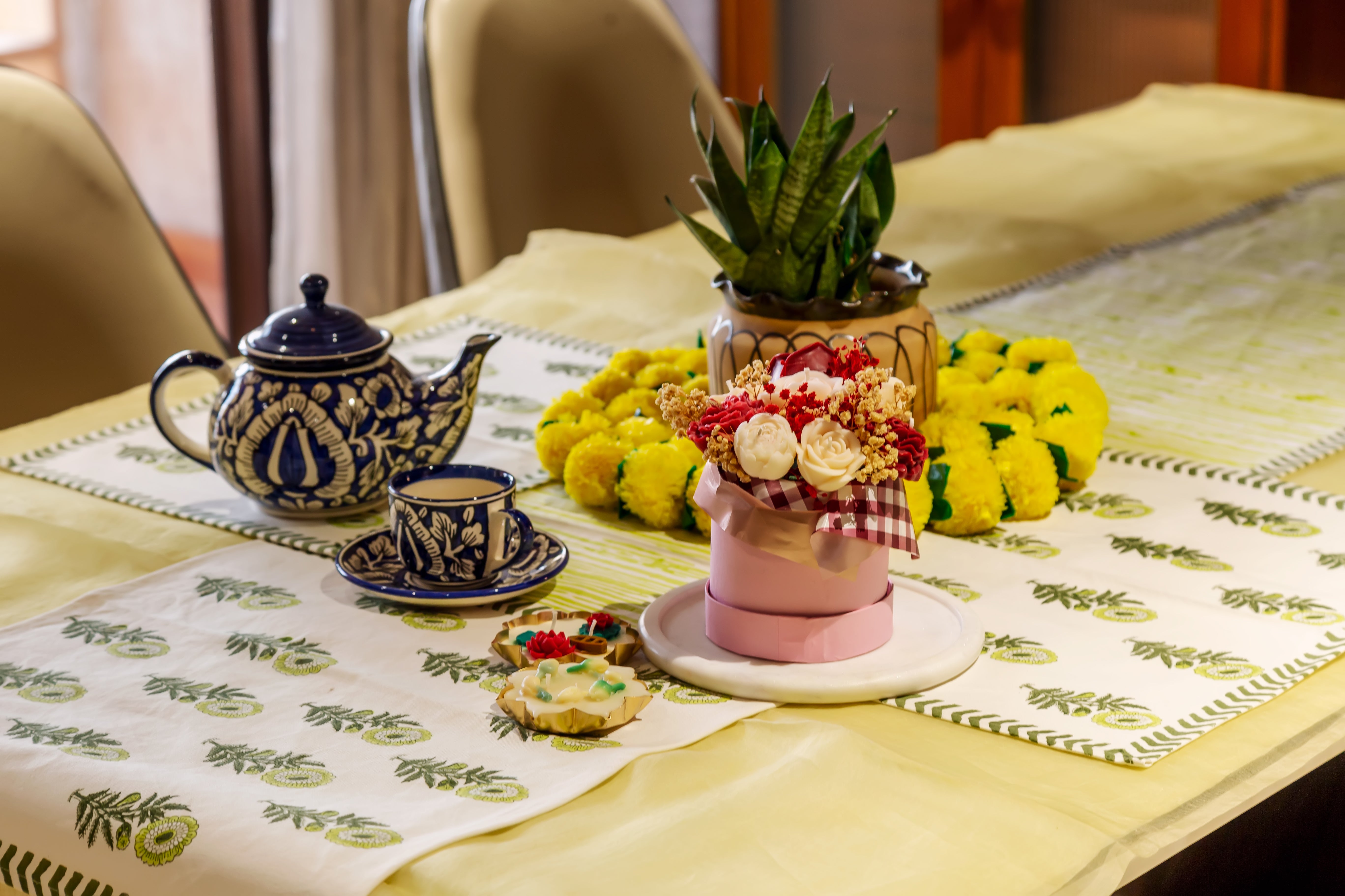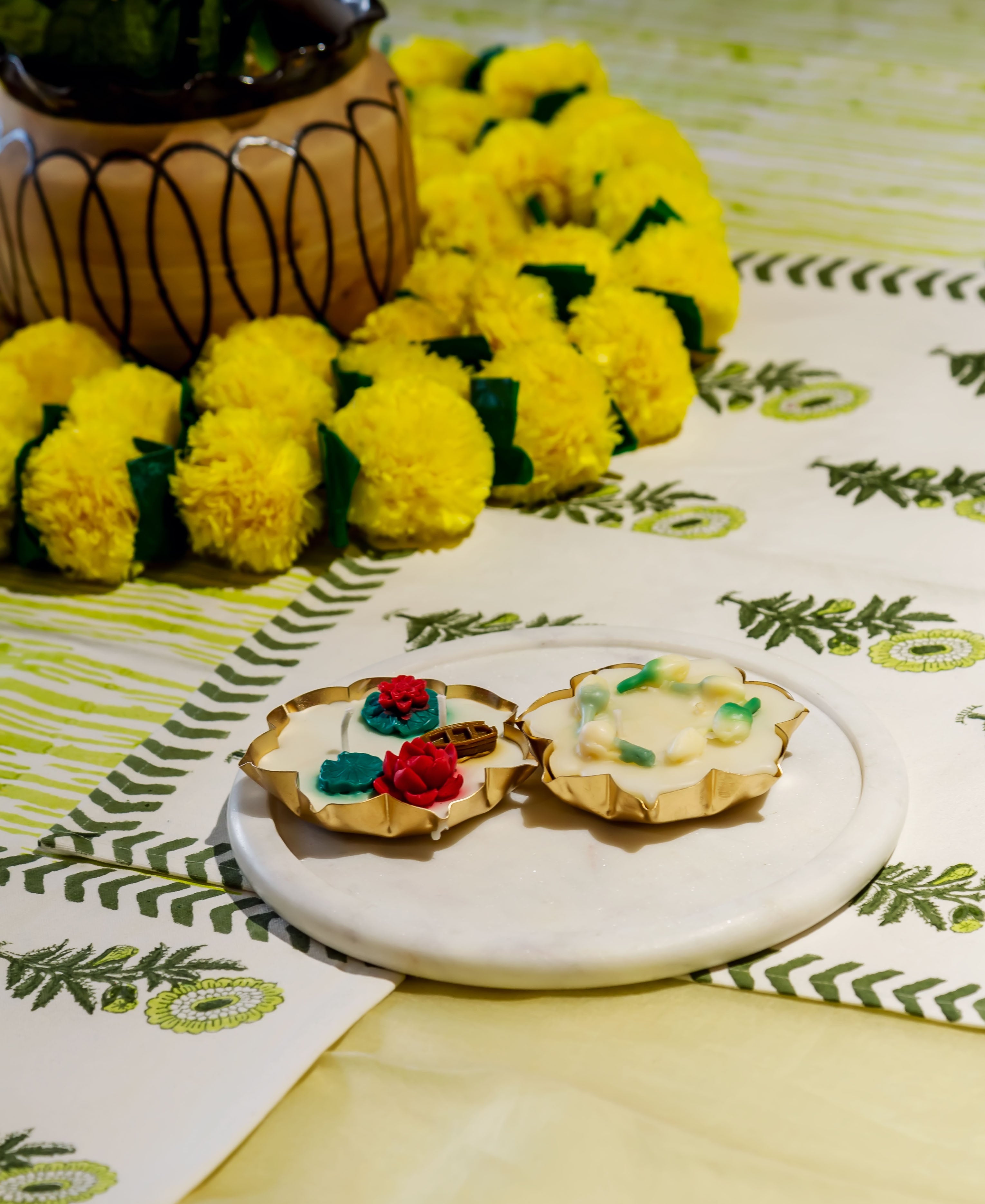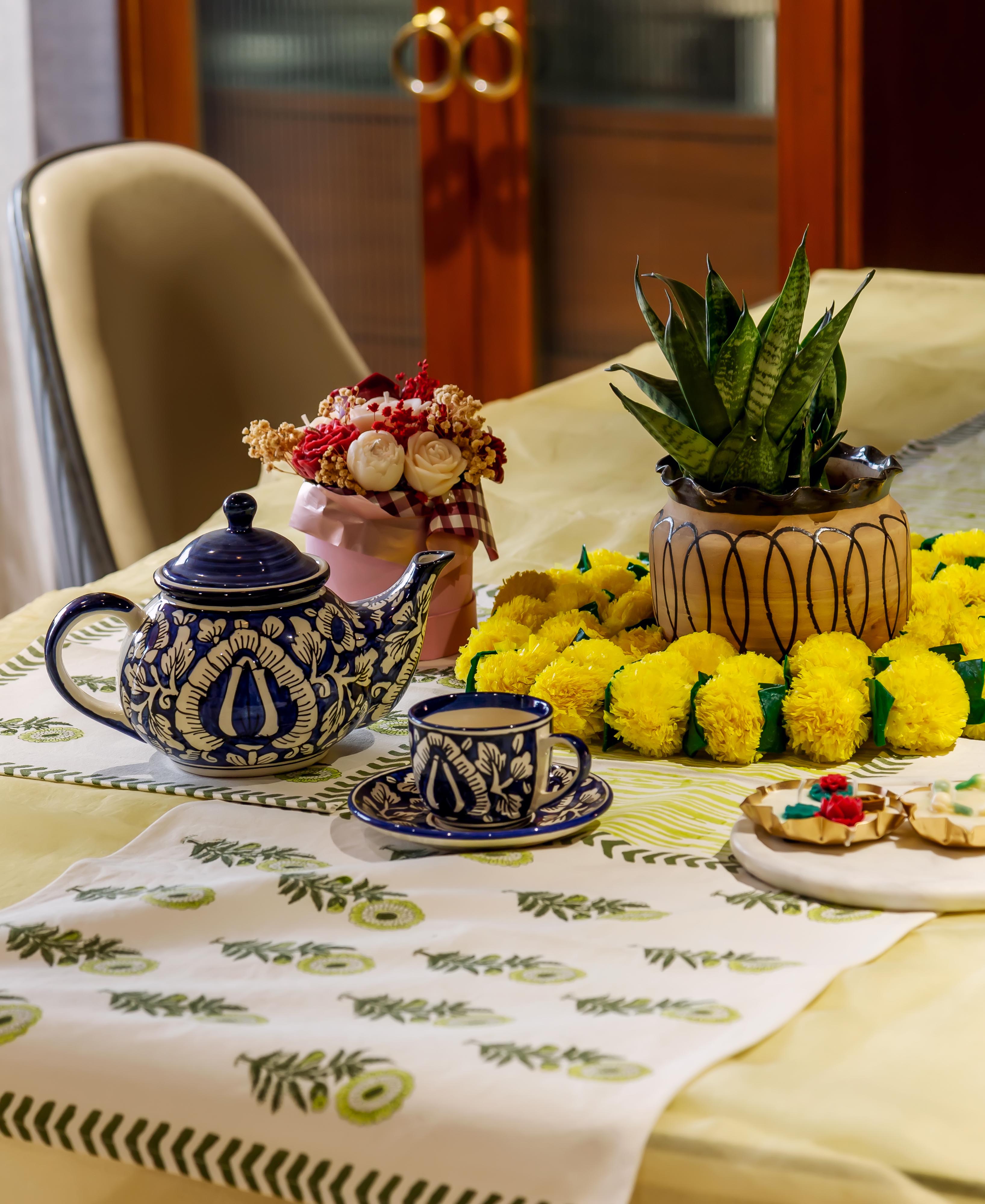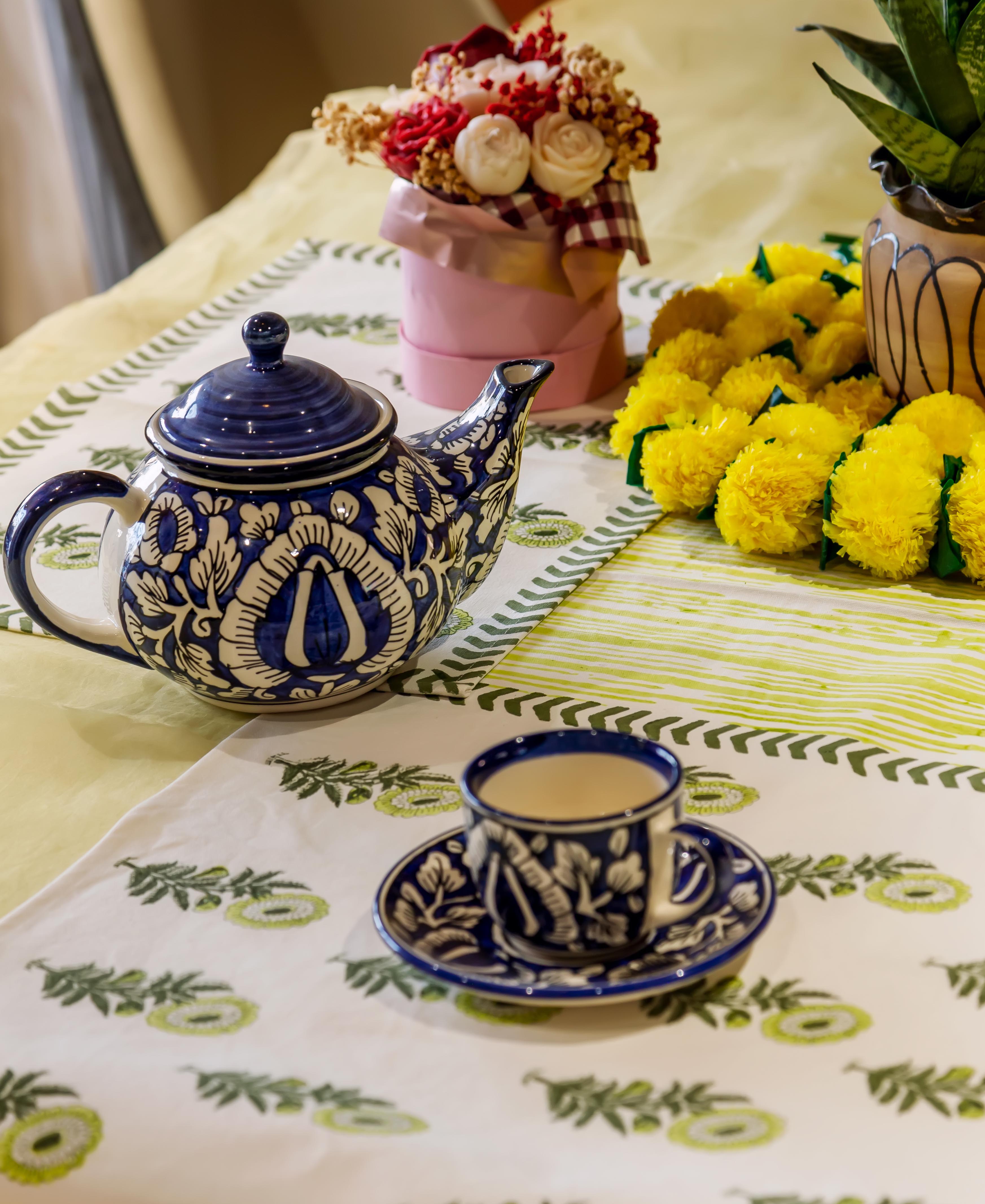 Lime Meadow Hand Block Printed Canvas Table Runner