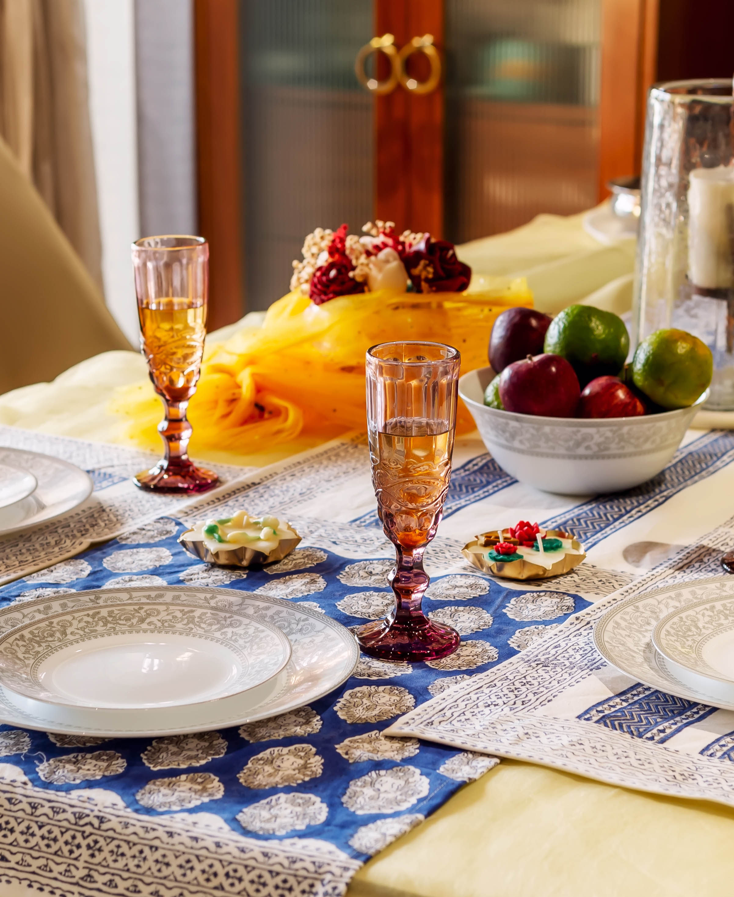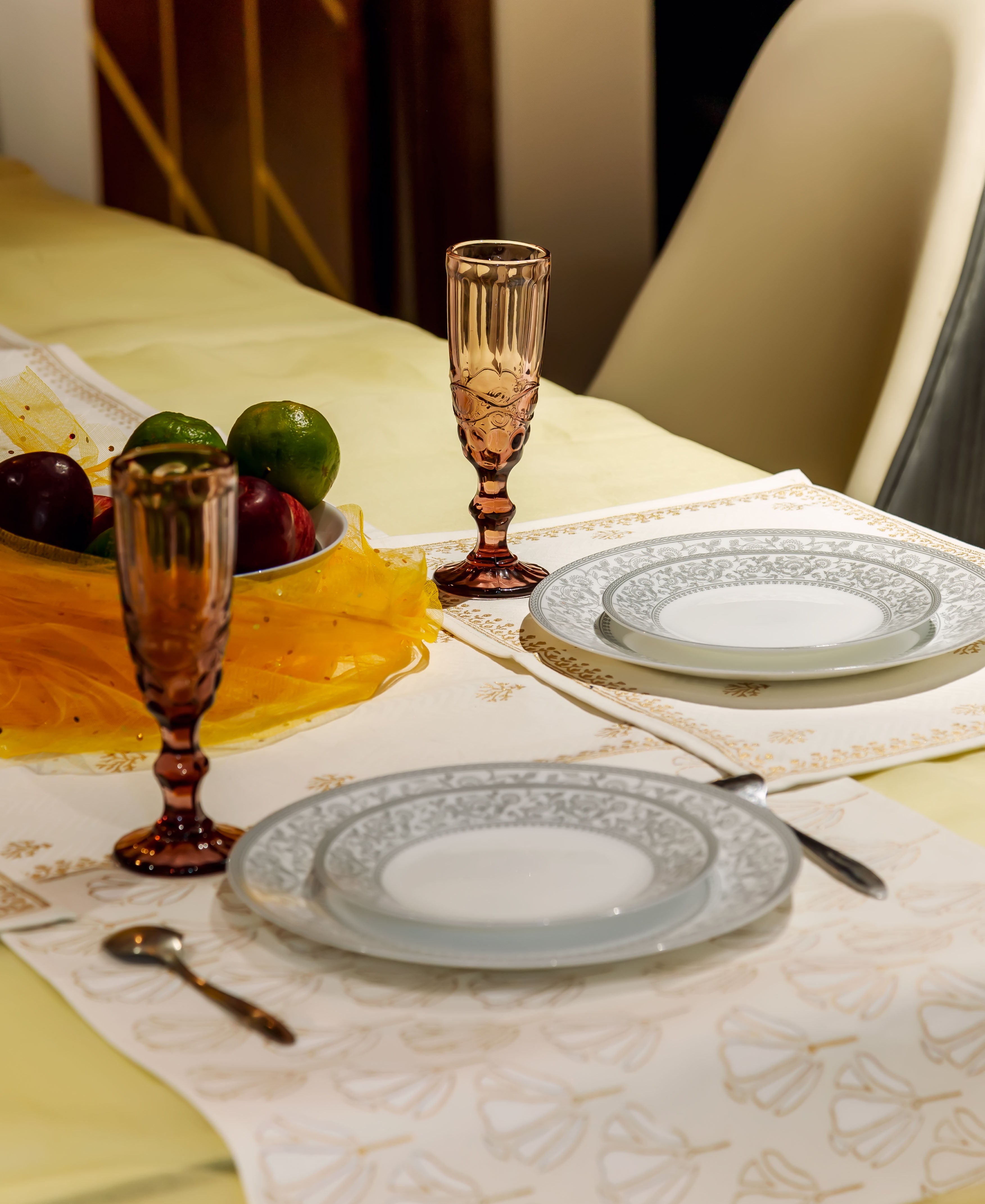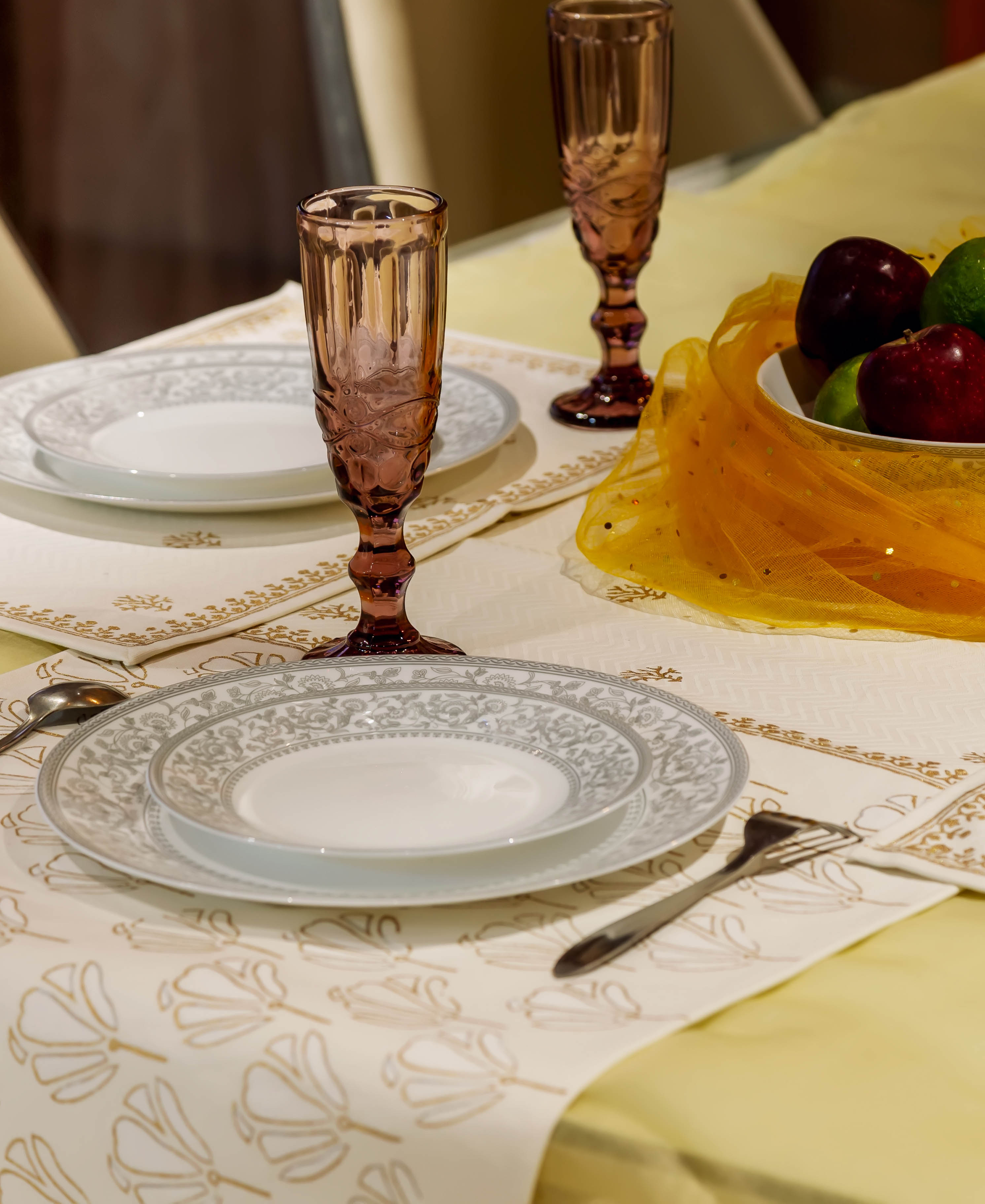 Khadi Gold Hand Block Printed Canvas Table Runner