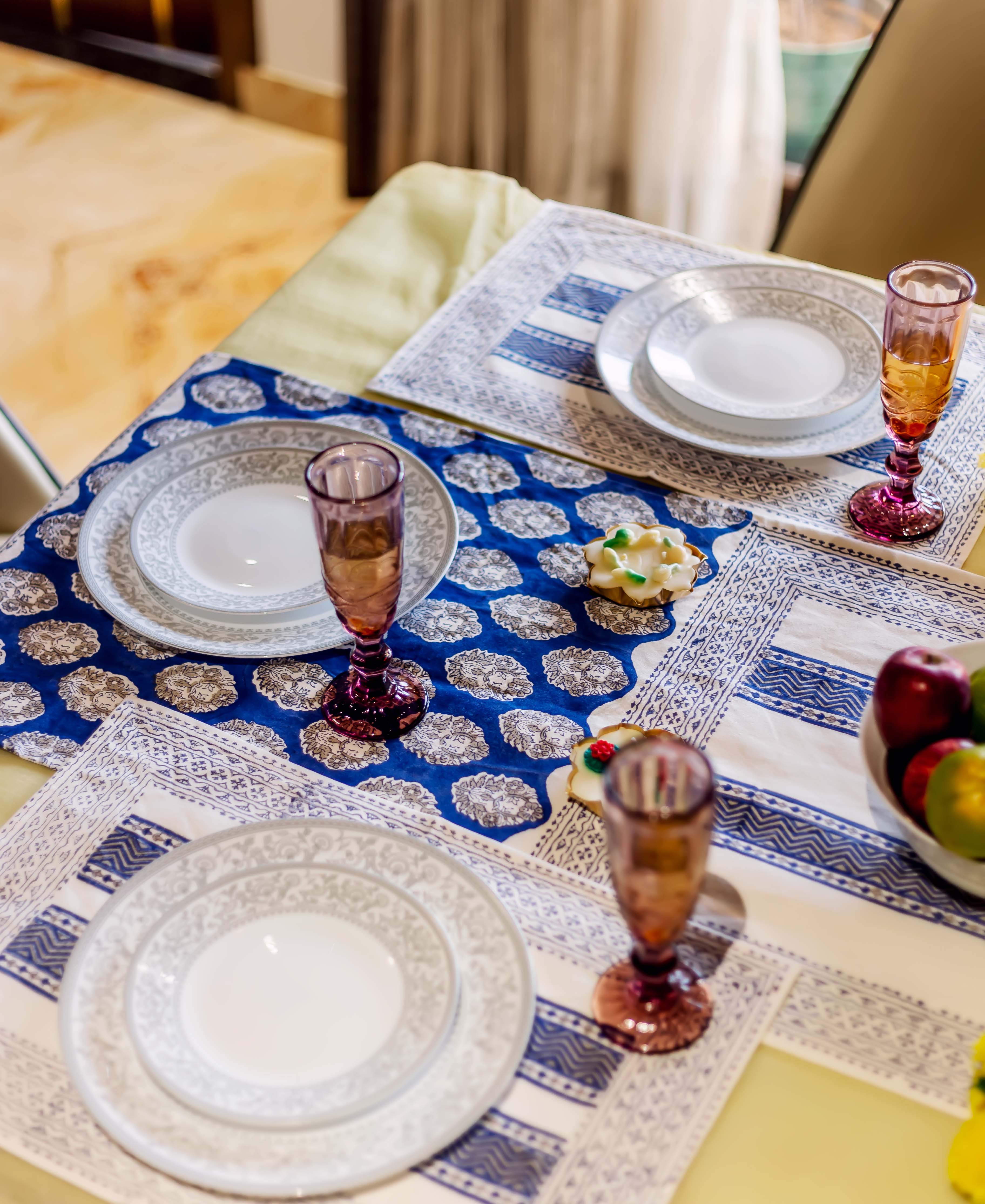 Indigo Bloom Hand Block Printed Cotton Table Mats