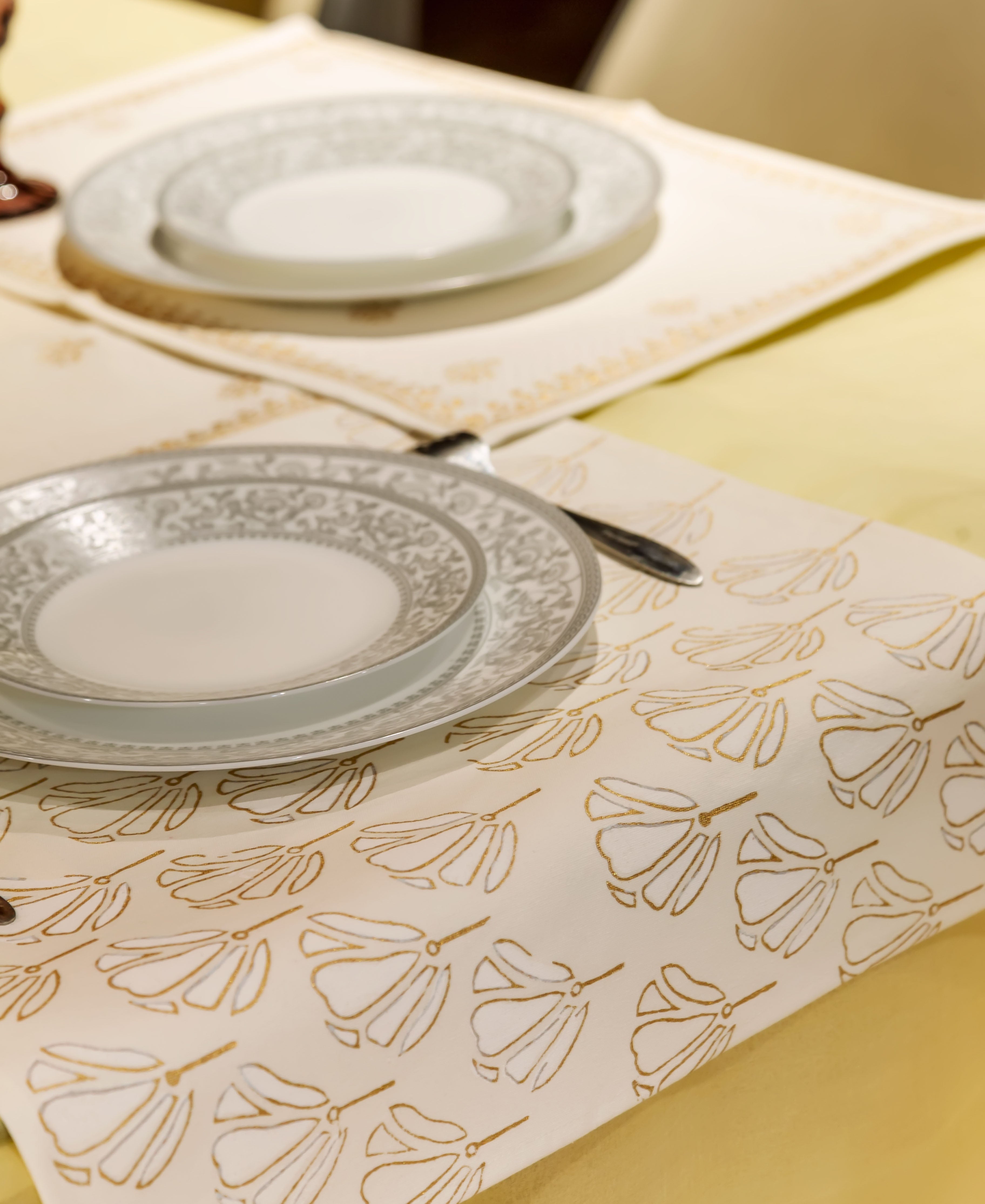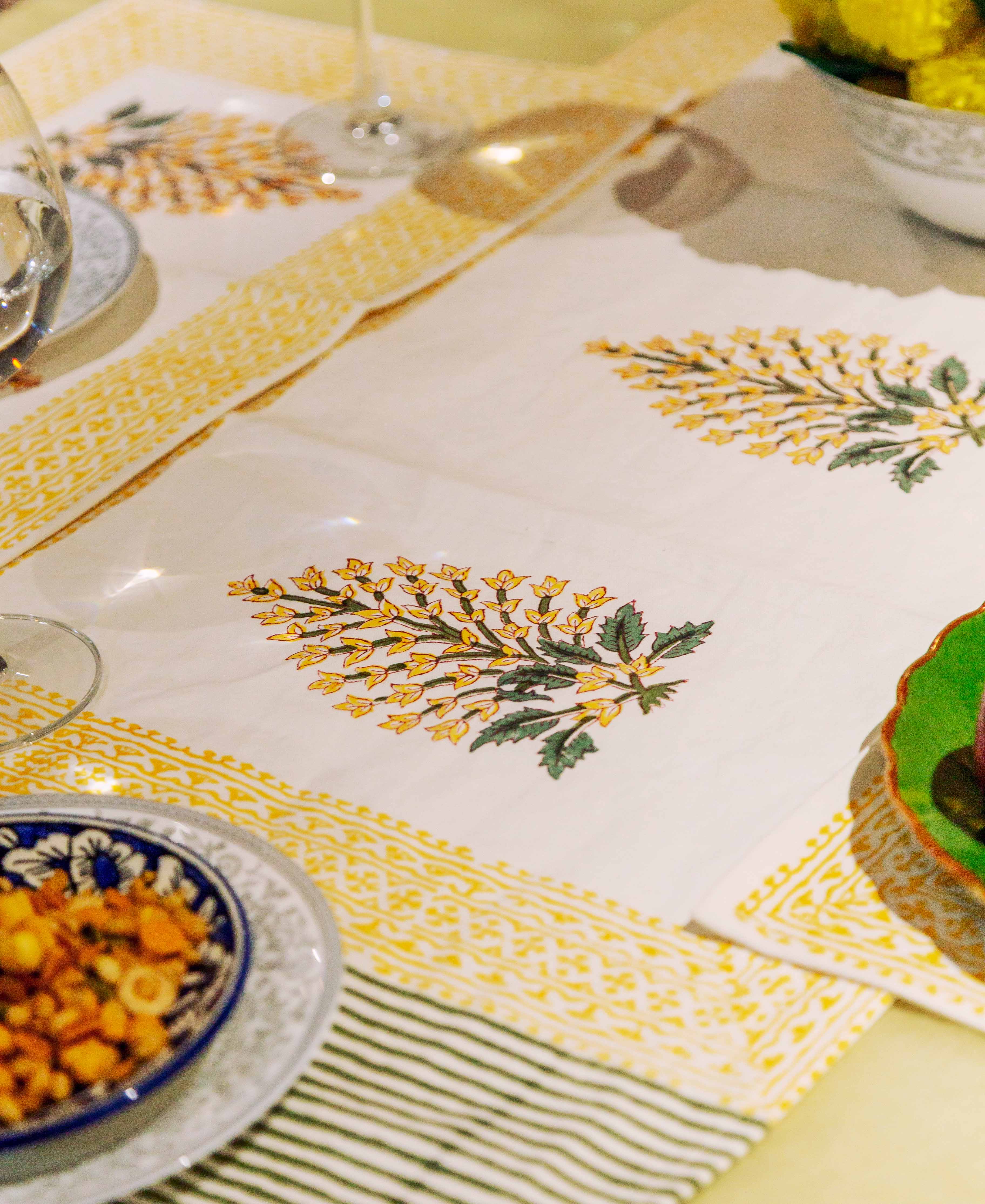 Mustard Bloom Hand Block Printed Canvas Table Mats