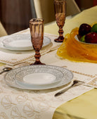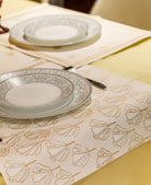 Add a touch of subtle sophistication to your table with this Khadi Gold table runner. Hand block printed with intricate motifs in a soft golden hue, it reflects understated luxury and timeless craftsmanship. Ideal for both festive gatherings and elegant everyday dining, it pairs beautifully with neutral or metallic tableware.