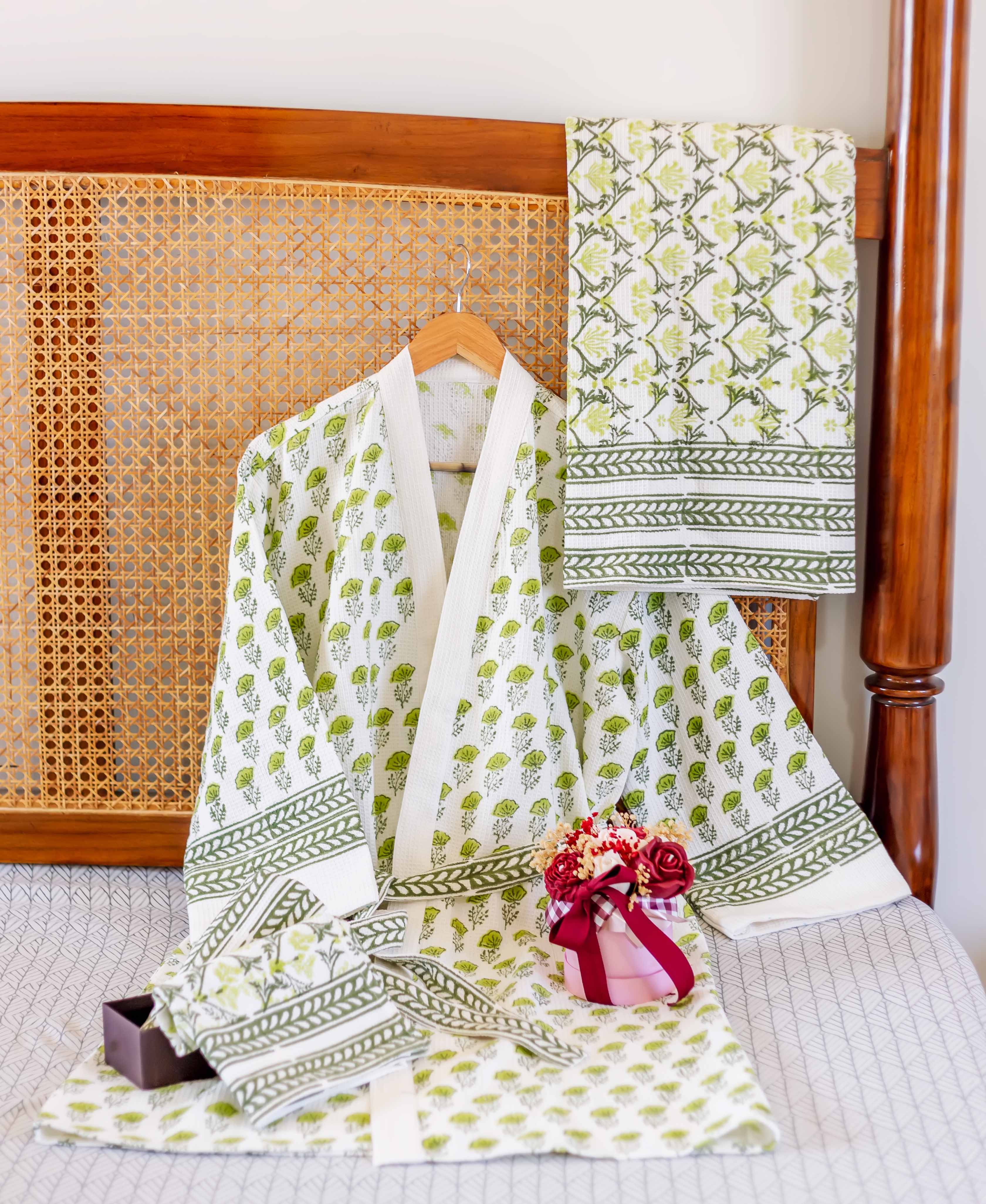 Verdant Buti Hand Block Bath Set (4 pcs.)
