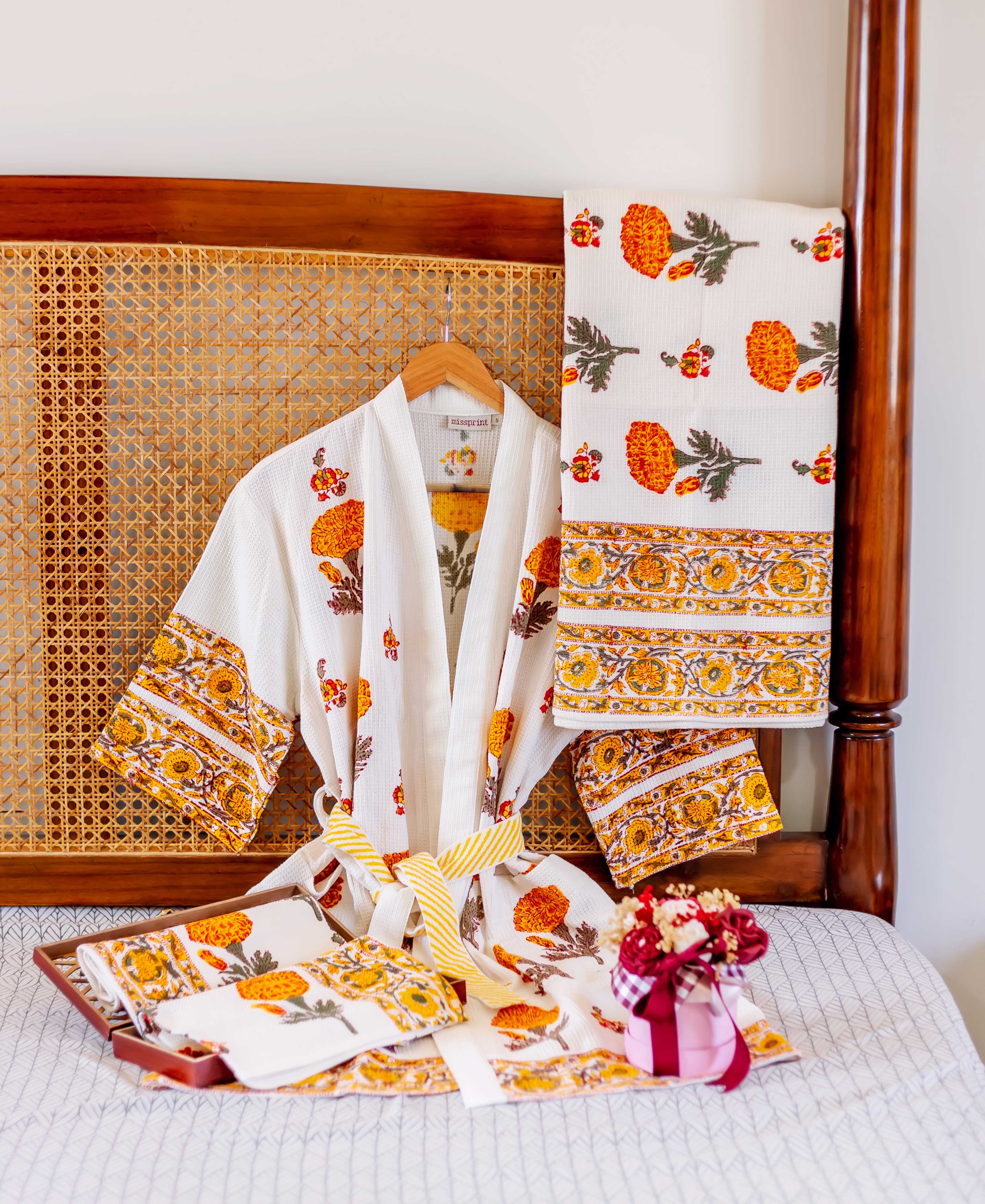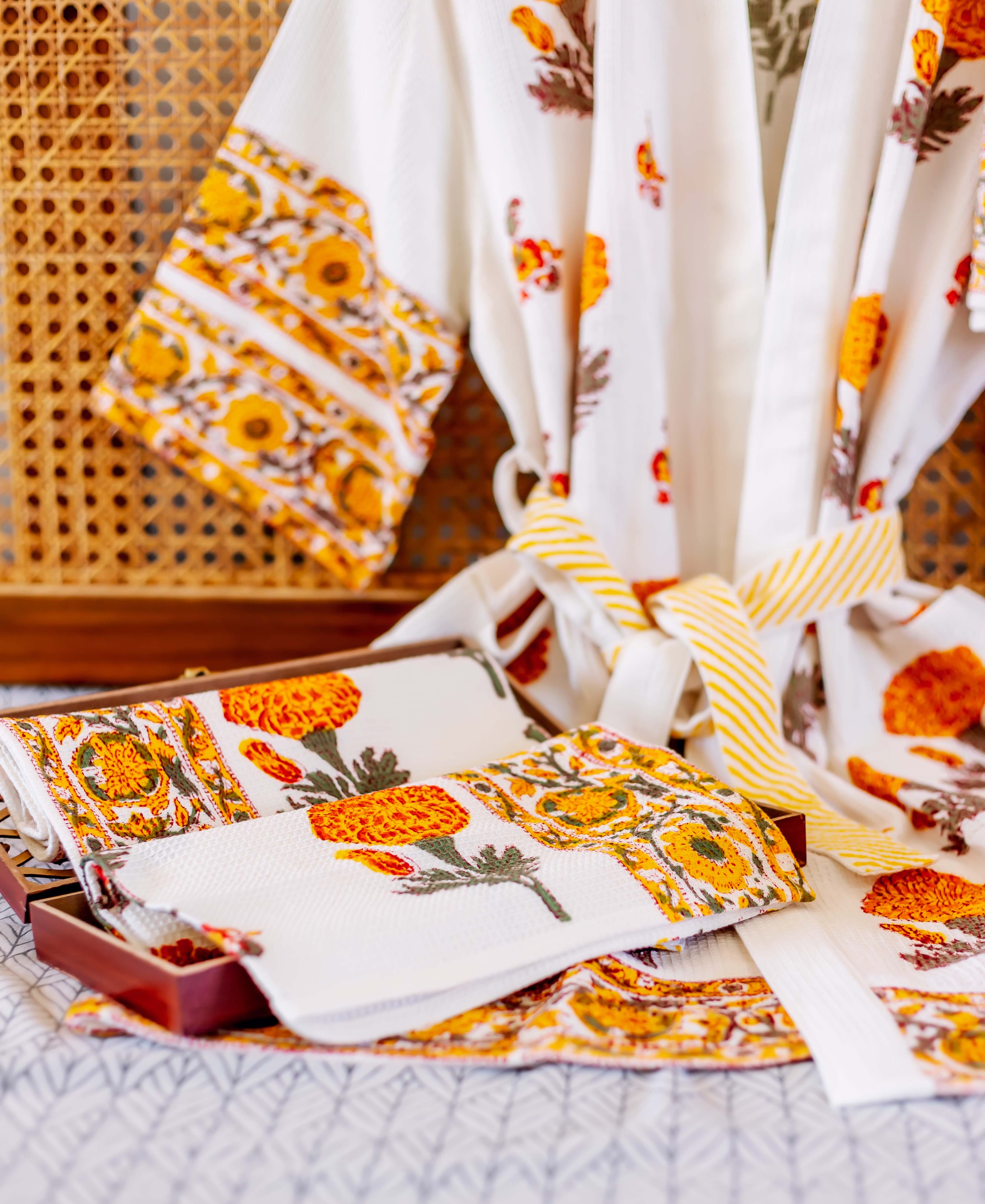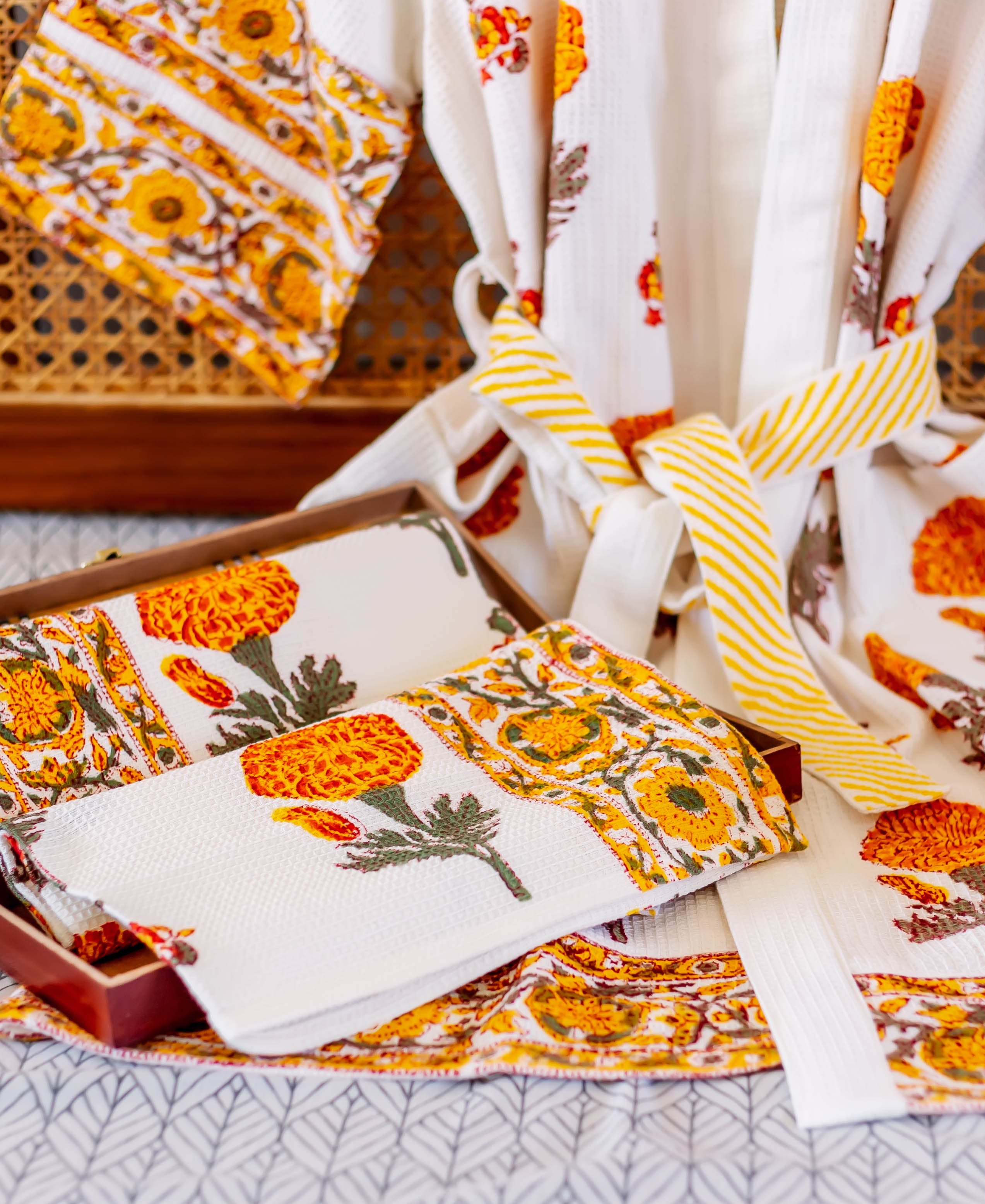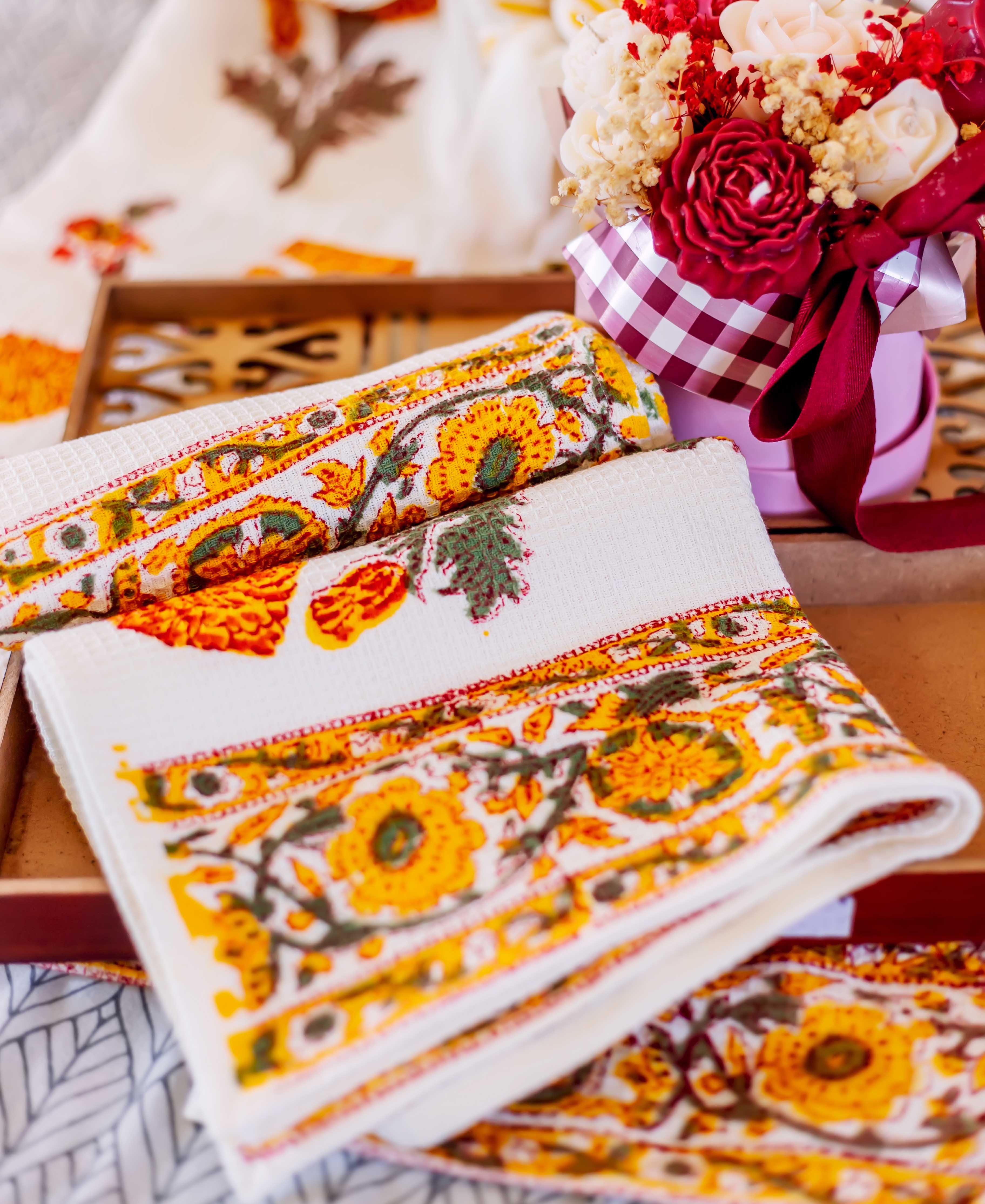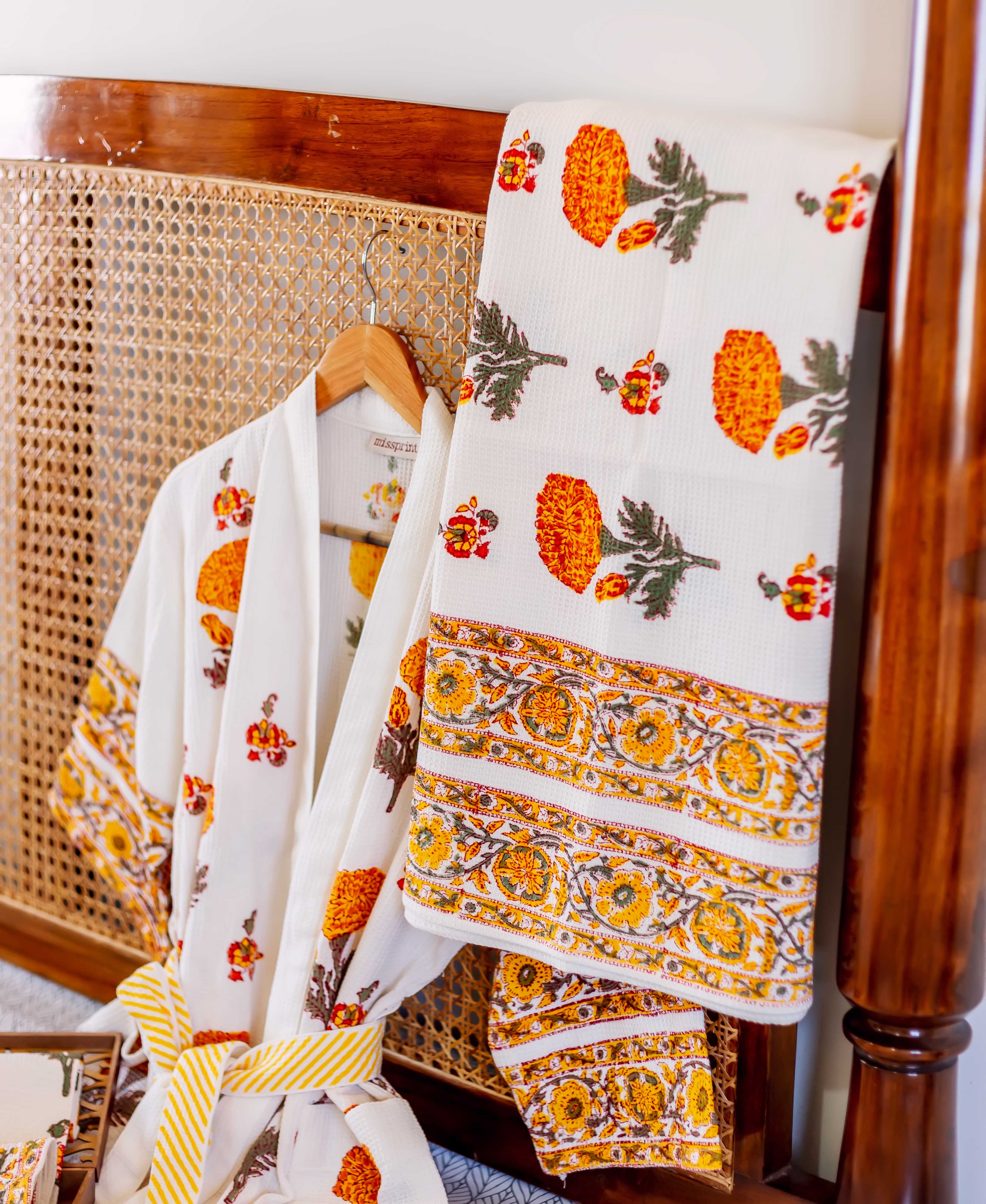 Marigold Bloom Hand Block Bath Set (4 pcs.)