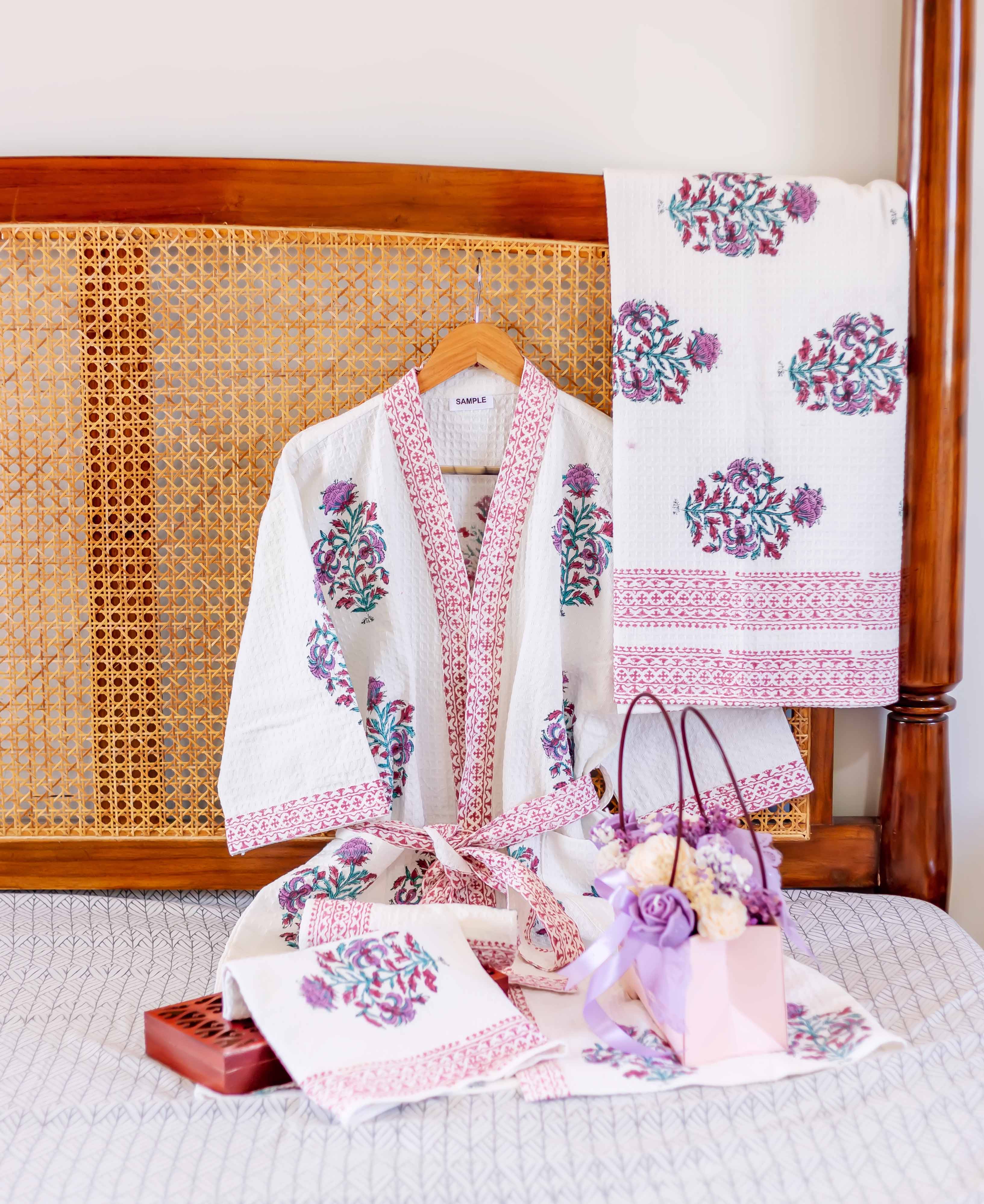 Gulbahar Buti Hand Block Bath Set (4 pcs.)