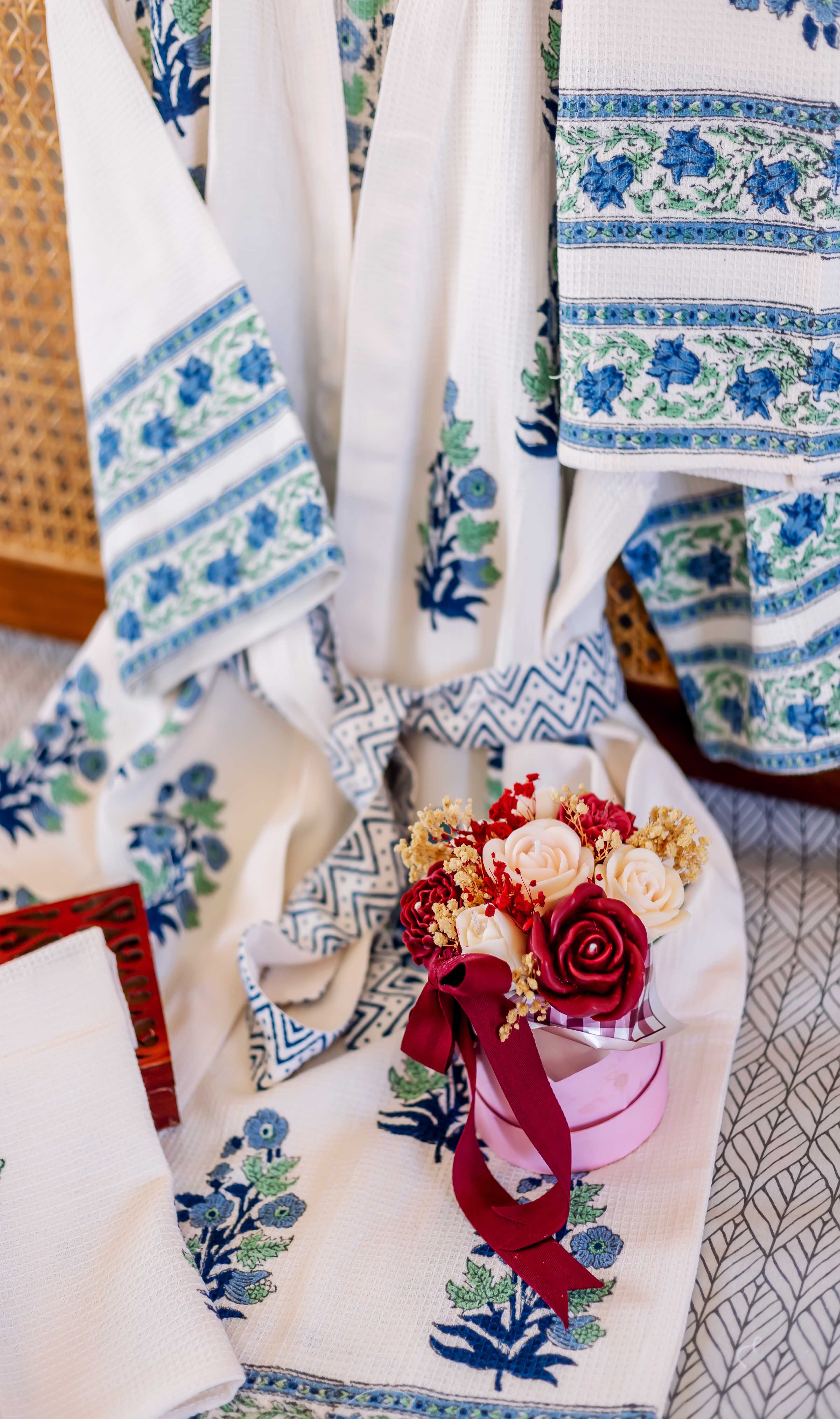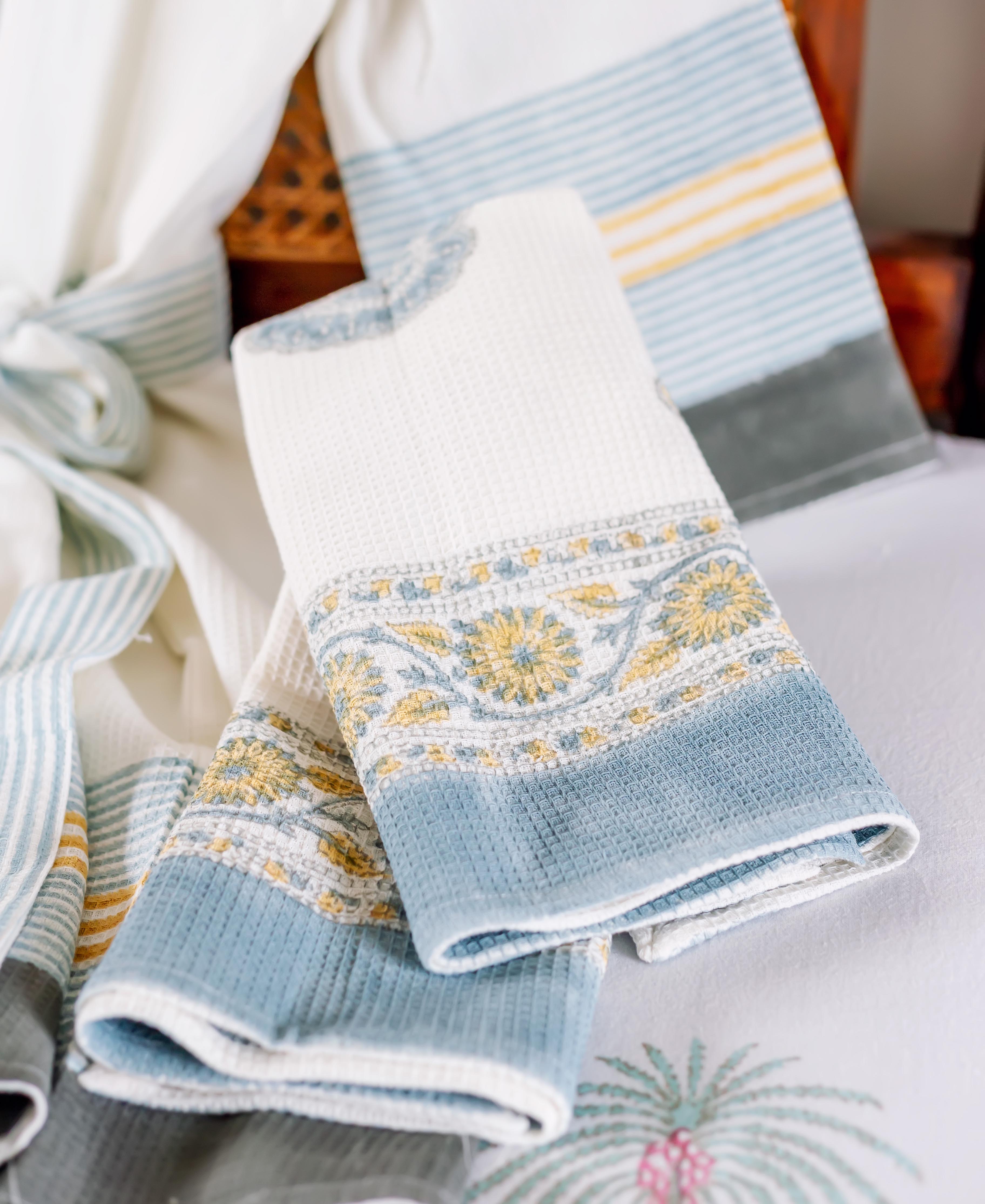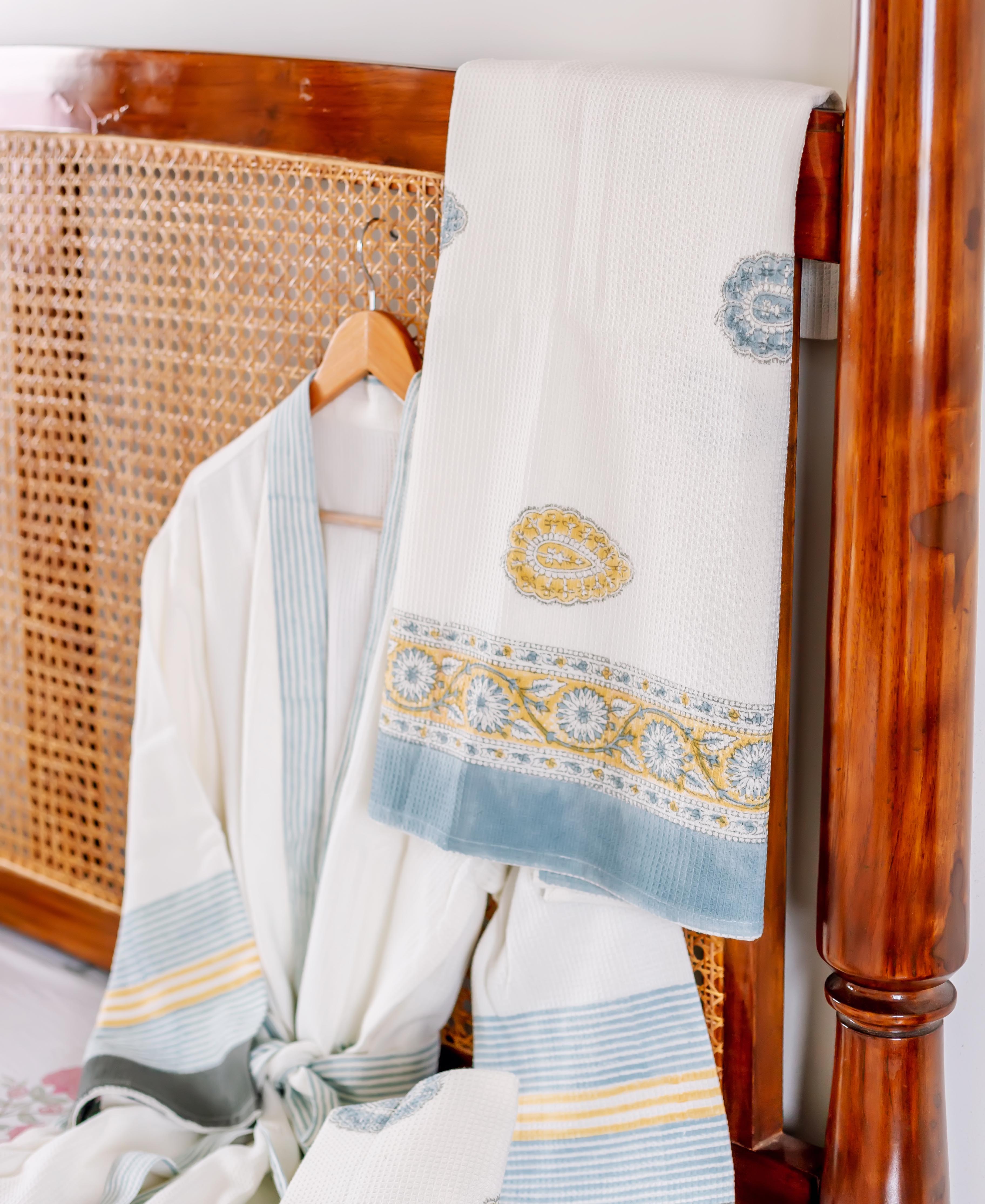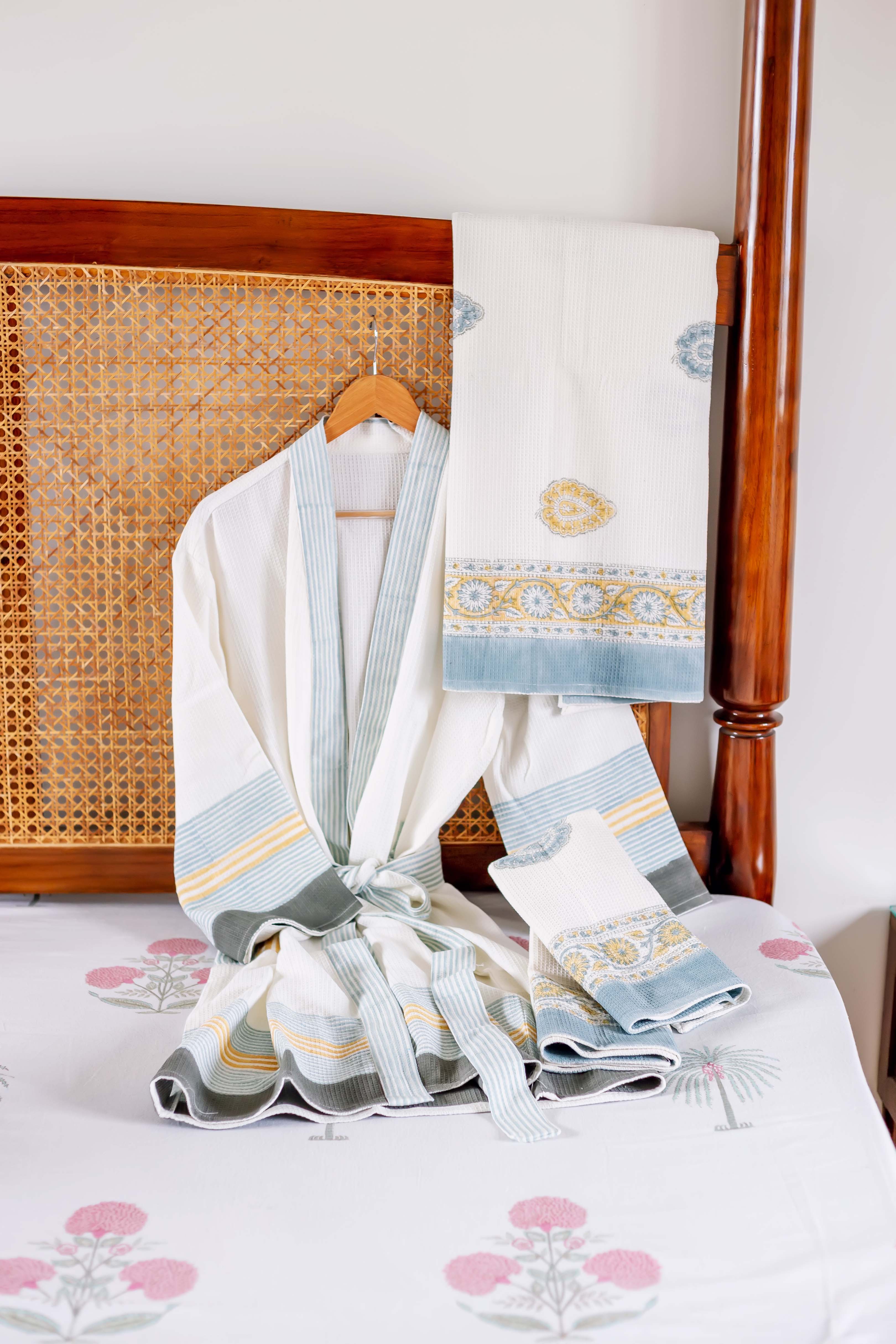 Aqua Marigold Hand Block Printed Bath Set (4 pcs.)