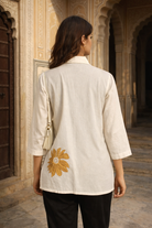 Soft as sunlight and rooted in craft, the Haldi Bloom Cotton Shirt is a celebration of everyday elegance.