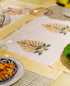 Add warmth and artisanal charm to your dining setup with the Mustard Bloom hand block printed table mats. Crafted on sturdy cotton canvas, each mat features mustard floral motifs paired with fine green detailing — a perfect blend of heritage and contemporary style