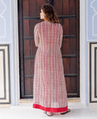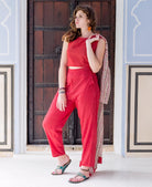Red Indowestern Crop Top with High Waist Pants and Printed Jacket