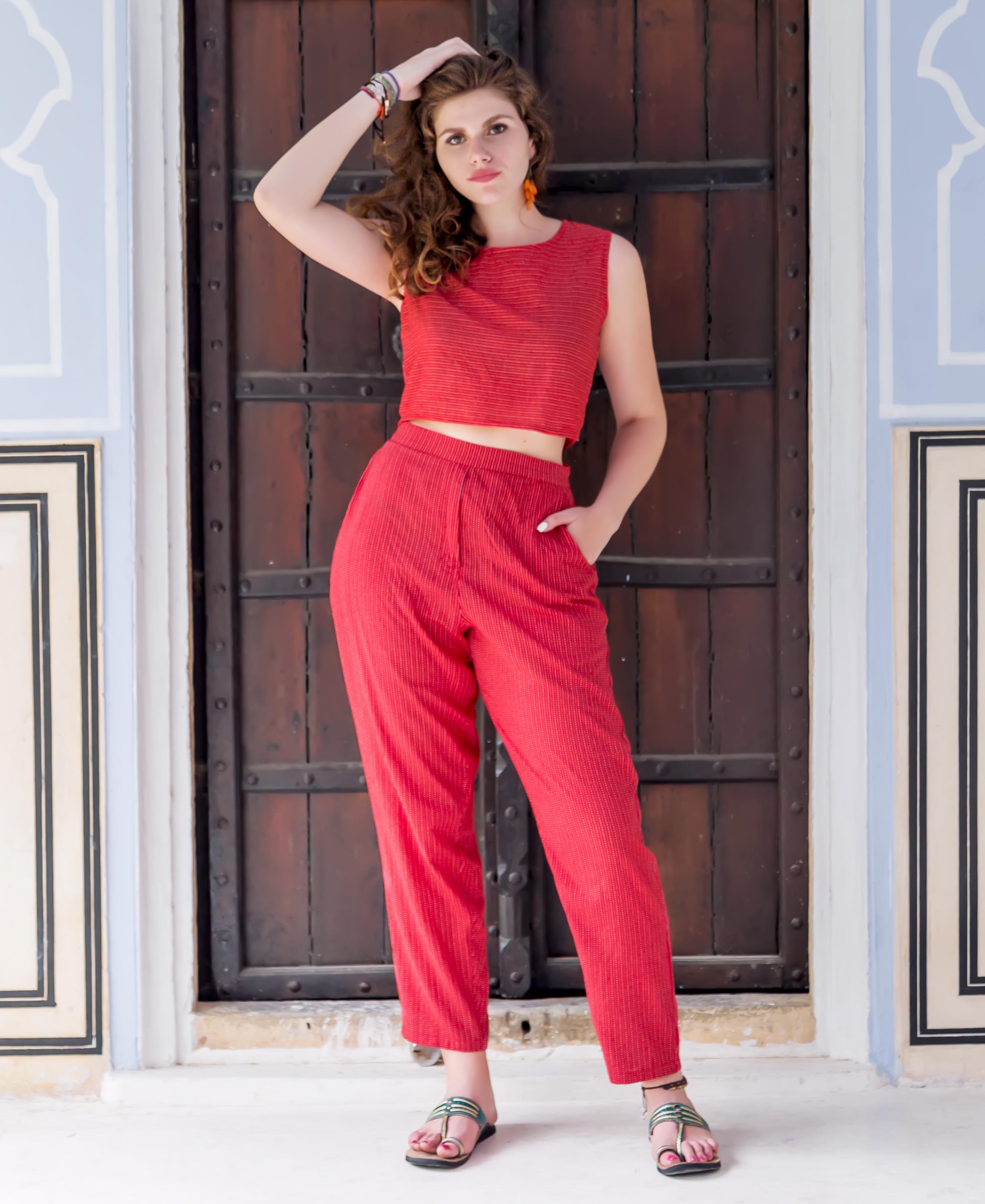 - Bottom: Red Yarn Dyed Solid High Waist Pants